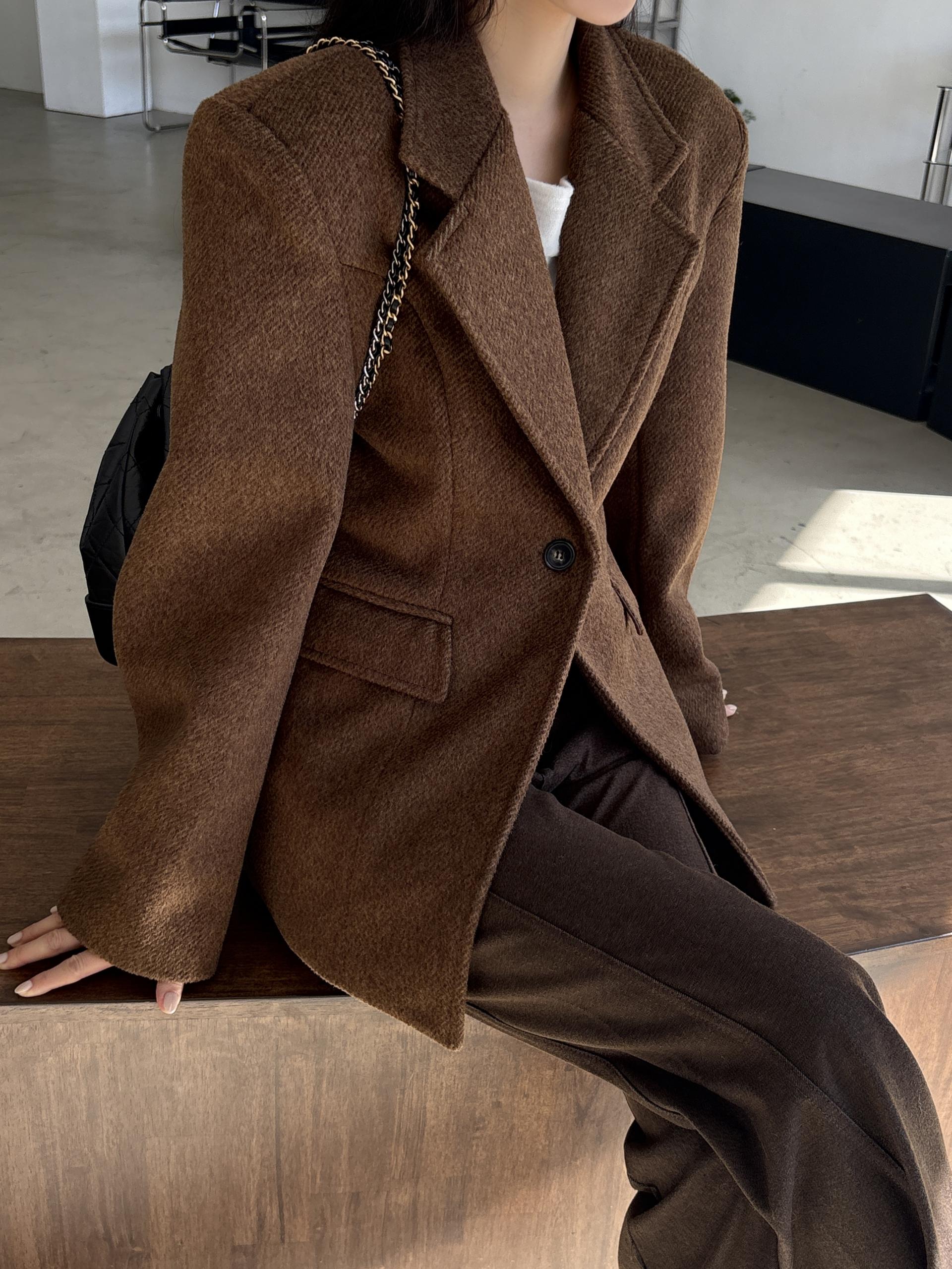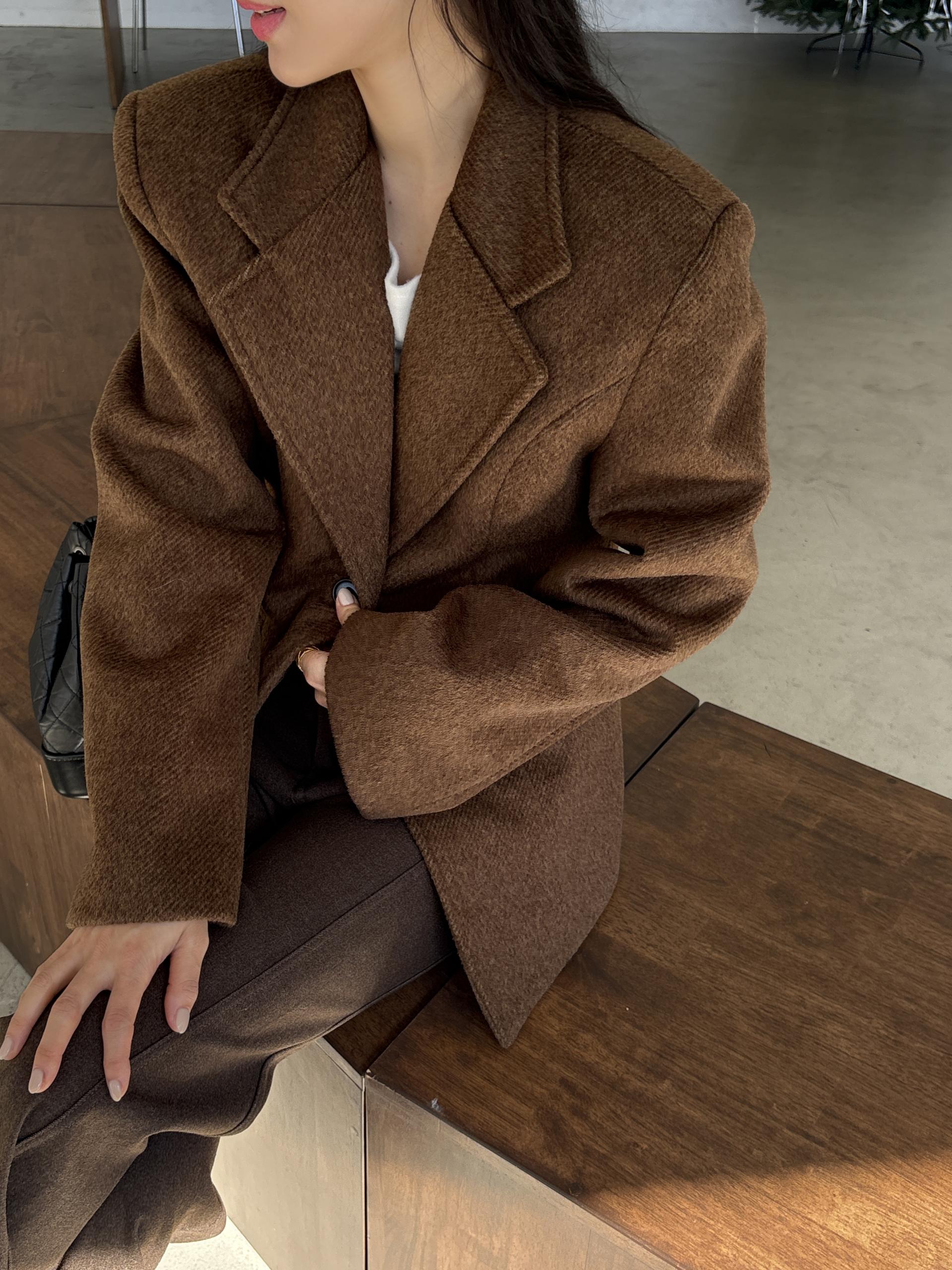 두께감 있는 울 블렌드 코트지를 사용했고, 결감이 느껴지는 소재로 부드럽고 포근한 소재감이에요. 저도 바로 소장해서 매일 착용 중인데 보풀 절대 없고, 하루 종일 입어도 핏이 무너지지 않아 아주 만족하고 있어요.