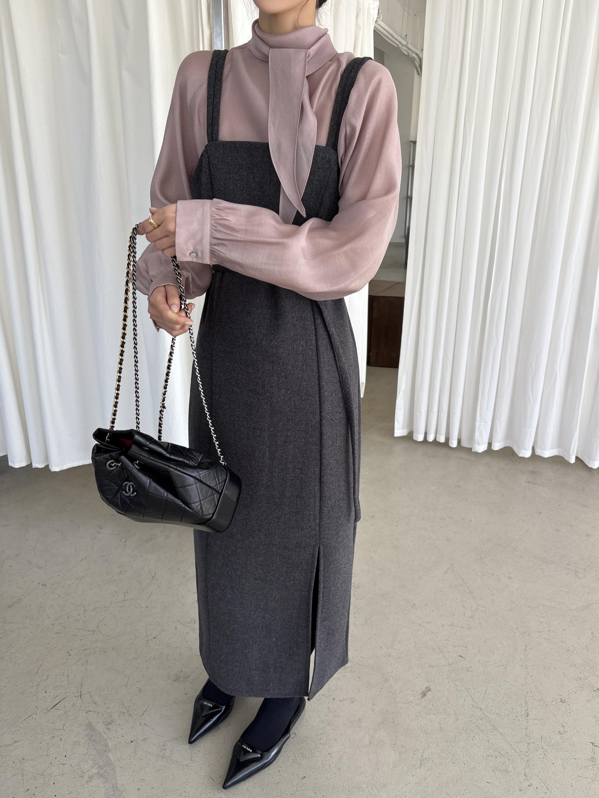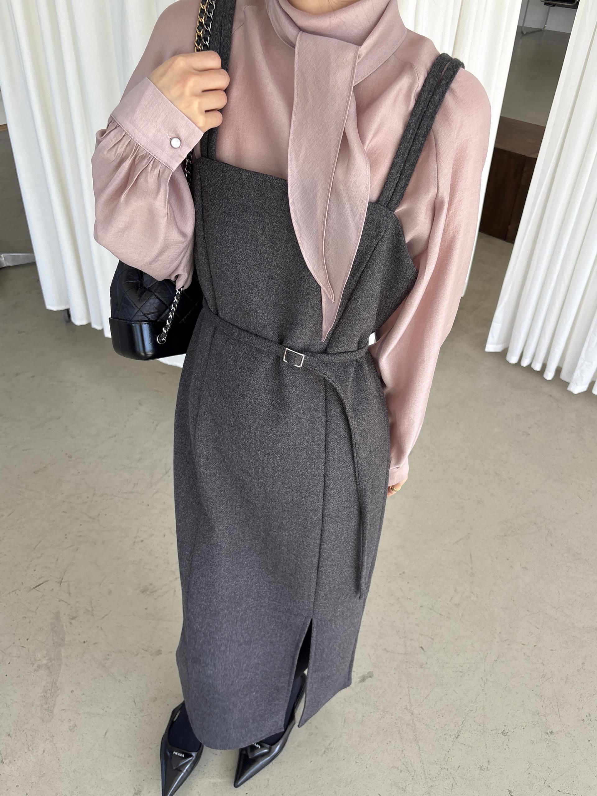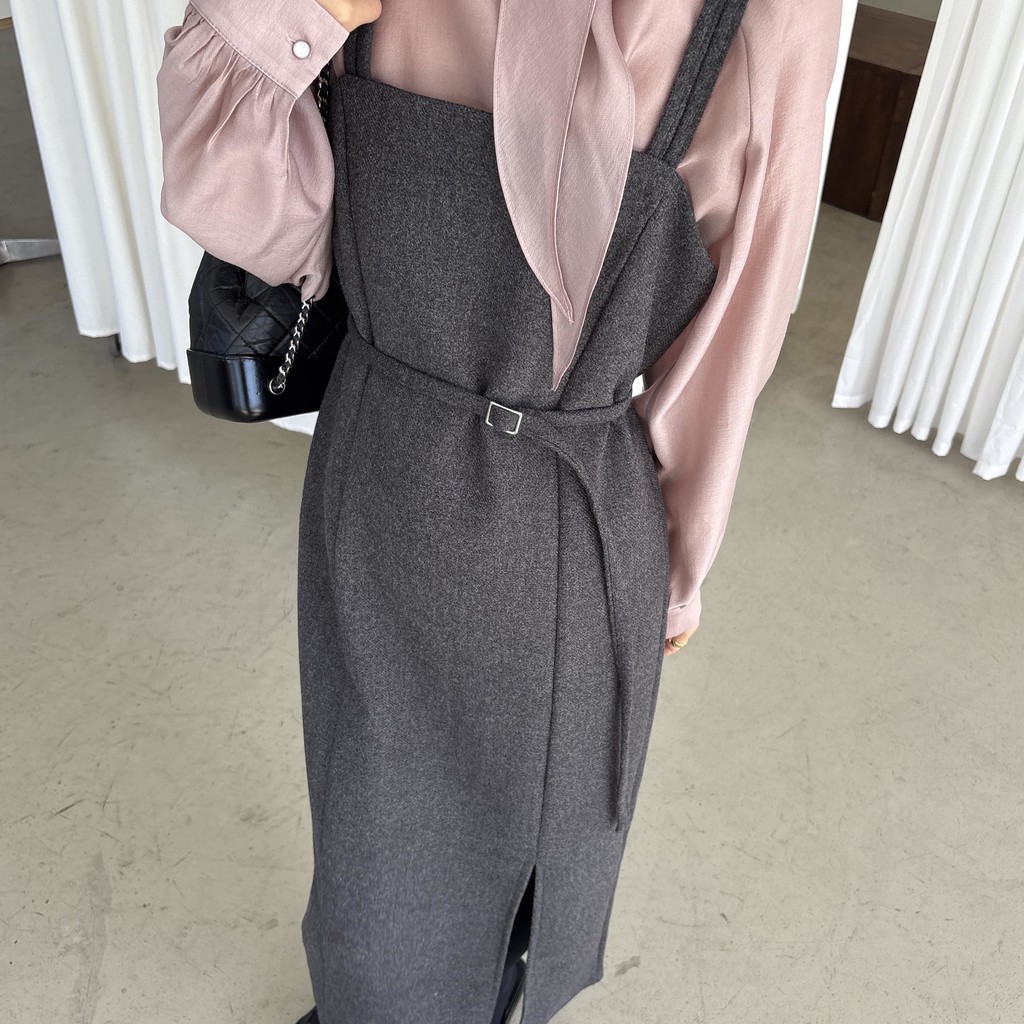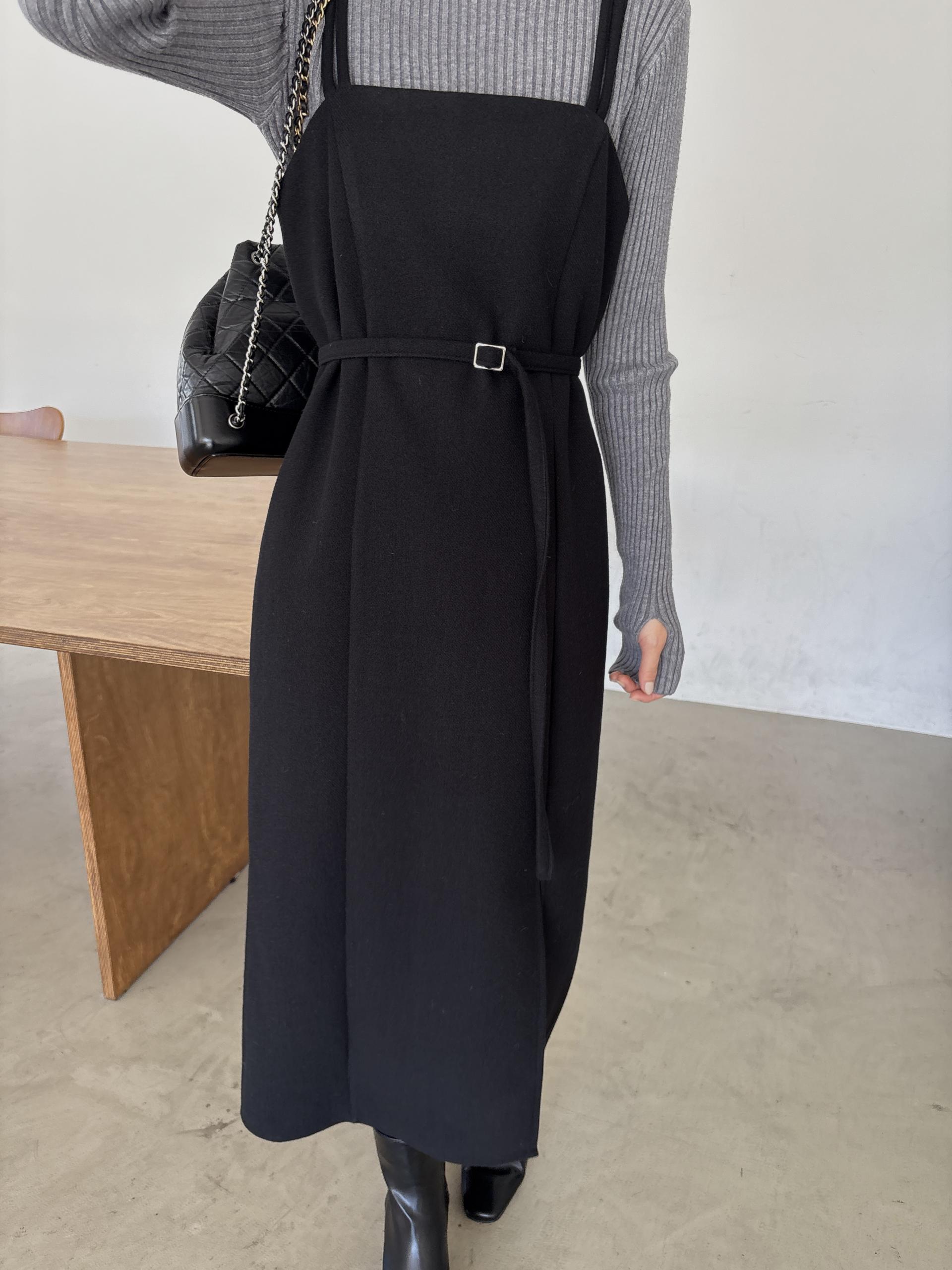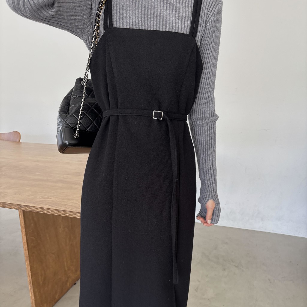 울 블렌드 느낌의 탄탄한 모직 원단으로 고급스러움이 느껴지며, 나시에 스퀘어넥 형태로 블라우스, 셔츠, 니트, 폴라티 등 어떤 이너와도 레이어드하기 좋습니다.