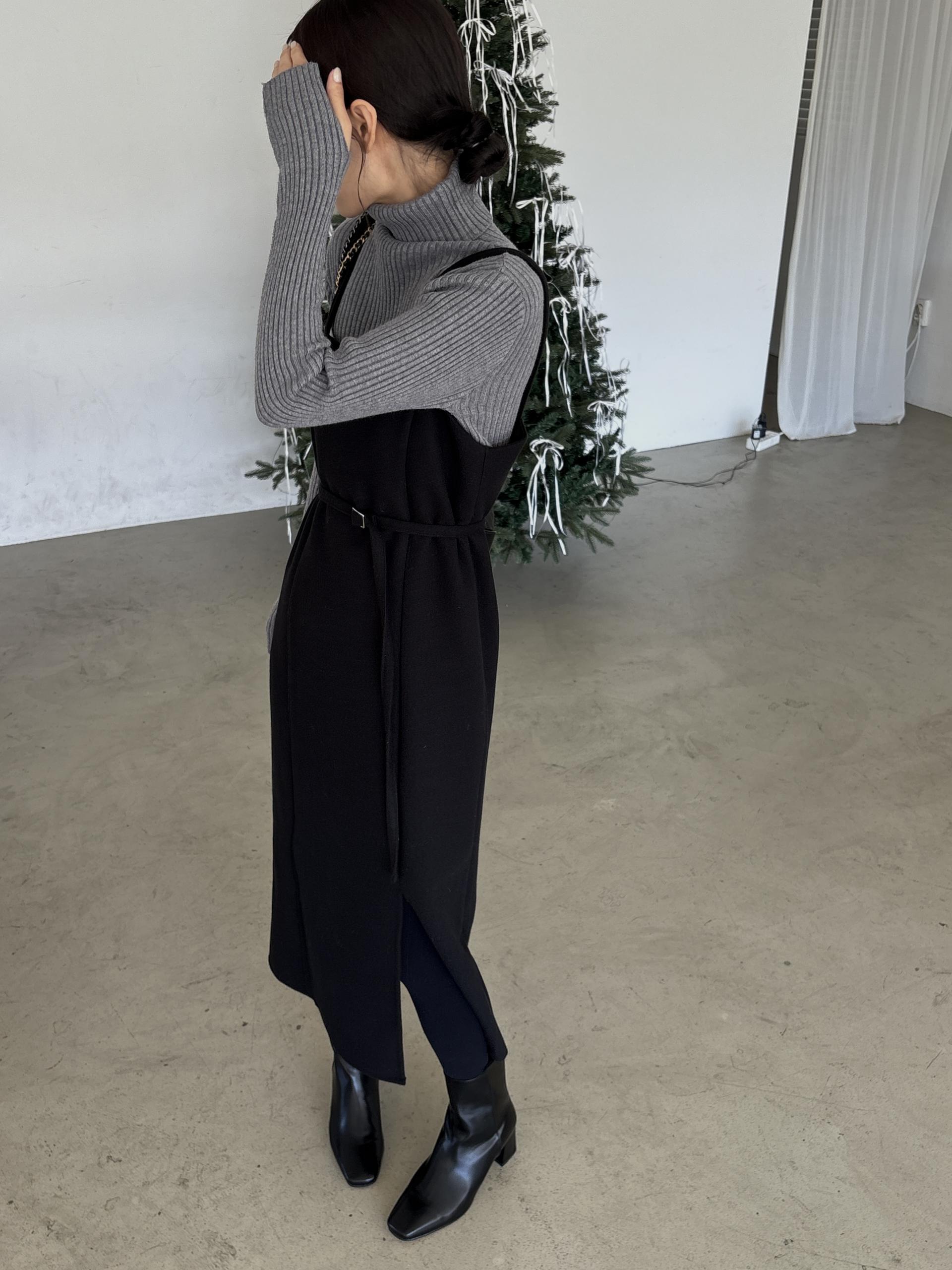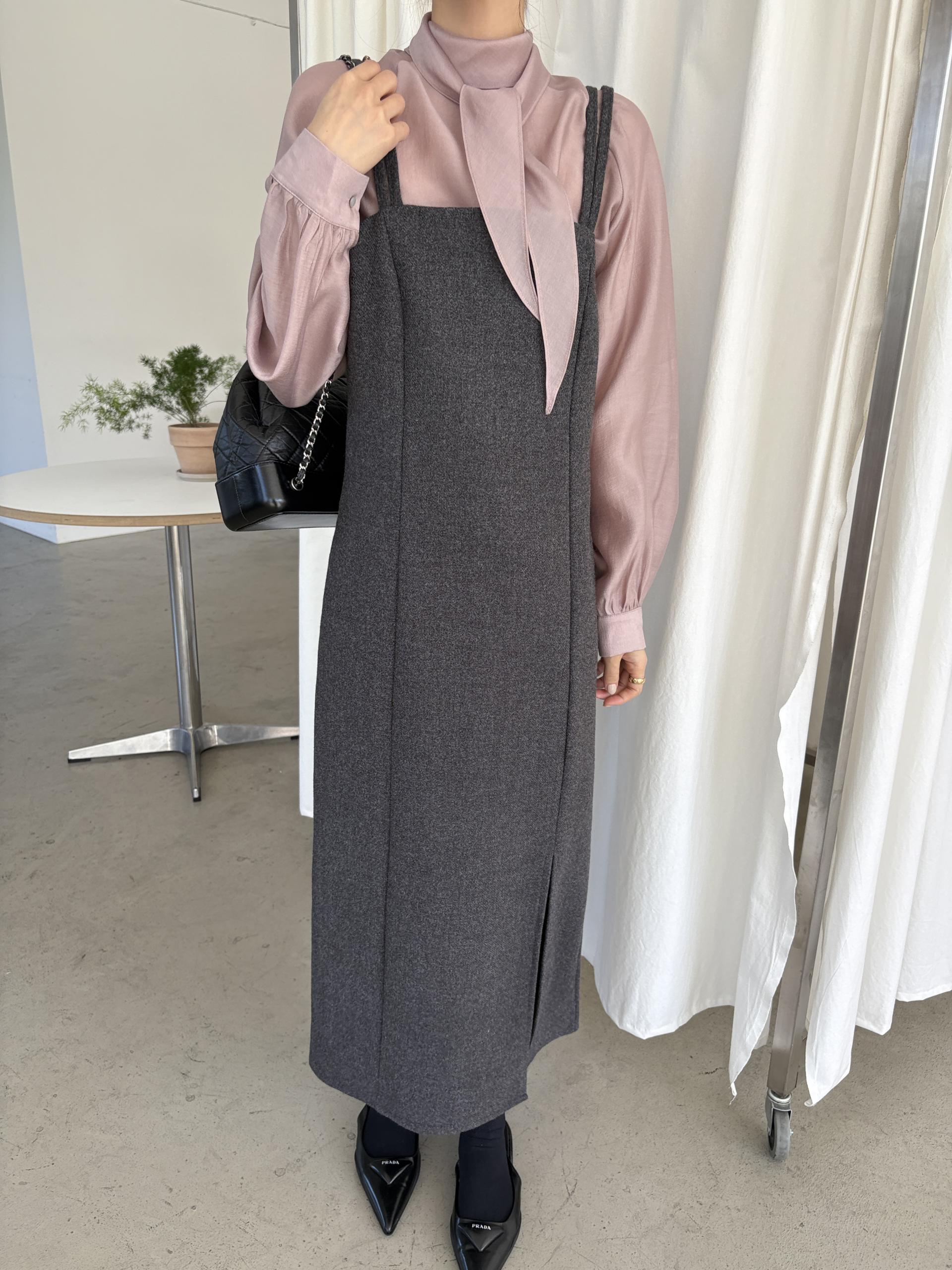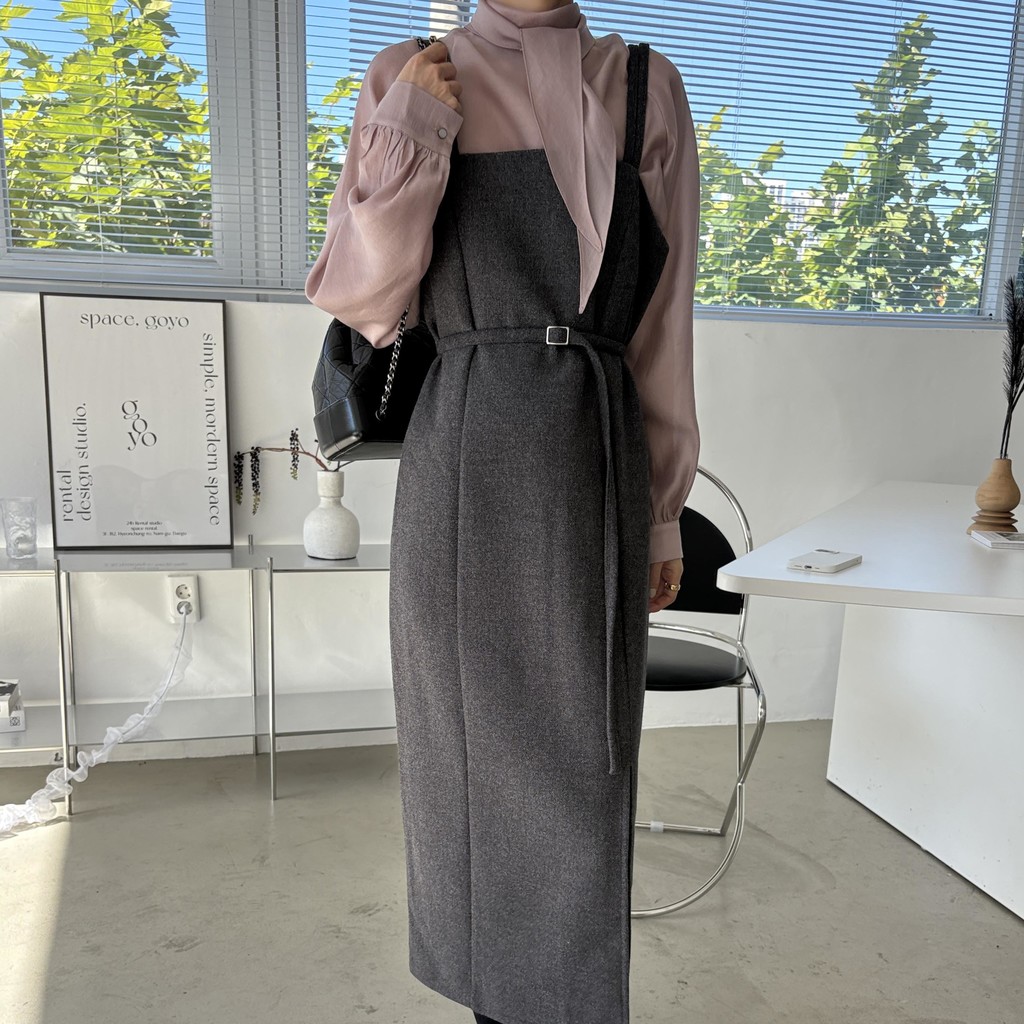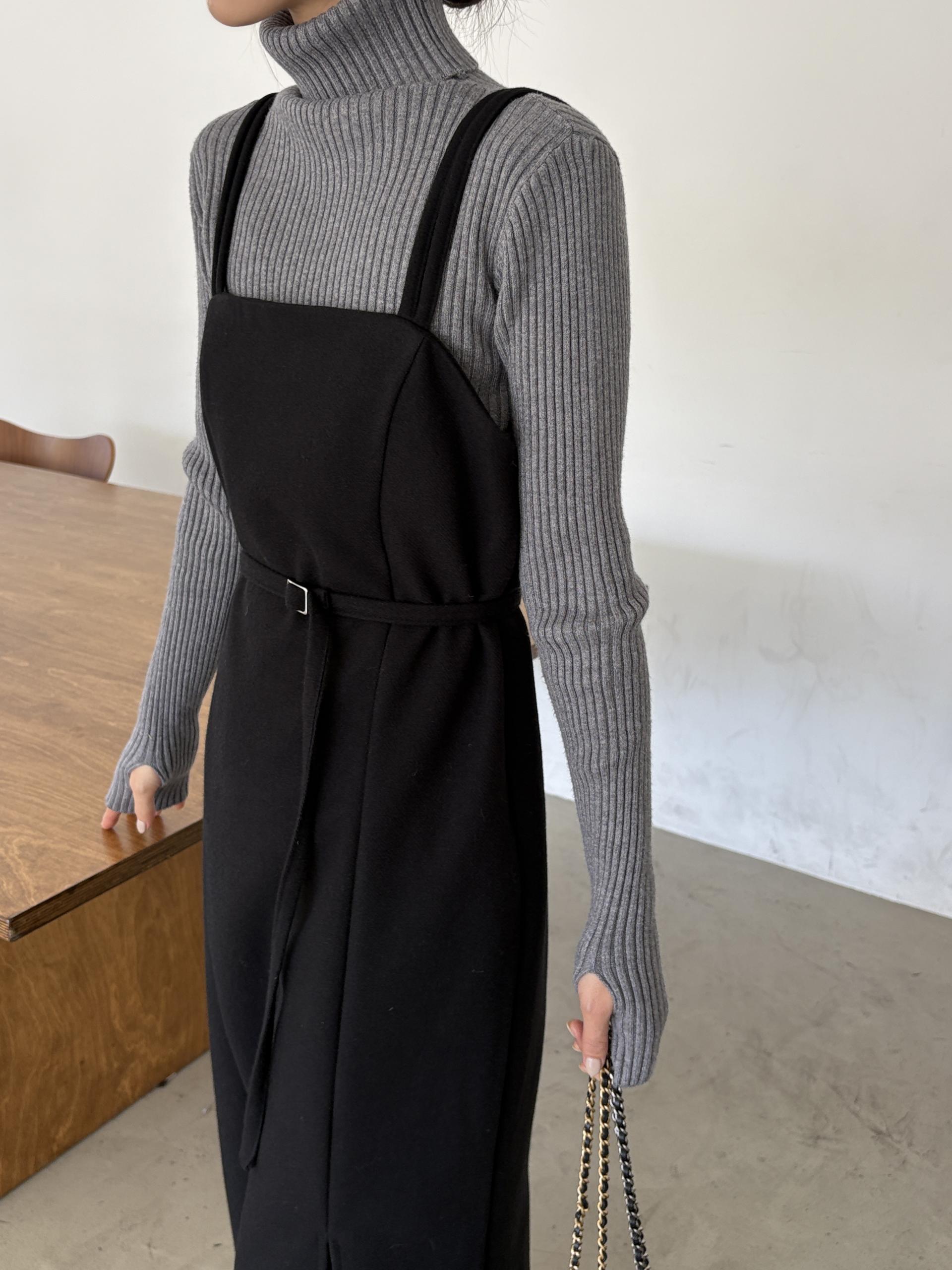울 블렌드 느낌의 탄탄한 모직 원단으로 고급스러움이 느껴지며, 나시에 스퀘어넥 형태로 블라우스, 셔츠, 니트, 폴라티 등 어떤 이너와도 레이어드하기 좋습니다.