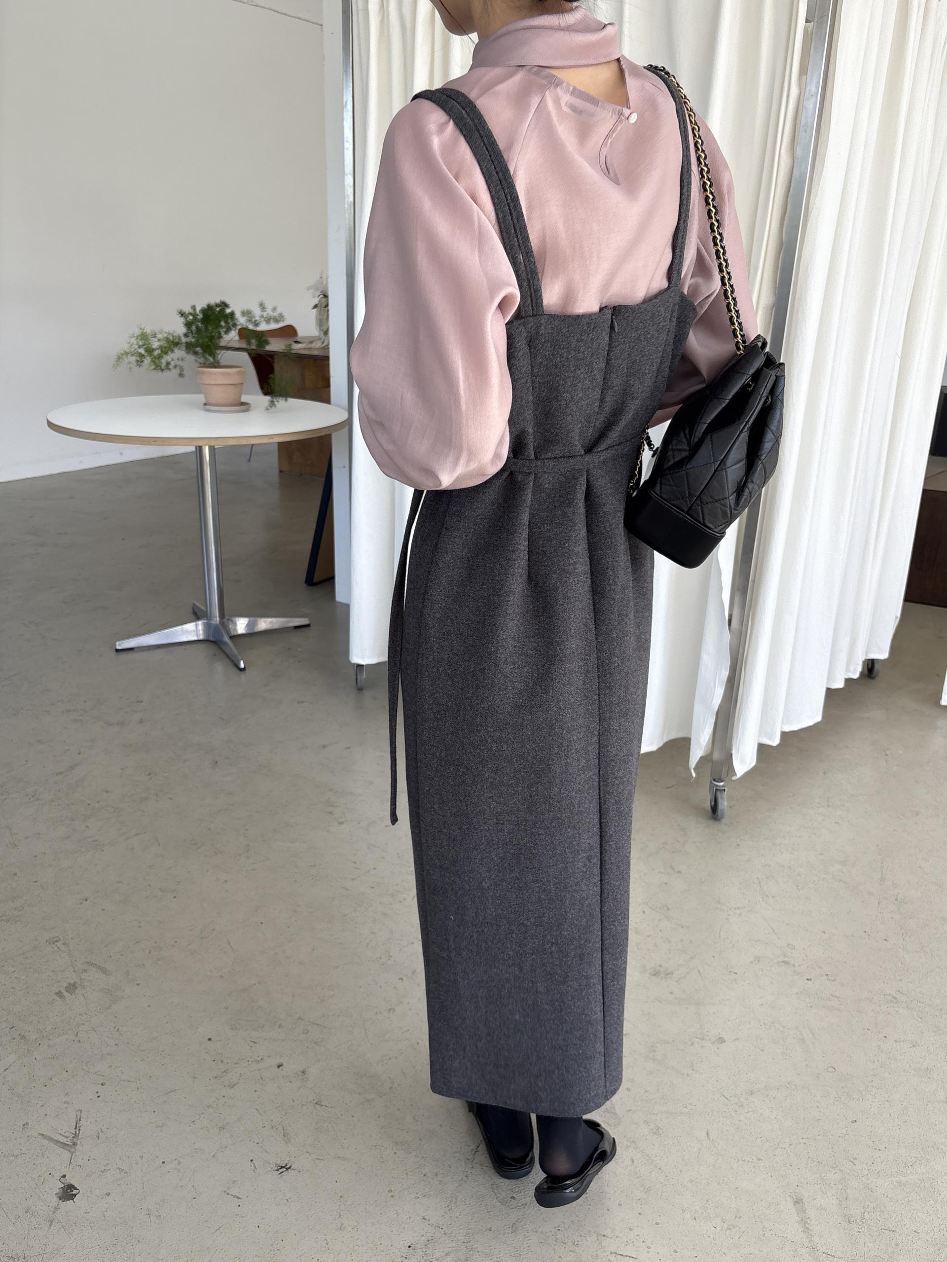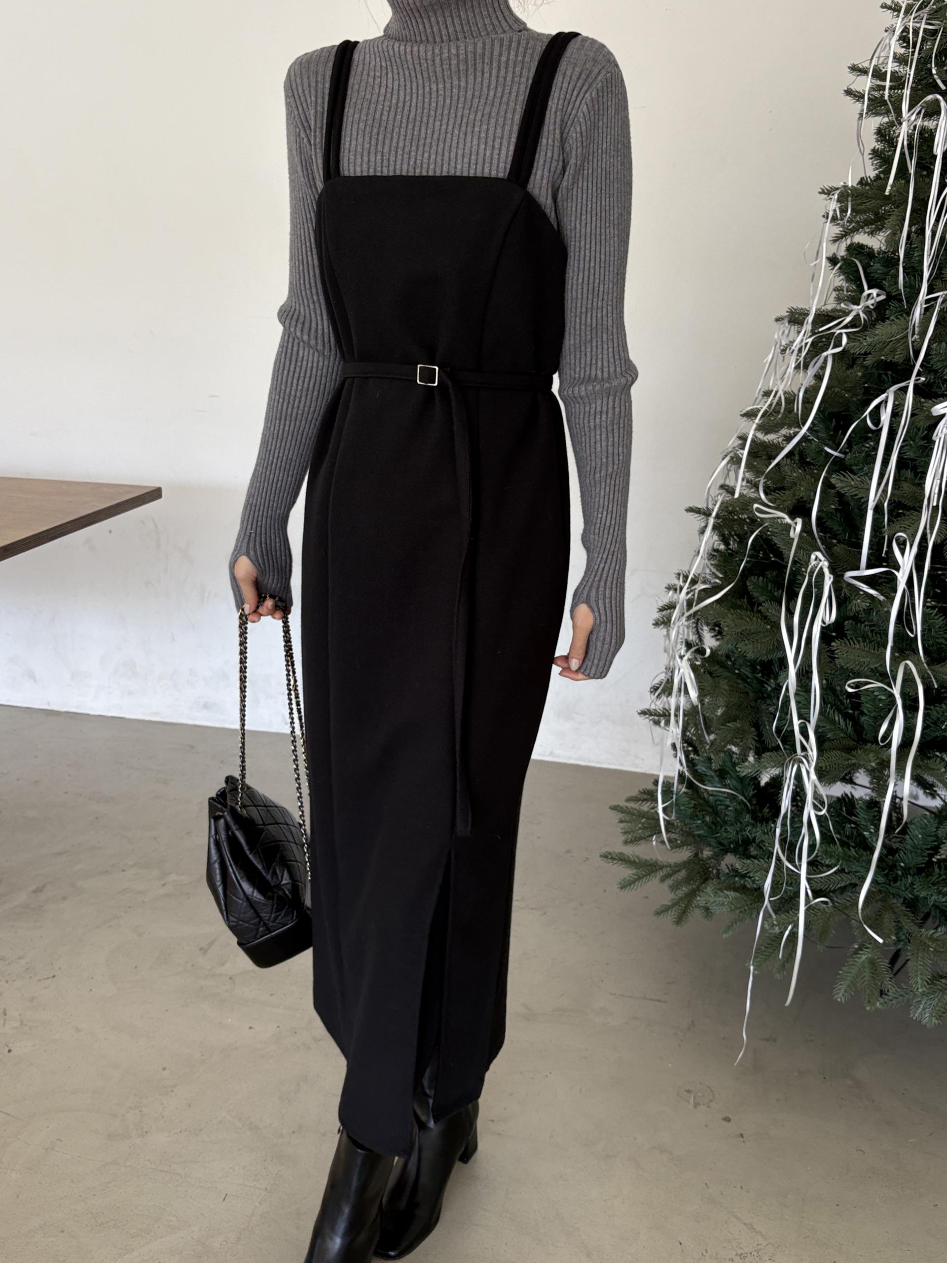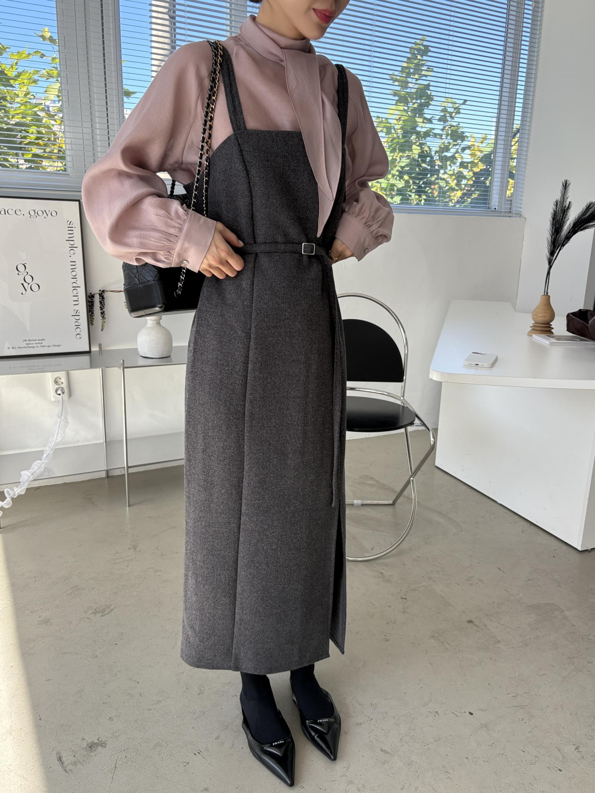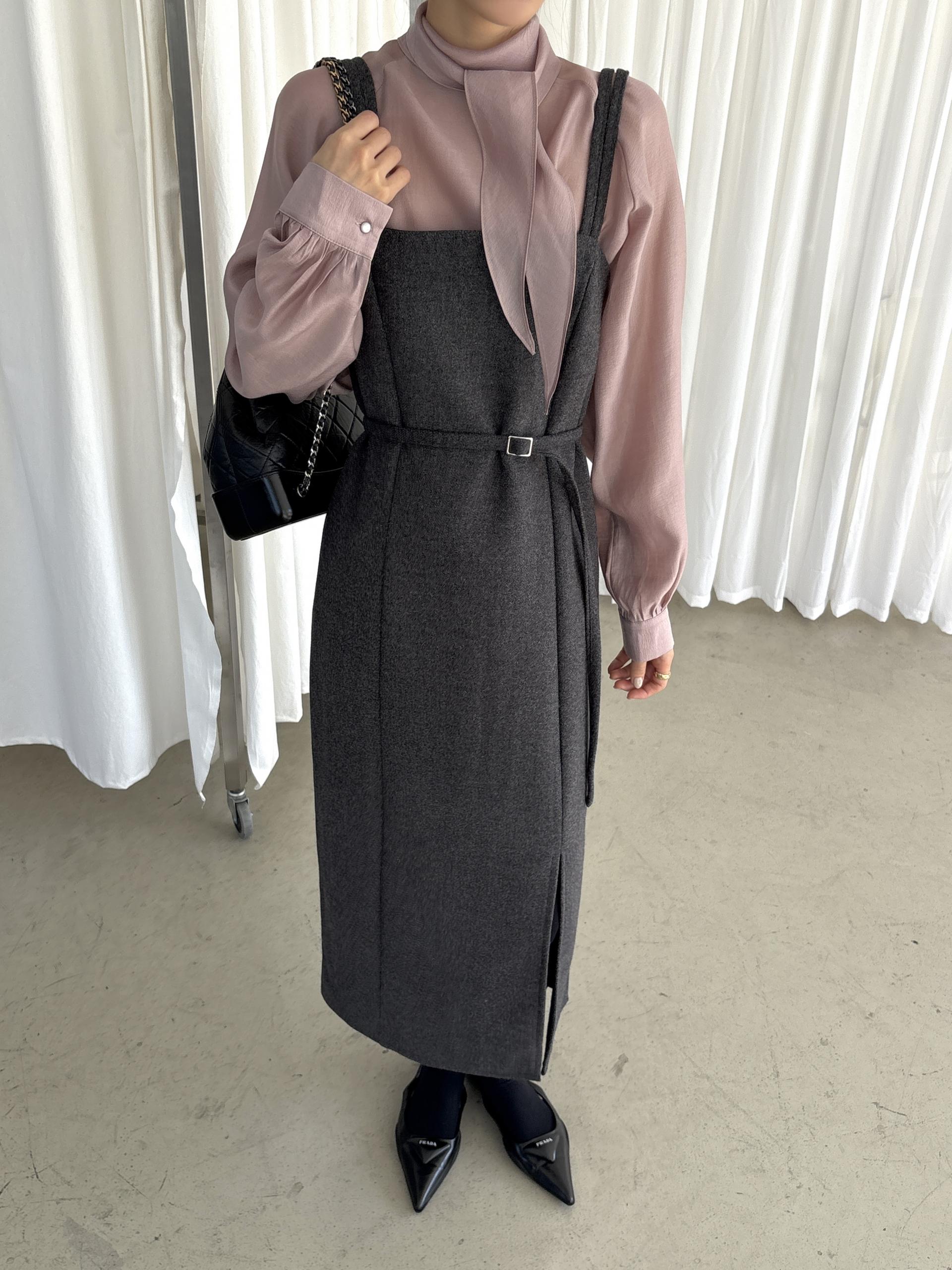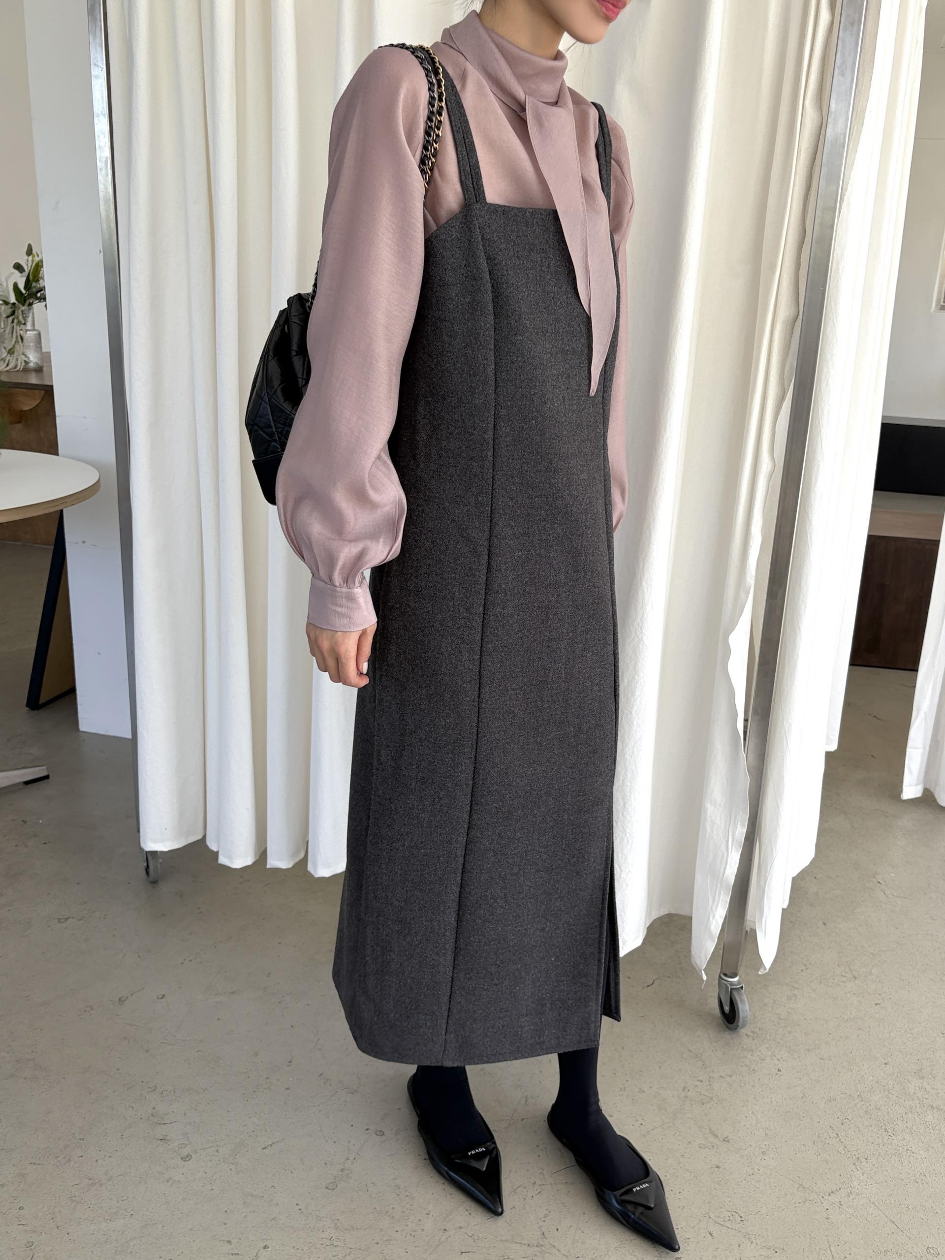 울 블렌드 느낌의 탄탄한 모직 원단으로 고급스러움이 느껴지며, 나시에 스퀘어넥 형태로 블라우스, 셔츠, 니트, 폴라티 등 어떤 이너와도 레이어드하기 좋습니다.