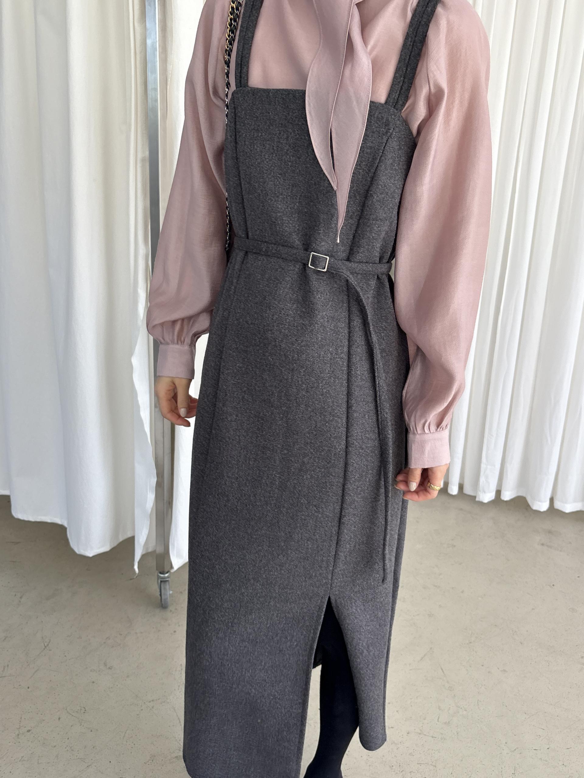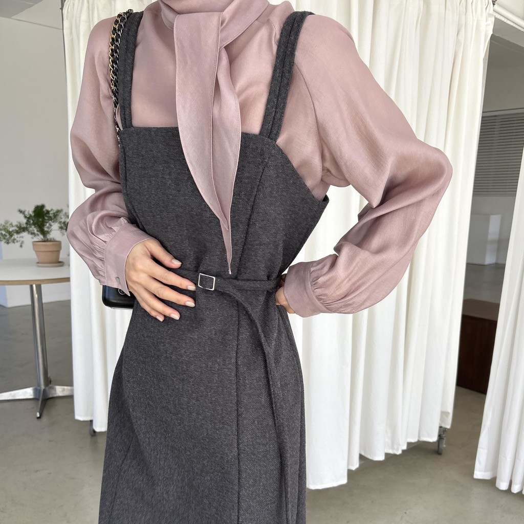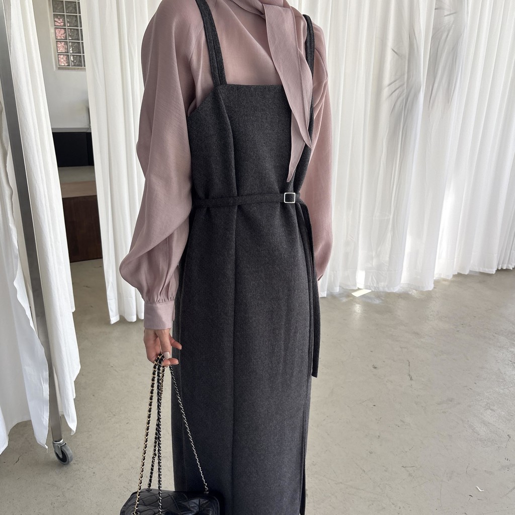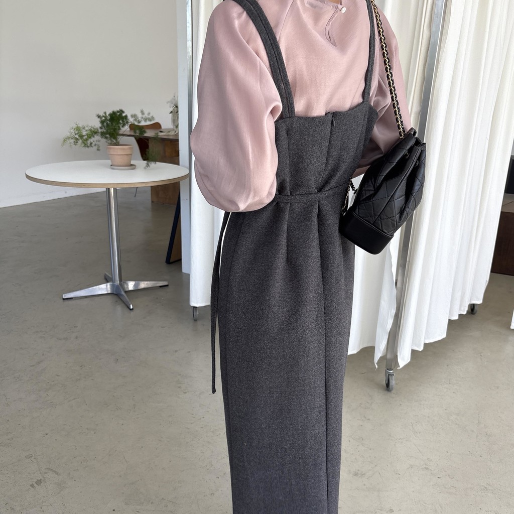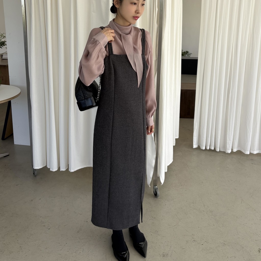 울 블렌드 느낌의 탄탄한 모직 원단으로 고급스러움이 느껴지며, 나시에 스퀘어넥 형태로 블라우스, 셔츠, 니트, 폴라티 등 어떤 이너와도 레이어드하기 좋습니다.
