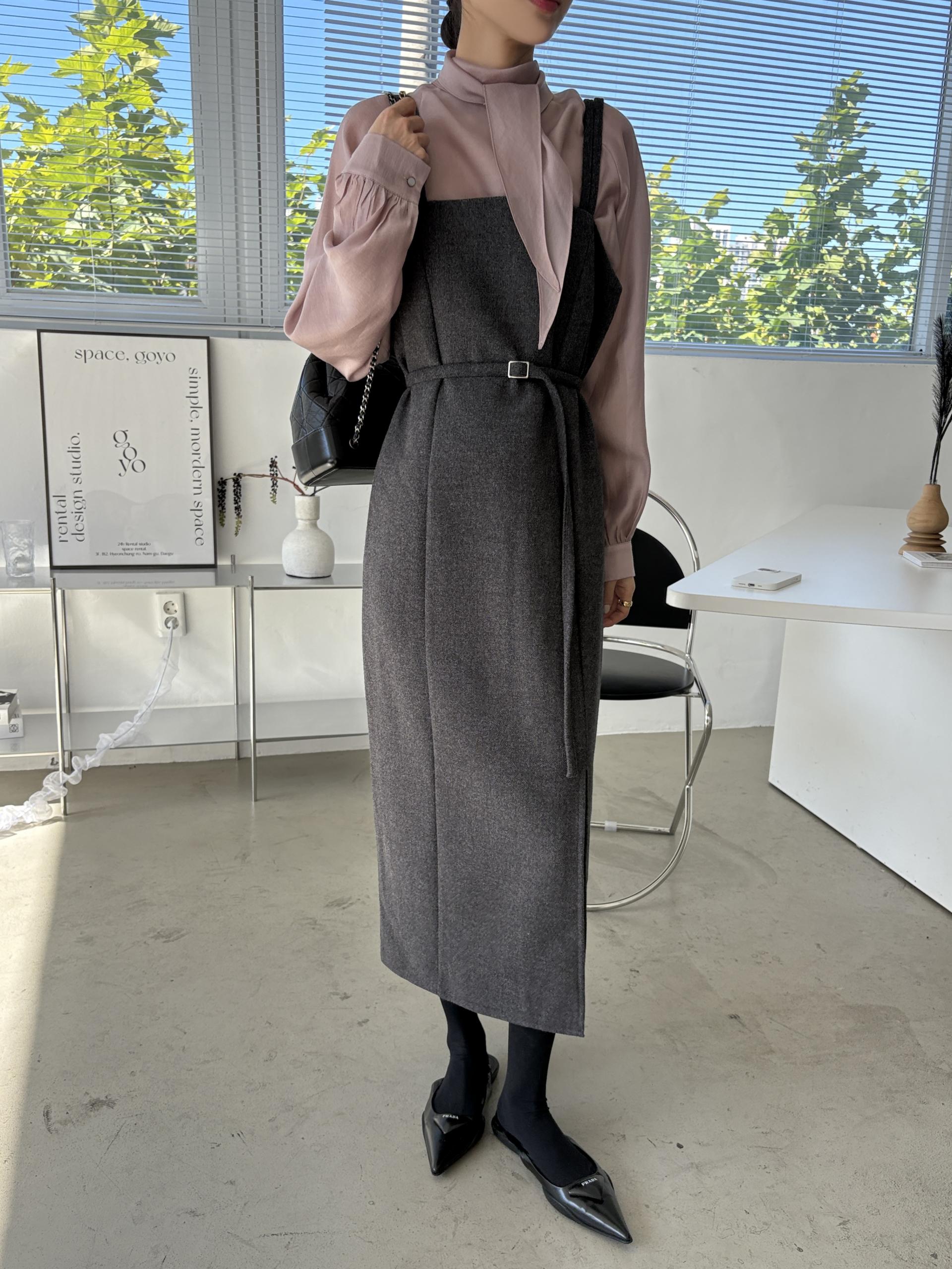 클래식하고 세련된 무드의 H라인 모직 원피스입니다.