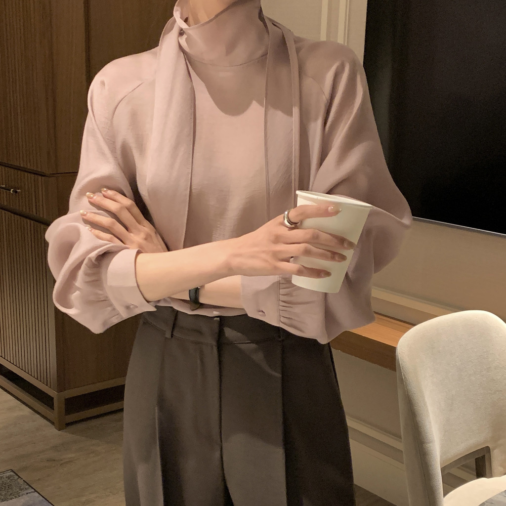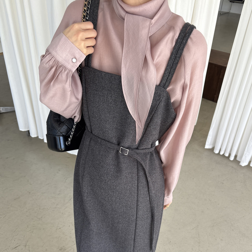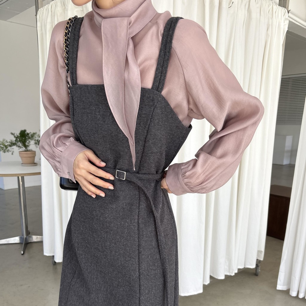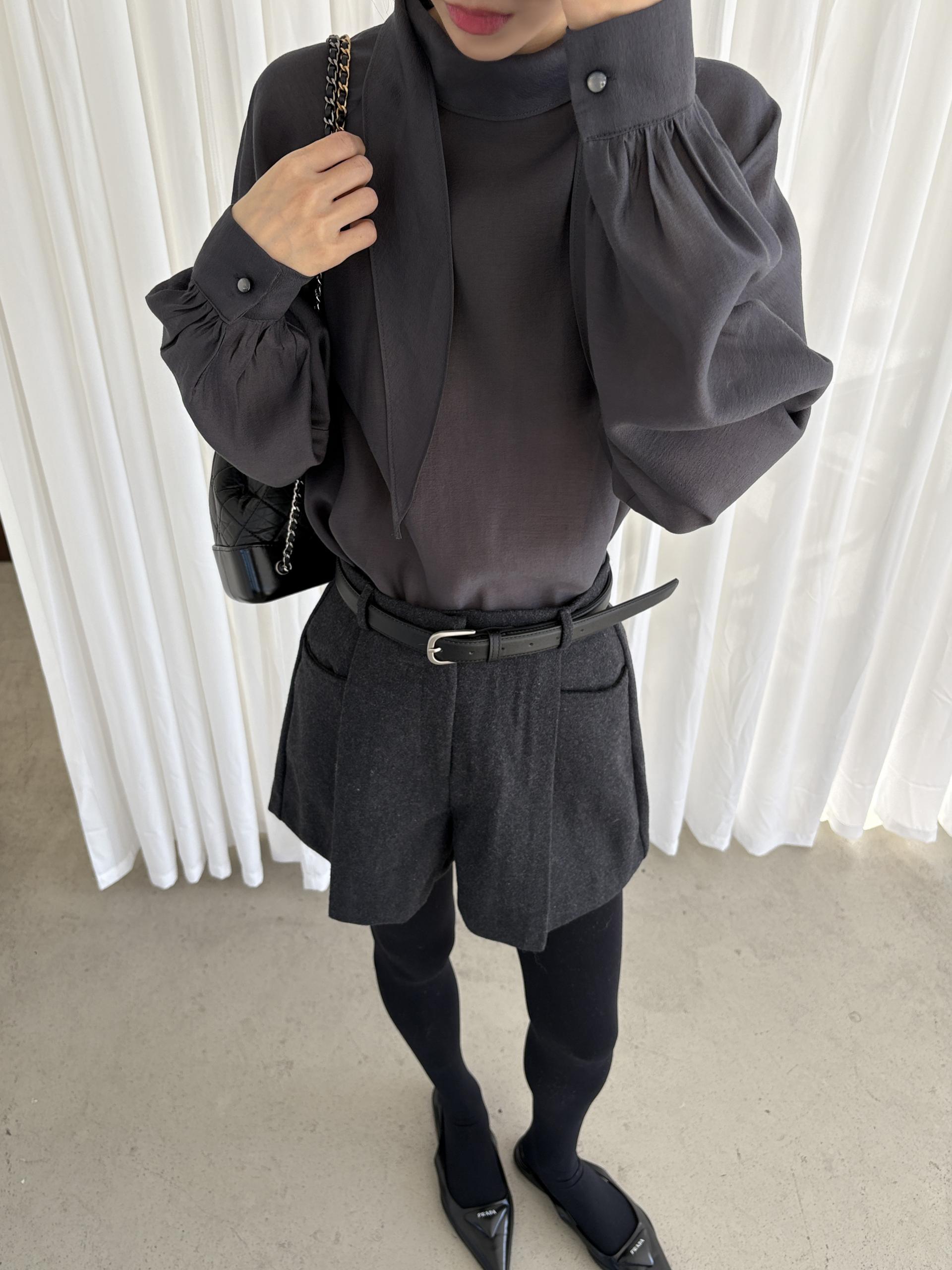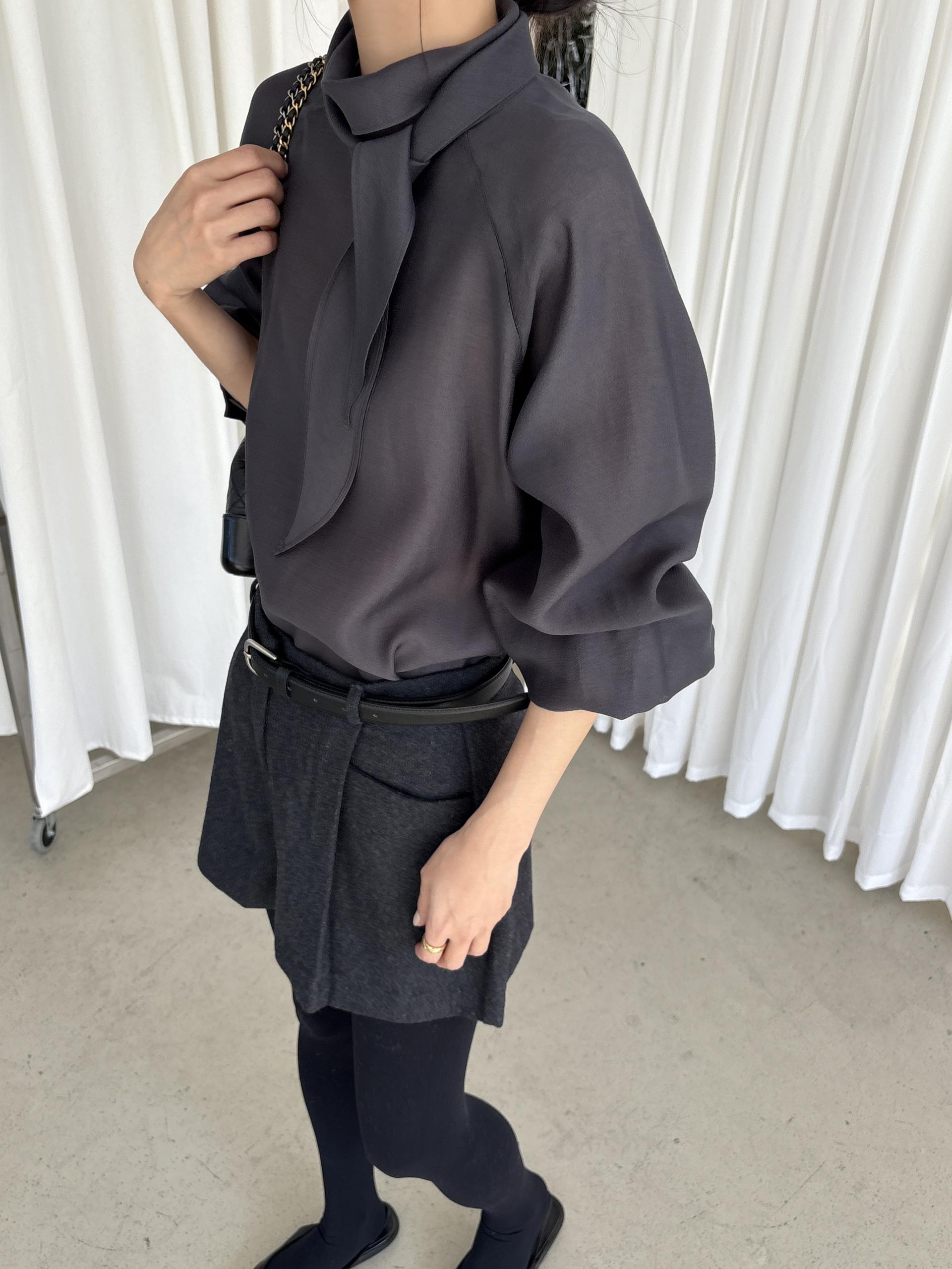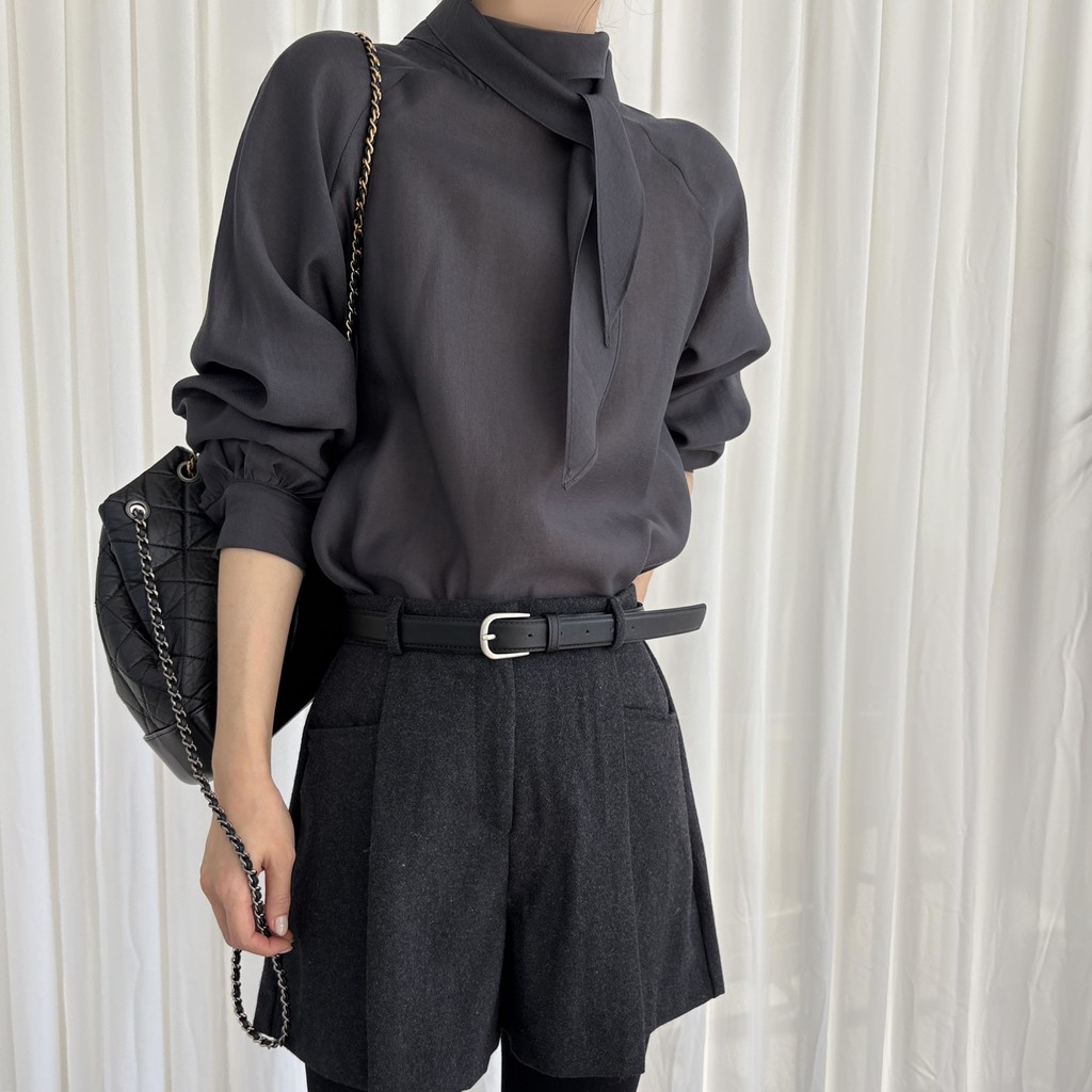 자연스레 떨어지는 넥 스카프 디테일이 고급스러운 분위기를 완성하며, 볼륨감 있는 소매 라인이 우아한 실루엣을 연출합니다. 탄탄한 소매 커프스가 팔 라인 또 한 슬림하게 보정해 줘요.