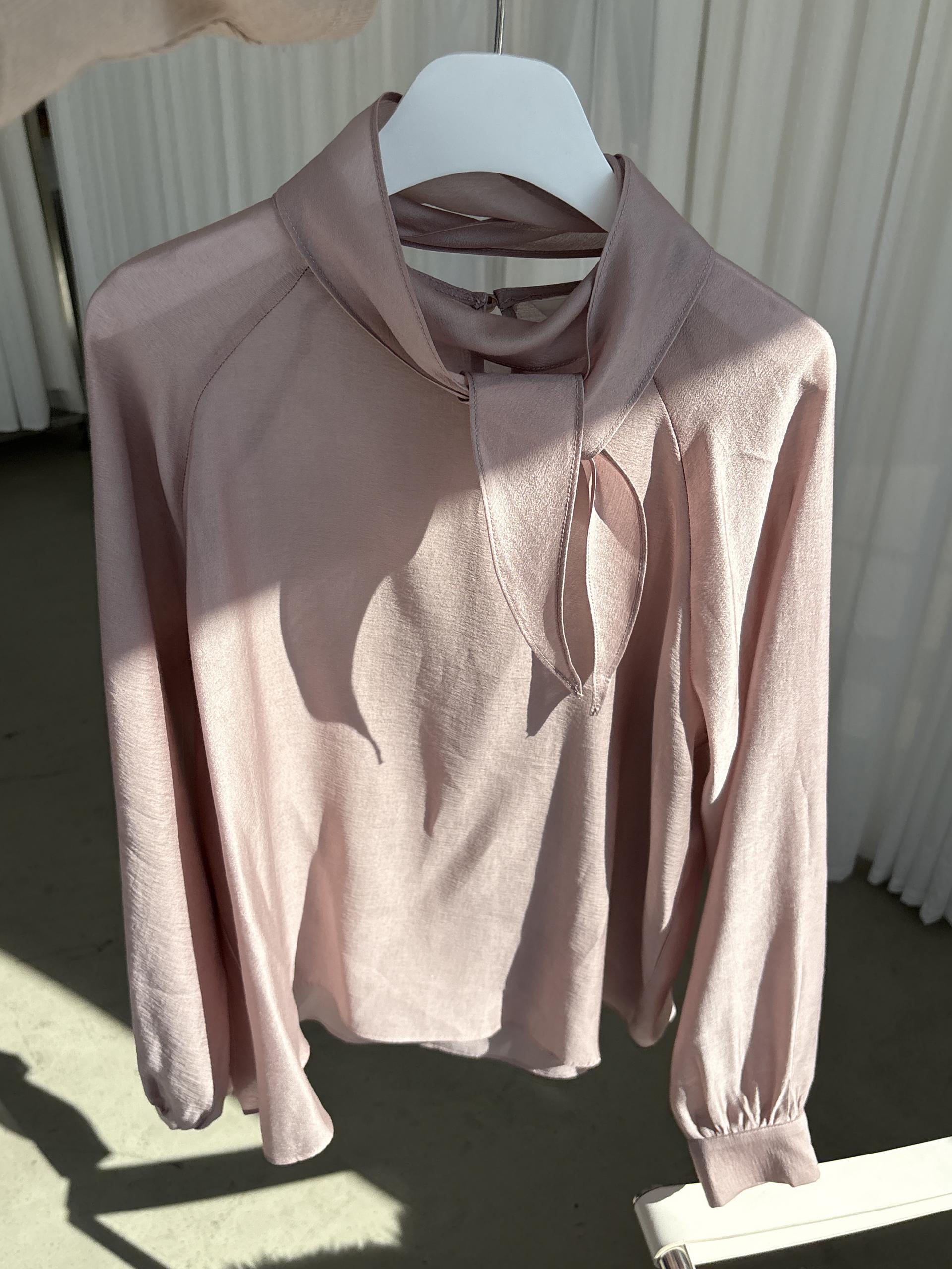부드럽게 흐르는 실크 터치의 타이 블라우스입니다.