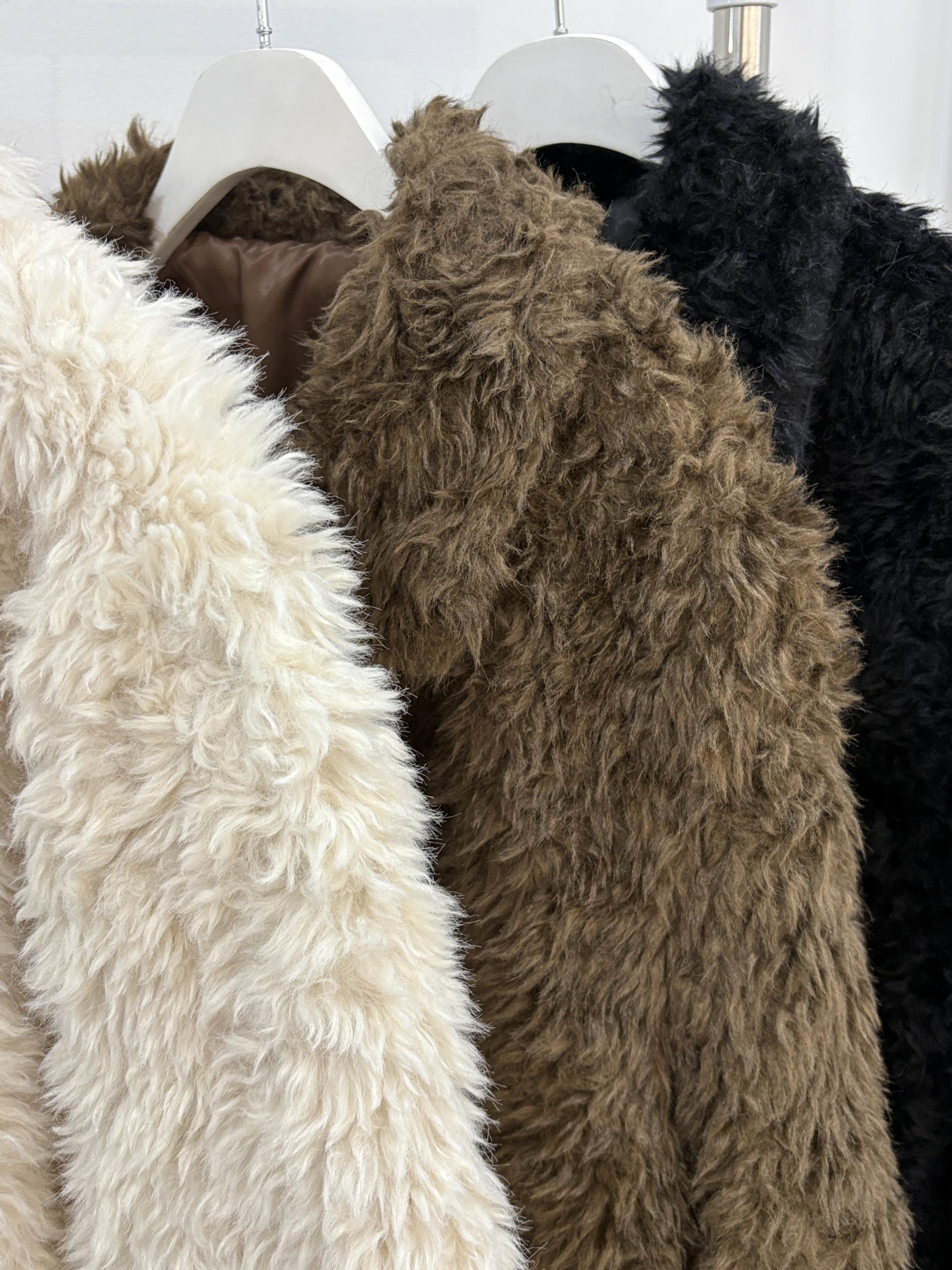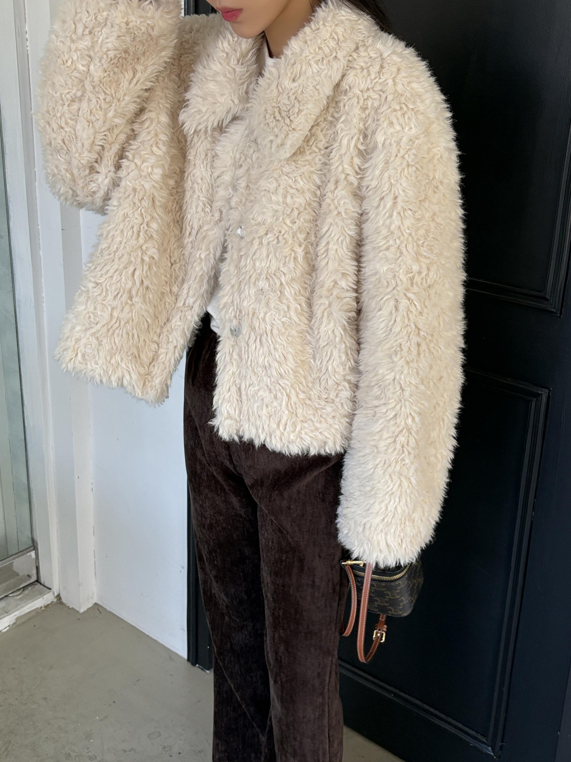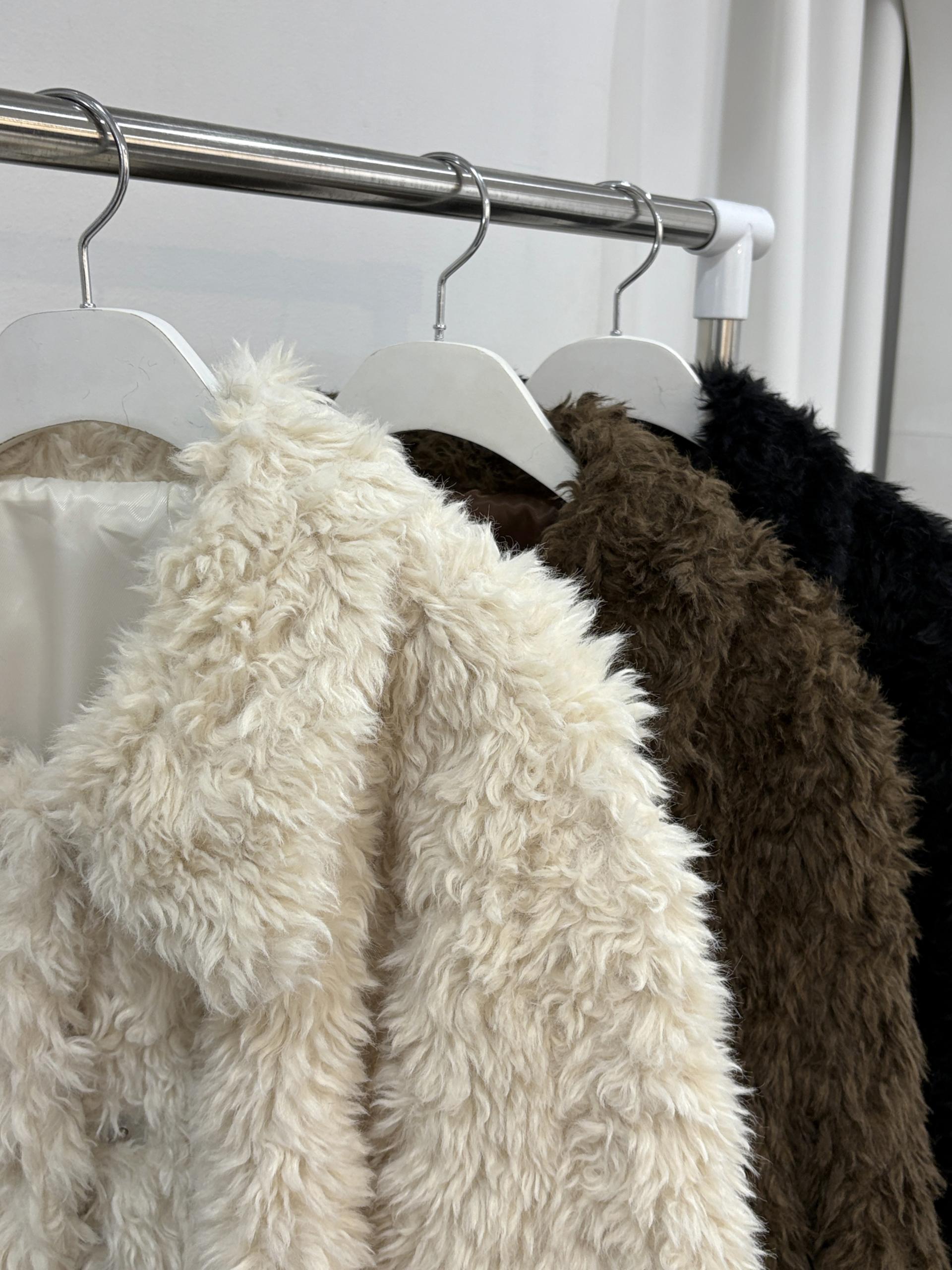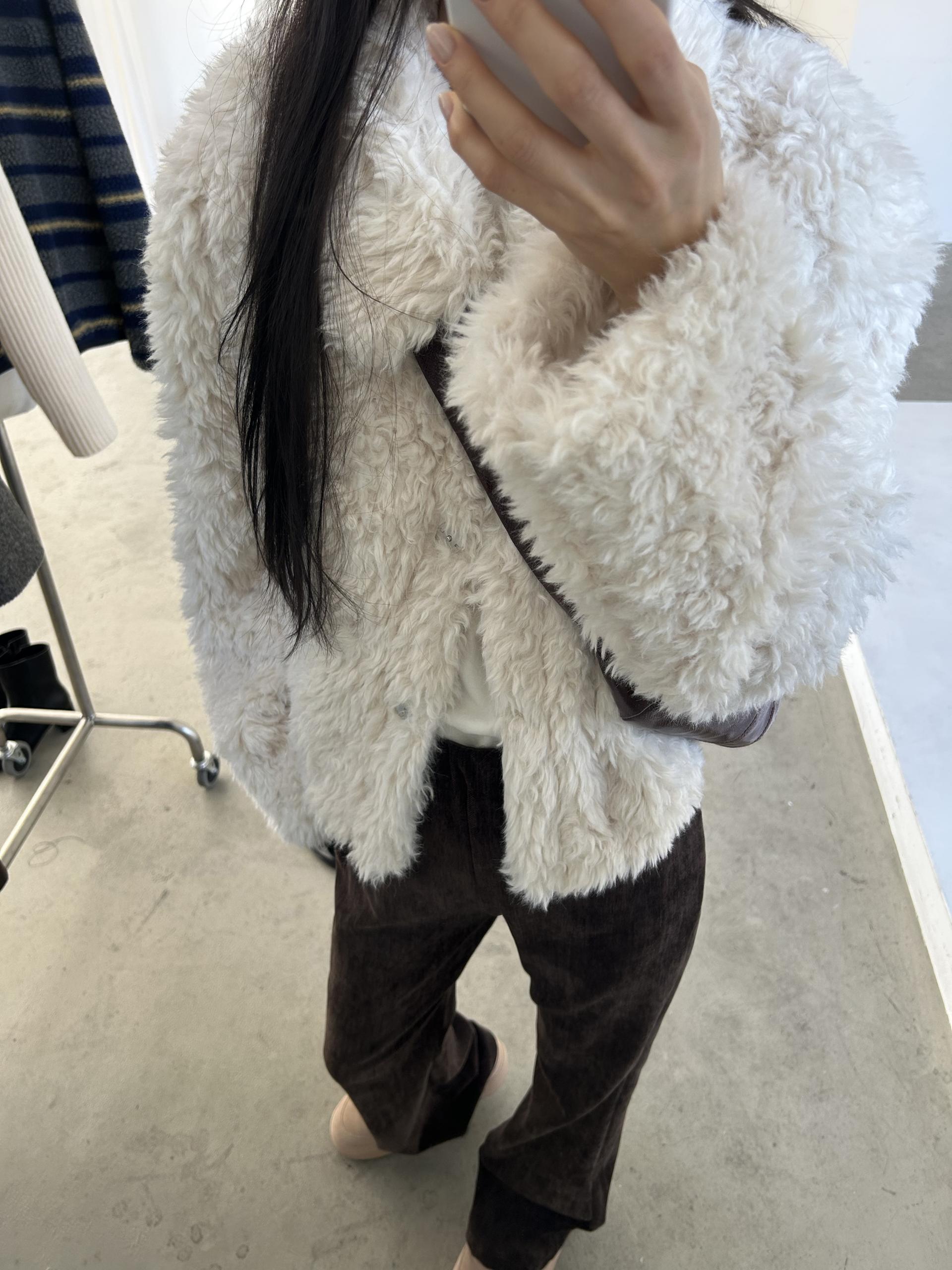 부드럽고 포근한 텍스처가 돋보이는 테디 페이크 퍼 자켓입니다.