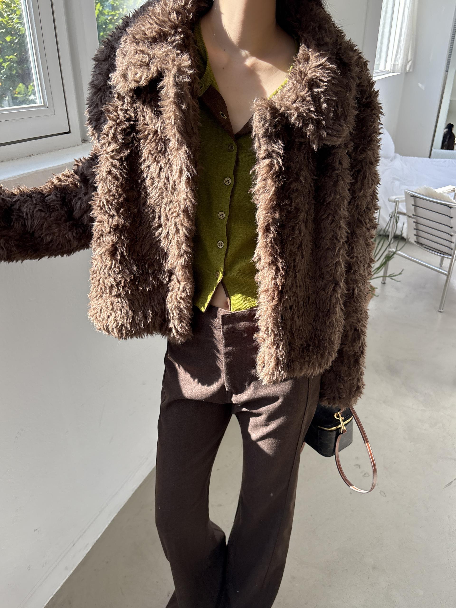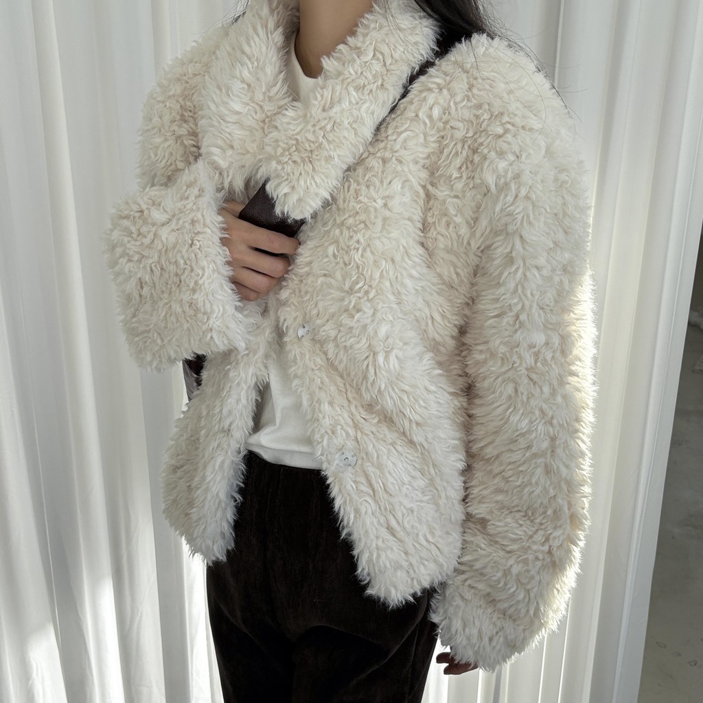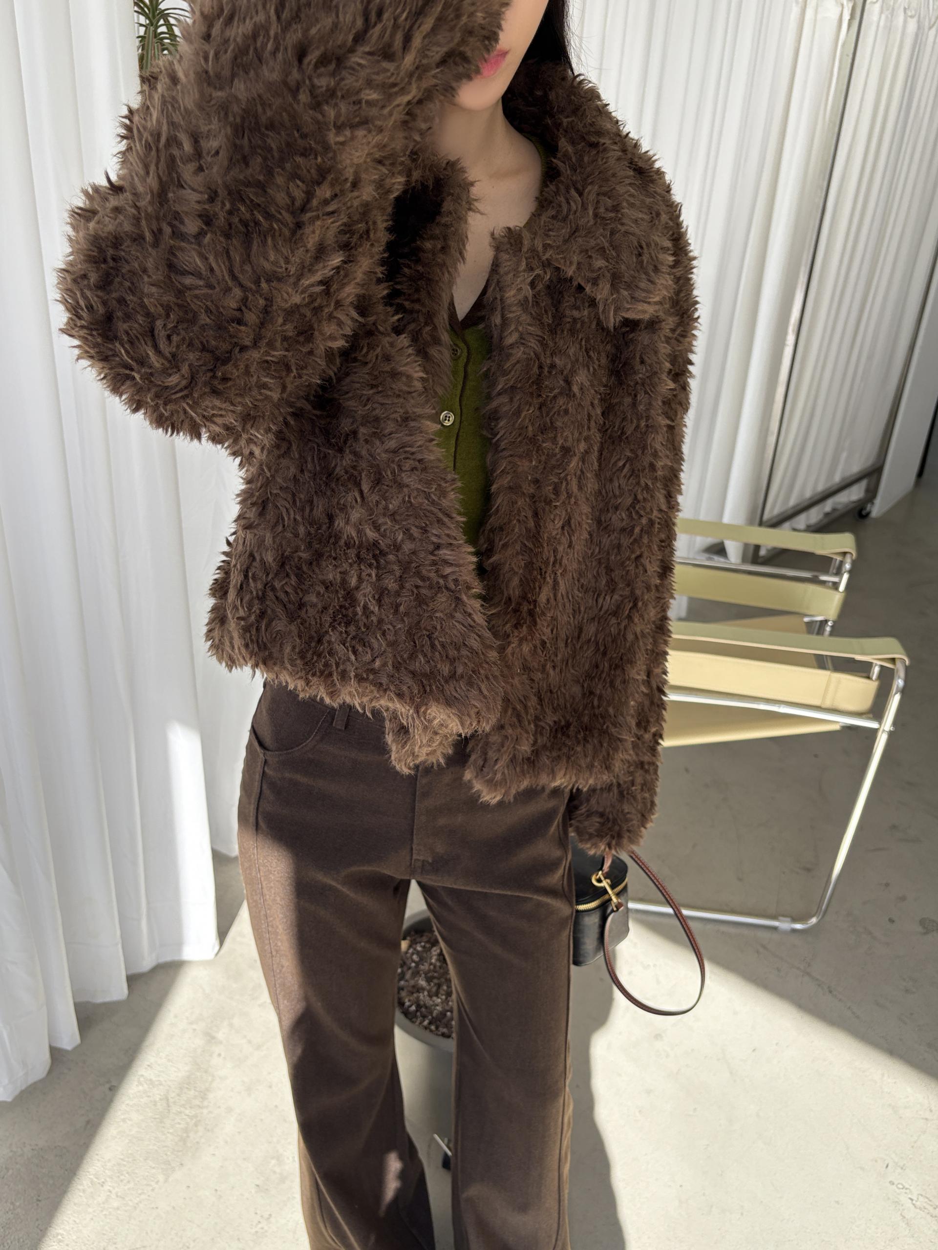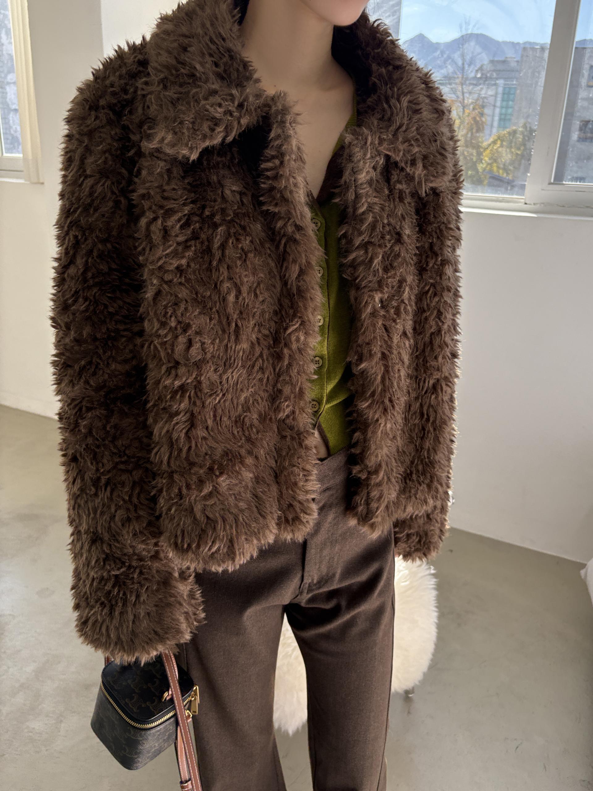 부드럽고 포근한 텍스처가 돋보이는 테디 페이크 퍼 자켓입니다.