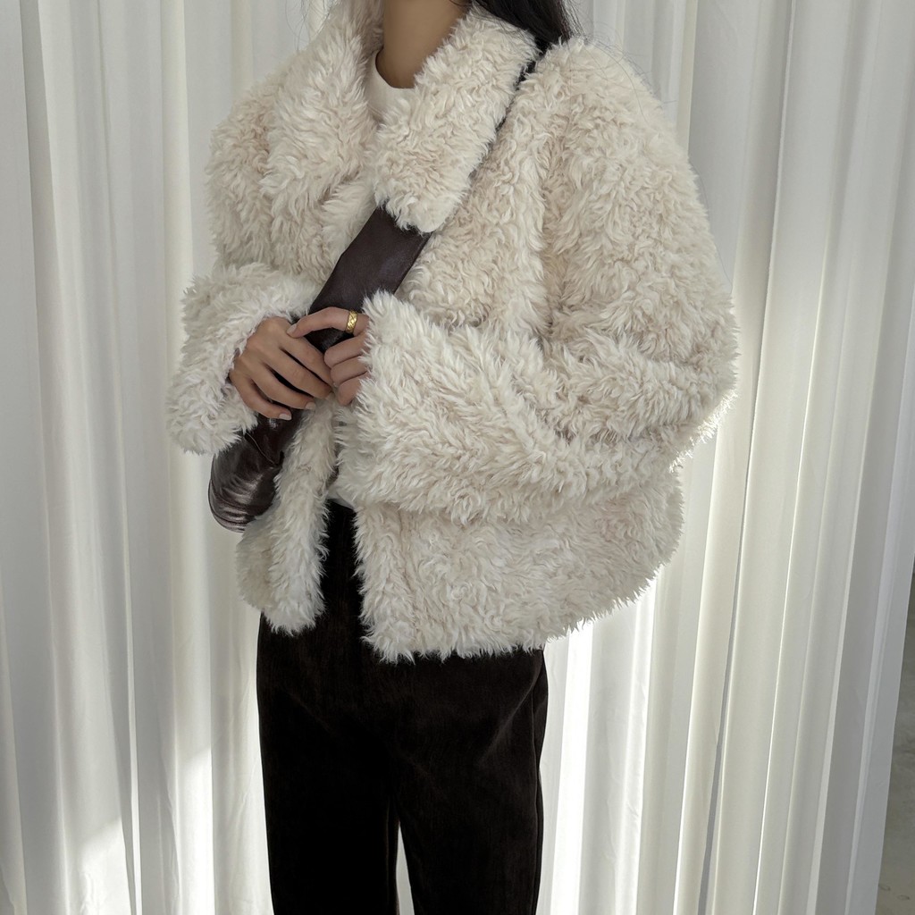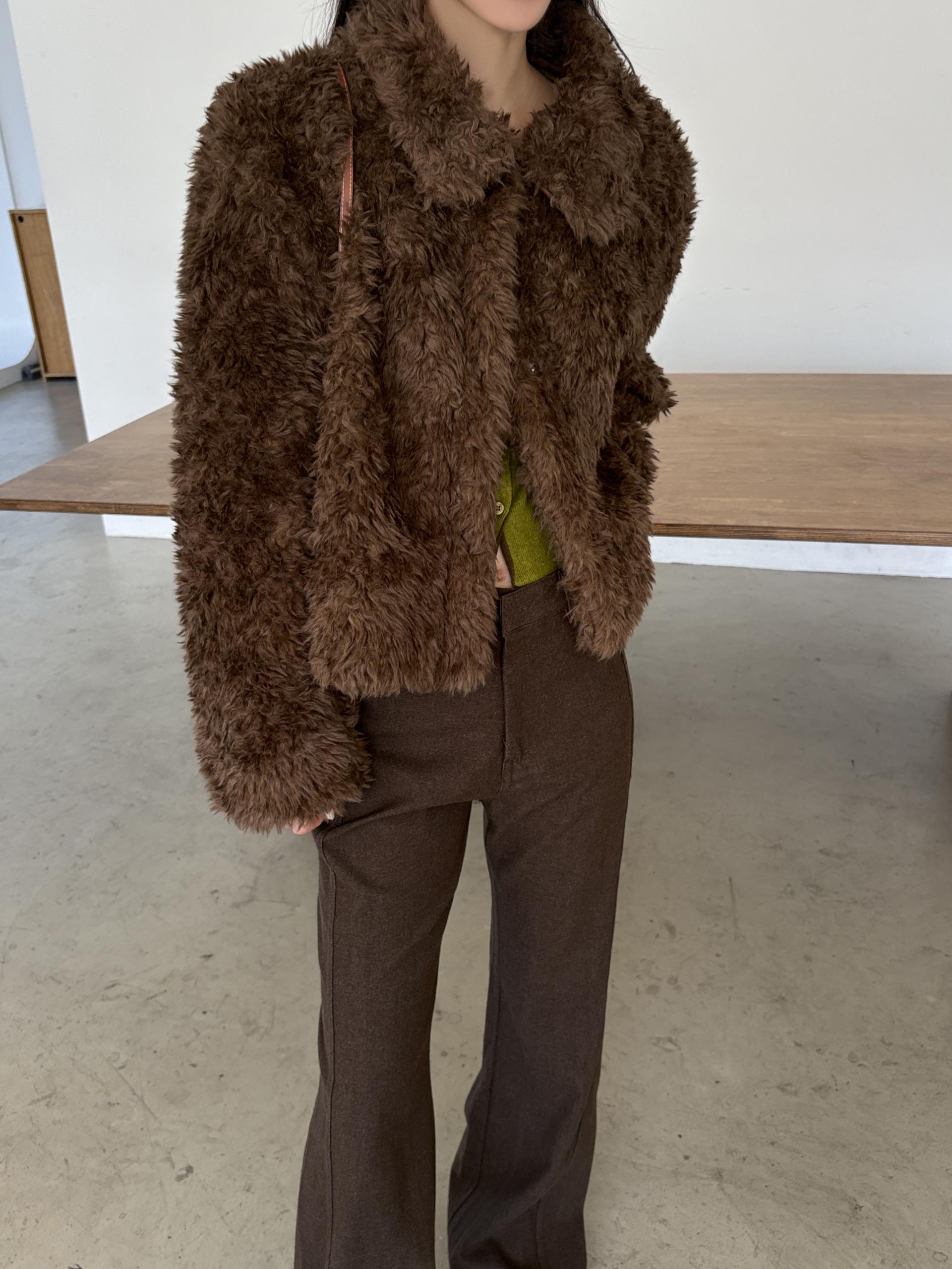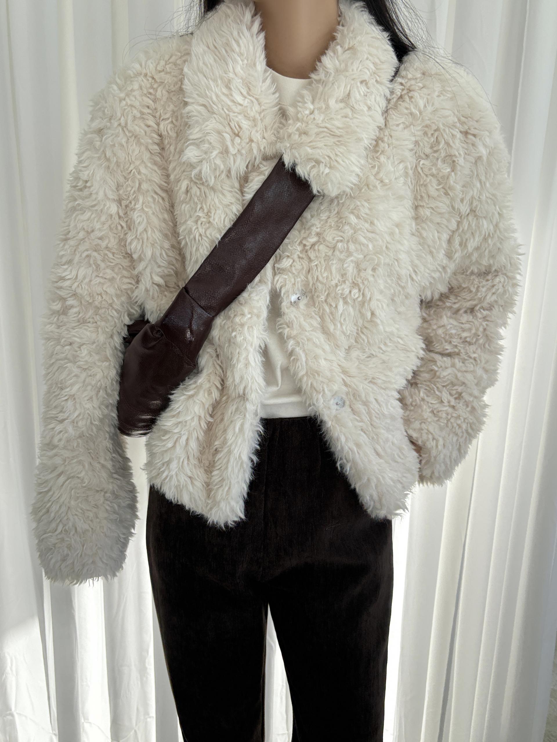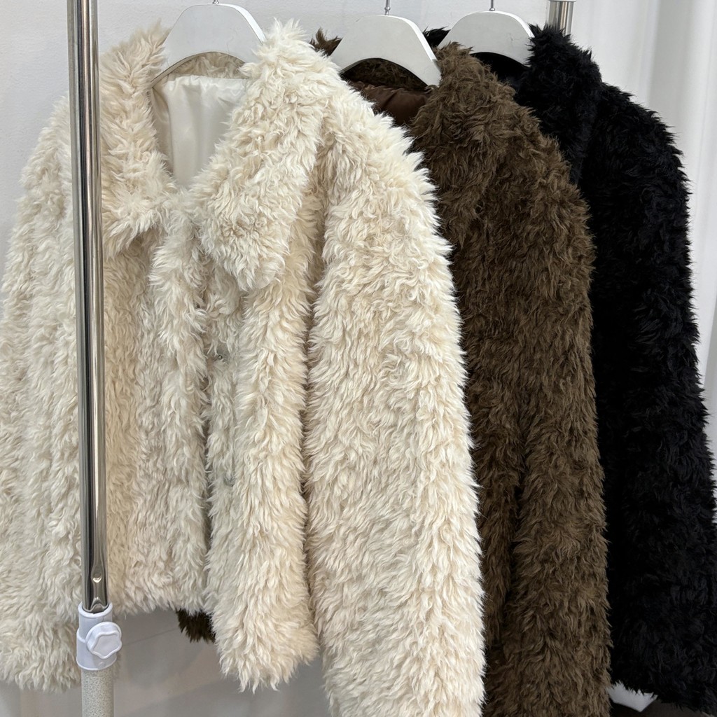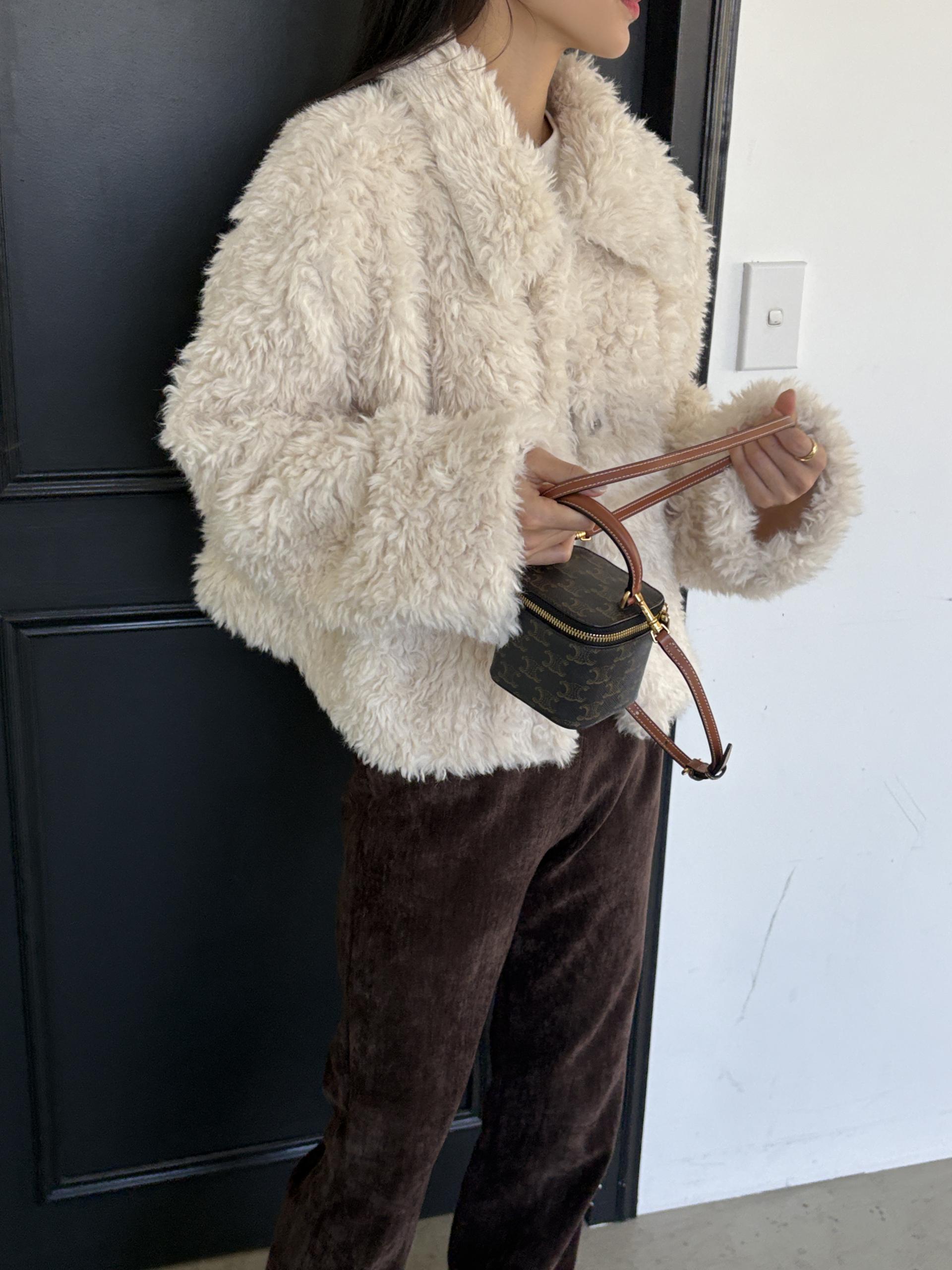 부드럽고 포근한 텍스처가 돋보이는 테디 페이크 퍼 자켓입니다.