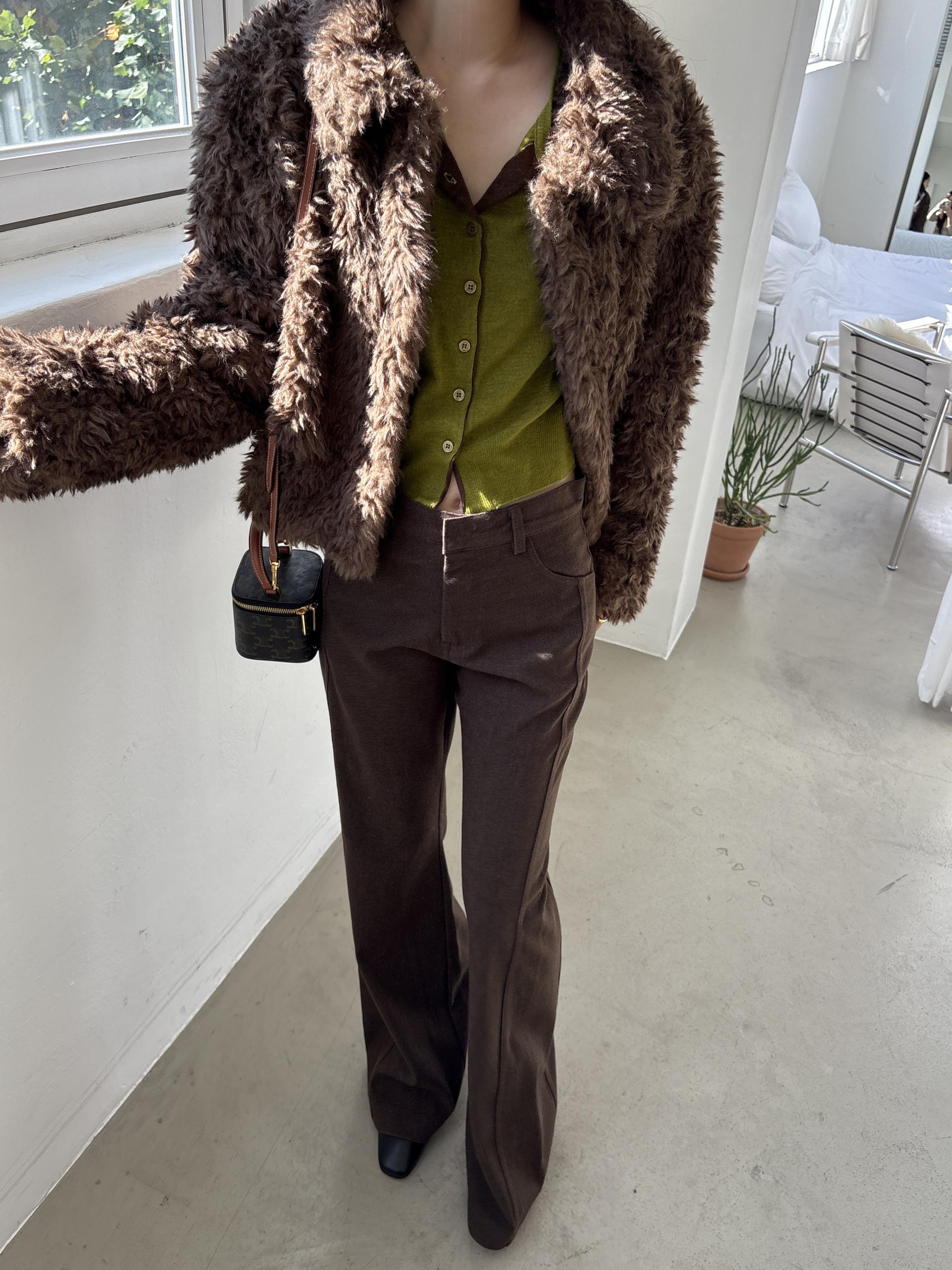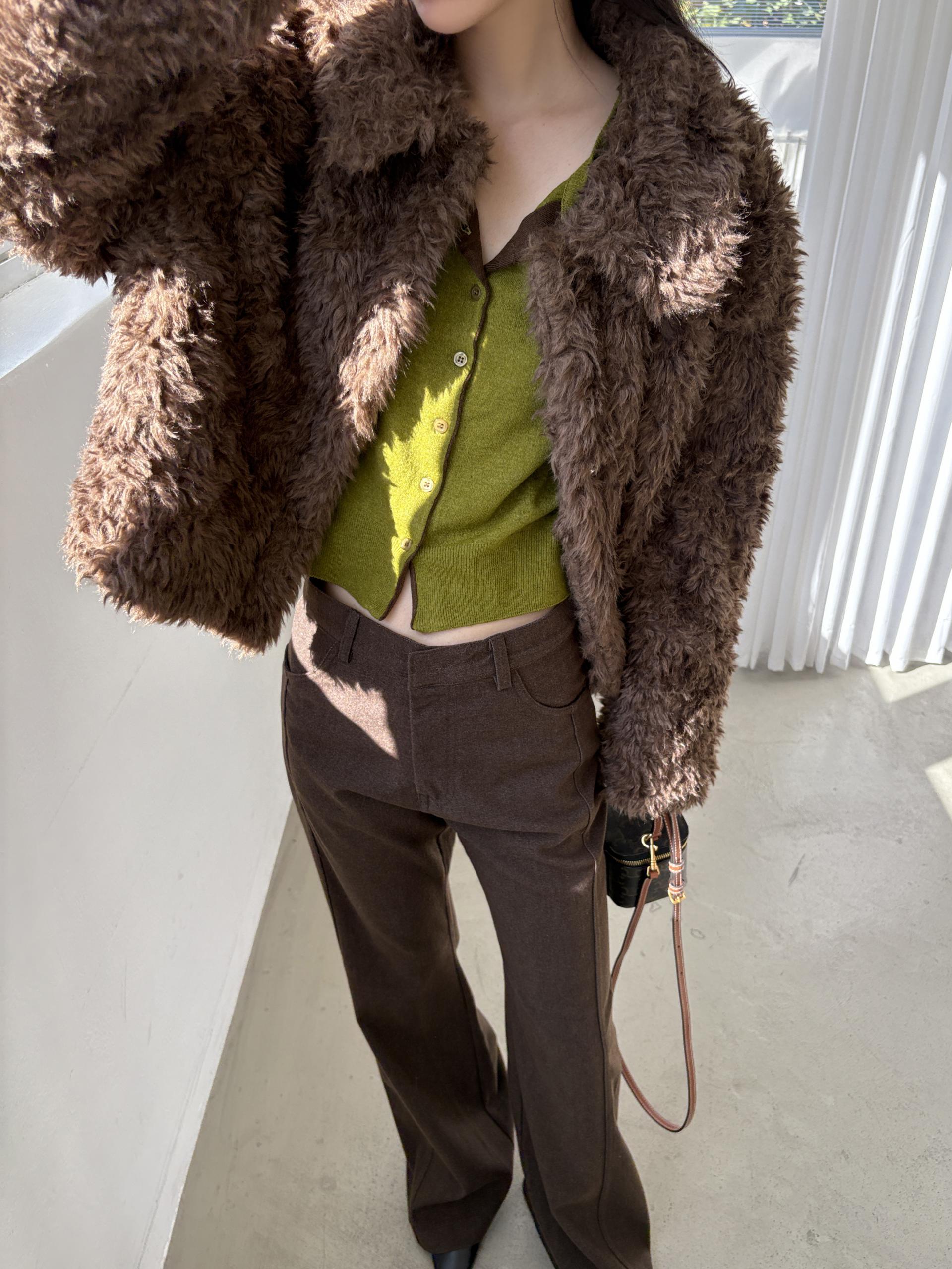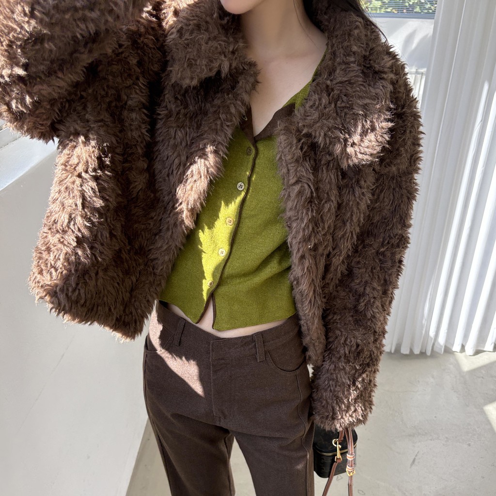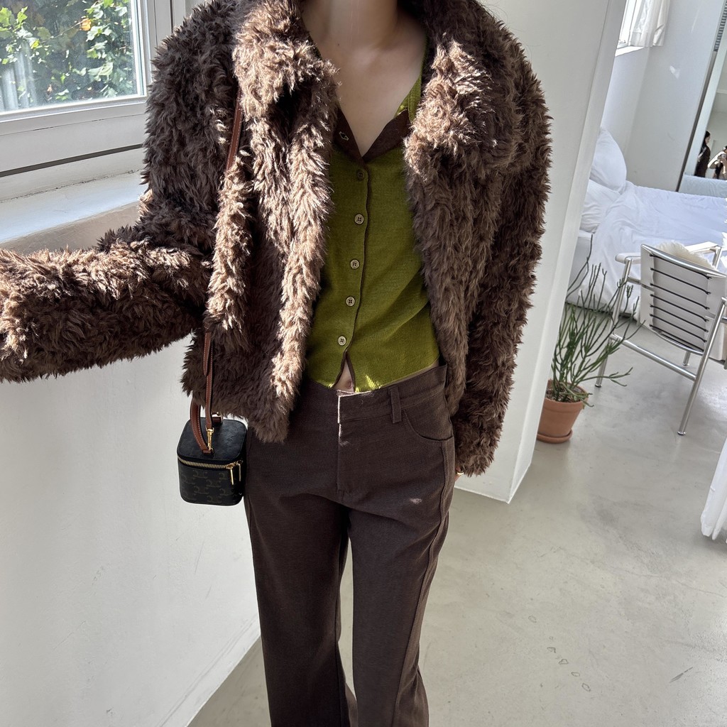 부드럽고 포근한 텍스처가 돋보이는 테디 페이크 퍼 자켓입니다.