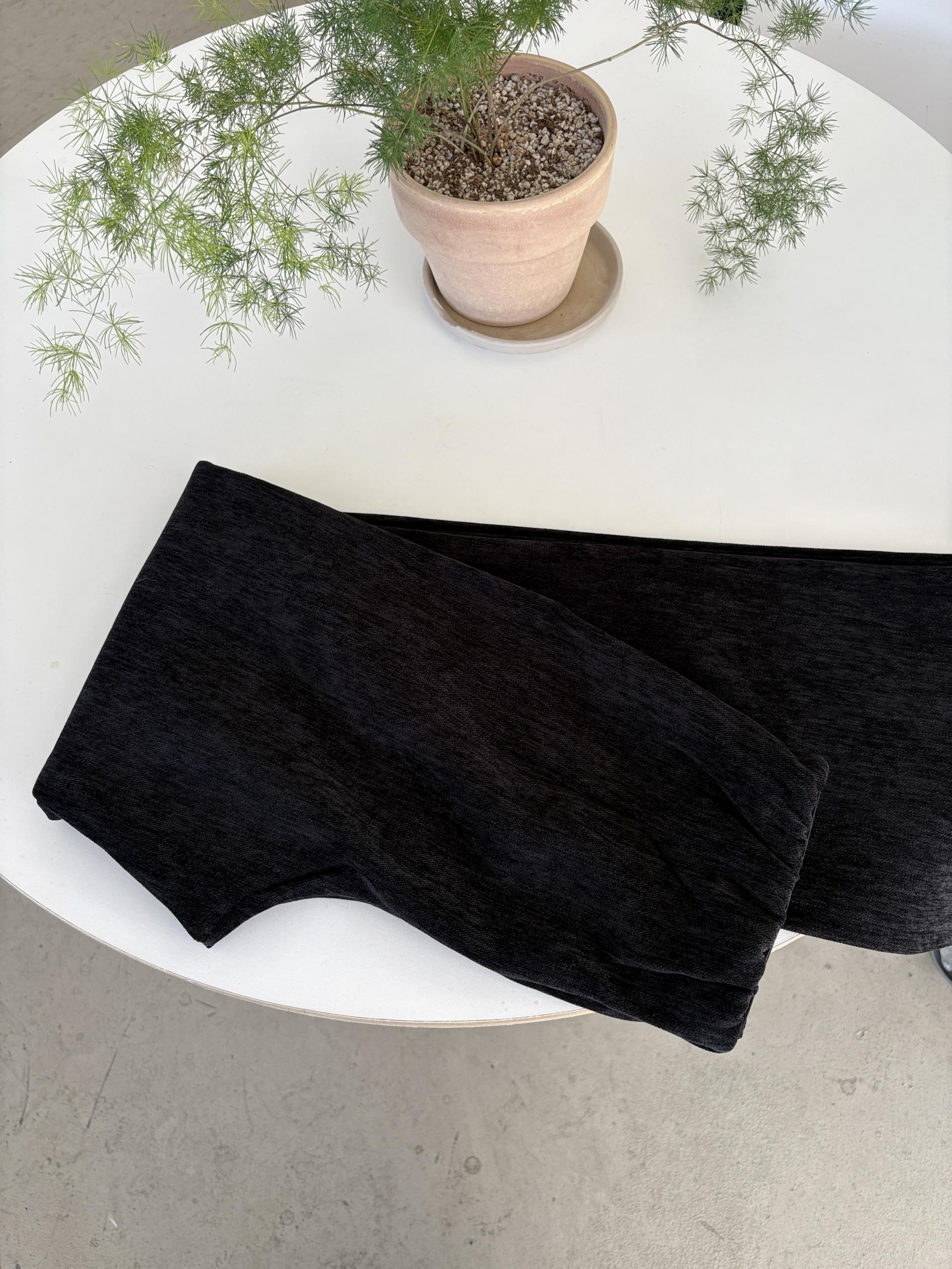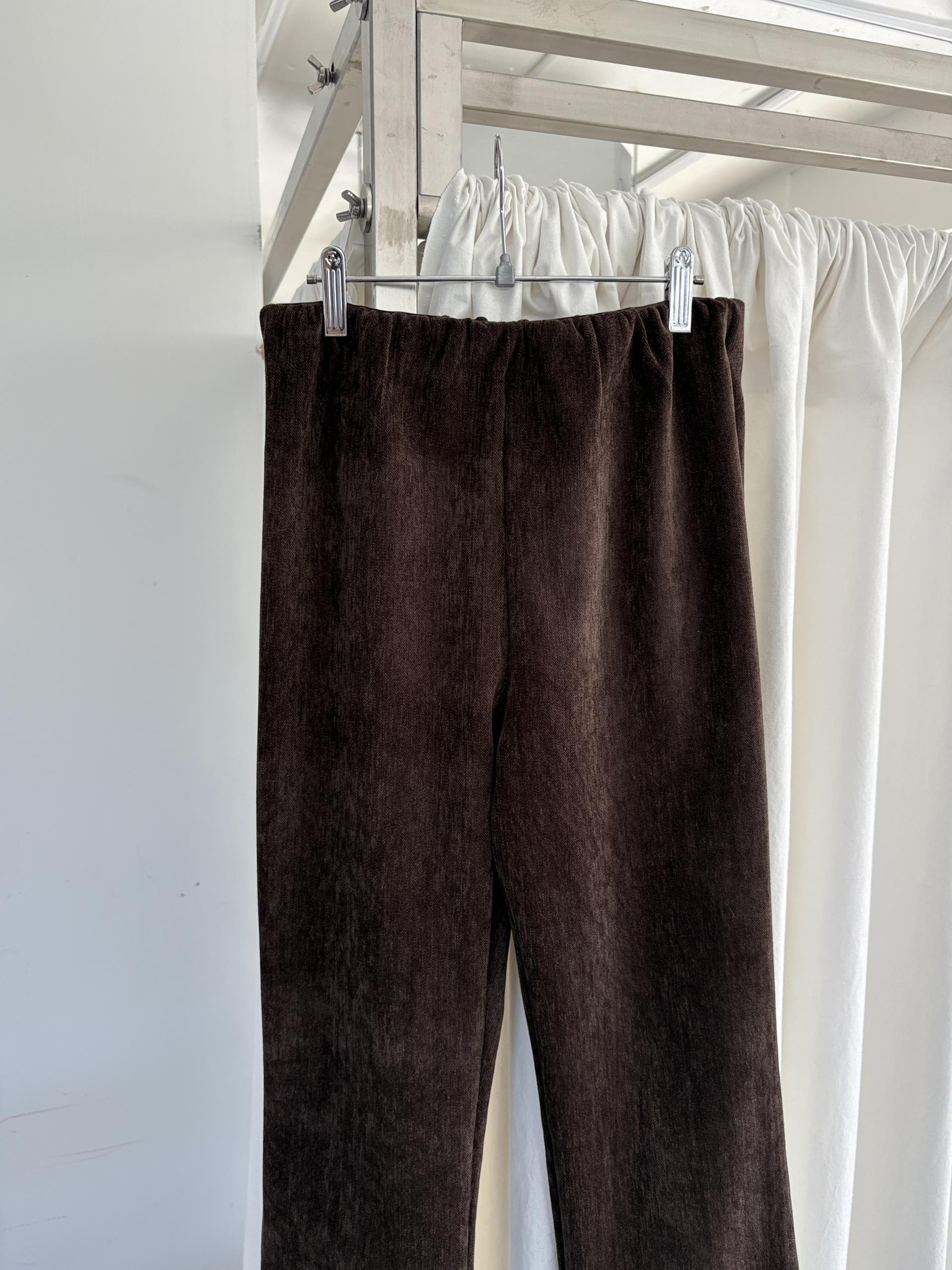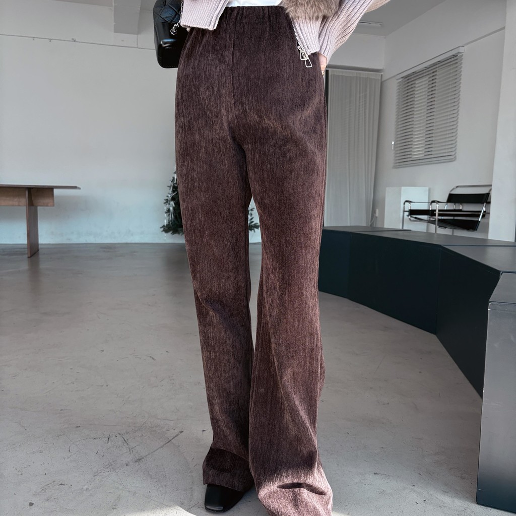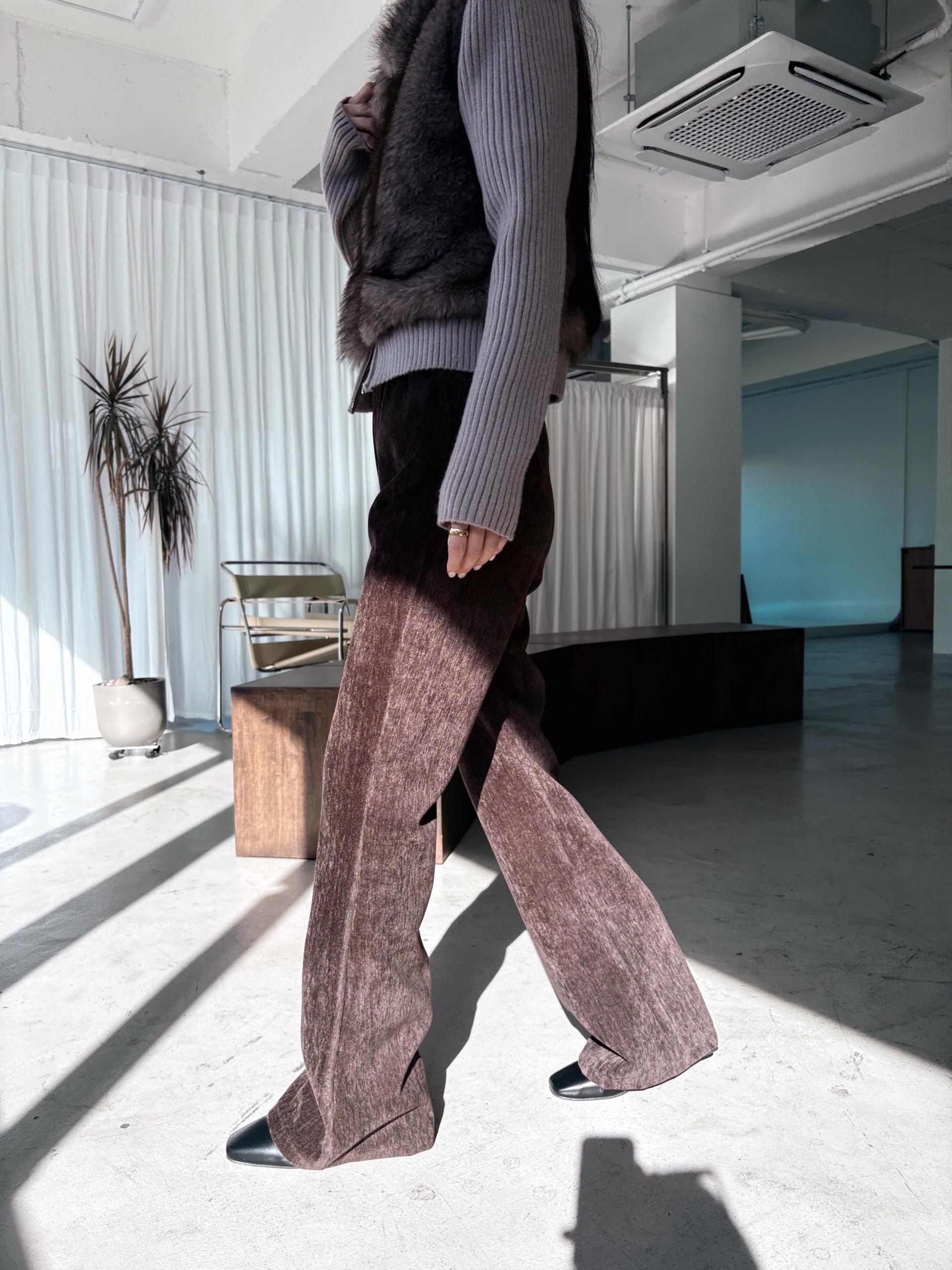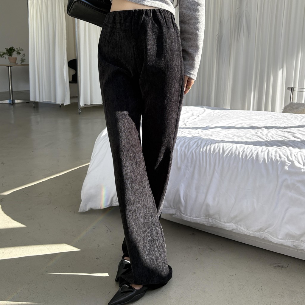 은은한 광택과 부드러운 텍스처가 돋보이는 부츠컷 실루엣의 롱 팬츠입니다.