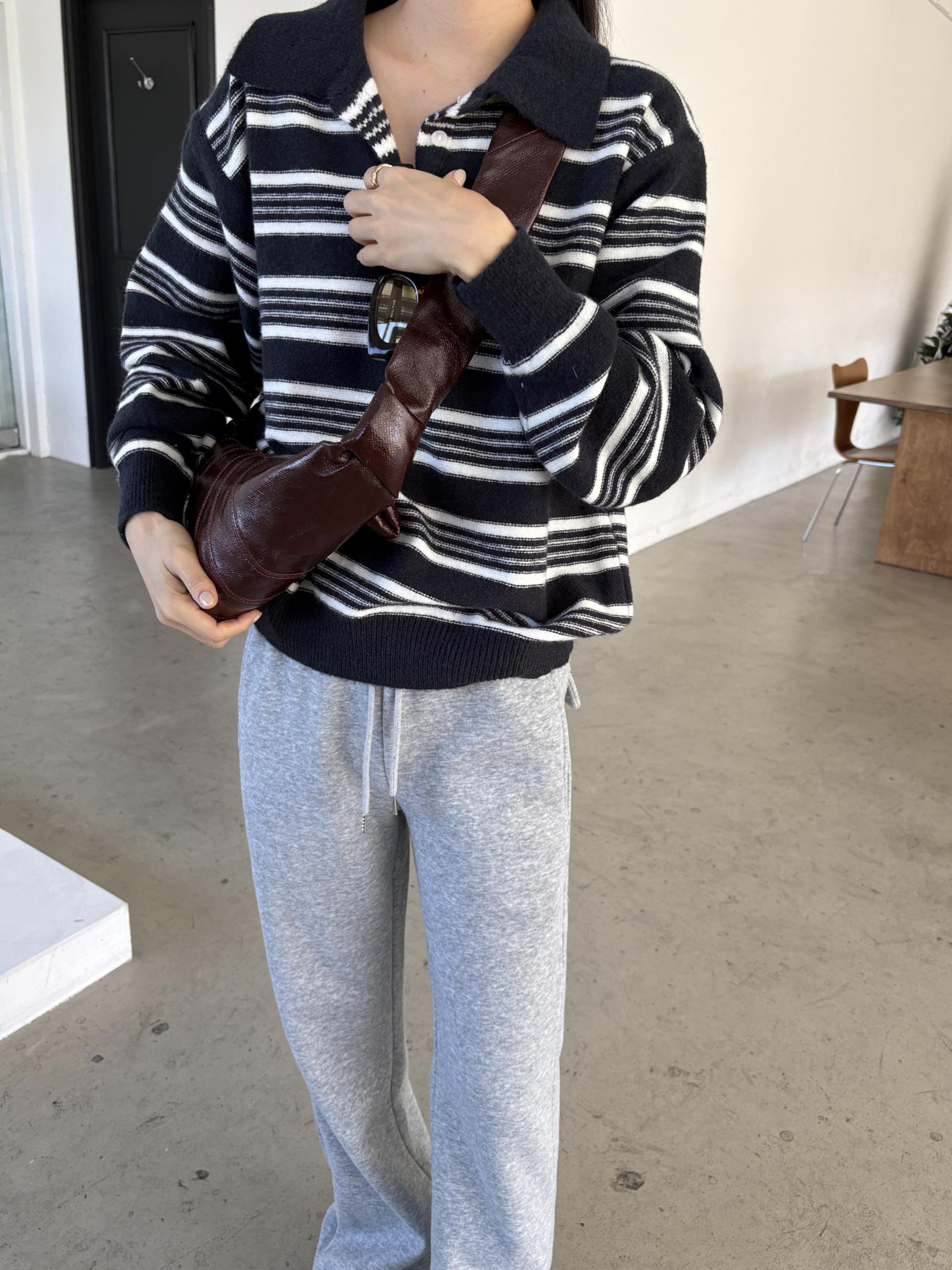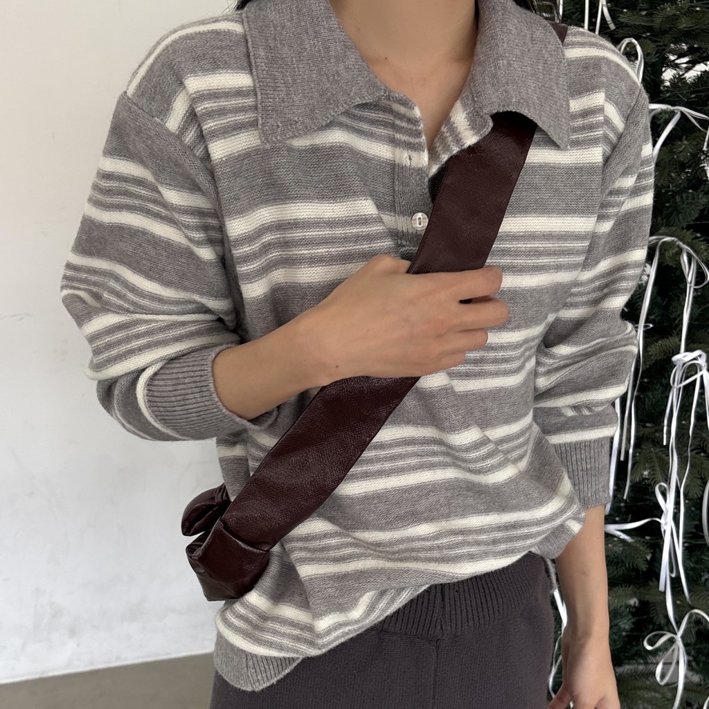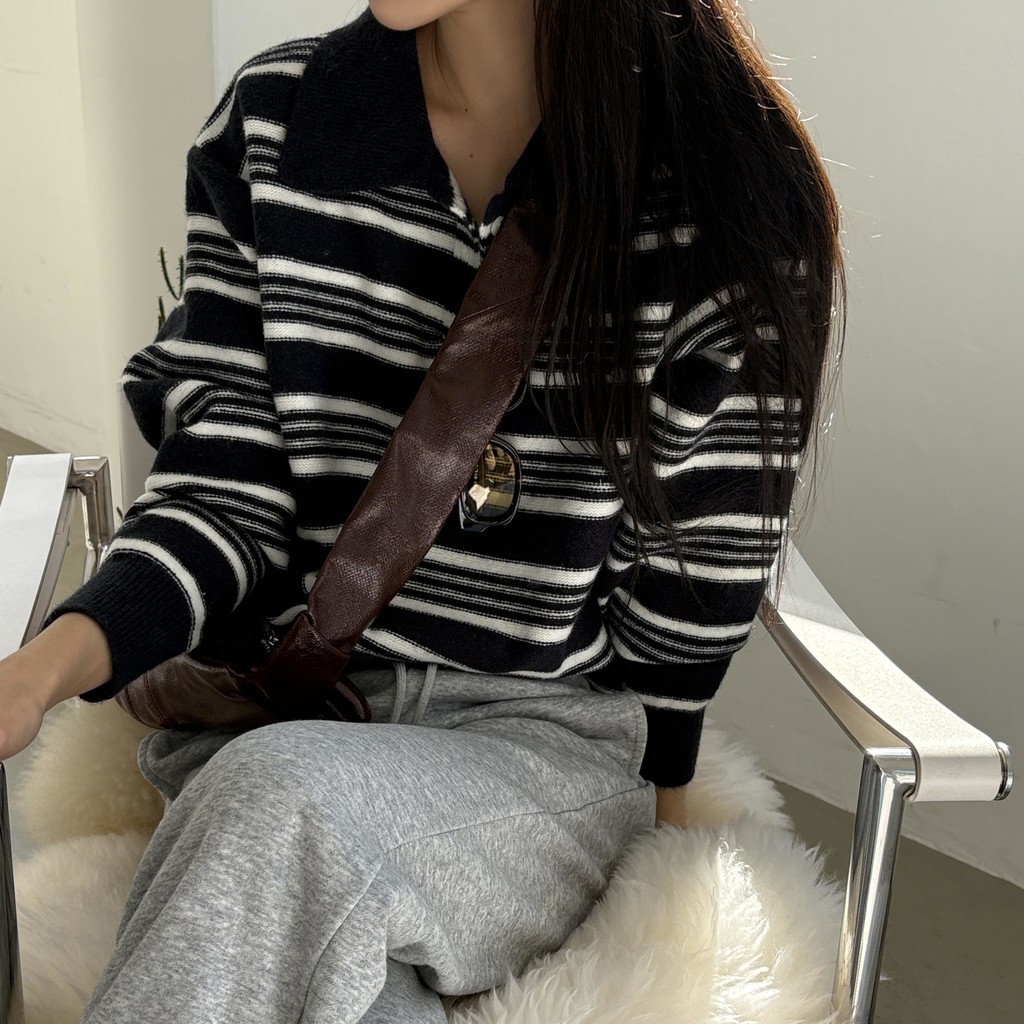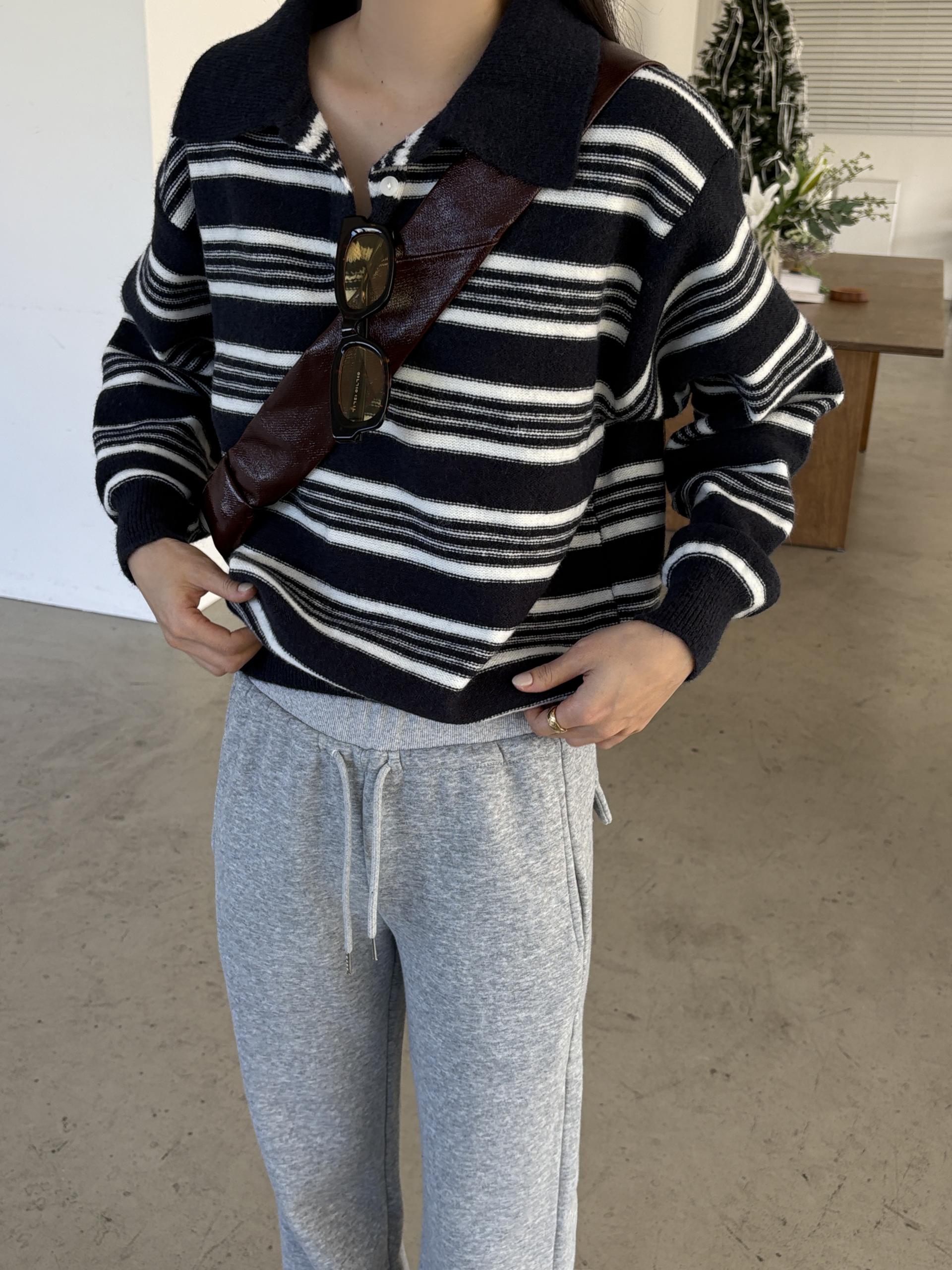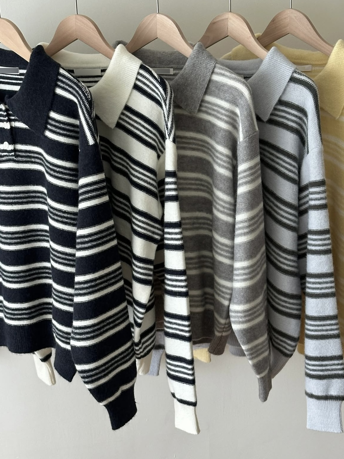 데일리로 자꾸 손이 가는 스트라이프 카라 니트입니다.