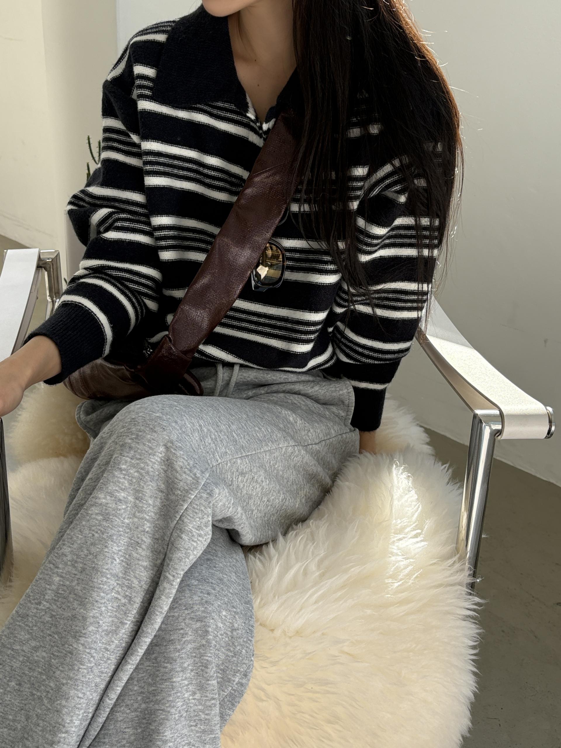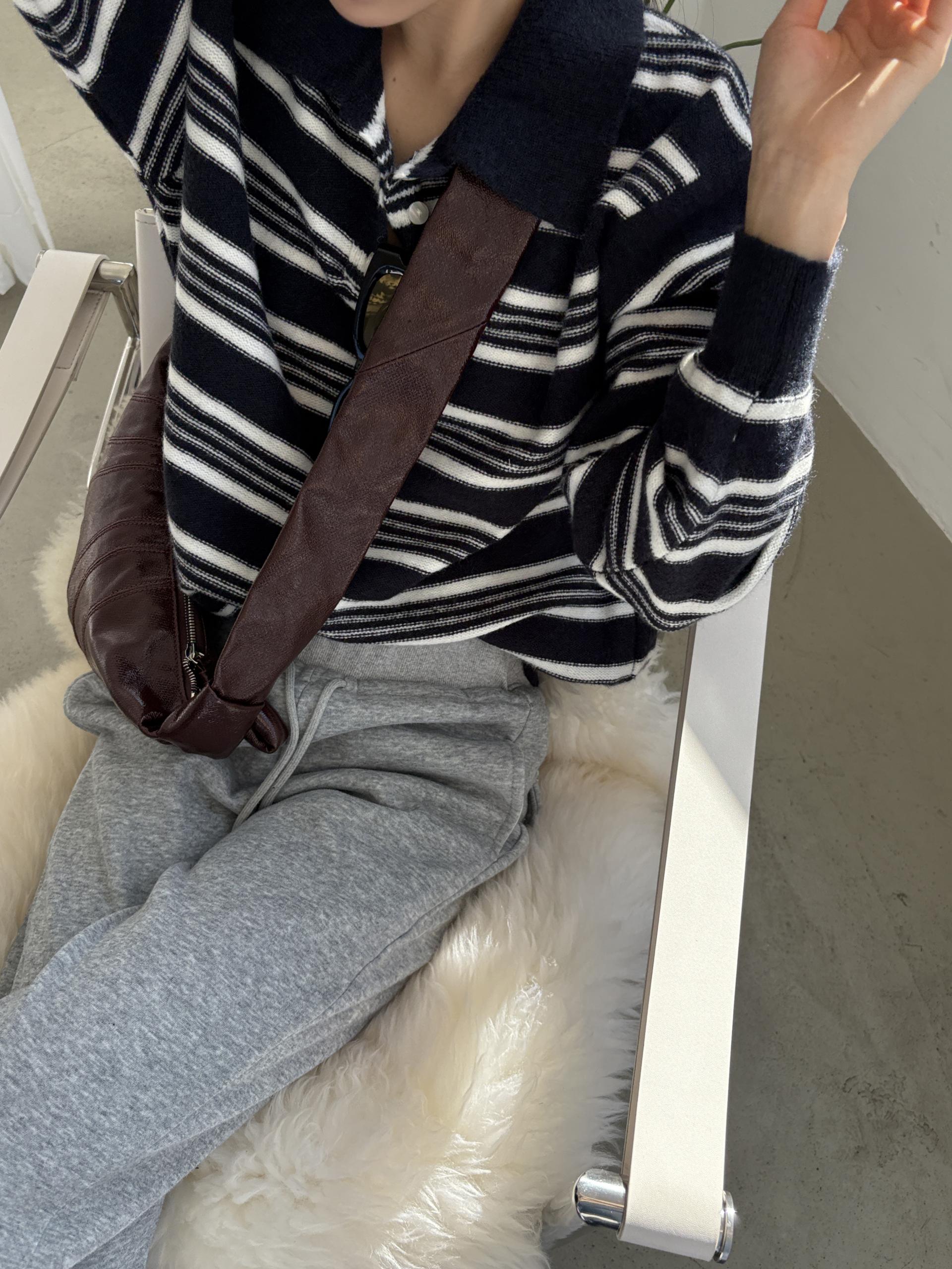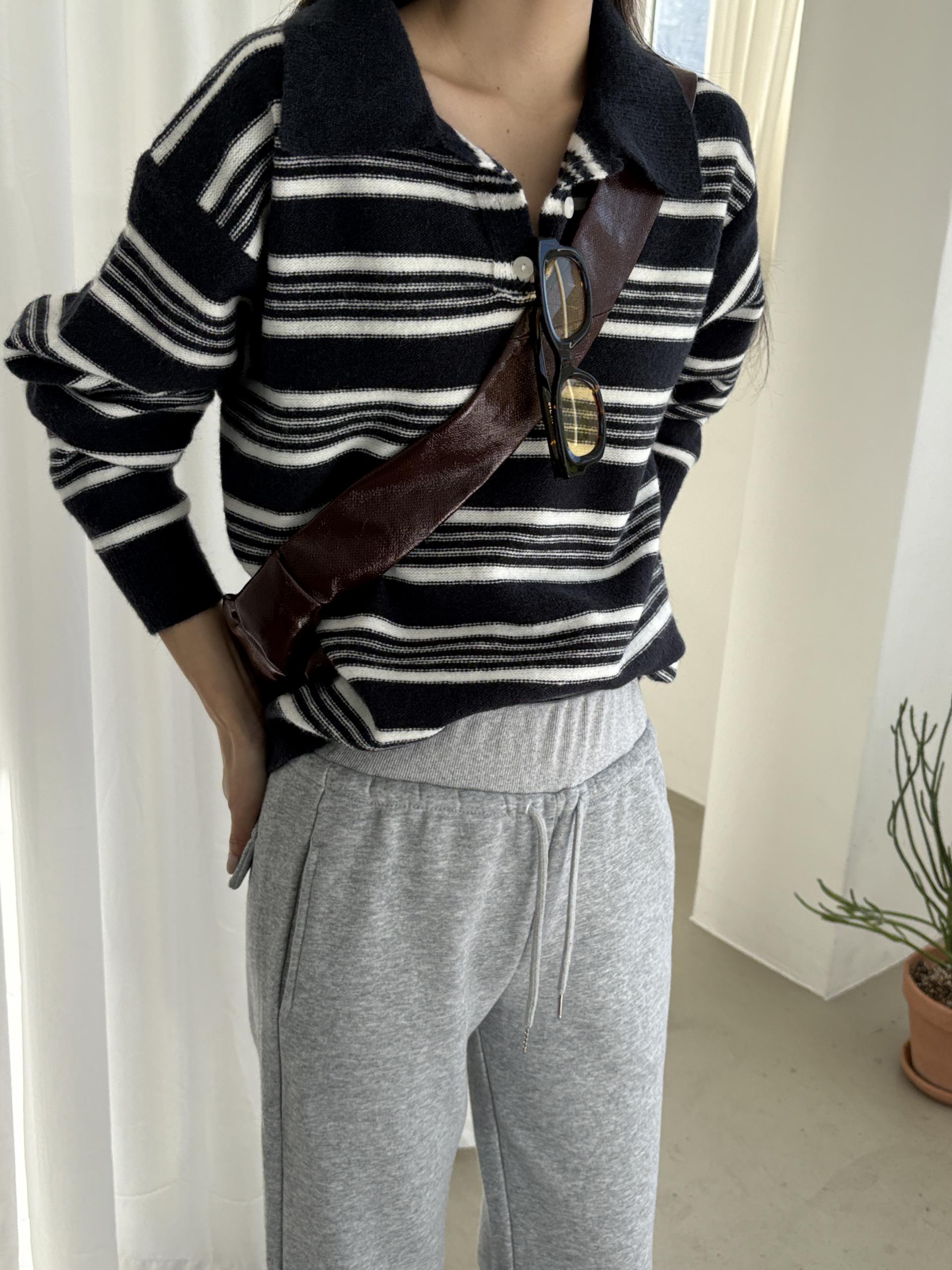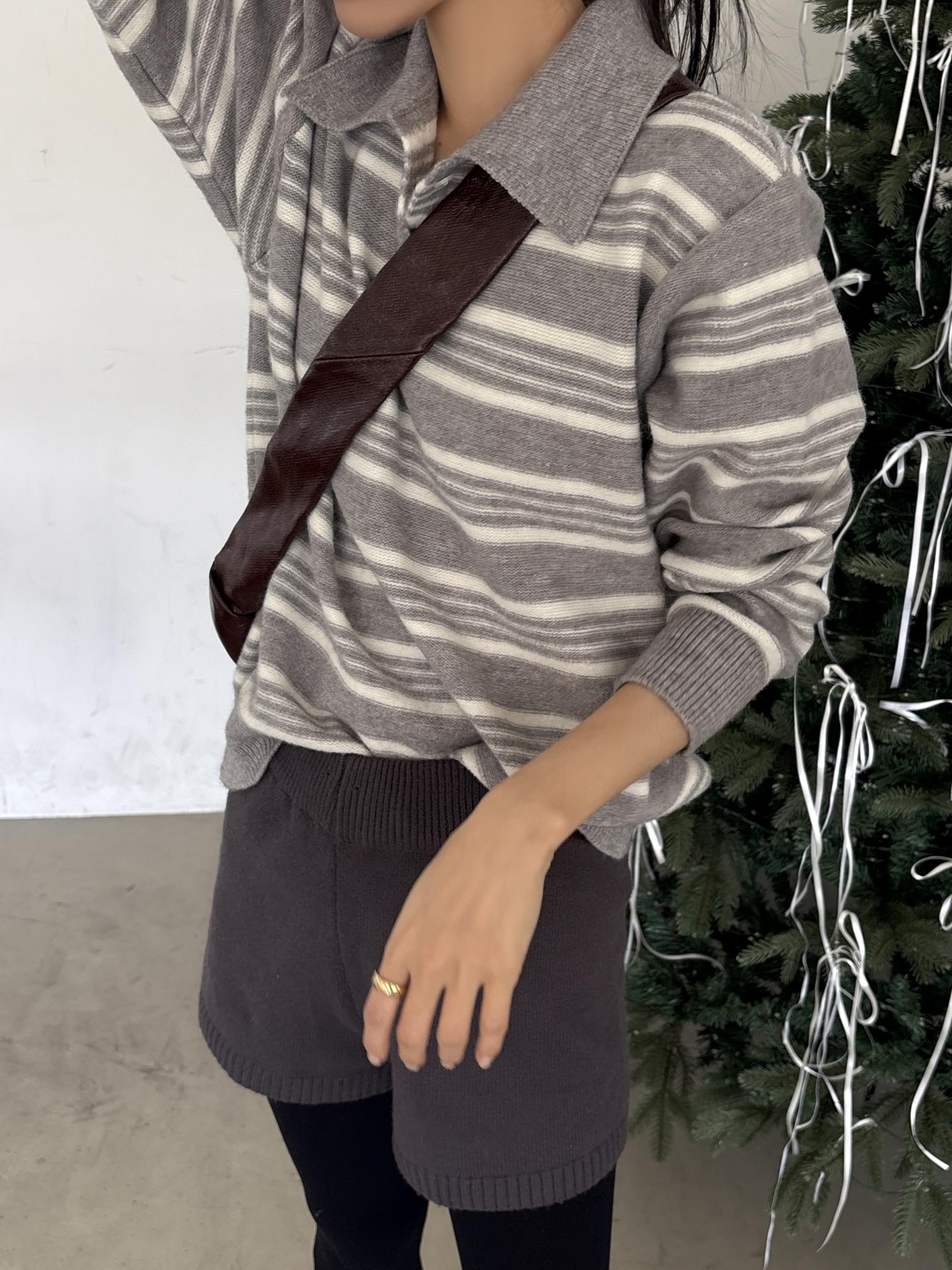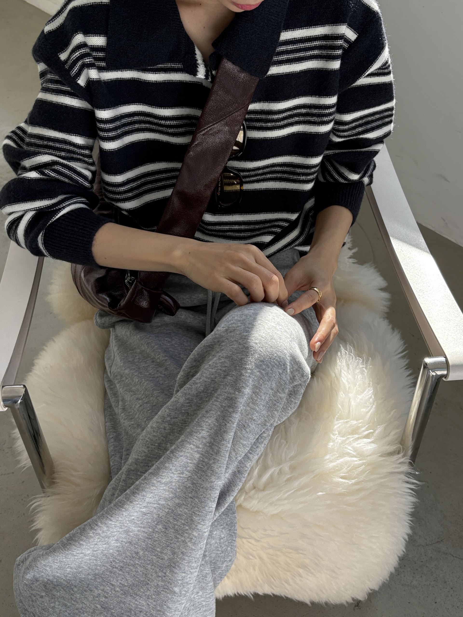 데일리로 자꾸 손이 가는 스트라이프 카라 니트입니다.