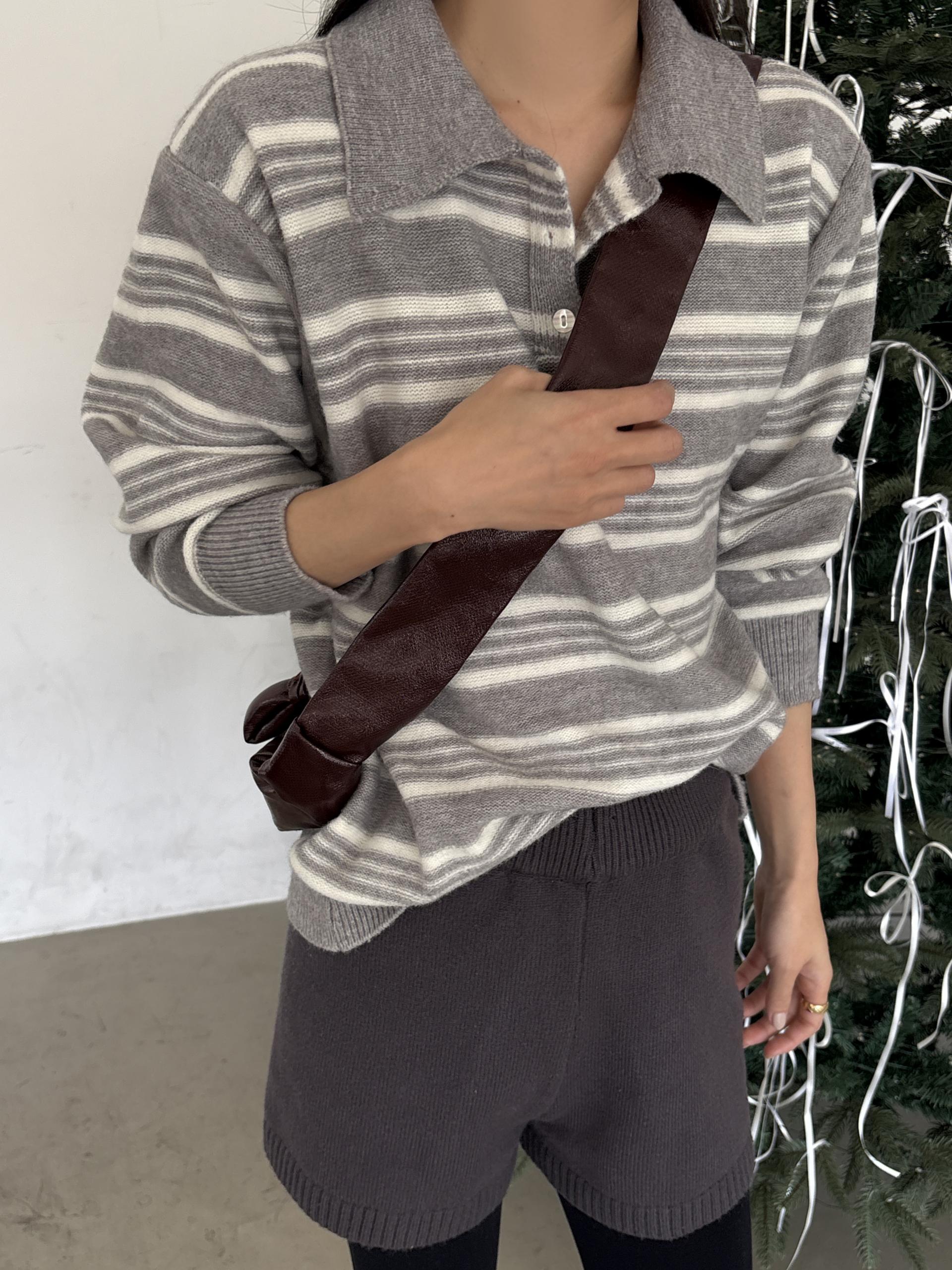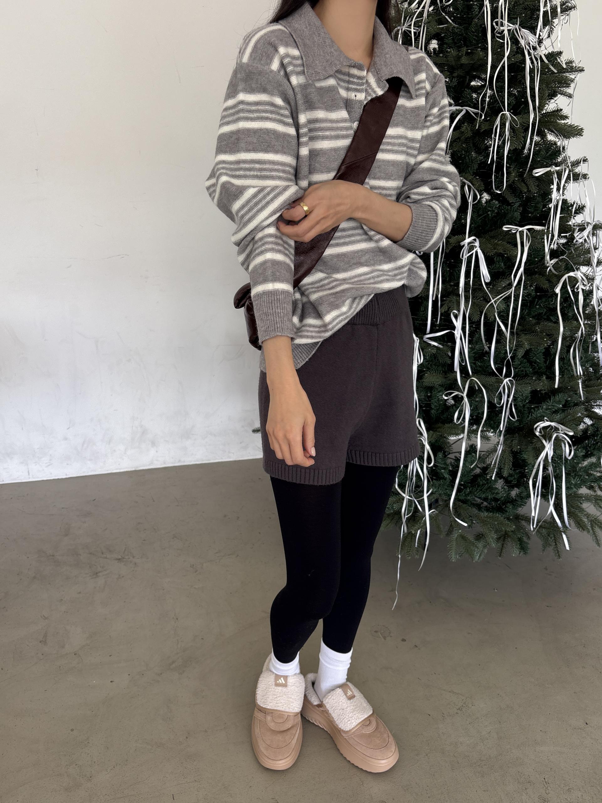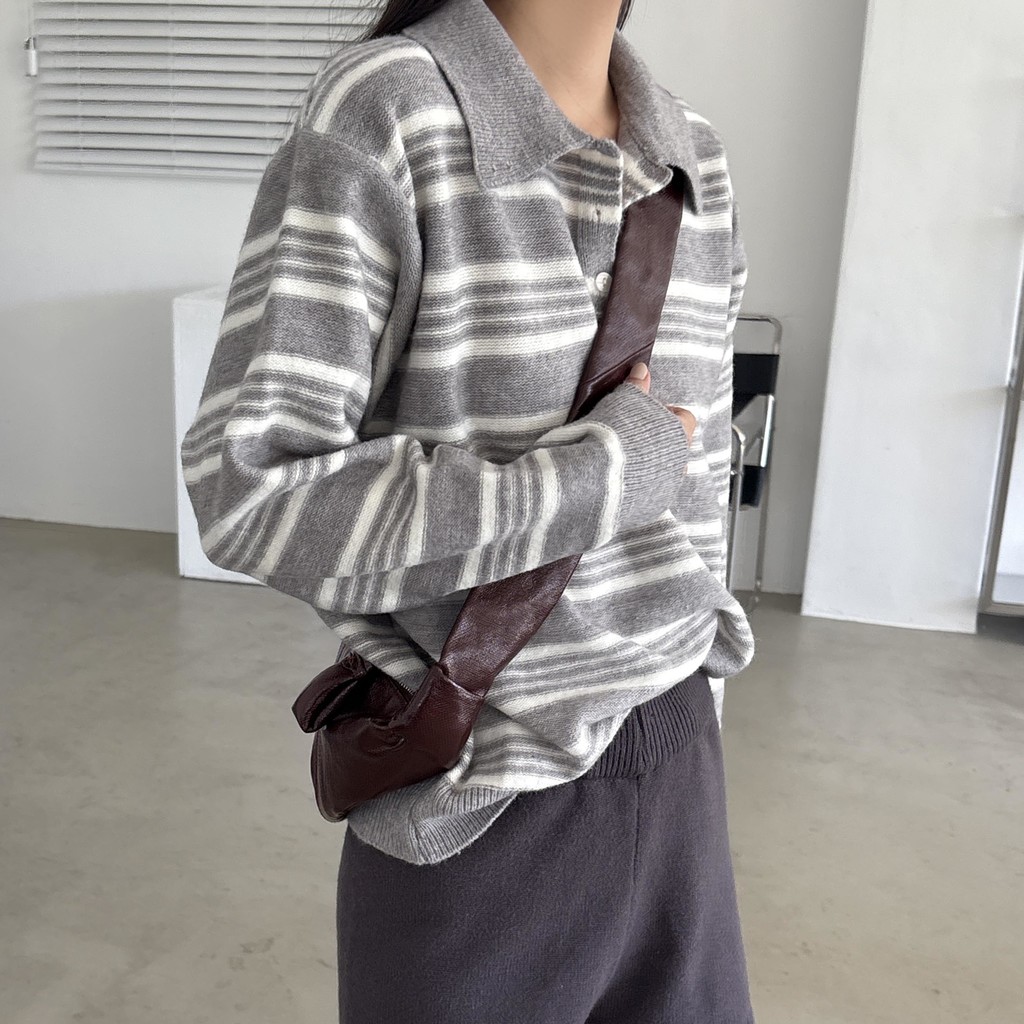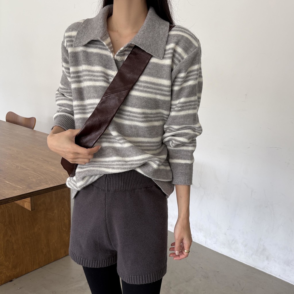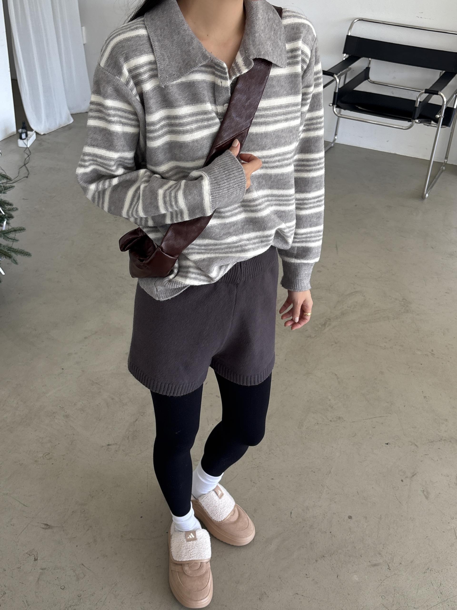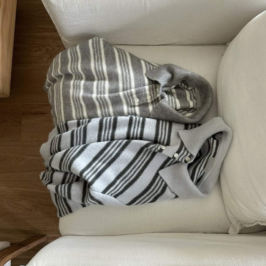 데일리로 자꾸 손이 가는 스트라이프 카라 니트입니다.