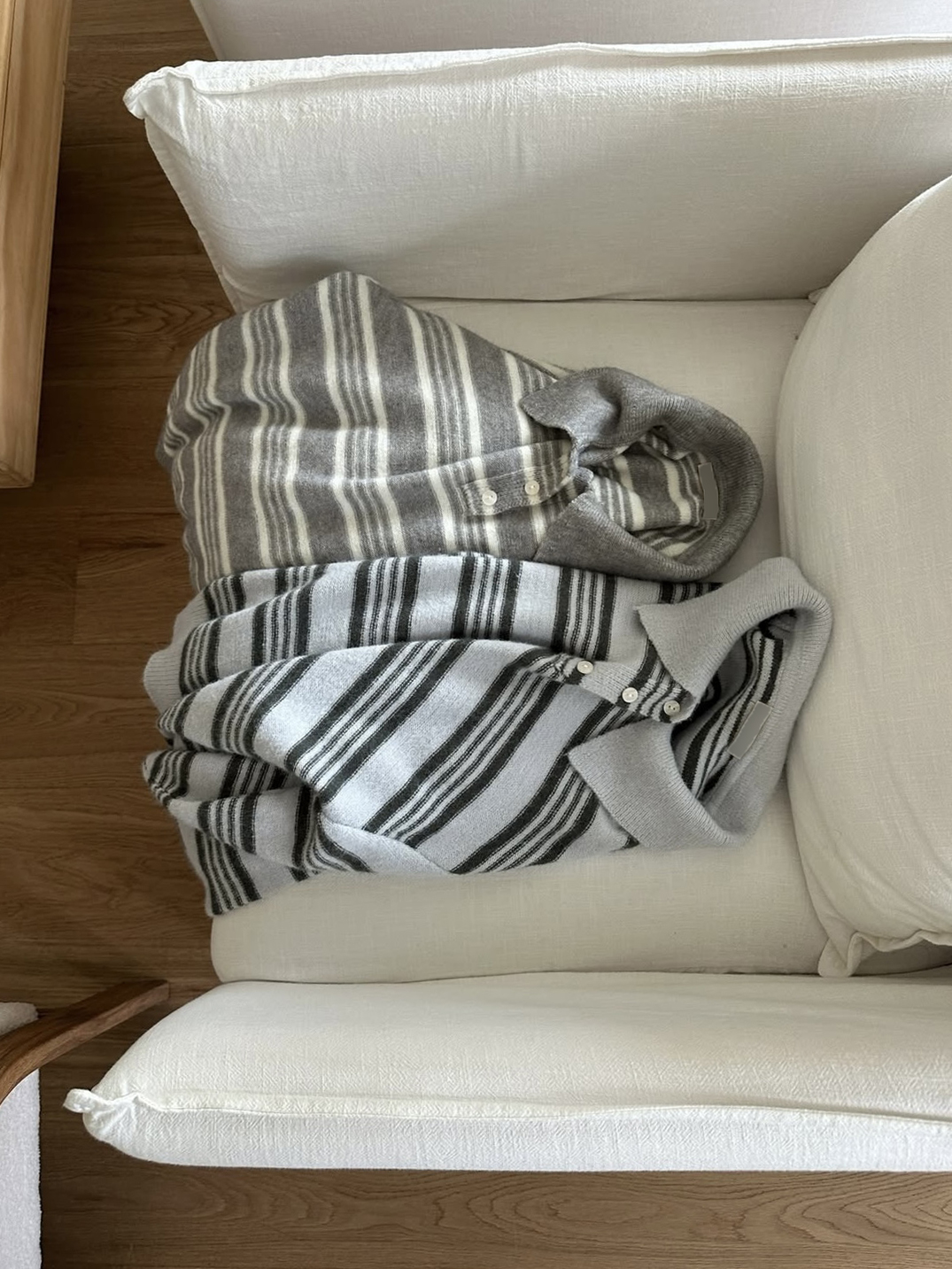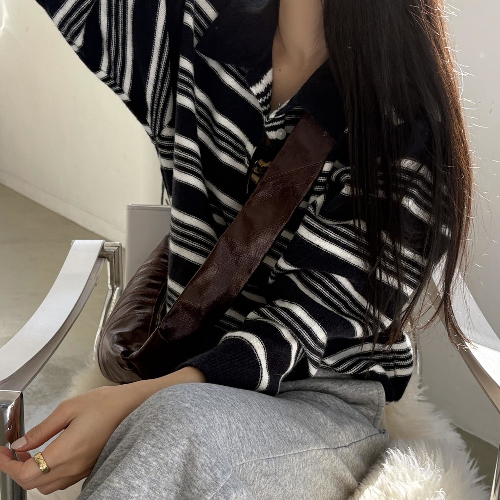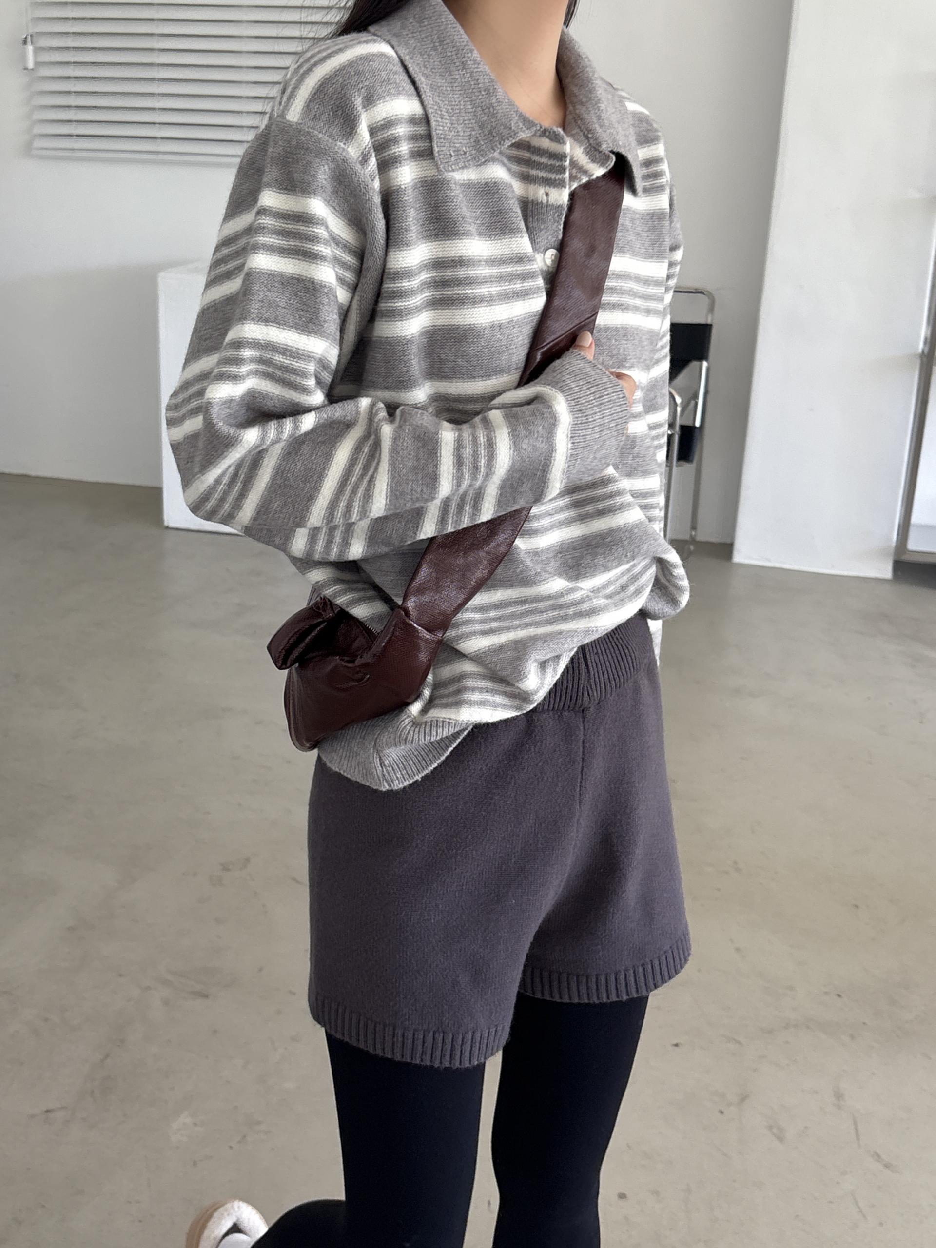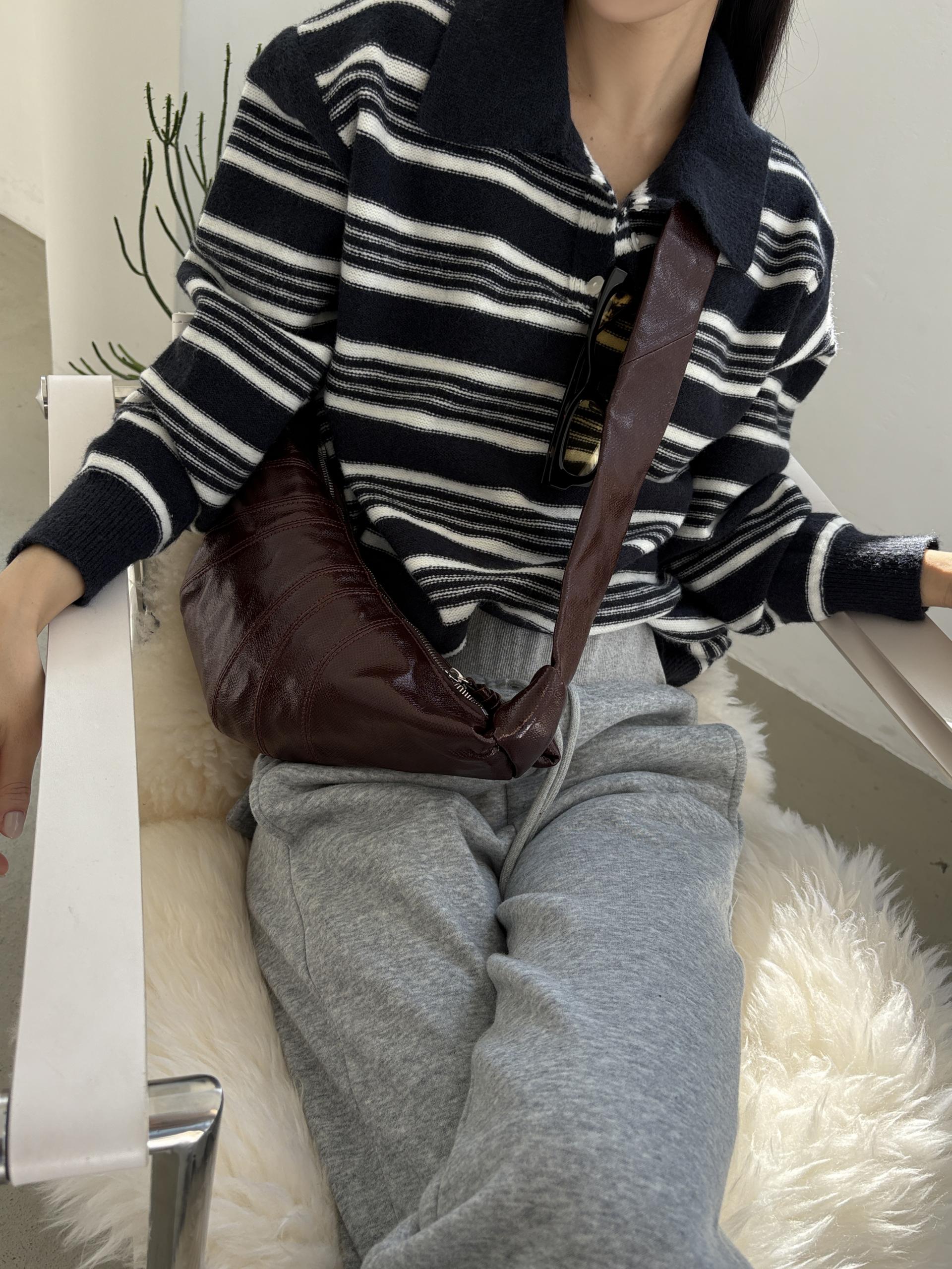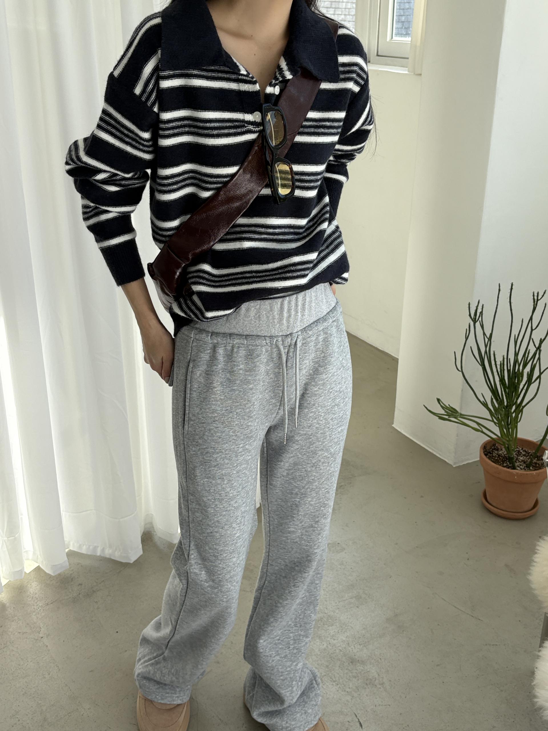 데일리로 자꾸 손이 가는 스트라이프 카라 니트입니다.