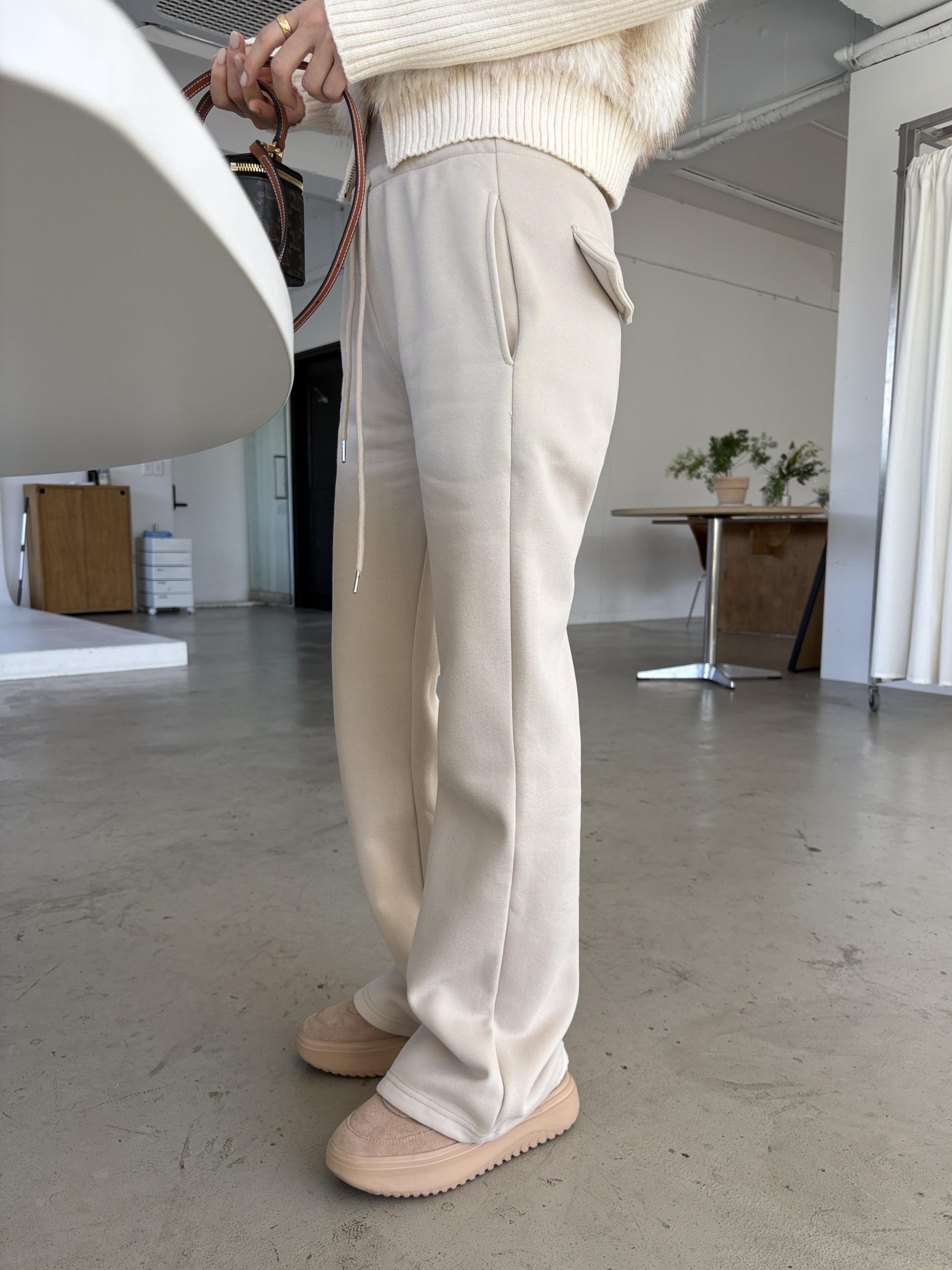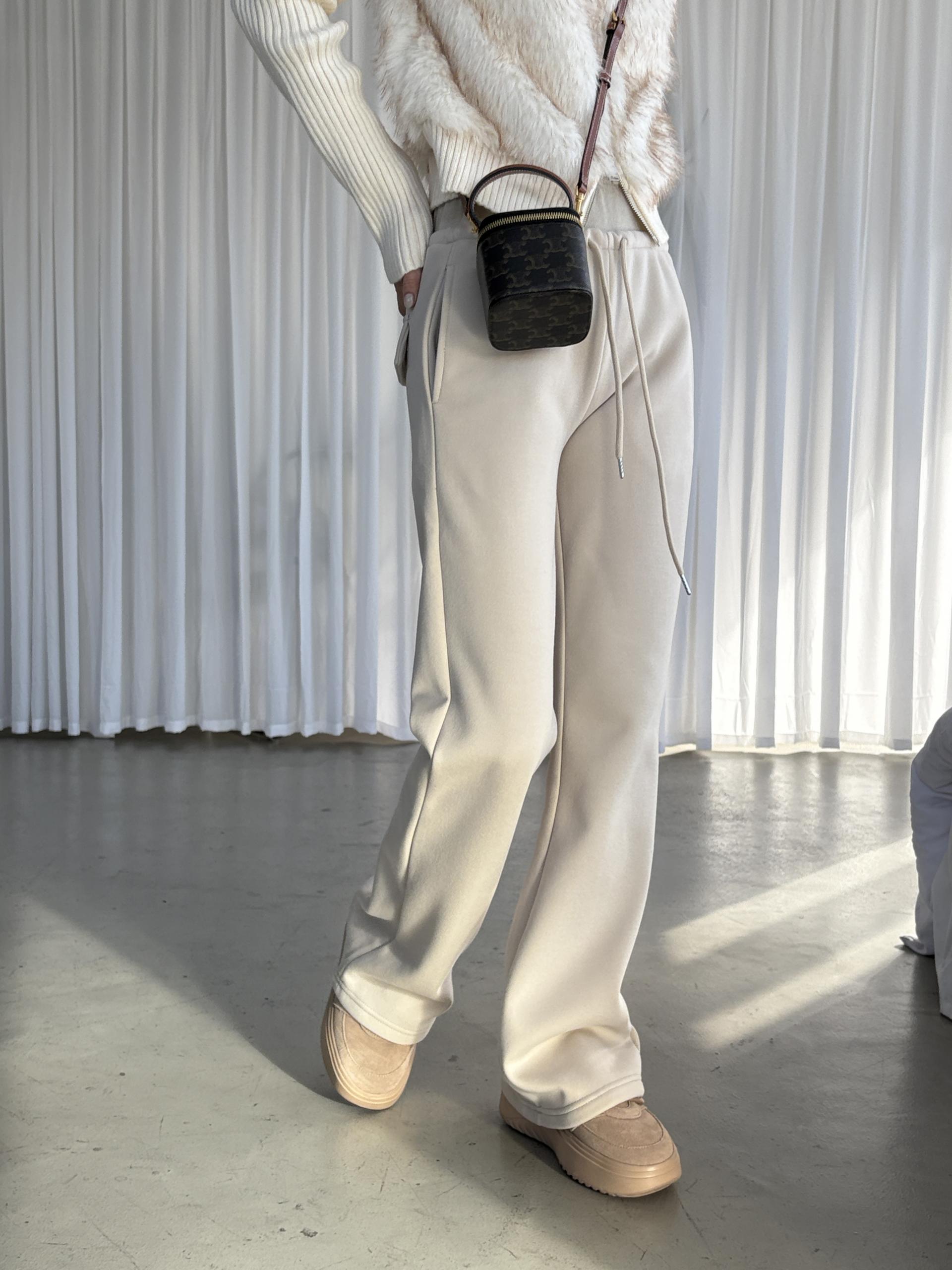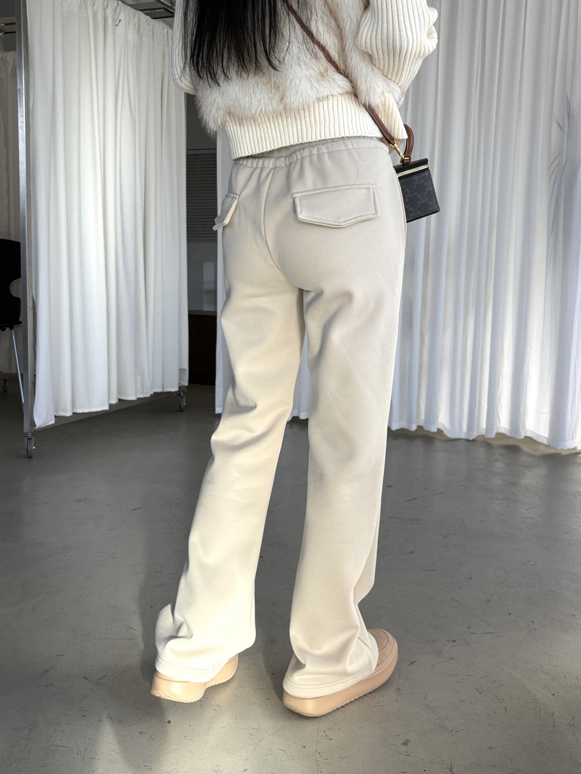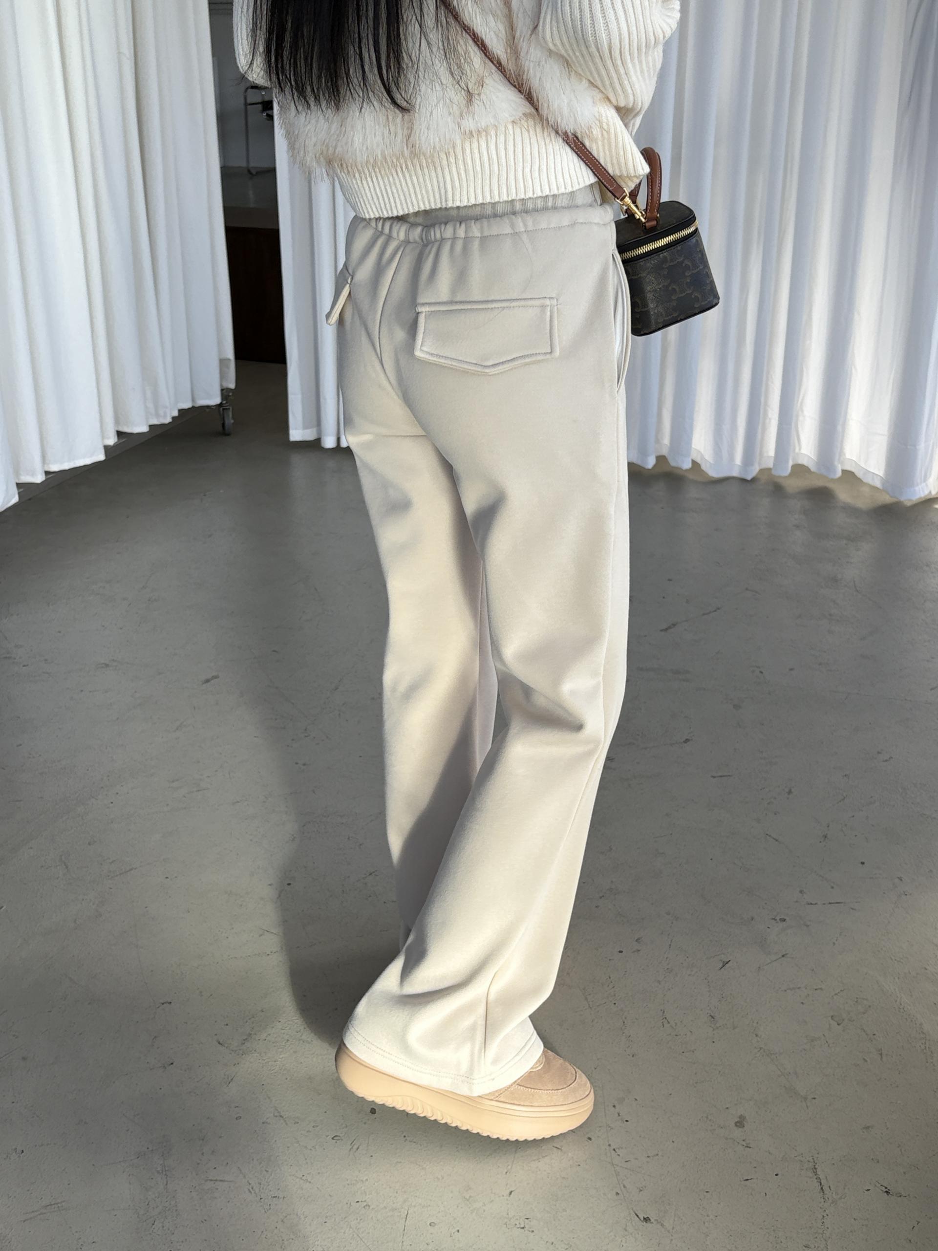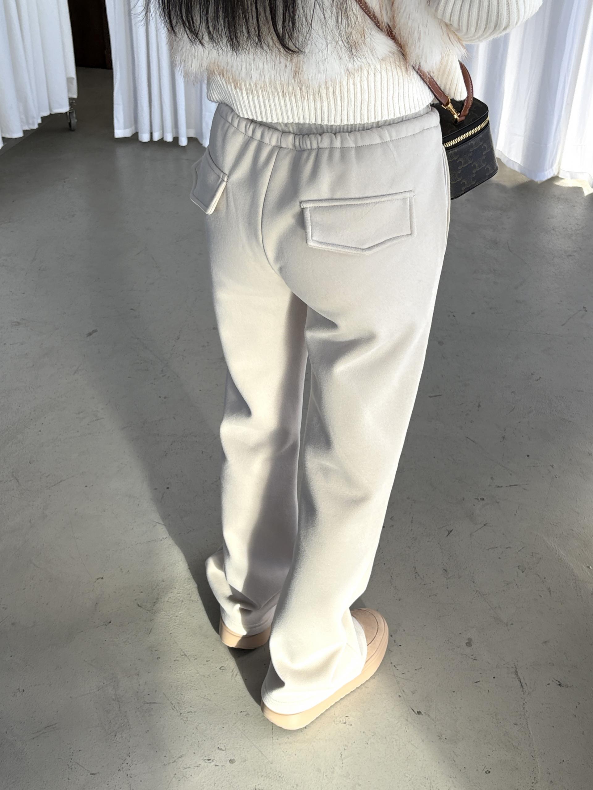 겉은 탄탄하고 매끈한 터치, 안쪽은 포근한 융기모로 한겨울까지 따뜻하게 착용할 수 있는 데일리 팬츠예요.