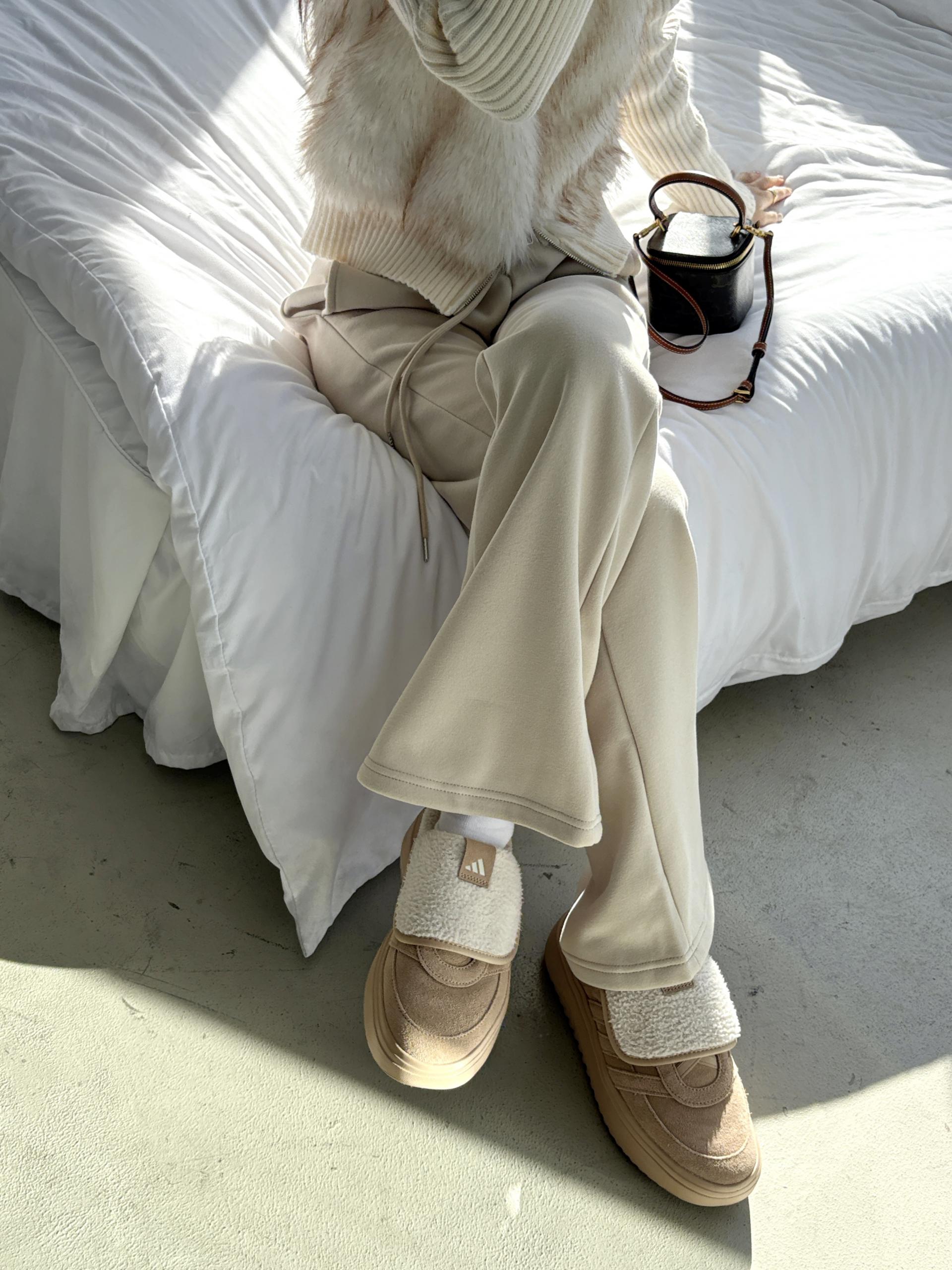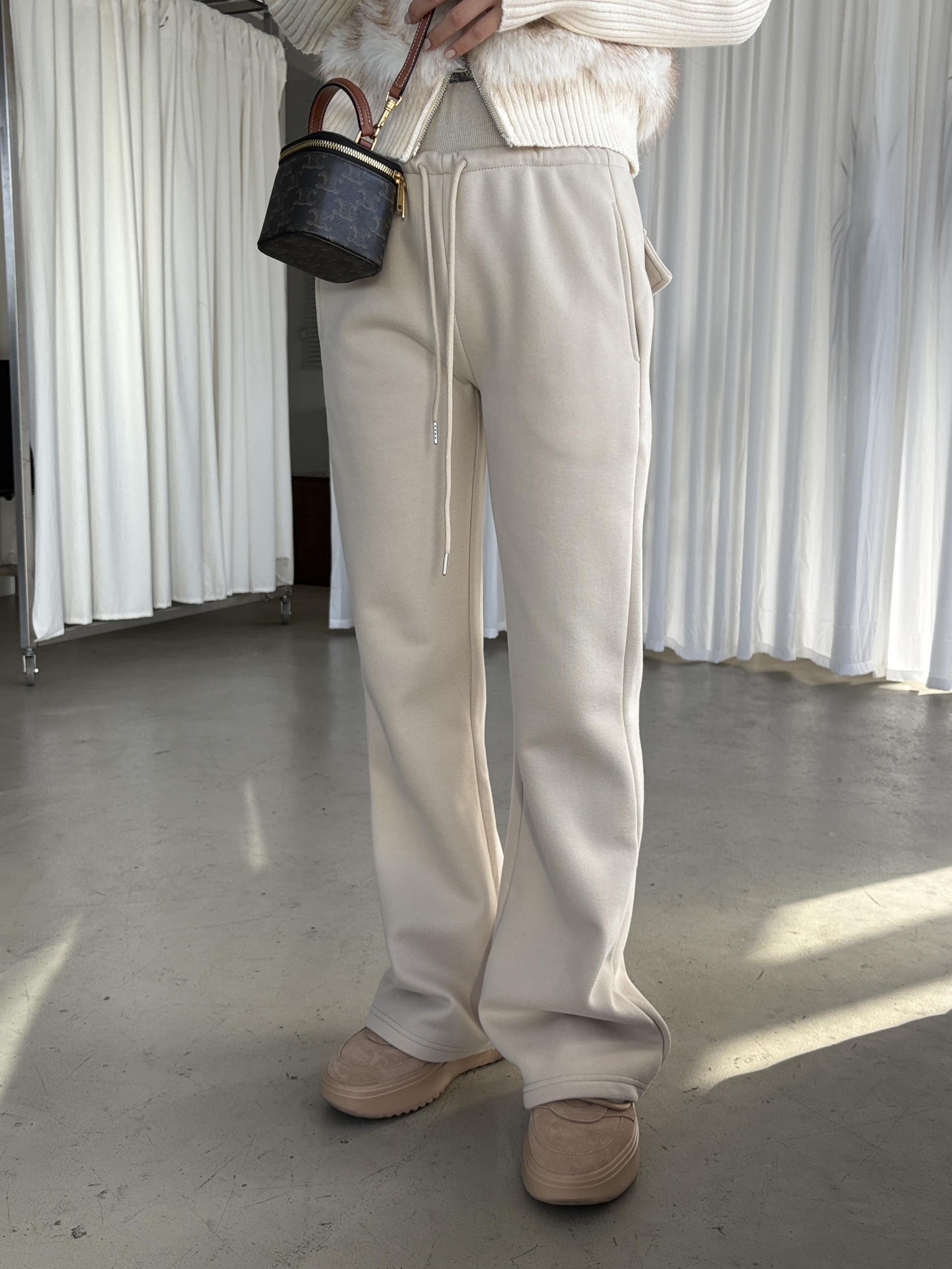 무릎 나옴, 보풀 절대 없어 더욱 편하고 멋스럽게 착용 가능한 부츠컷 핏의 겨울용 트레이닝 팬츠입니다.