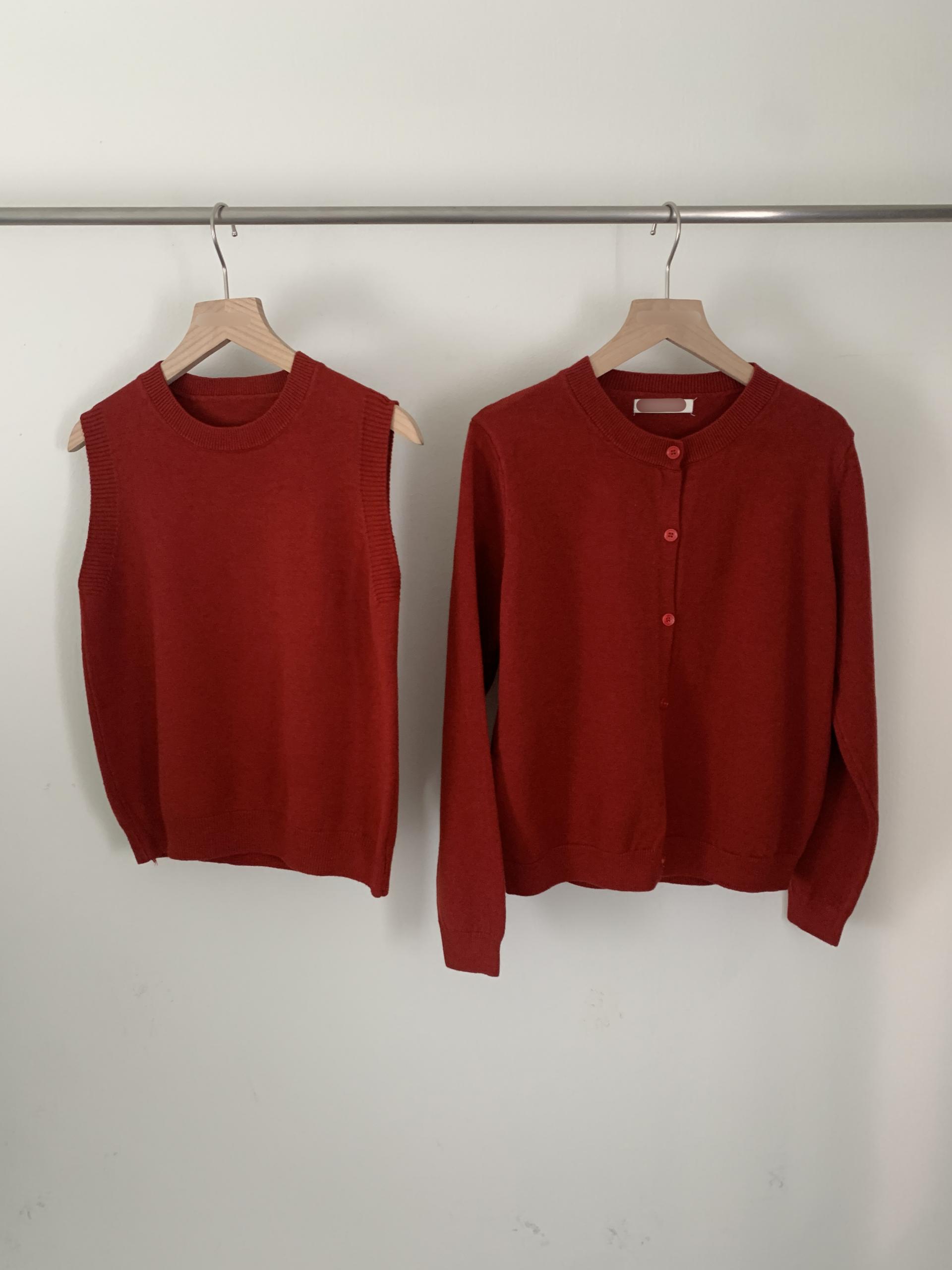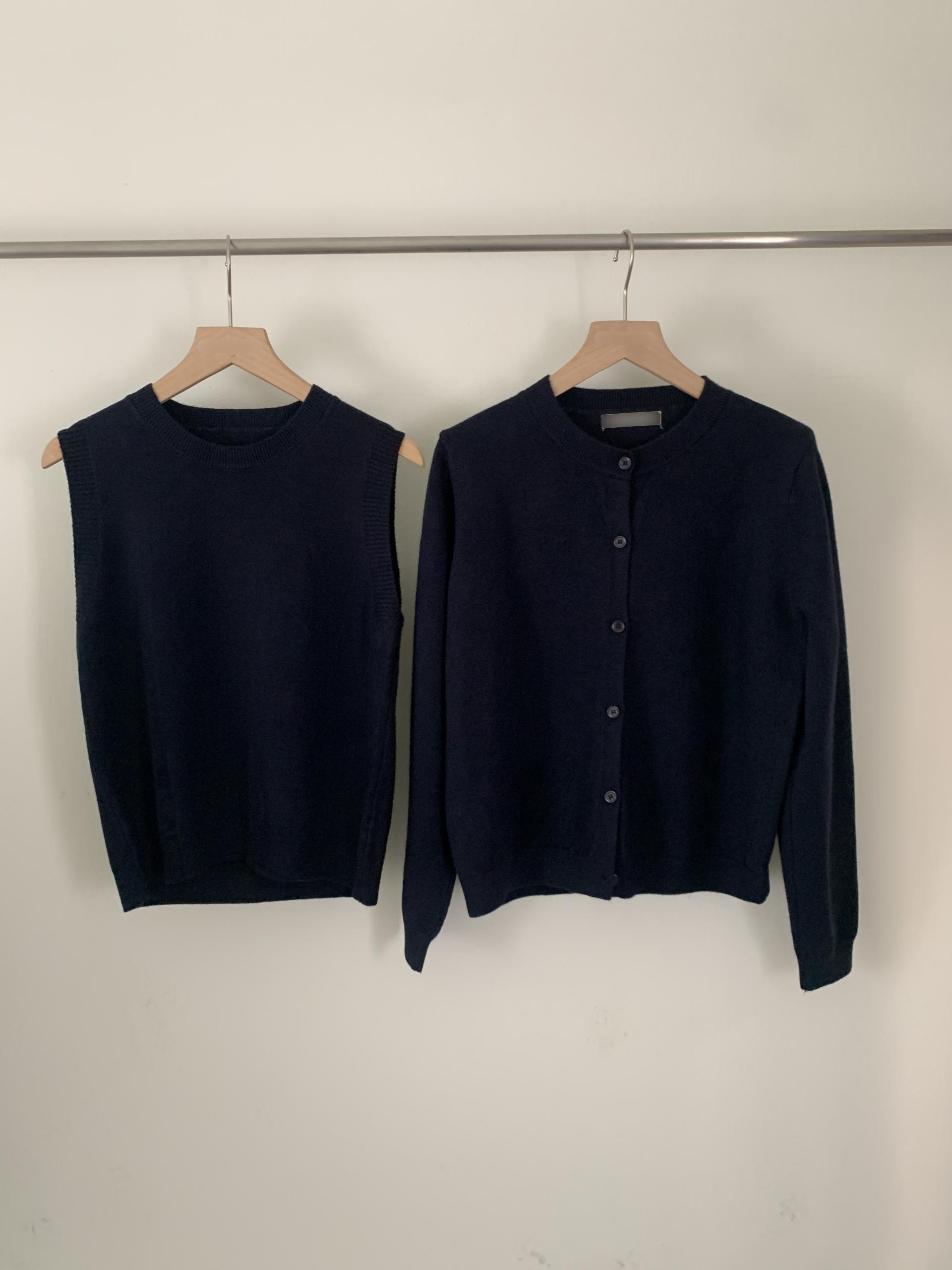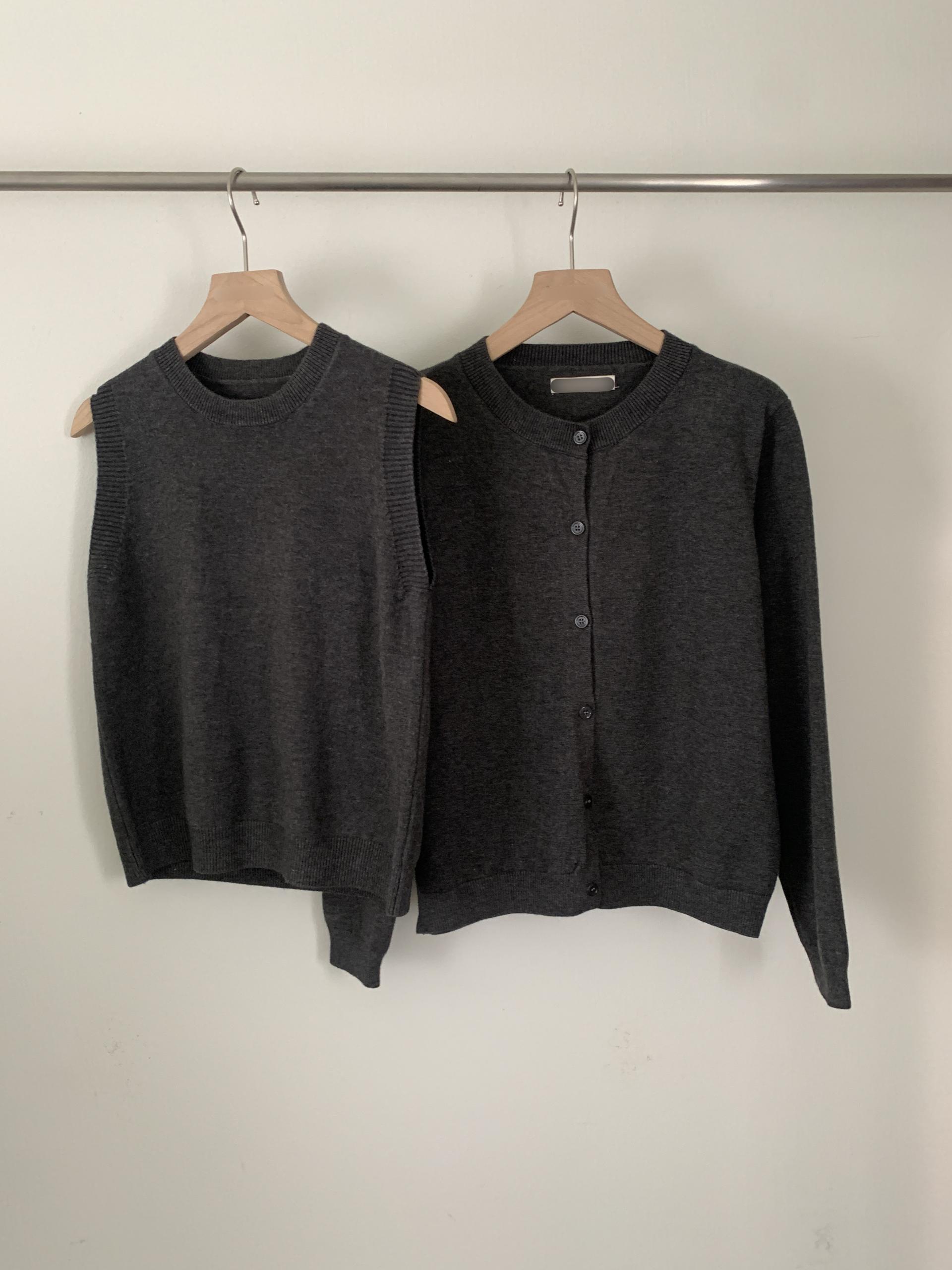 슬림한 핏의 민소매 조끼와 기본핏의 긴팔 가디건 세트입니다.