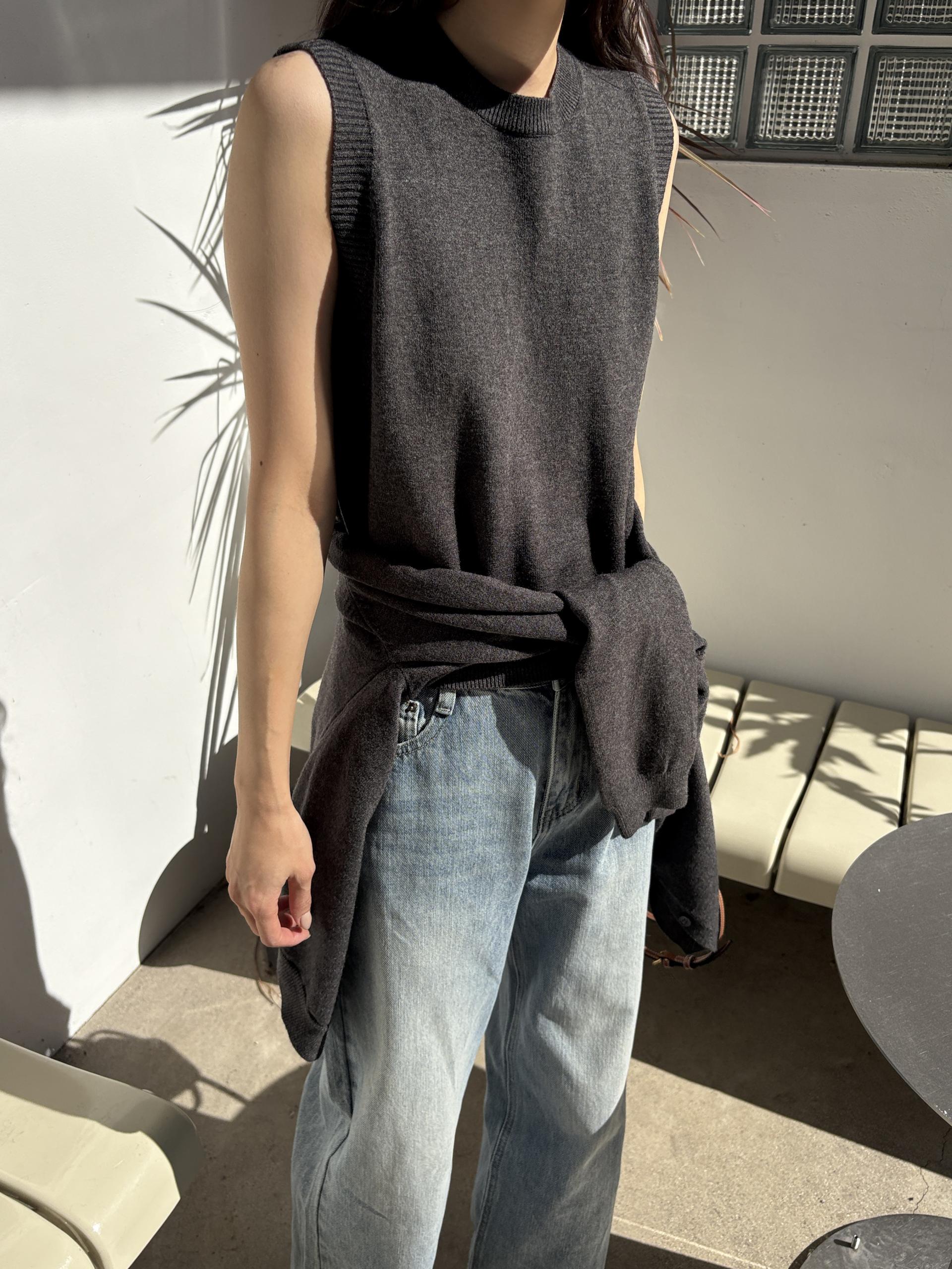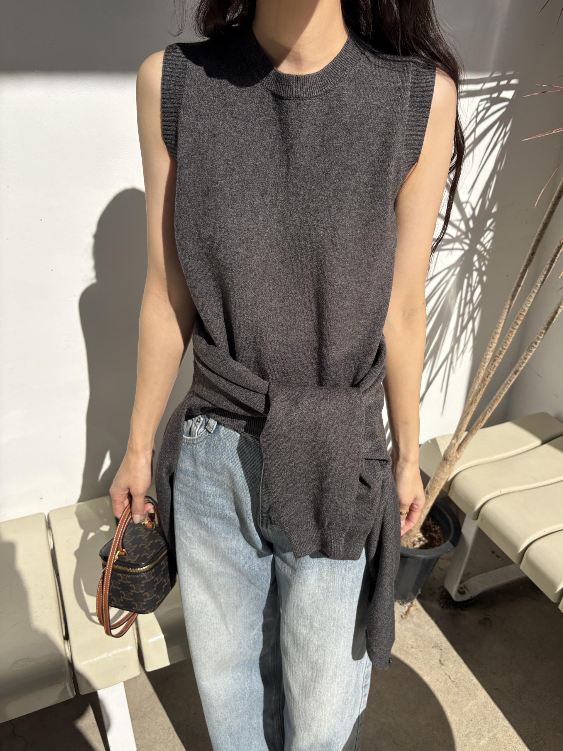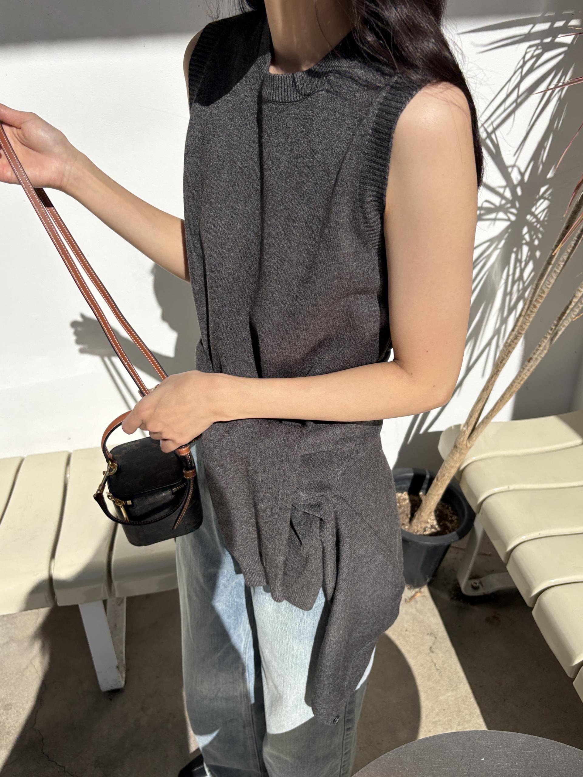 슬림한 핏의 민소매 조끼와 기본핏의 긴팔 가디건 세트입니다.