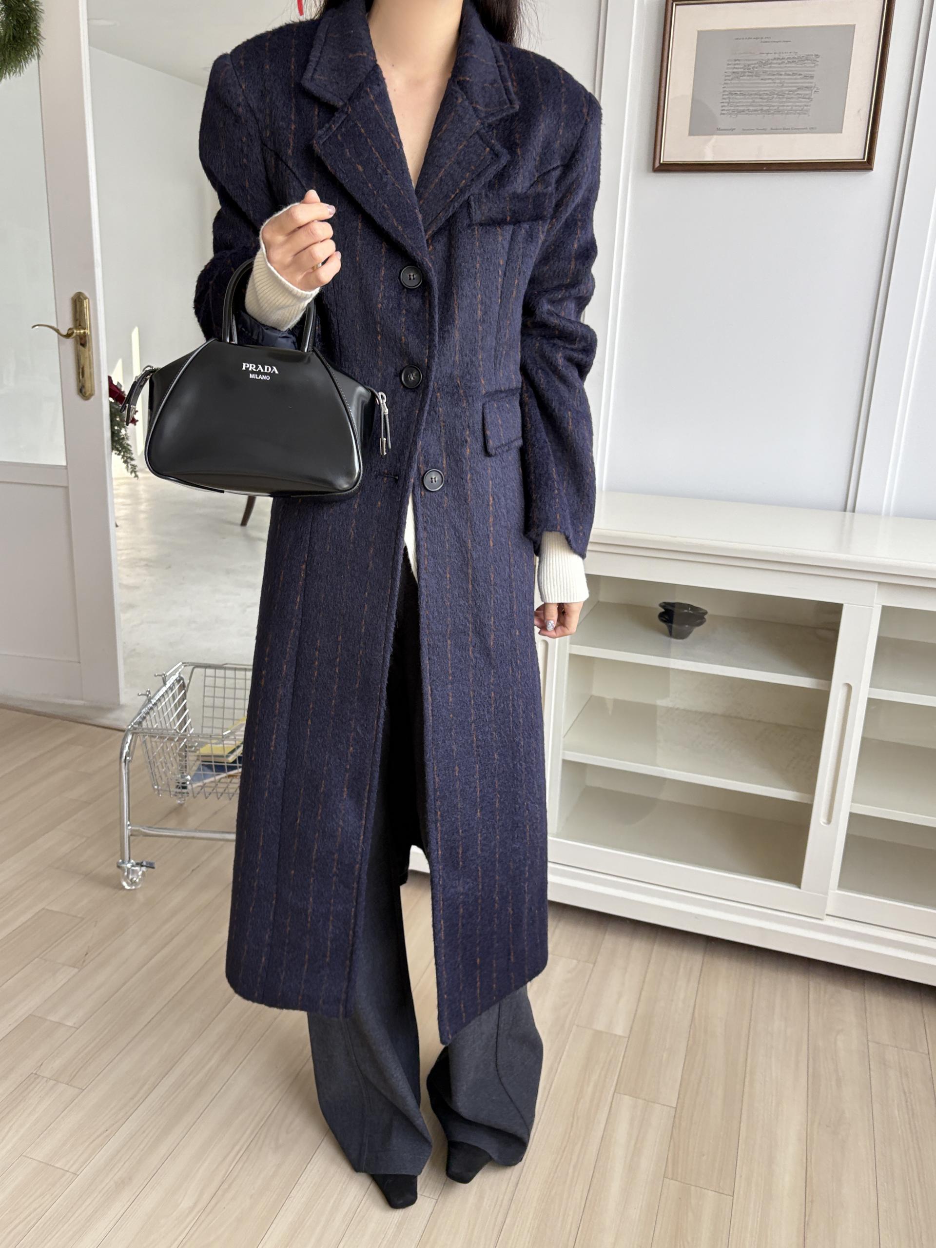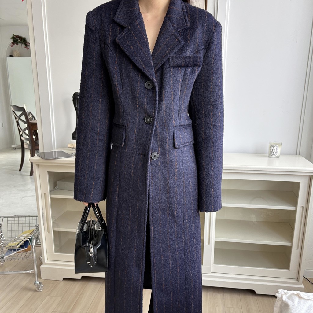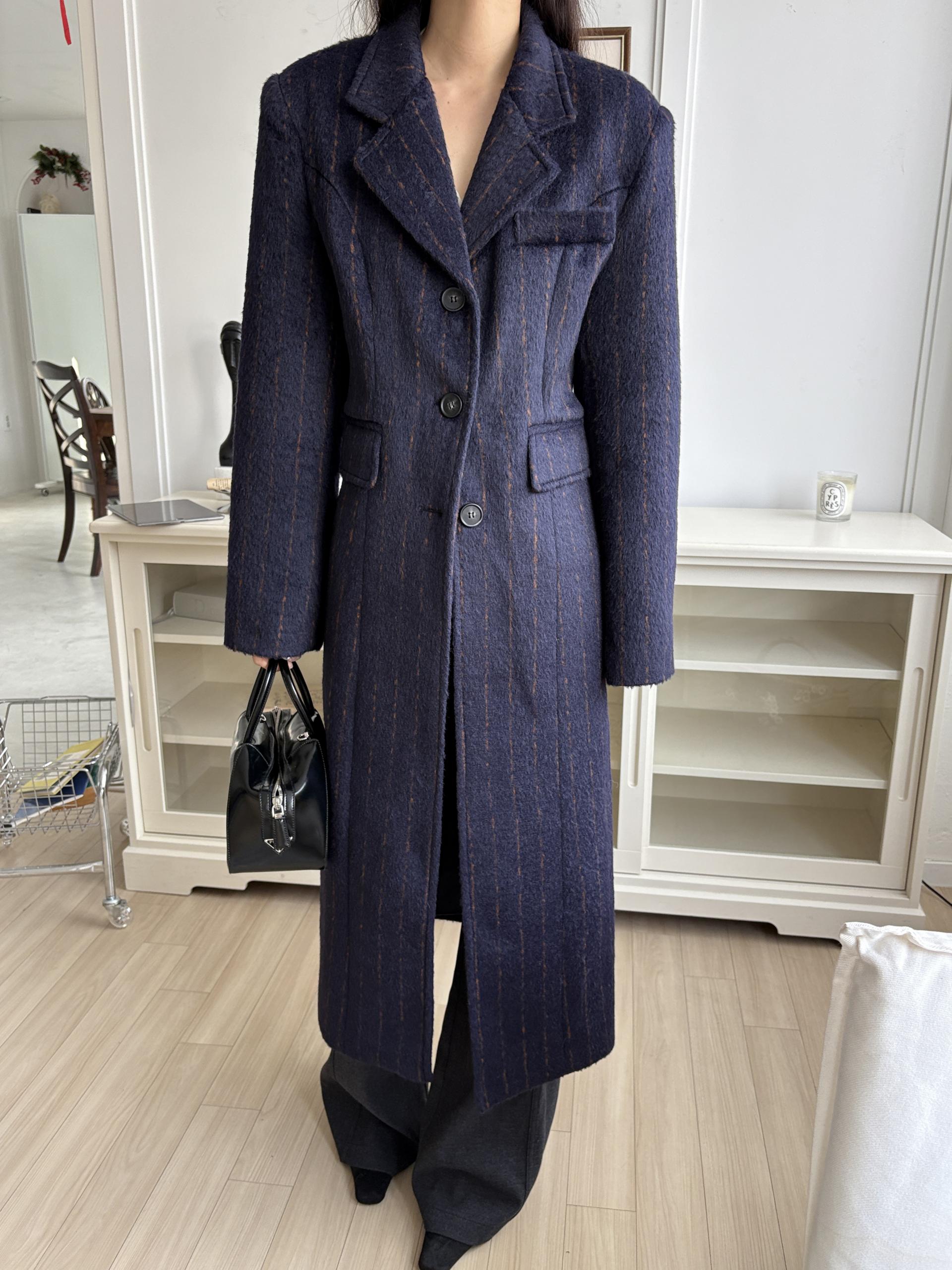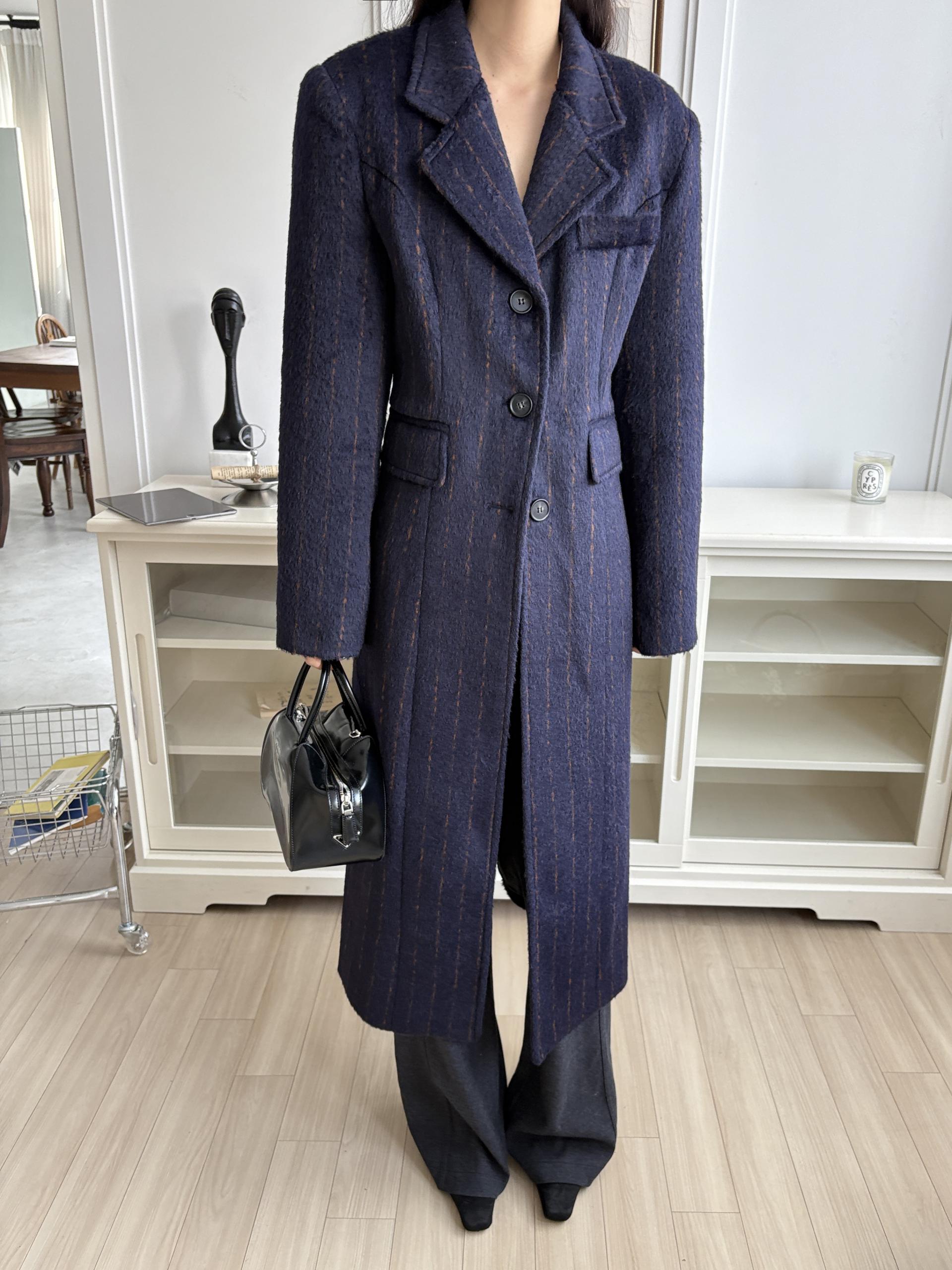 테일러드 카라 디자인에 싱글 버튼으로 아주 클래식한 무드가 느껴지며, 전체적인 실루엣이 아주 깔끔하게 떨어지고 맥시한 기장감으로 아주 멋스러워요.