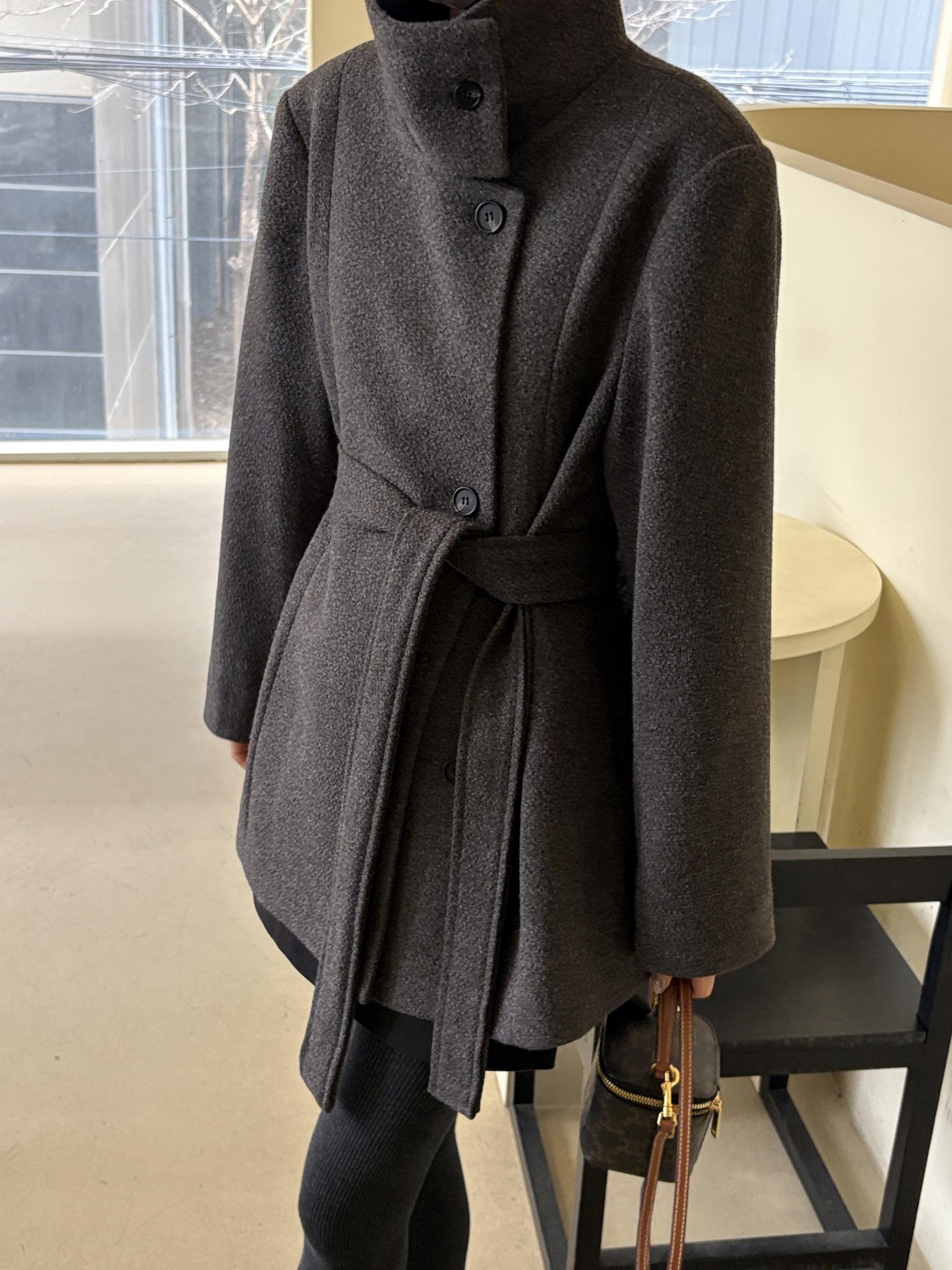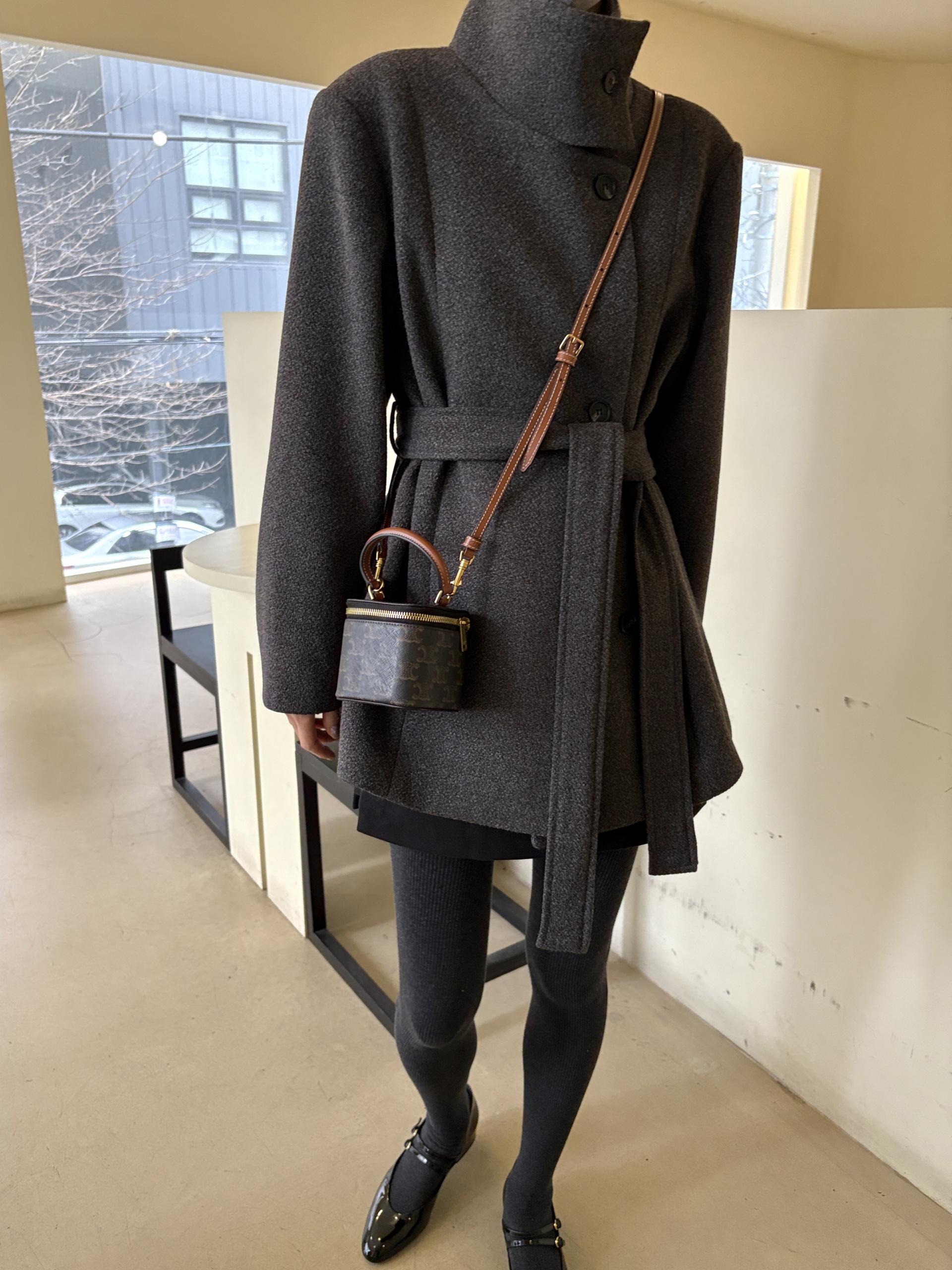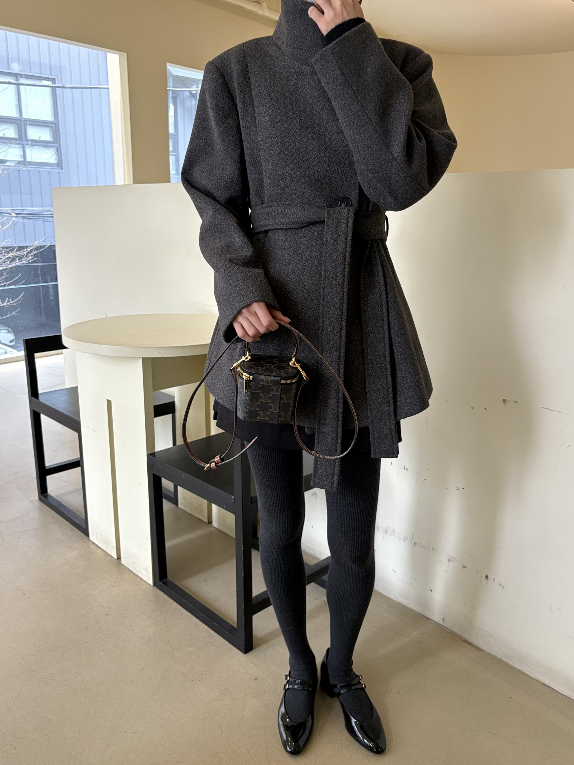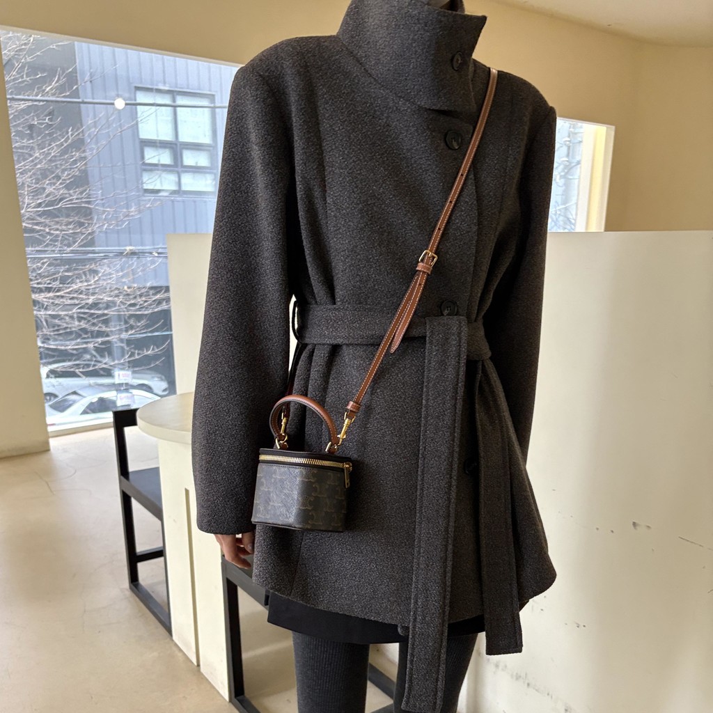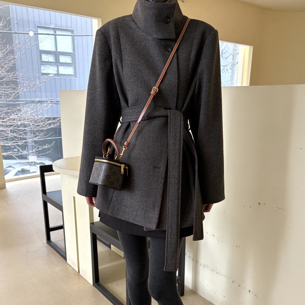 목을 감싸는 스탠드 하이넥에 허리 벨트로 라인을 잡을 수 있어 시크한 무드와 페미닌한 무드를 동시에 담은 코트에요. 벨트를 묶었을 땐 여성스러운 라인을 살리고, 스트랩을 풀어 착용하면 차분하고 여유 있는 느낌입니다.