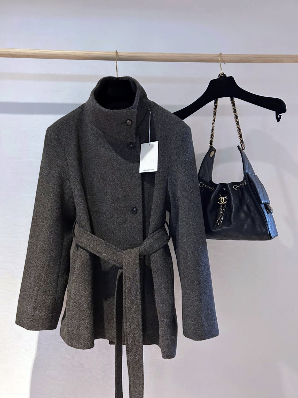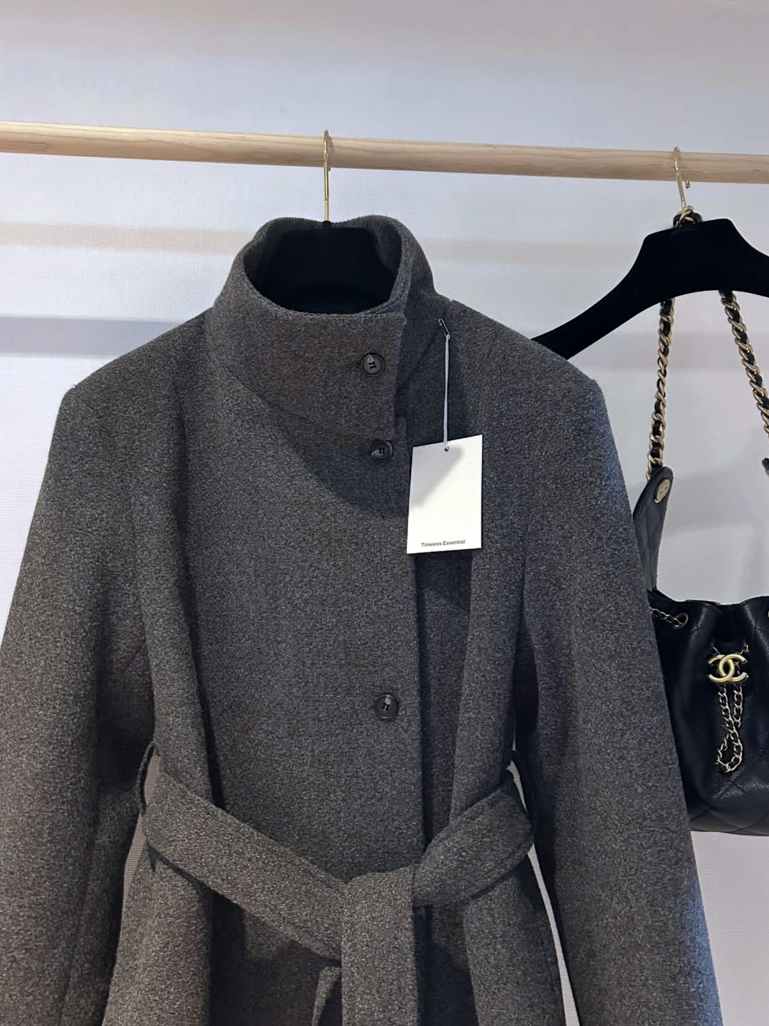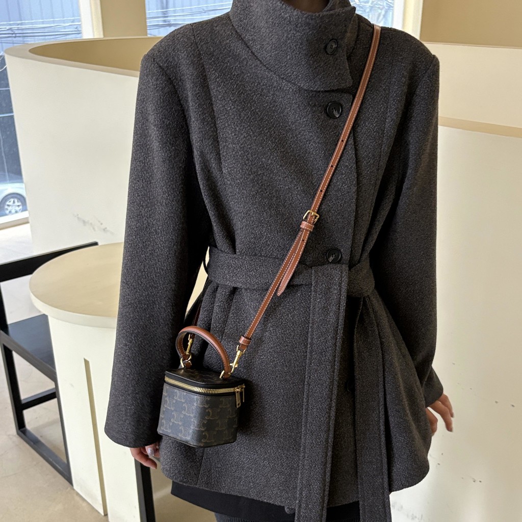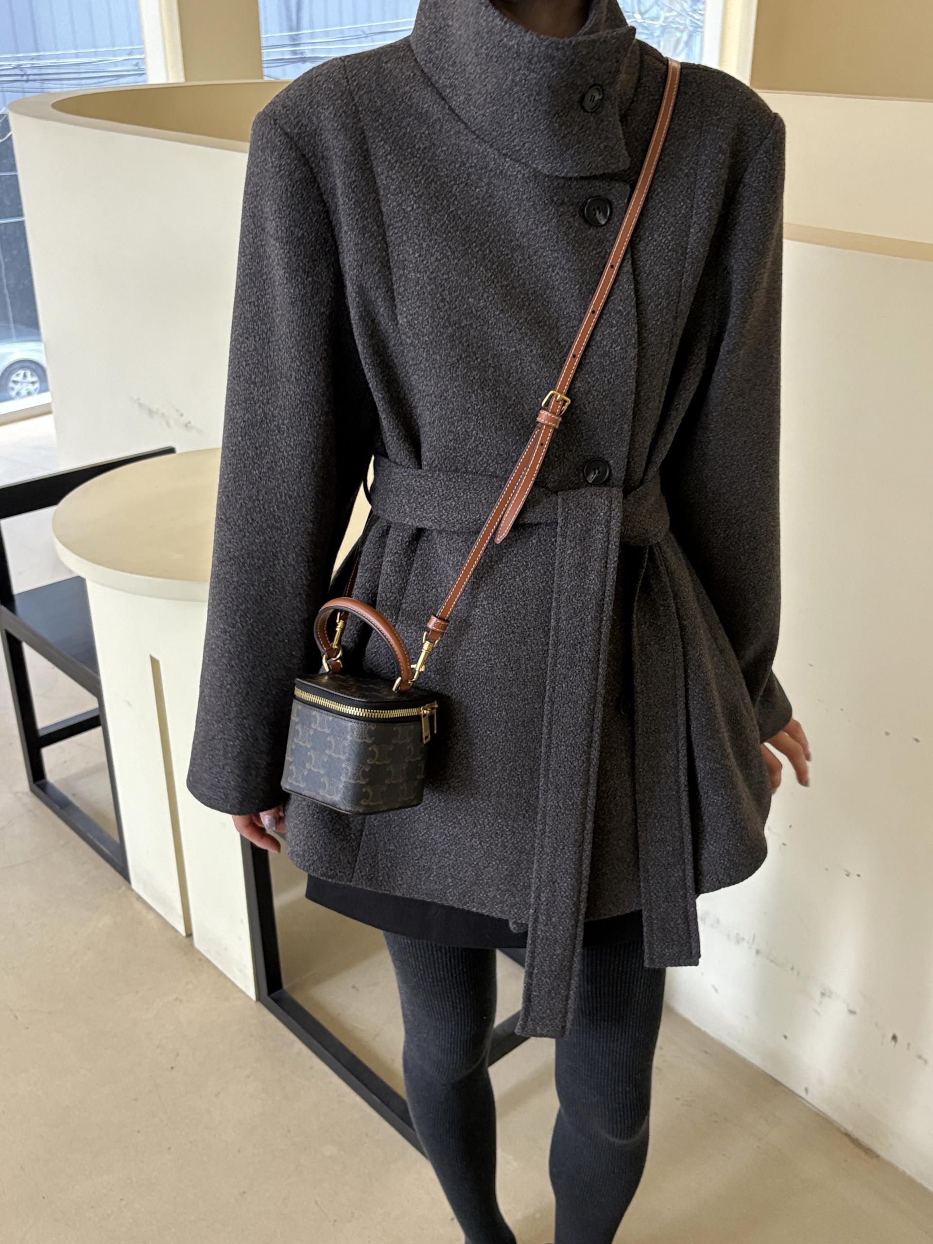 목을 감싸는 스탠드 하이넥에 허리 벨트로 라인을 잡을 수 있어 시크한 무드와 페미닌한 무드를 동시에 담은 코트에요. 벨트를 묶었을 땐 여성스러운 라인을 살리고, 스트랩을 풀어 착용하면 차분하고 여유 있는 느낌입니다.