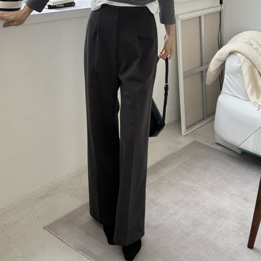 군더더기 없이 깔끔한 노턱 디자인으로 허리부터 스트레이트하게 떨어지는 세미 와이드핏 슬랙스입니다.