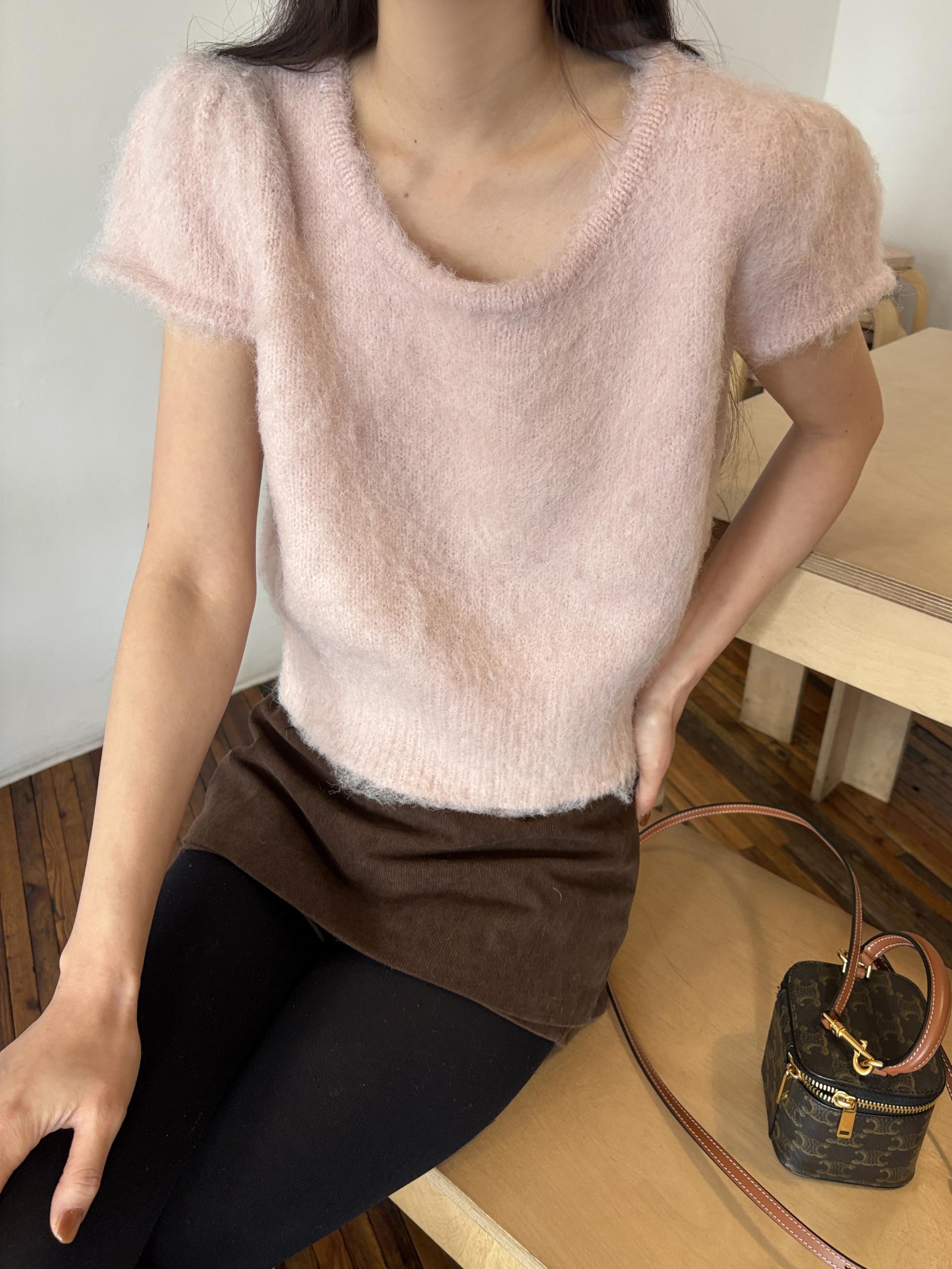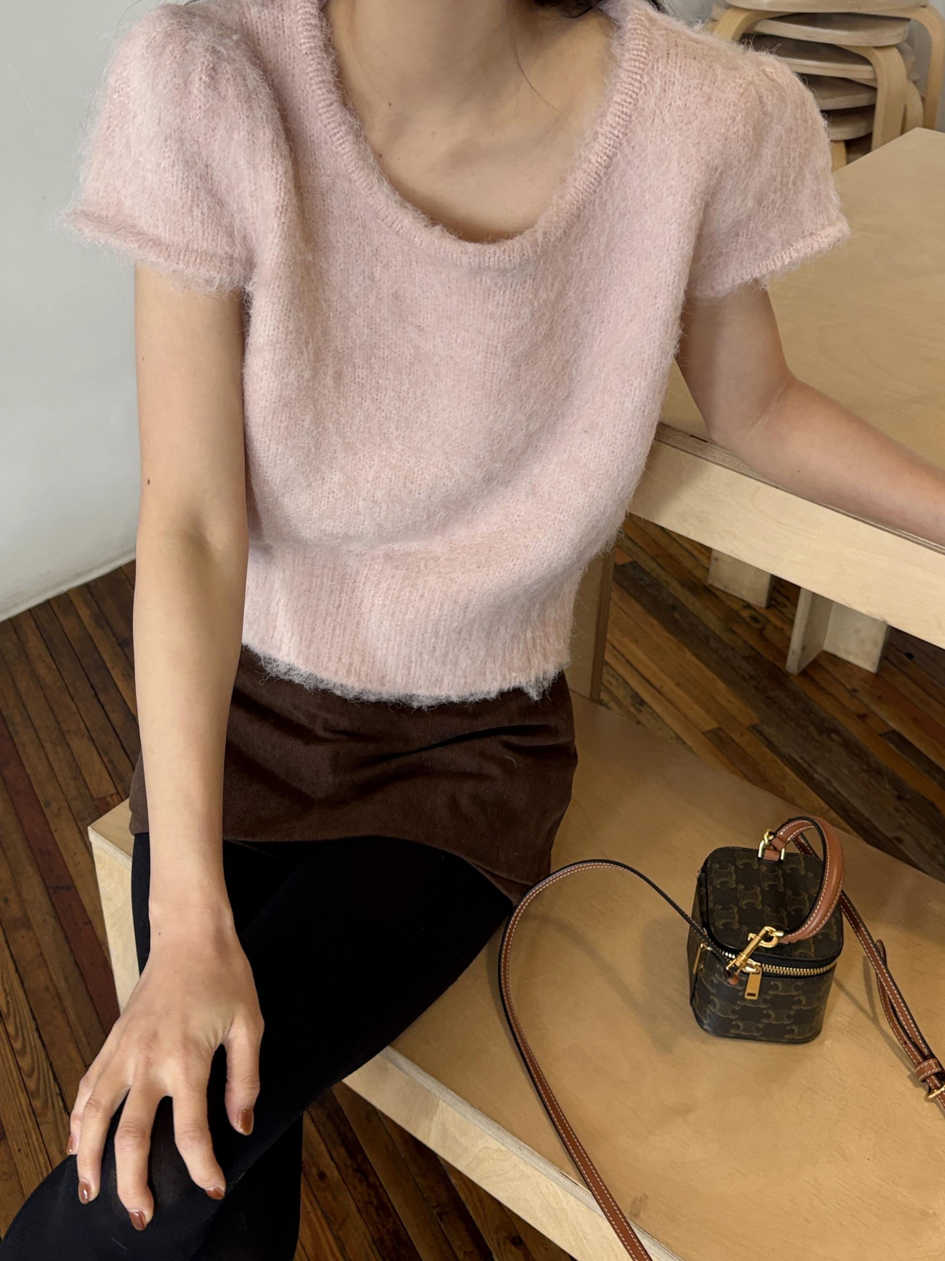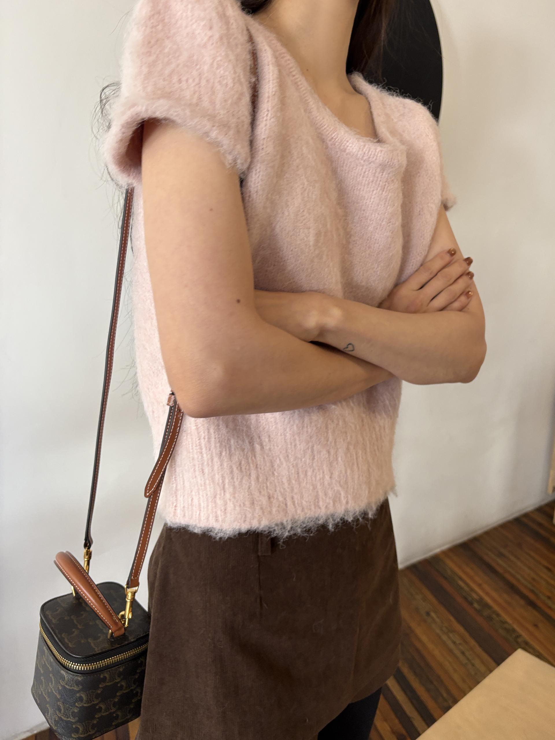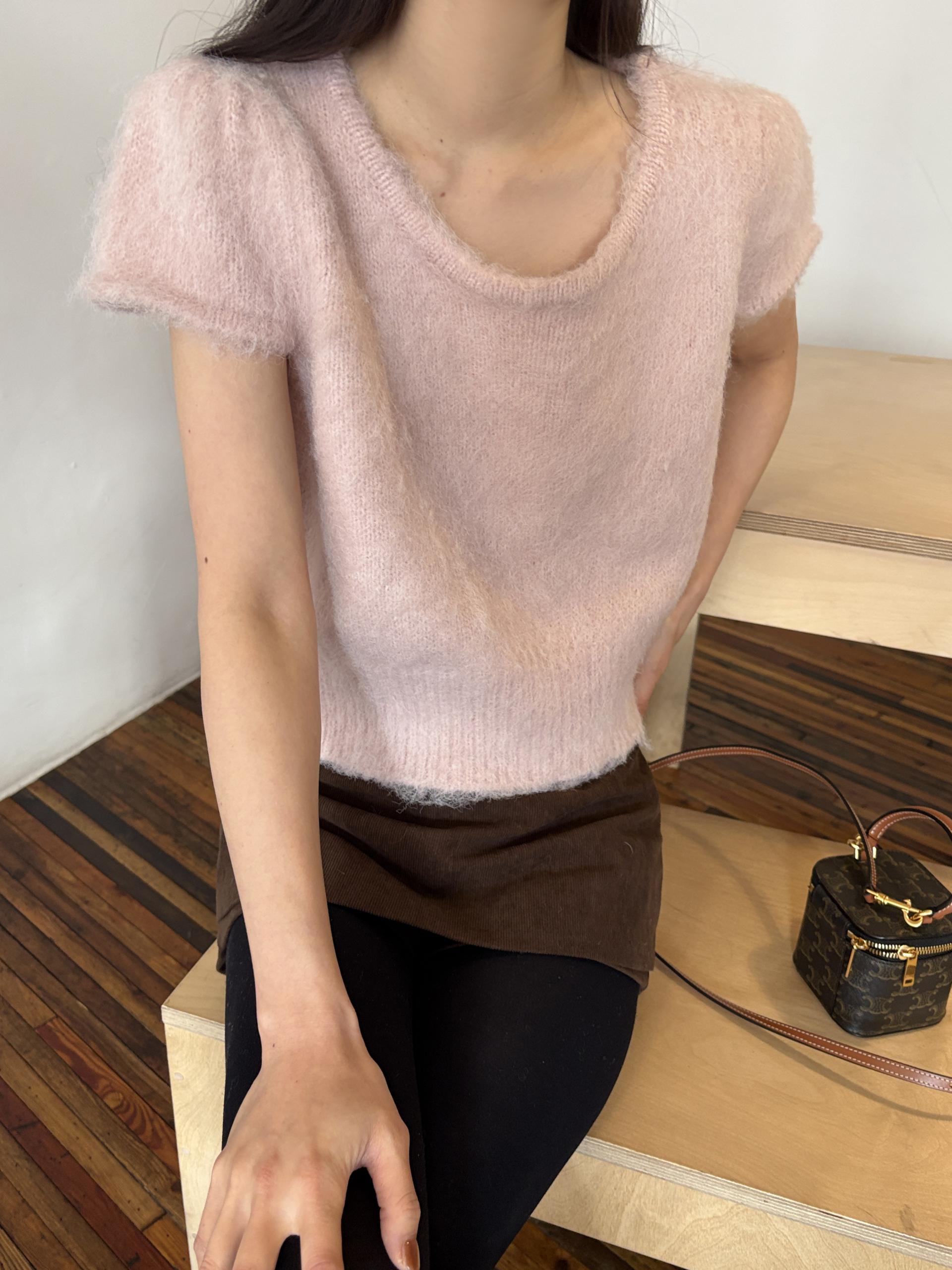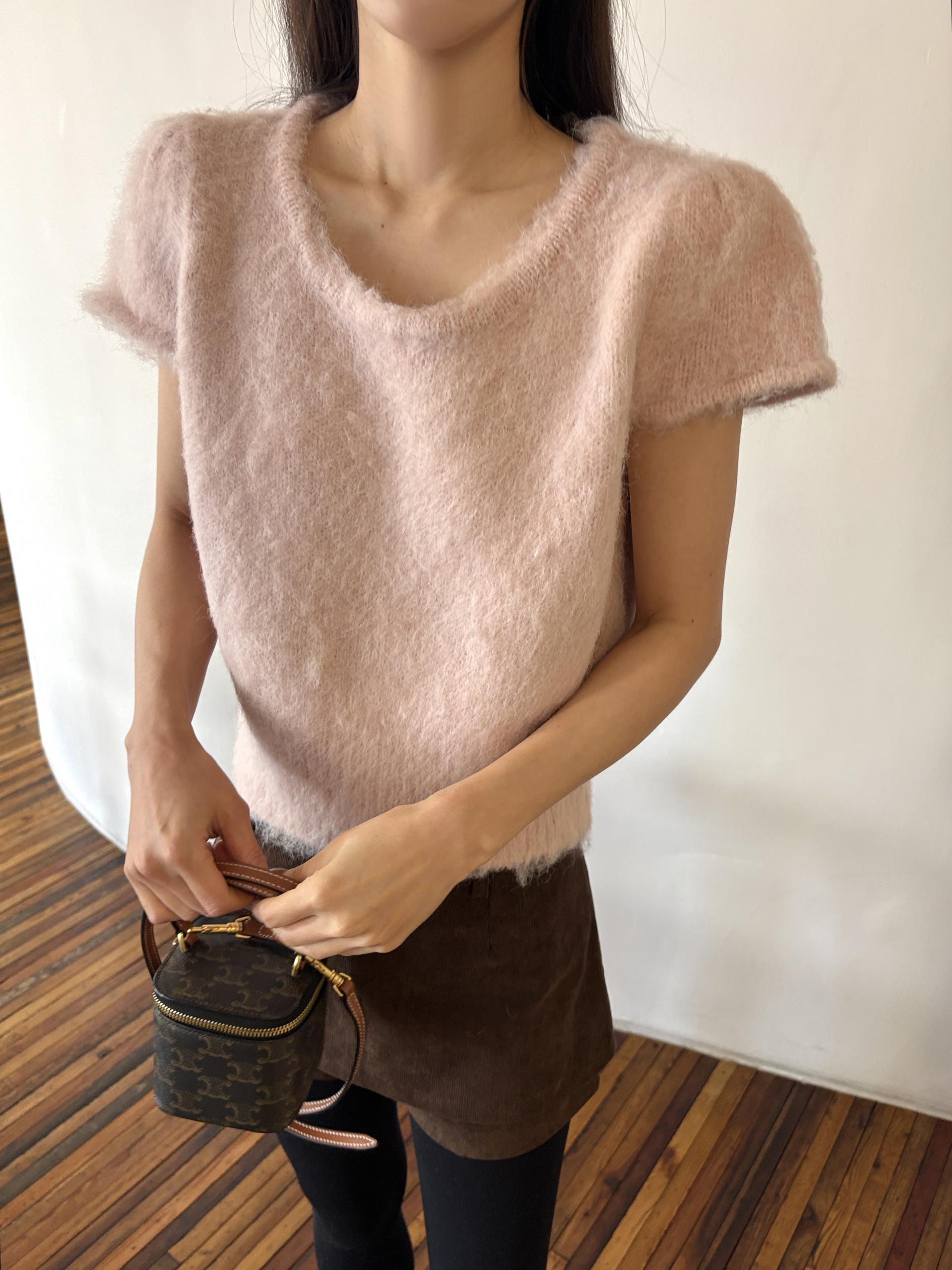 보송하게 결이 살아있는 헤어리 텍스처가 매력적인 반팔 니트입니다.