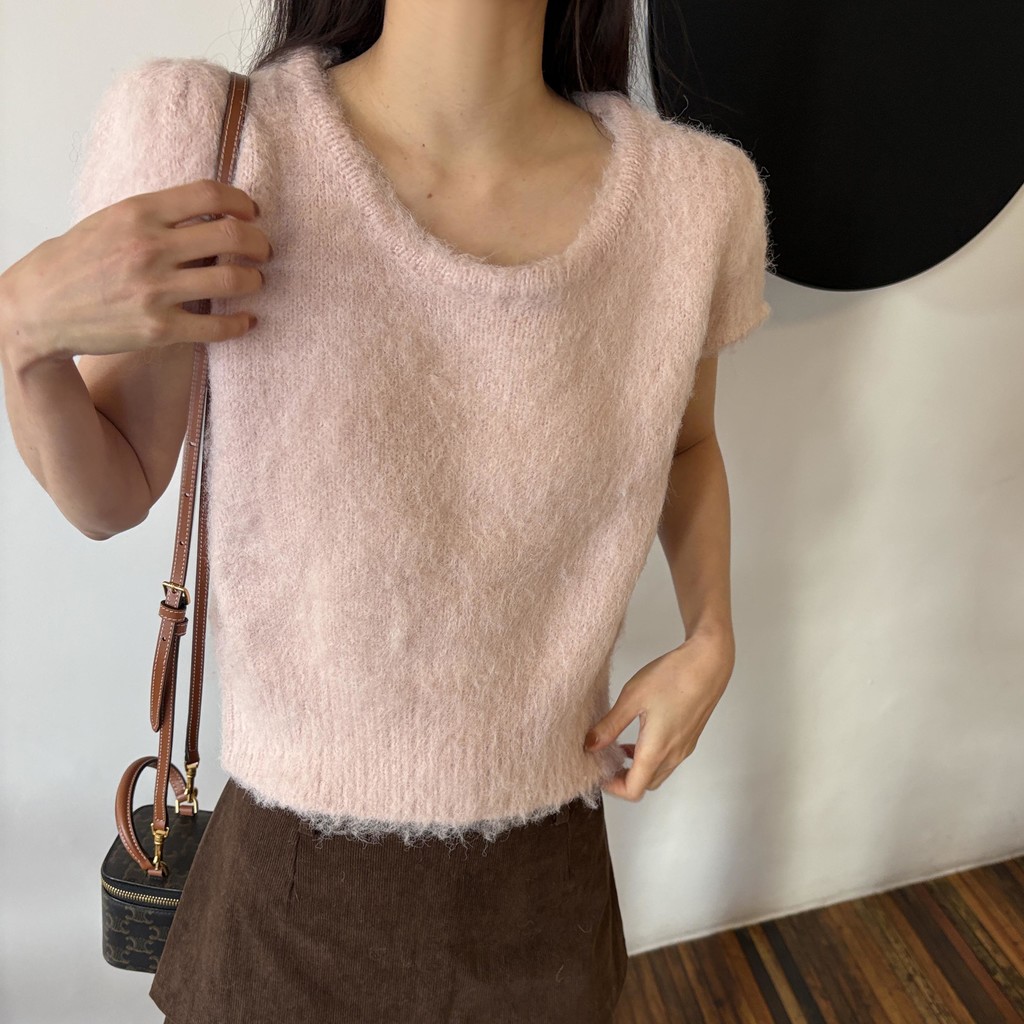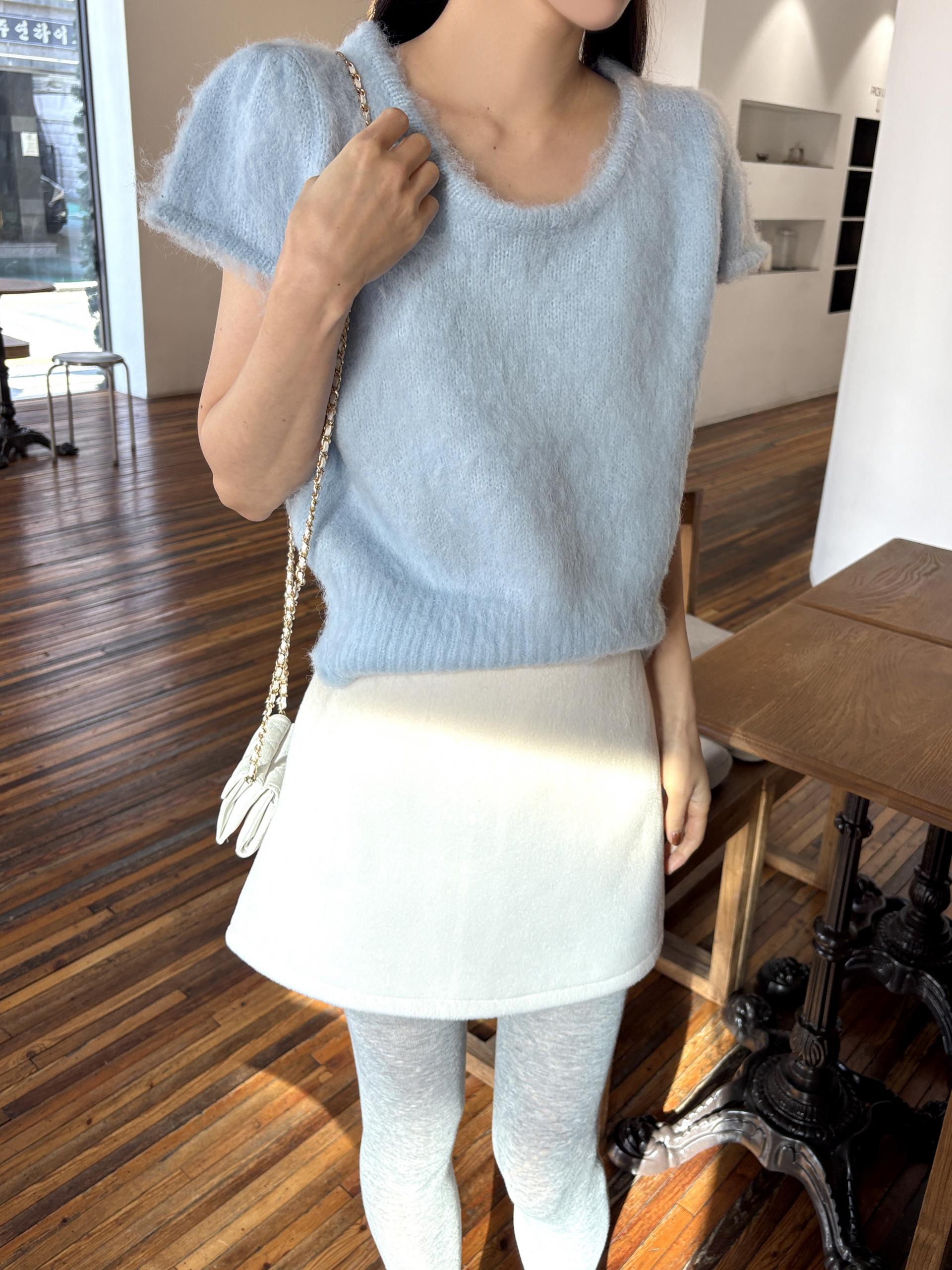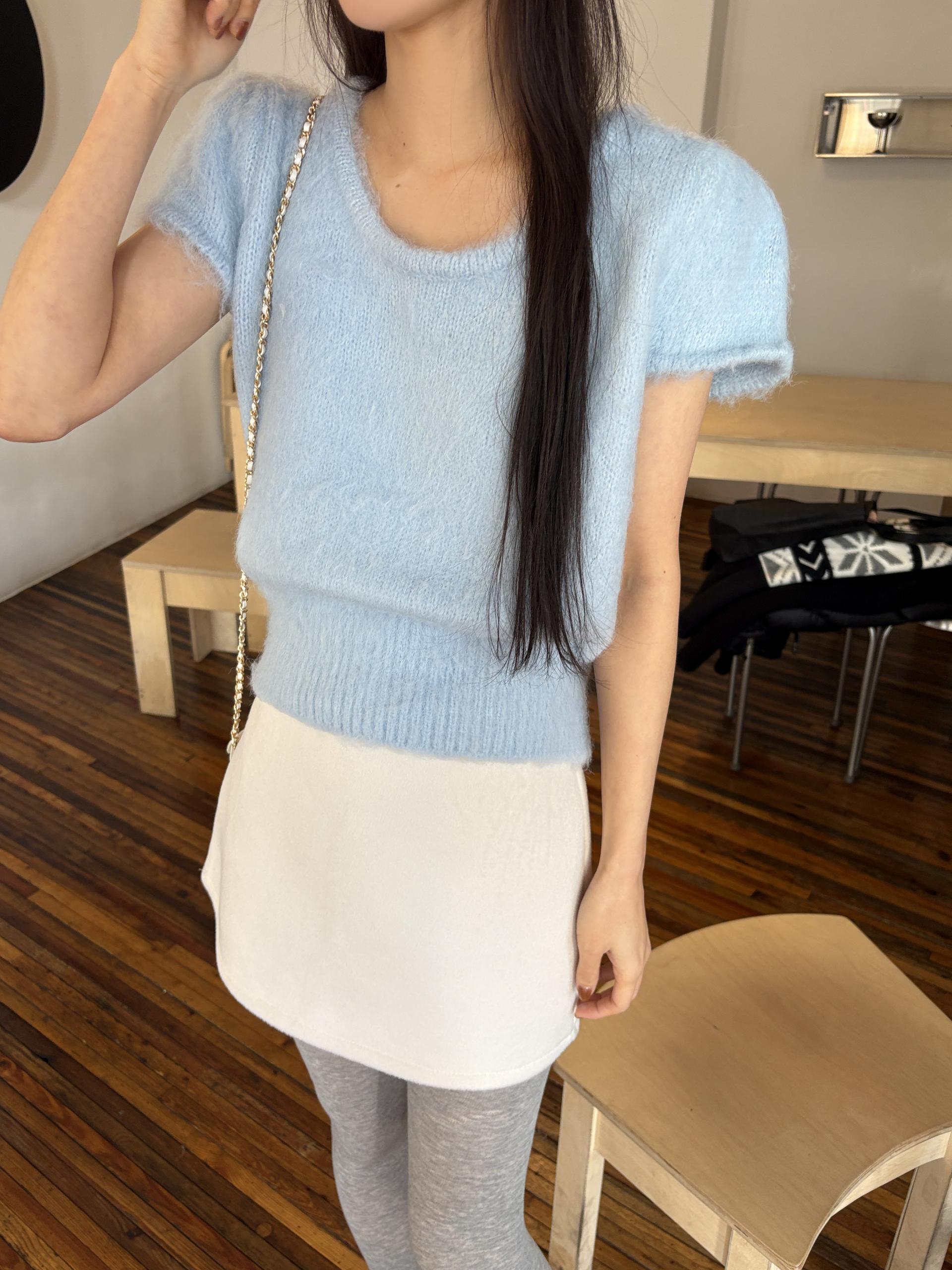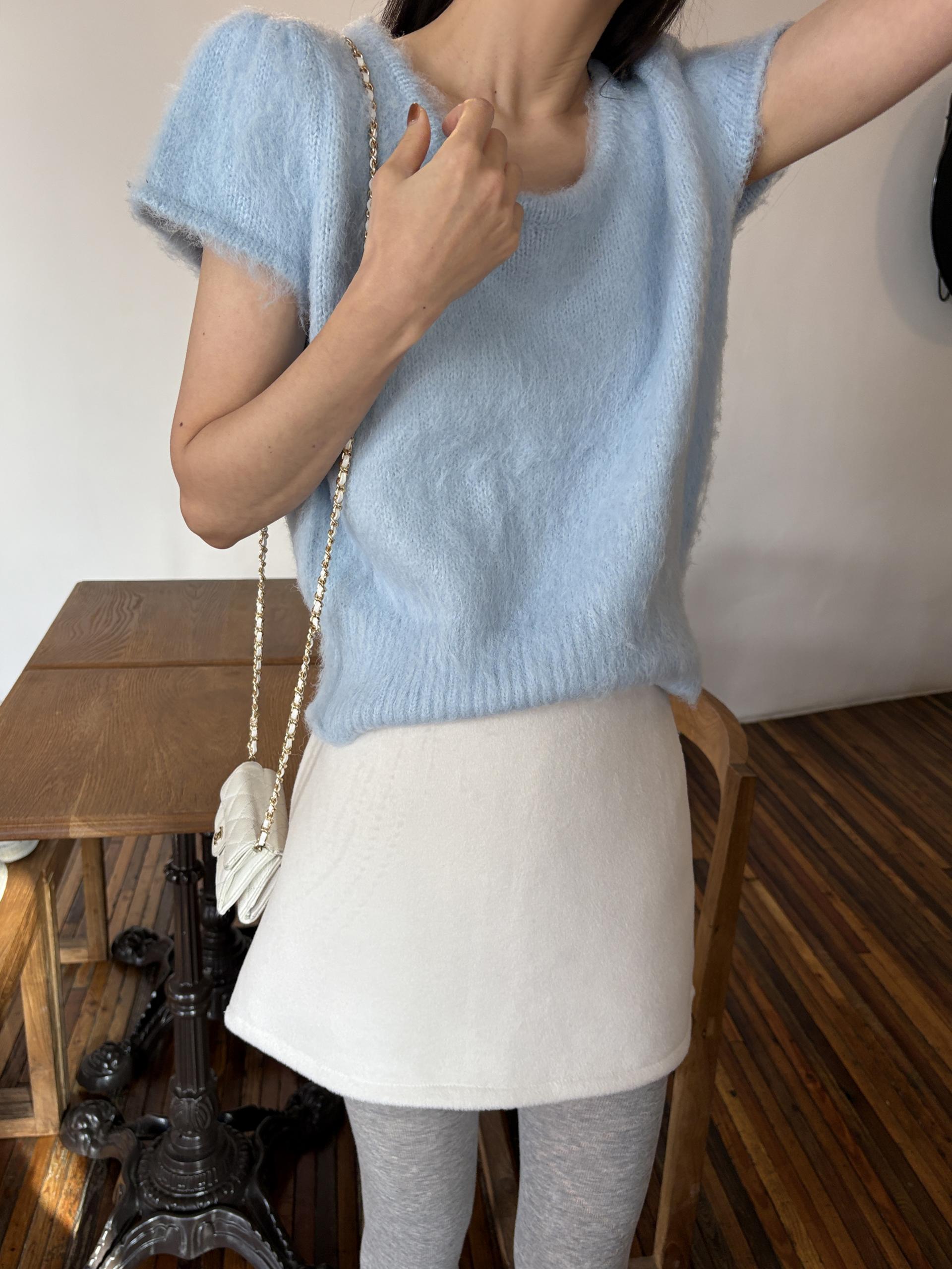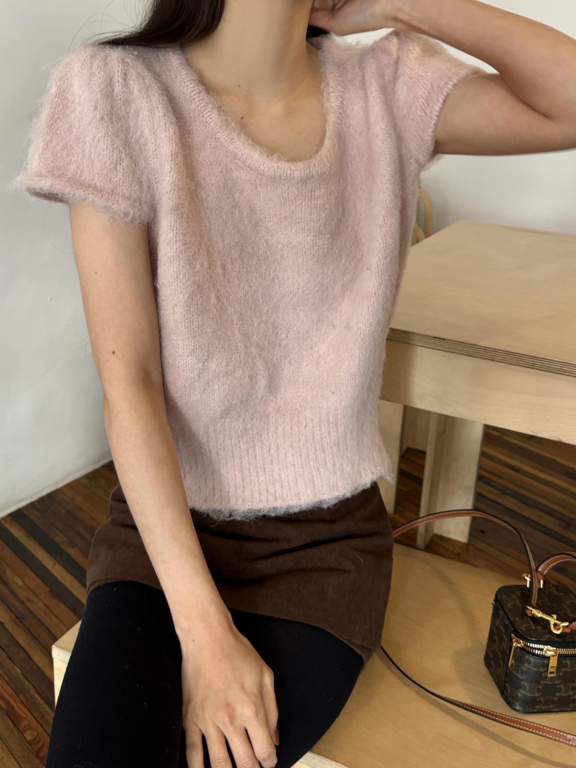 보송하게 결이 살아있는 헤어리 텍스처가 매력적인 반팔 니트입니다.