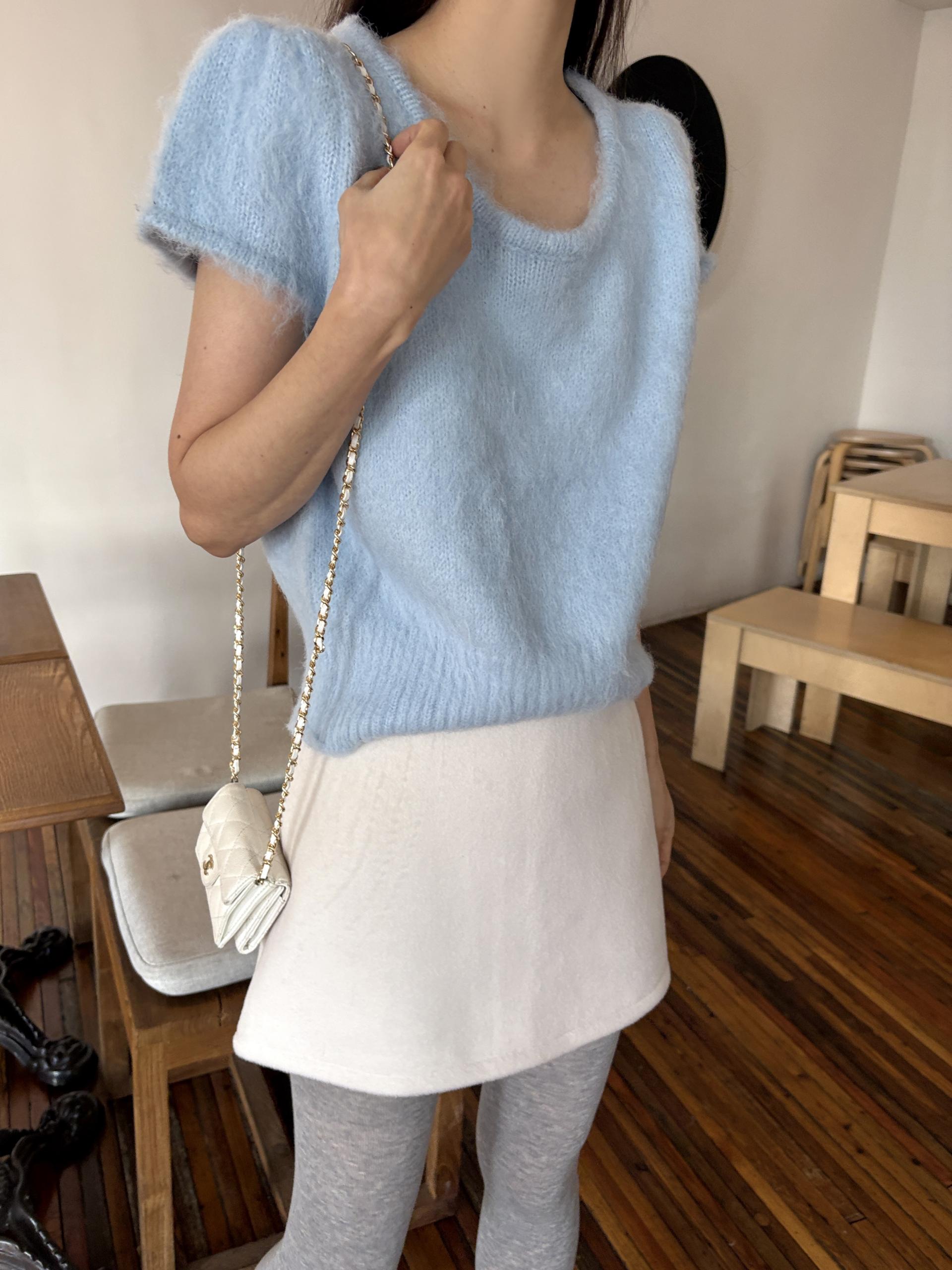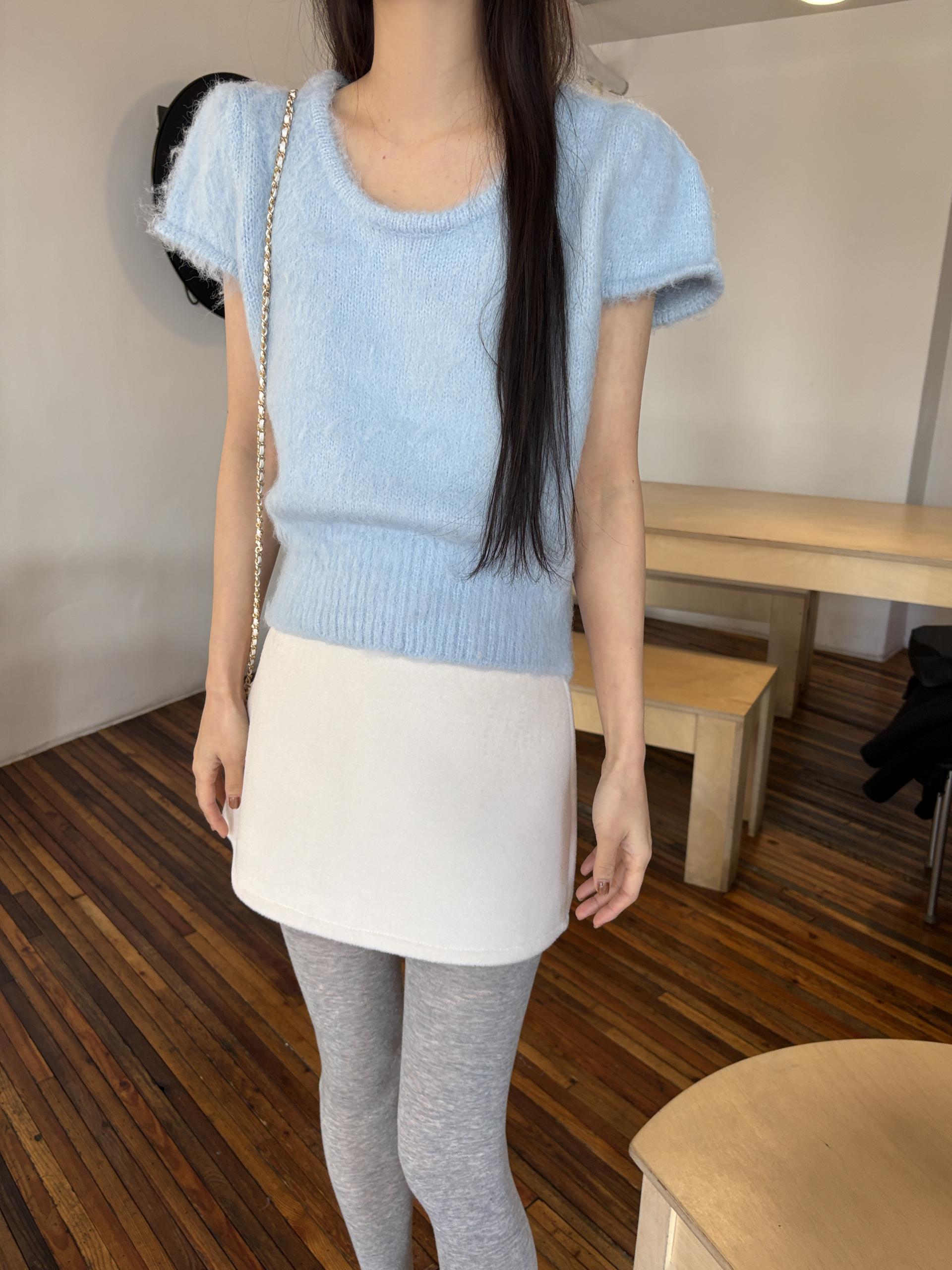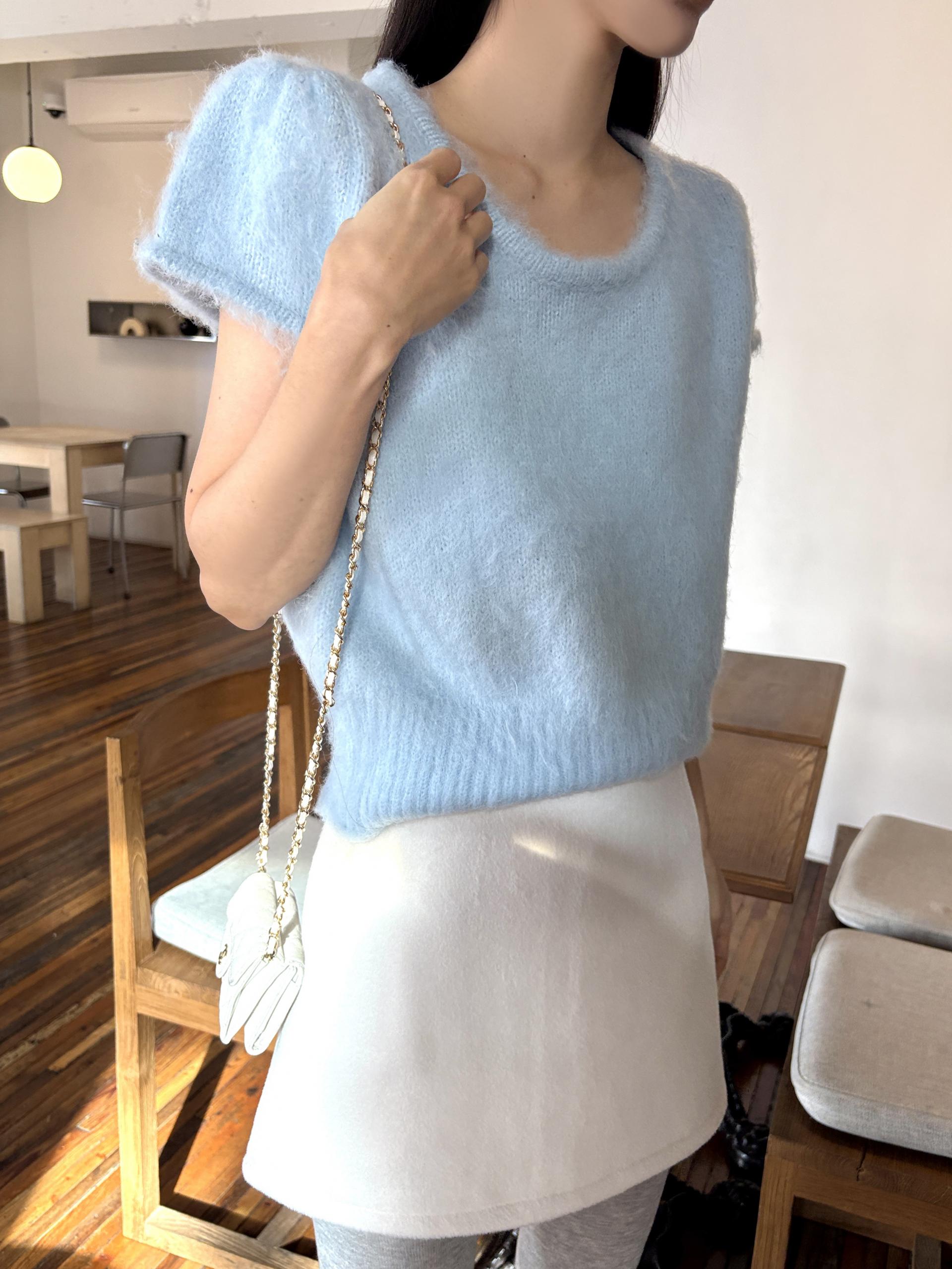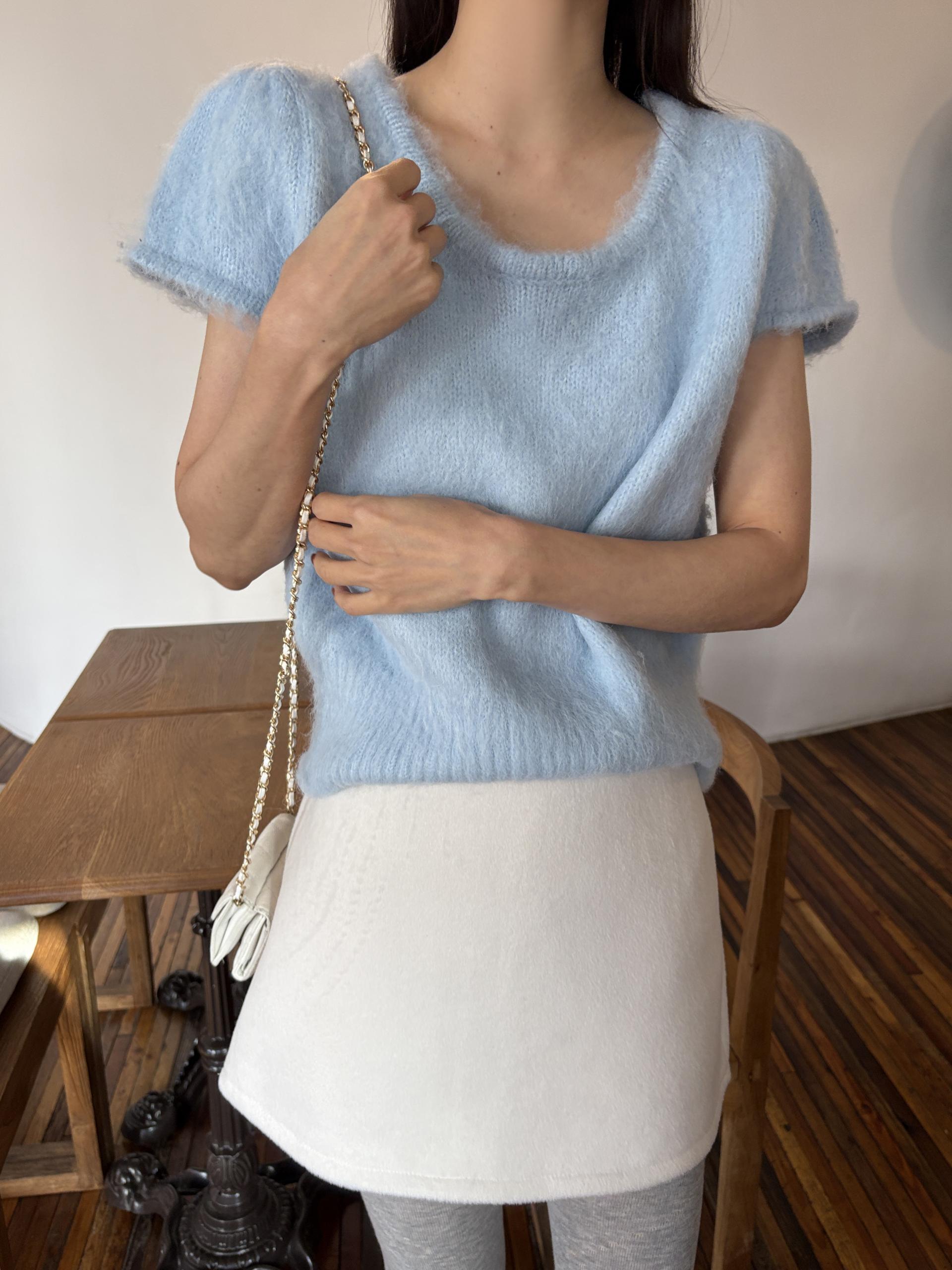 보송하게 결이 살아있는 헤어리 텍스처가 매력적인 반팔 니트입니다.