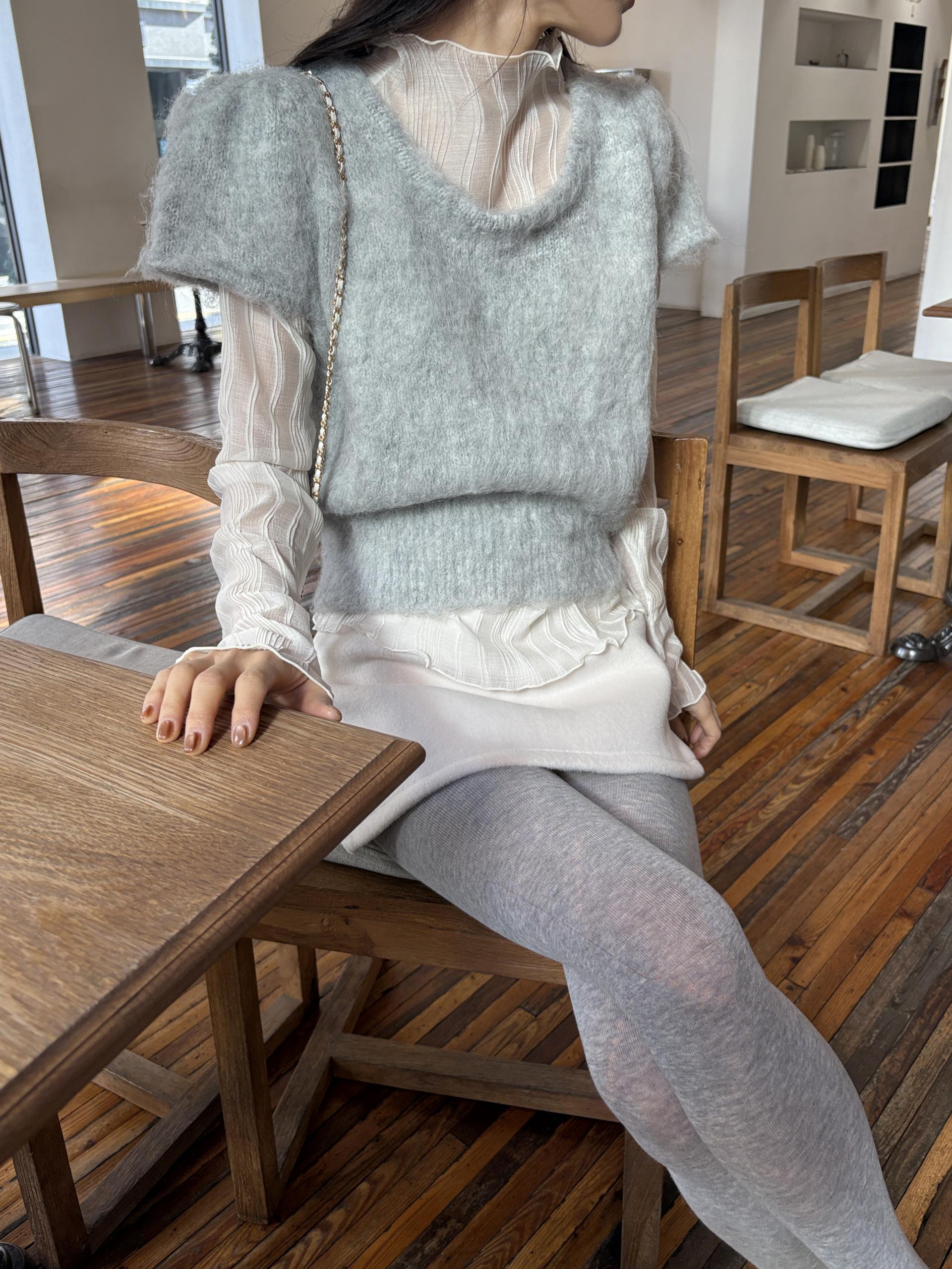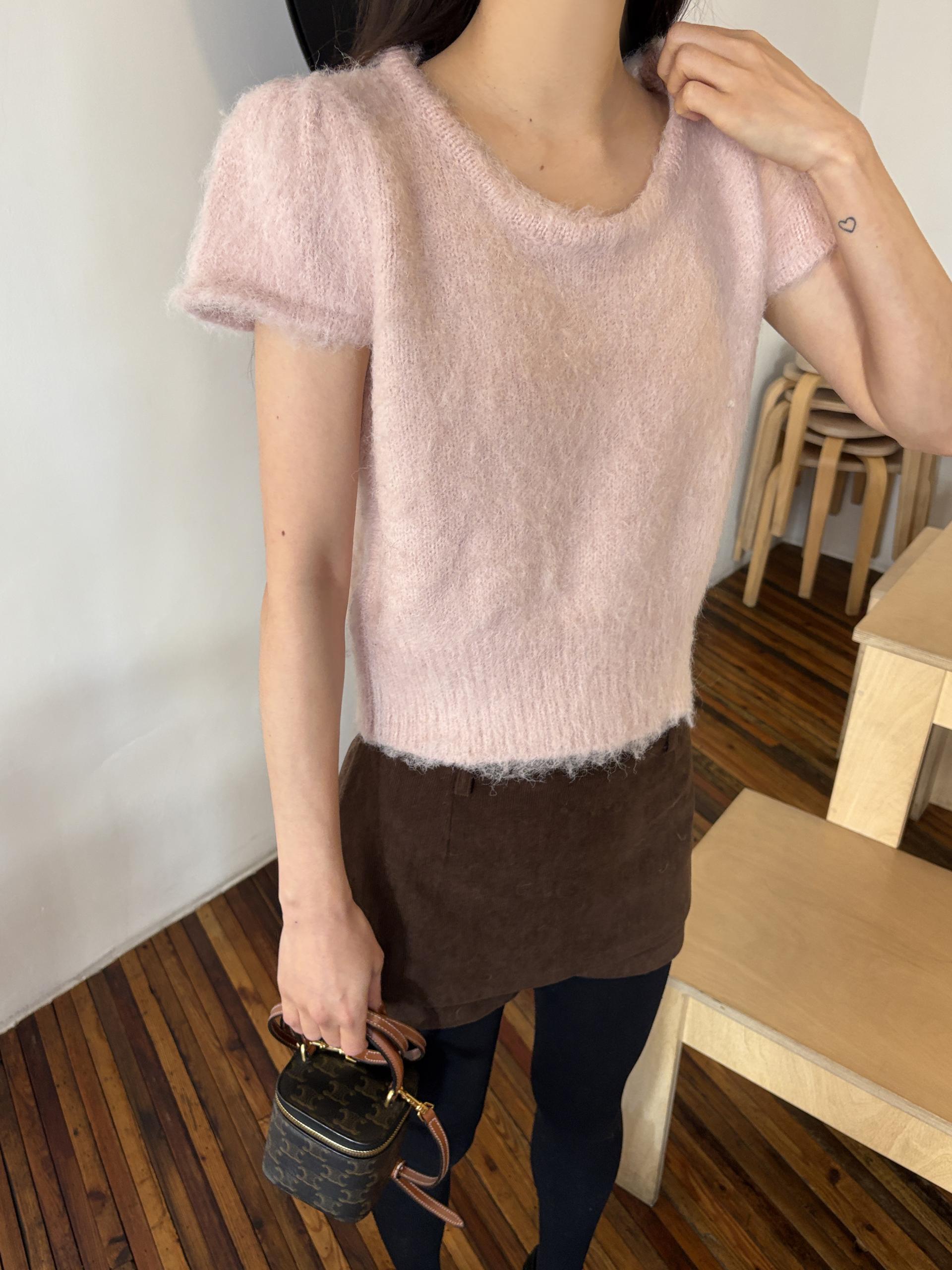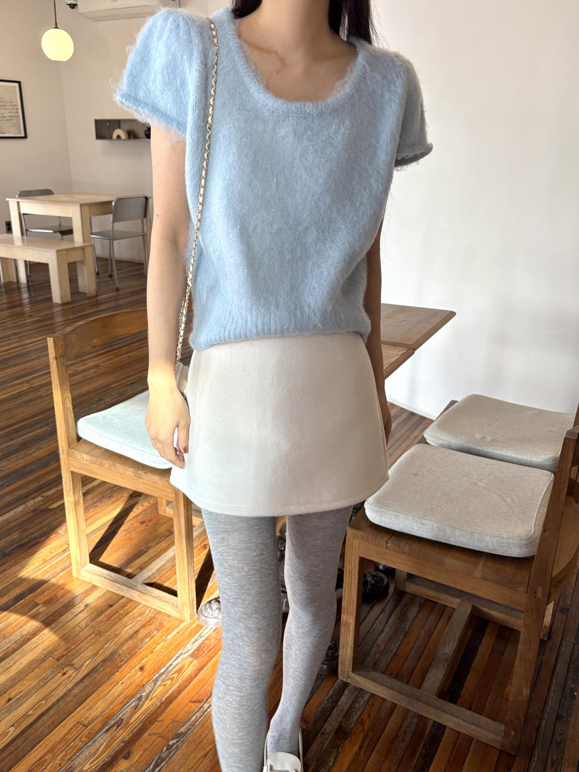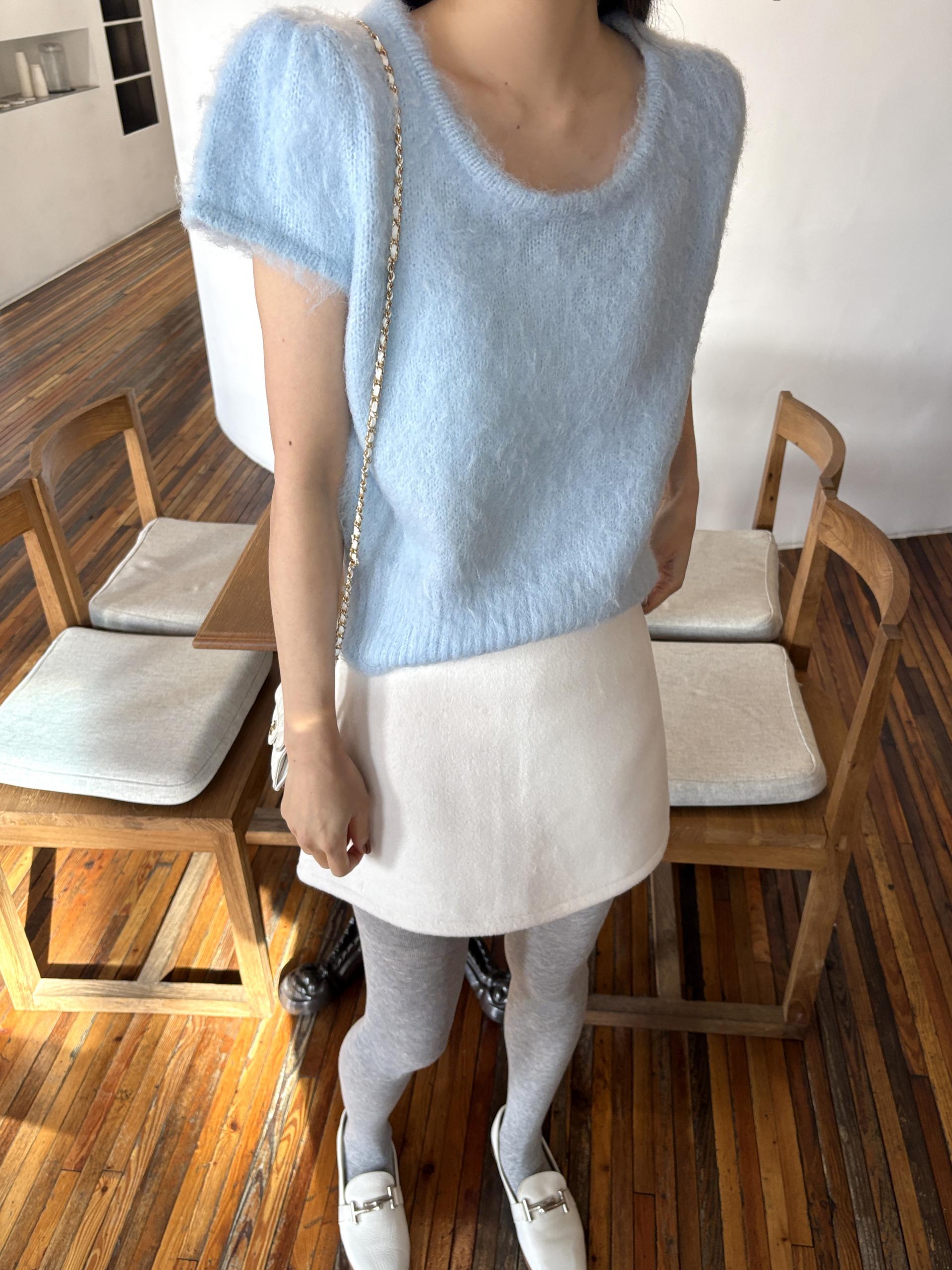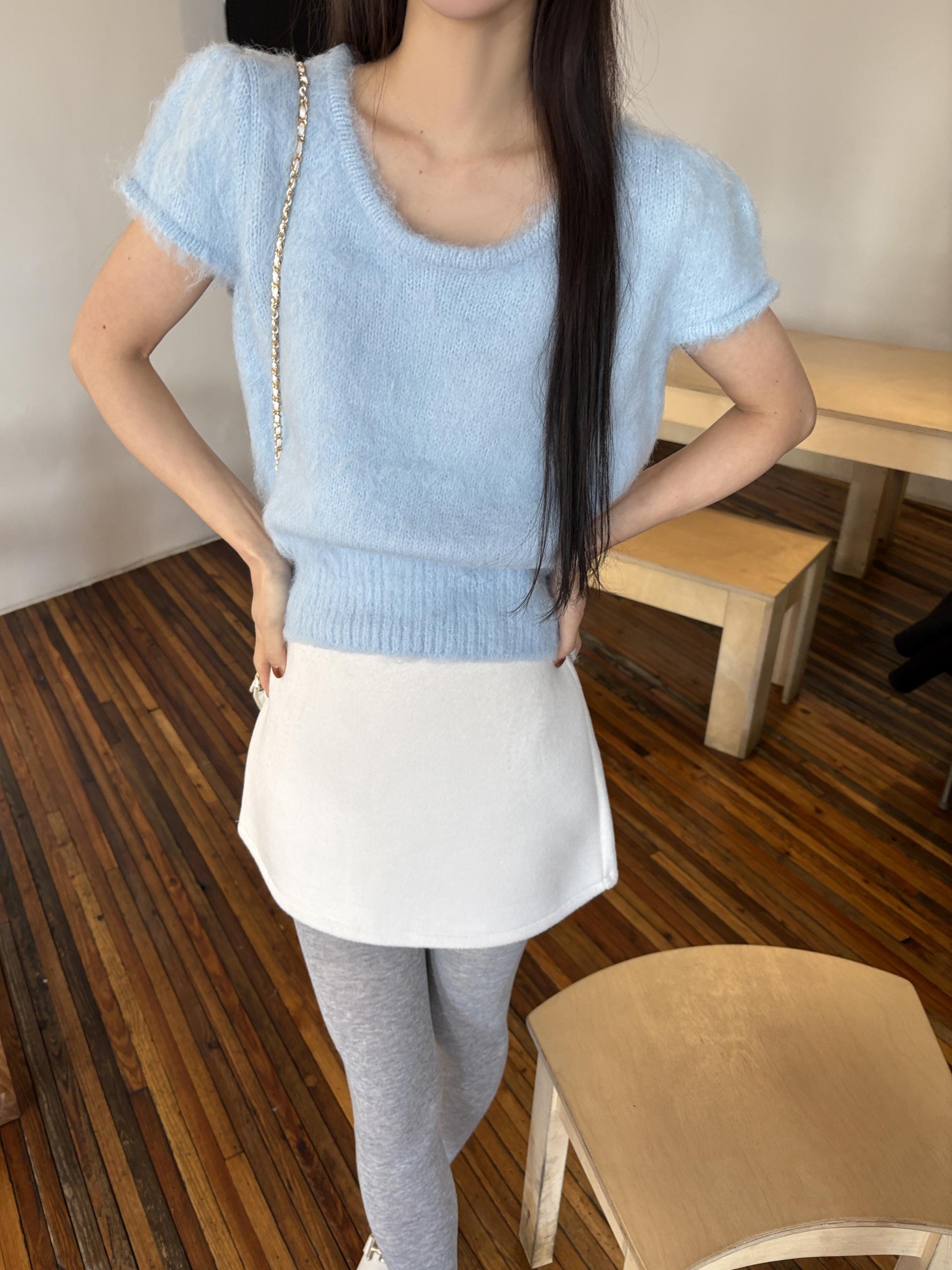 보송하게 결이 살아있는 헤어리 텍스처가 매력적인 반팔 니트입니다.