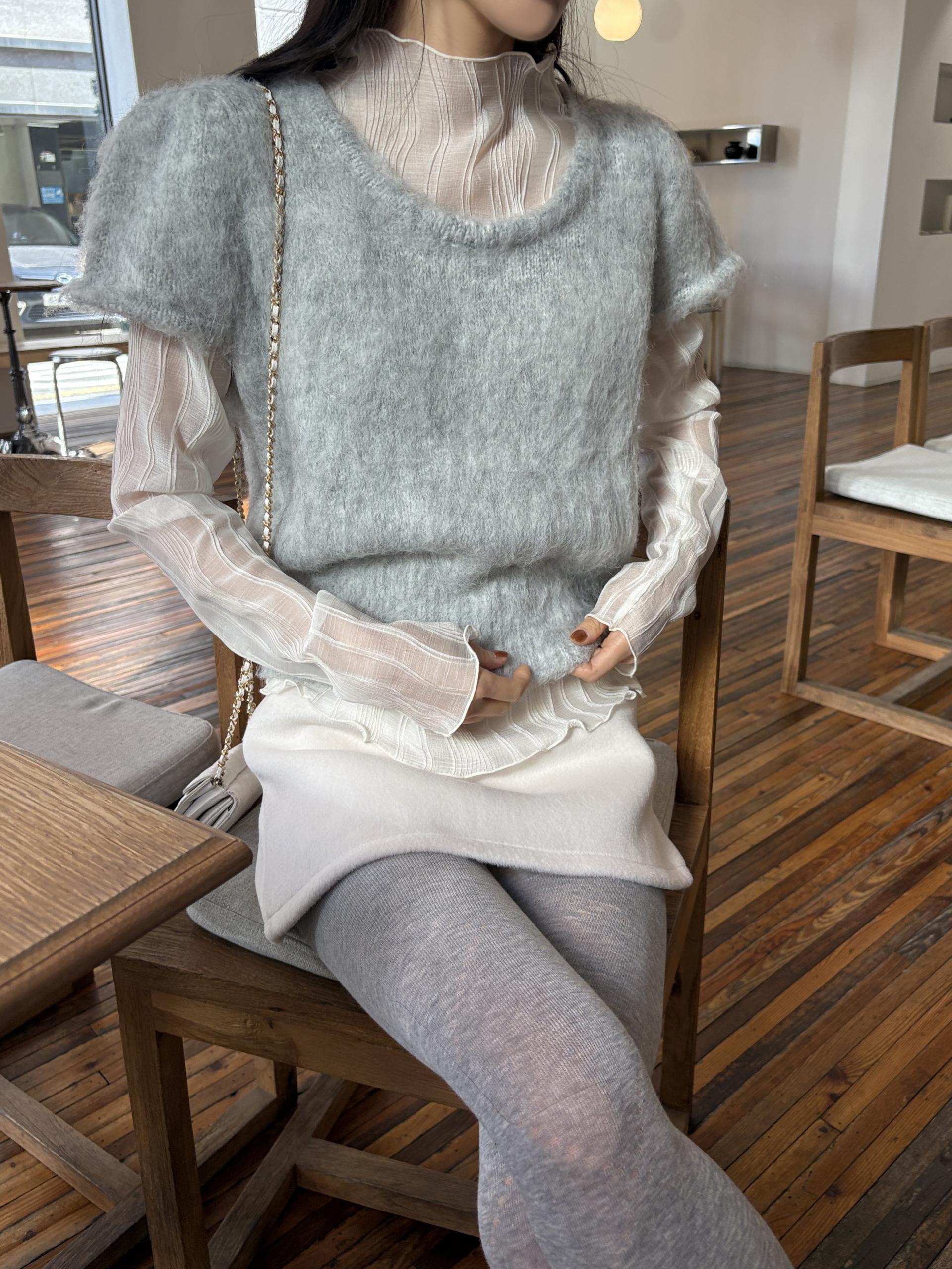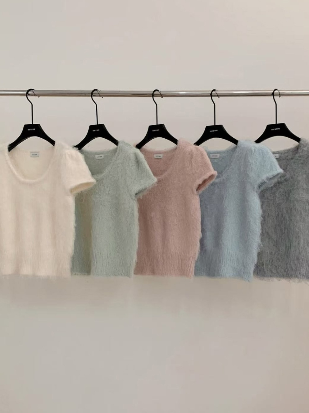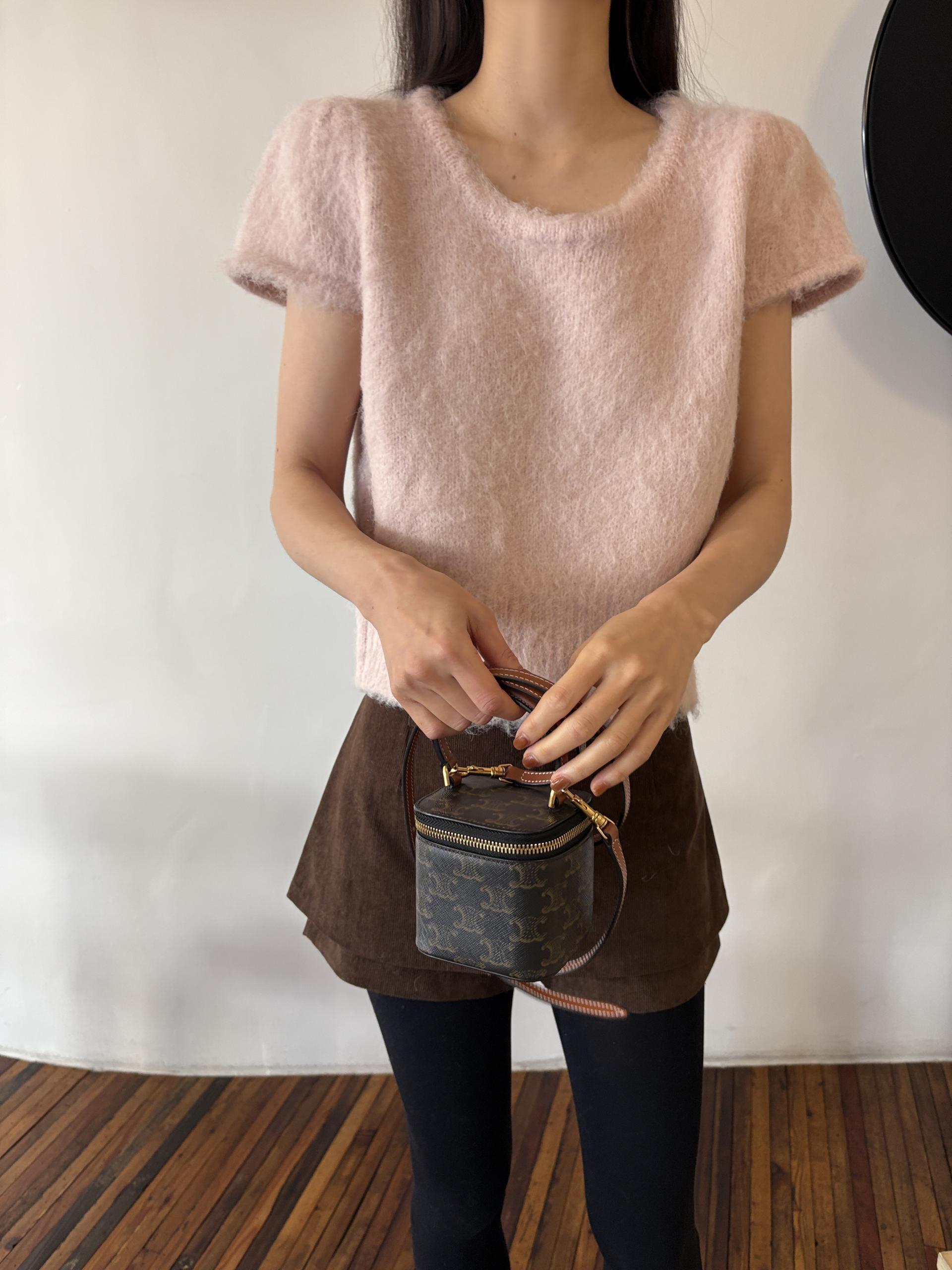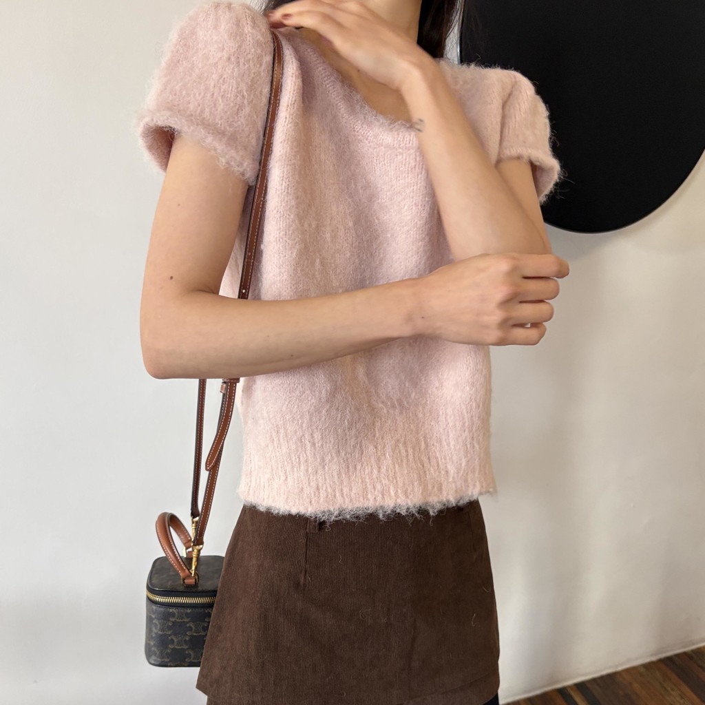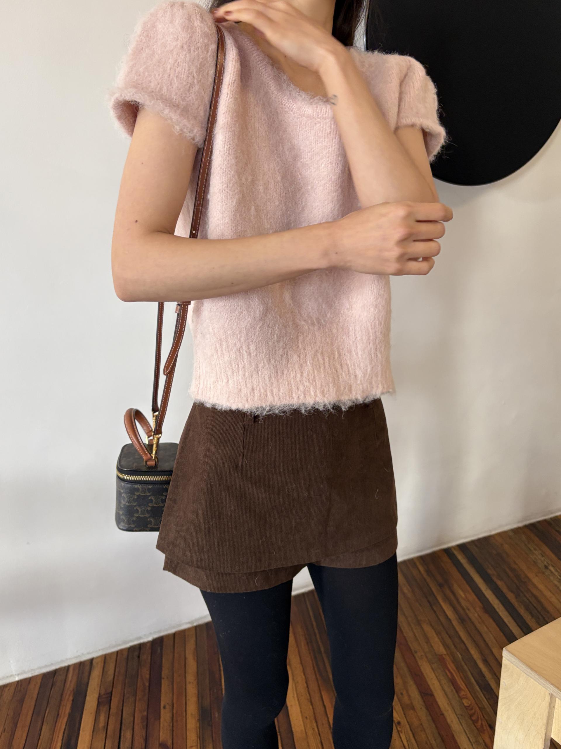 보송하게 결이 살아있는 헤어리 텍스처가 매력적인 반팔 니트입니다.