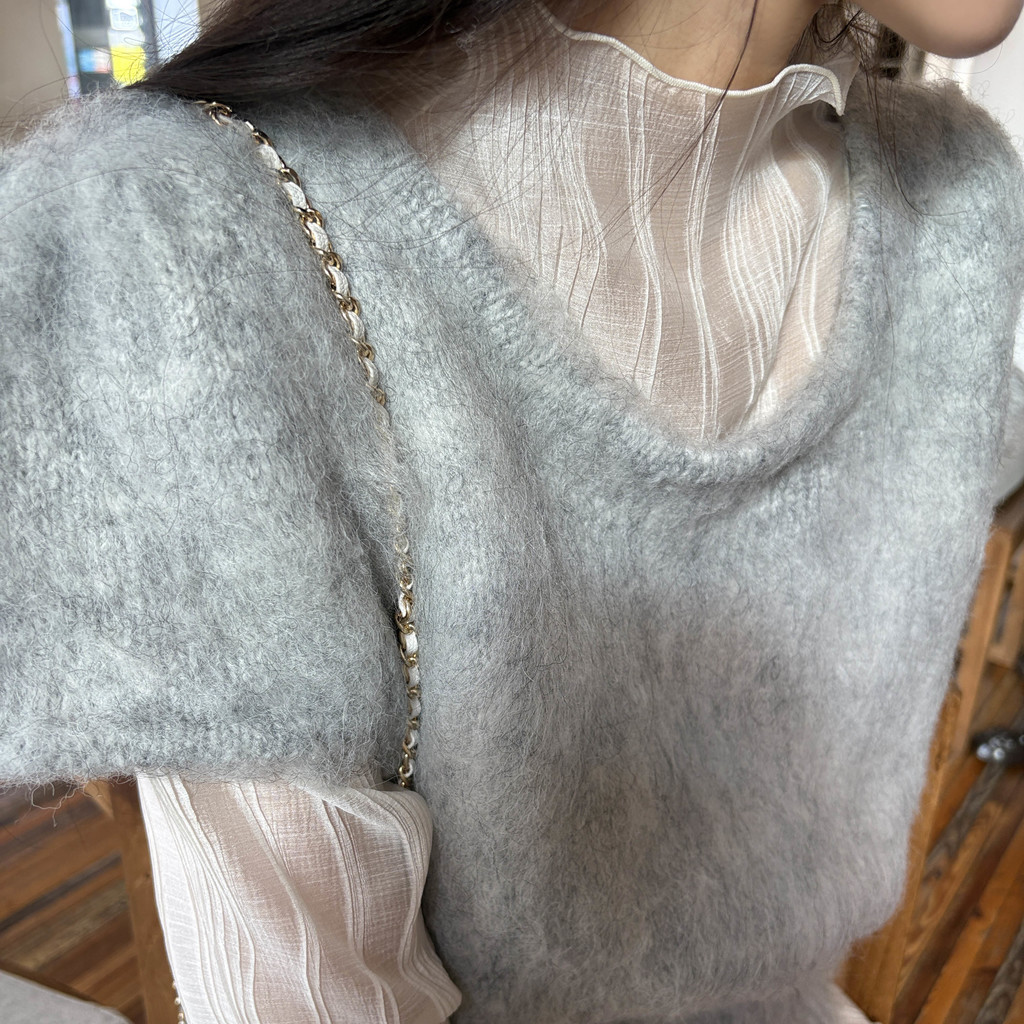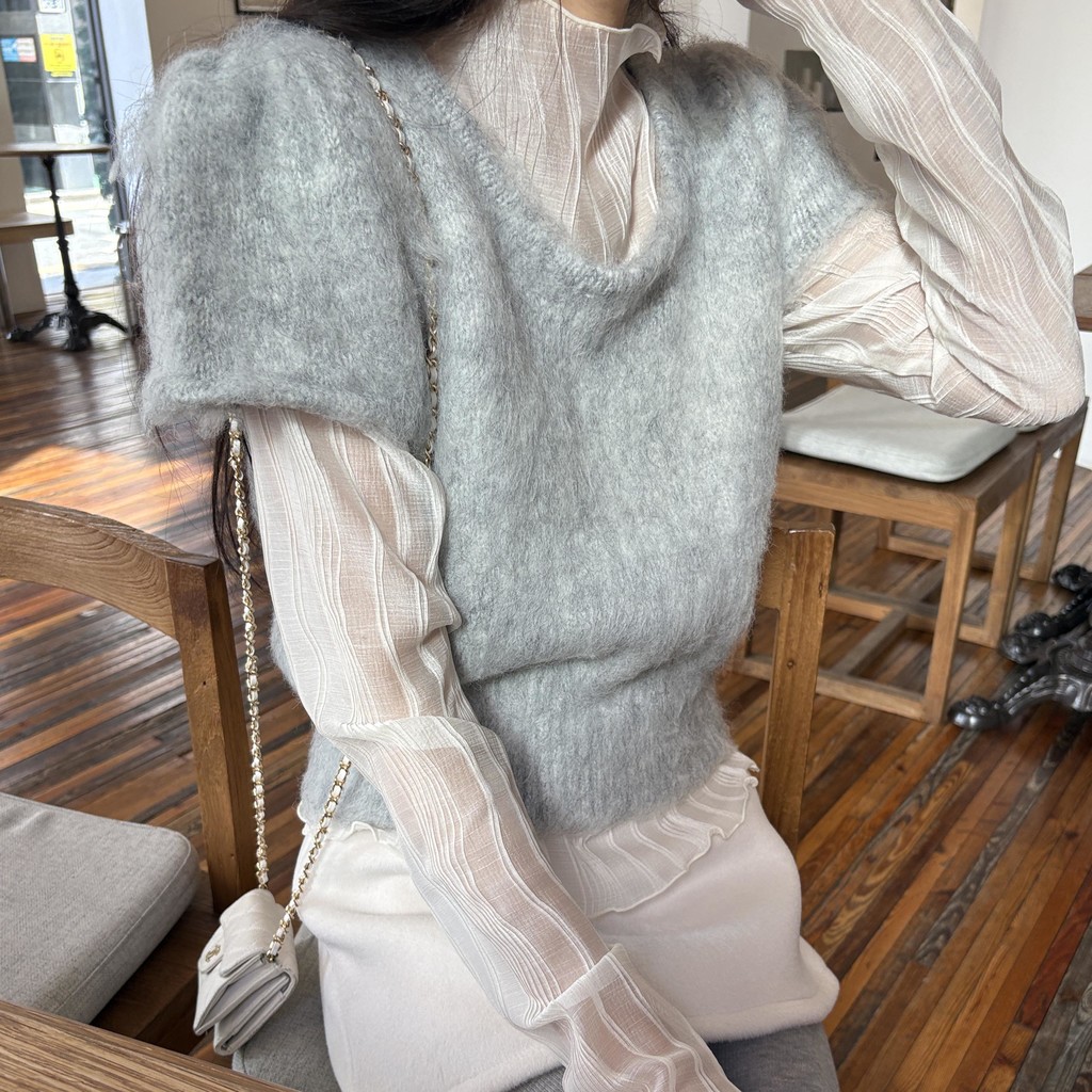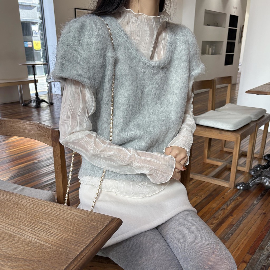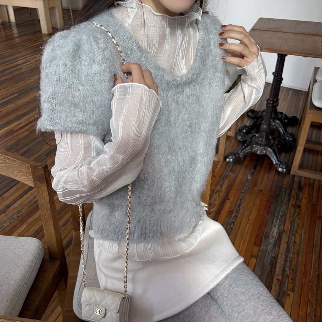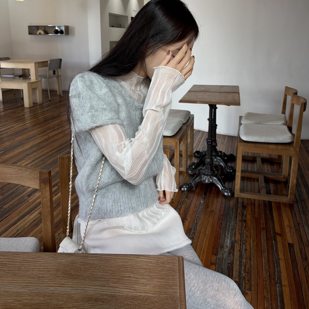 은은한 비침이 매력적인 시스루 이너 블라우스입니다.