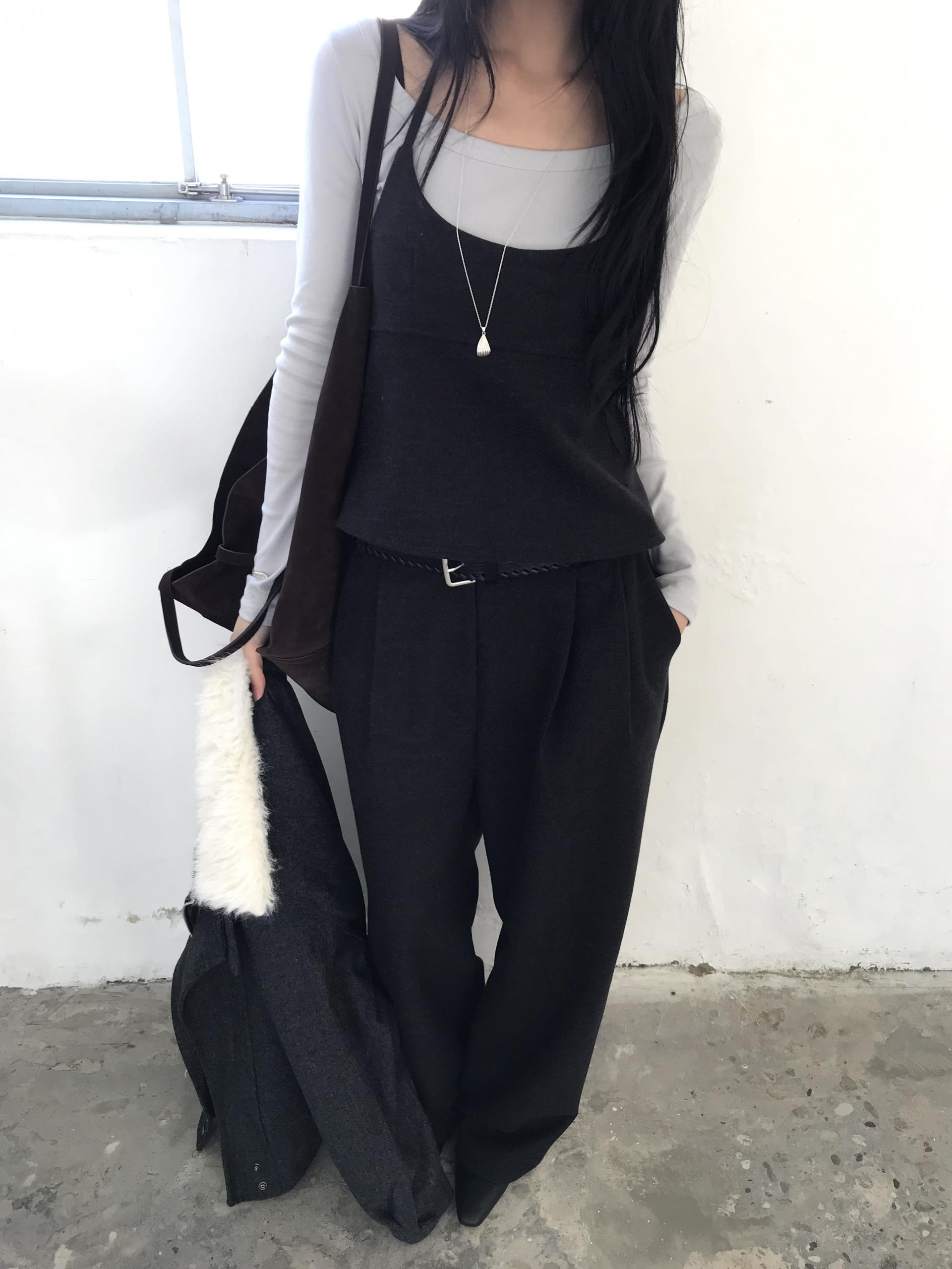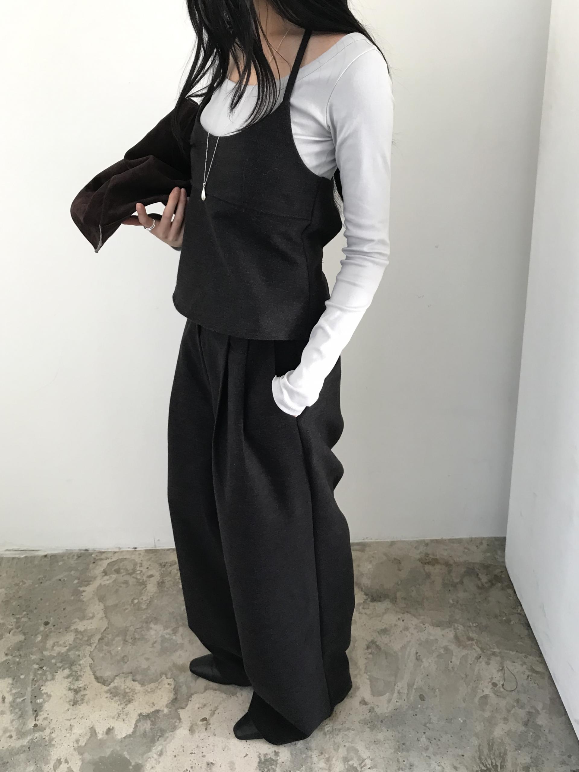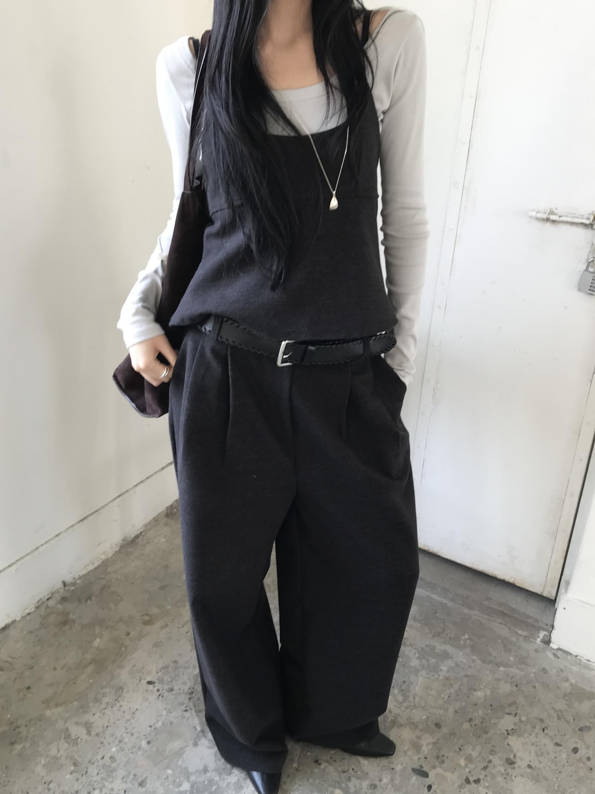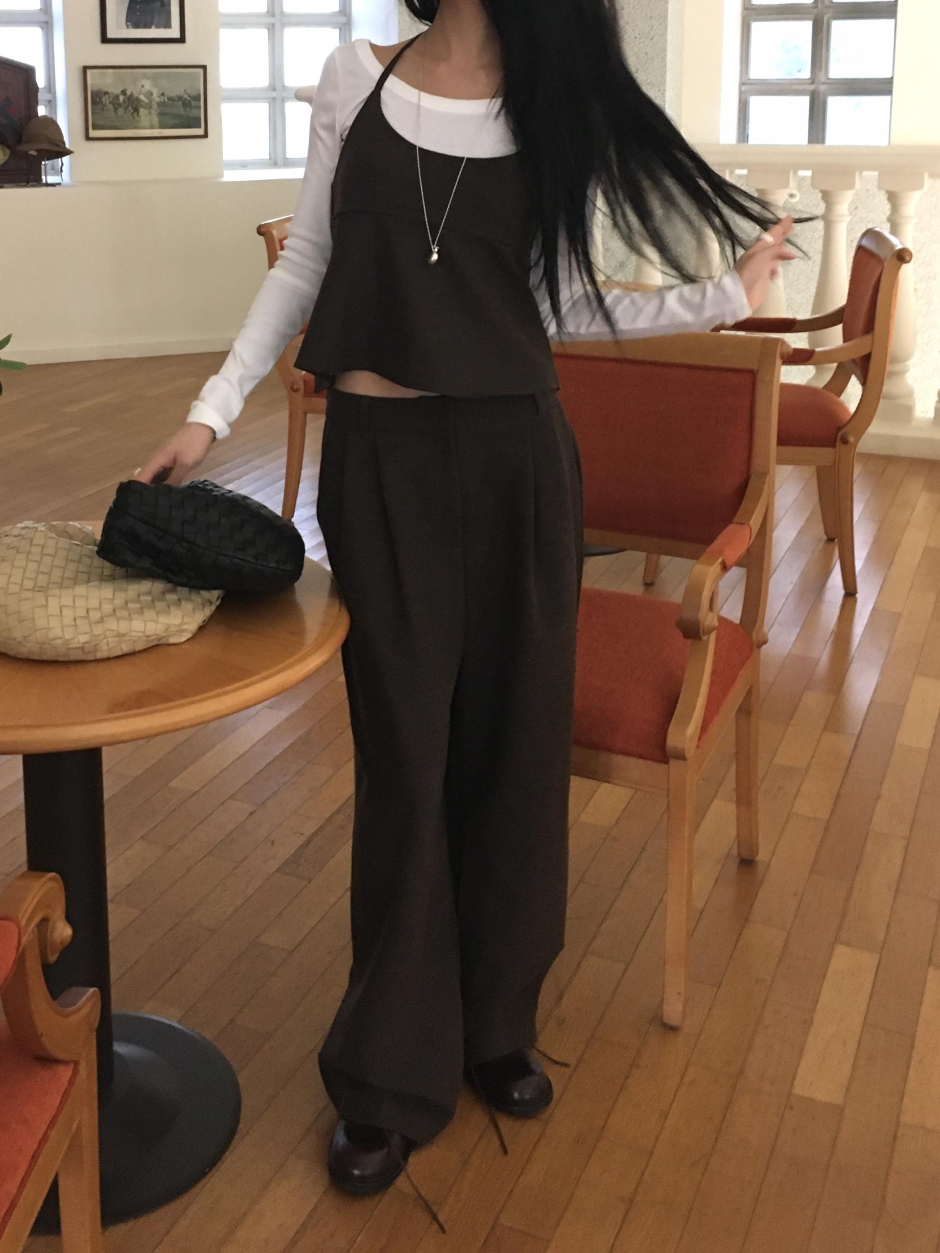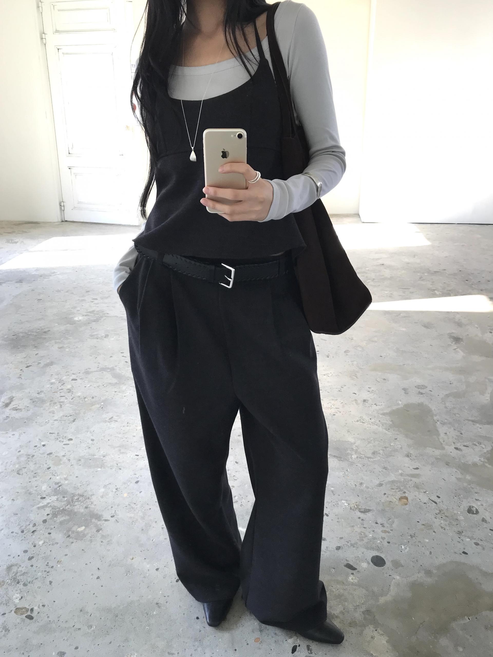 멋스러운 와이드 핏으로 다리 라인을 자엽스럽게 커버해 주며, 투핀턱 디테일이 더해져 깔끔하고 세련된 실루엣을 연출합니다.