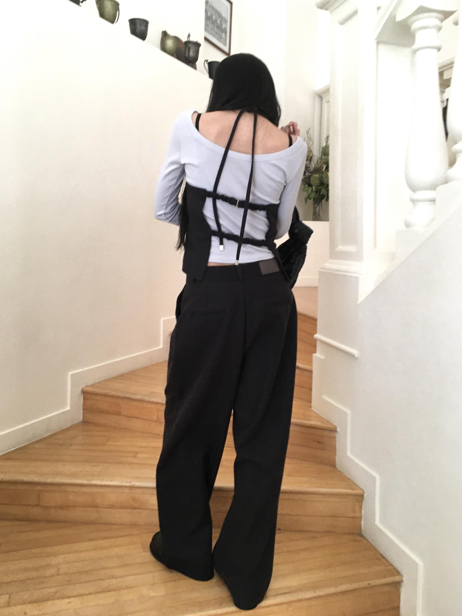 골반에 걸어 착용하는 로우웨이스트 팬츠로 이런 핏의 팬츠는 허리가 가늘고 힙, 허벅지 발달형 고객님들께 특히 추천드립니다.