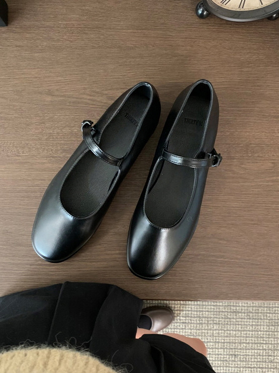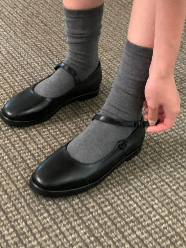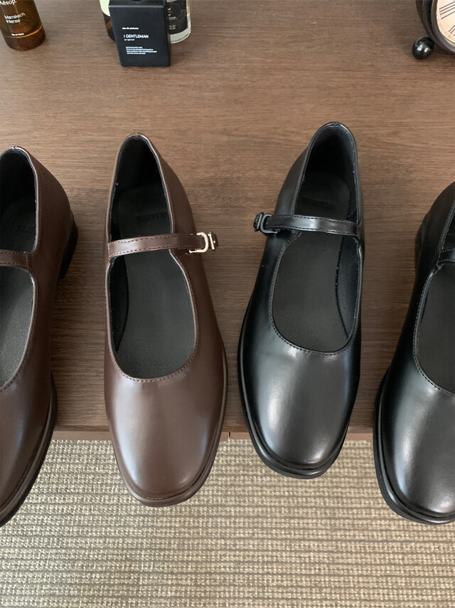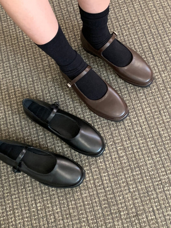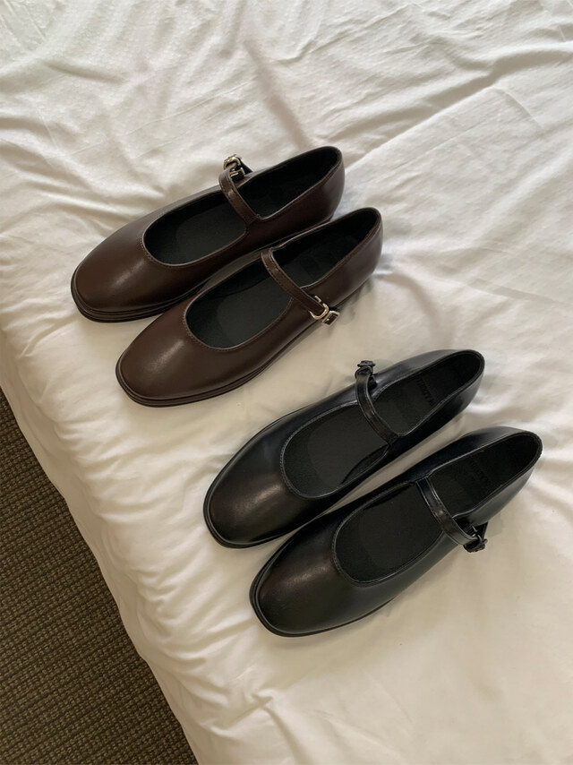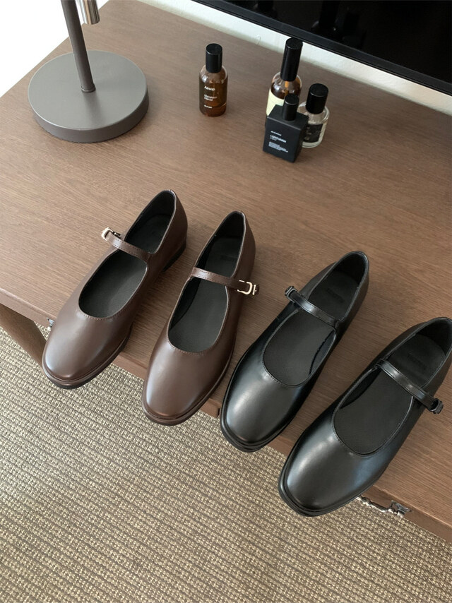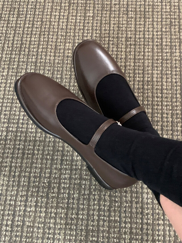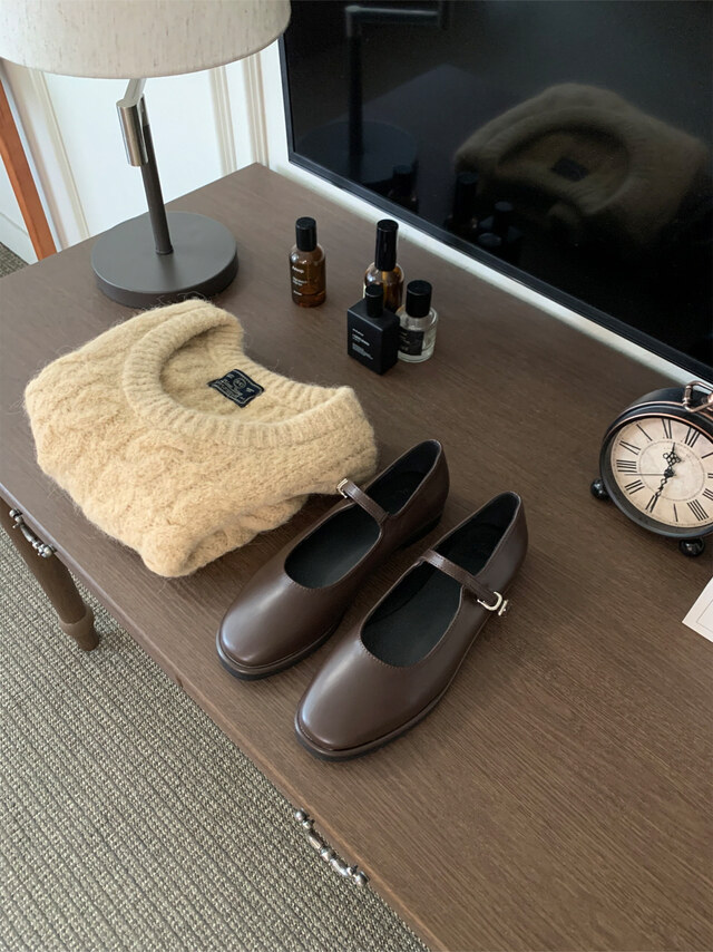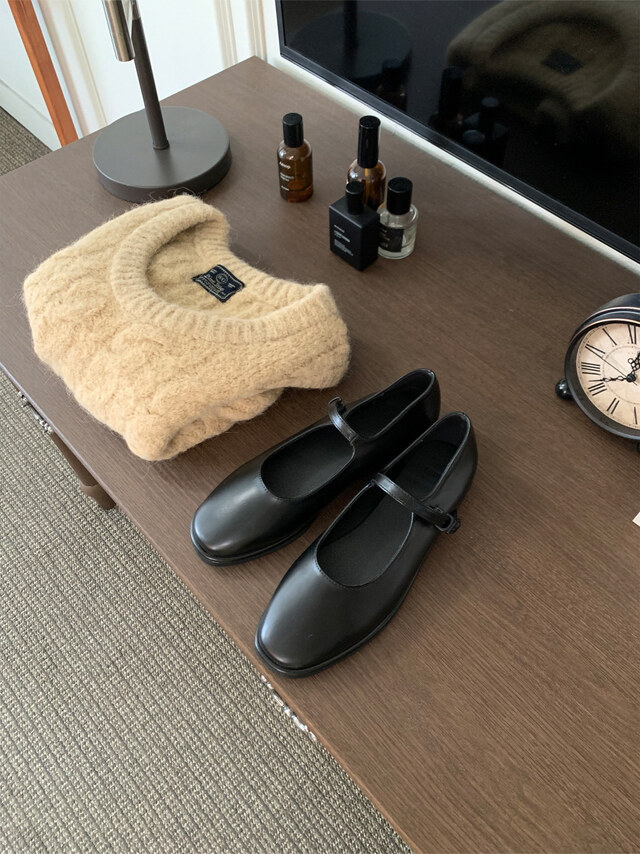 클래식하고 앤틱한 무드의 레더 메리제인 슈즈입니다.