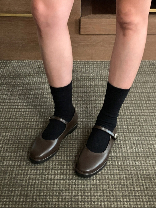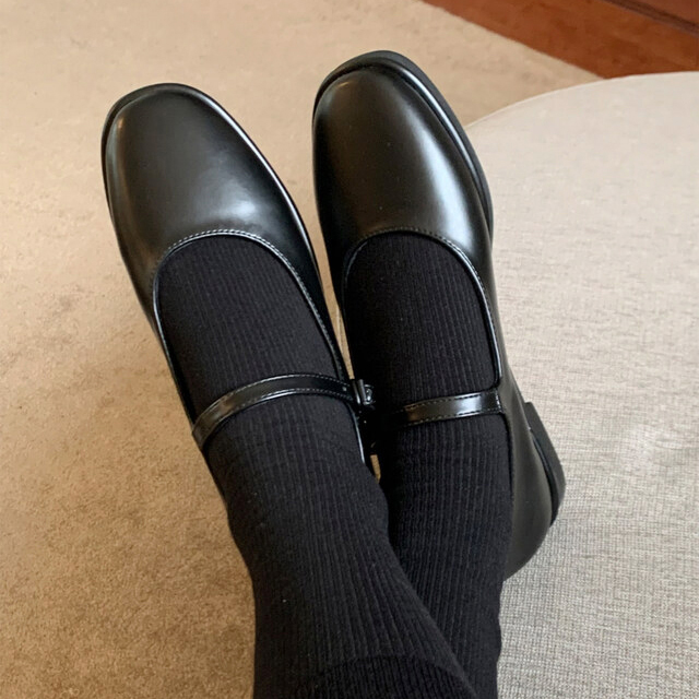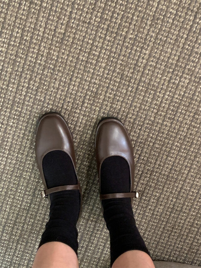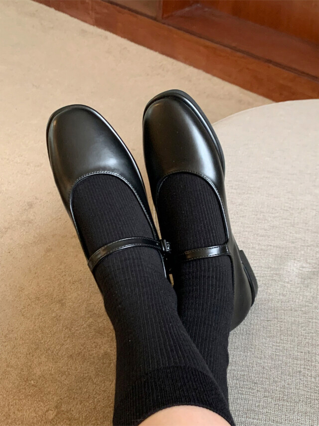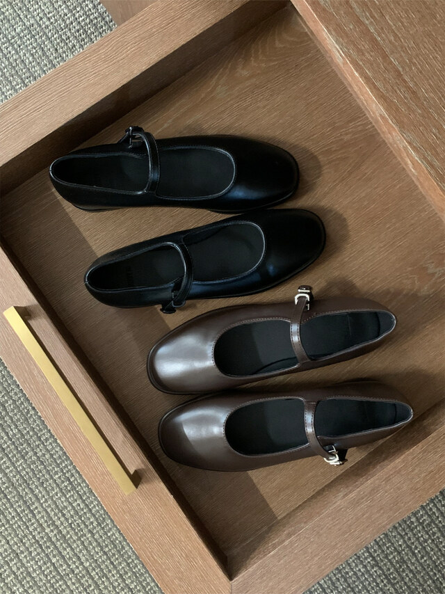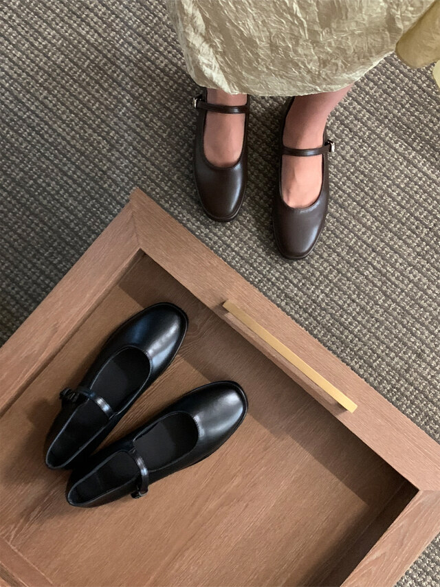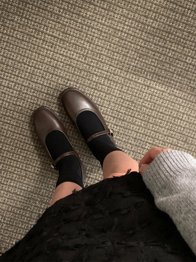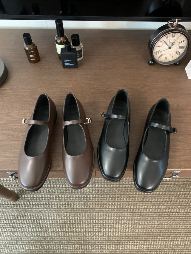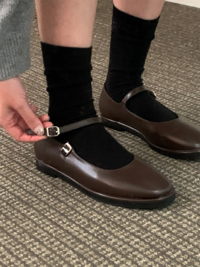 클래식하고 앤틱한 무드의 레더 메리제인 슈즈입니다.