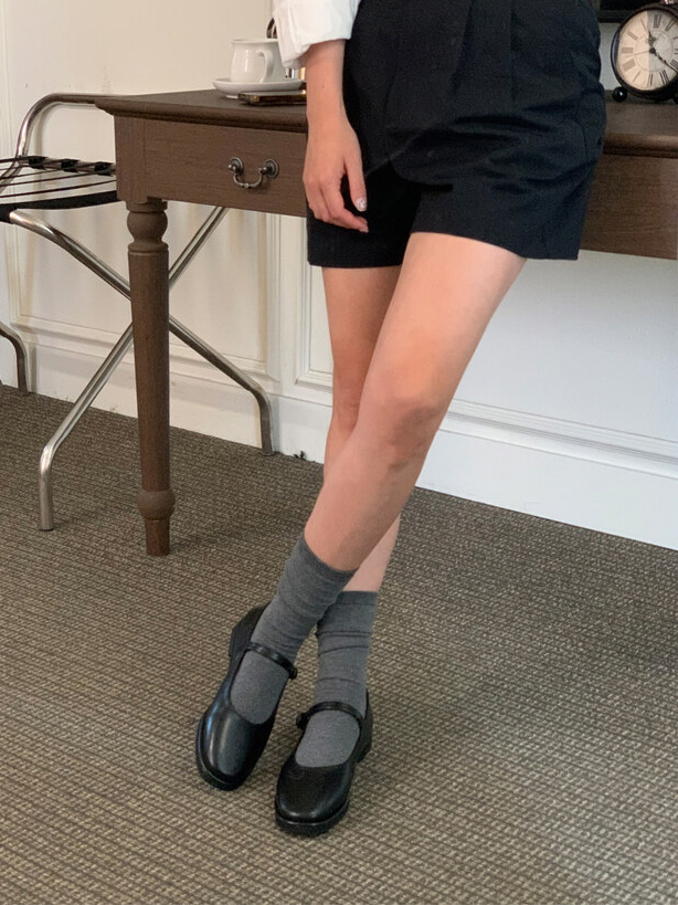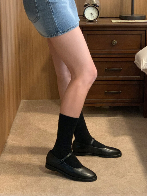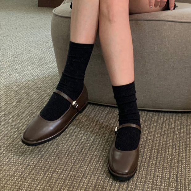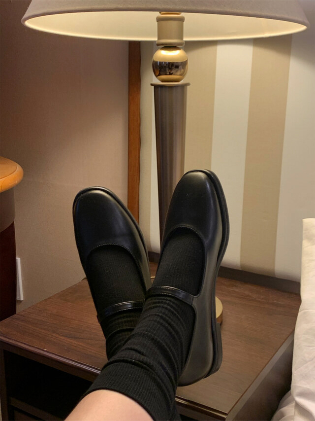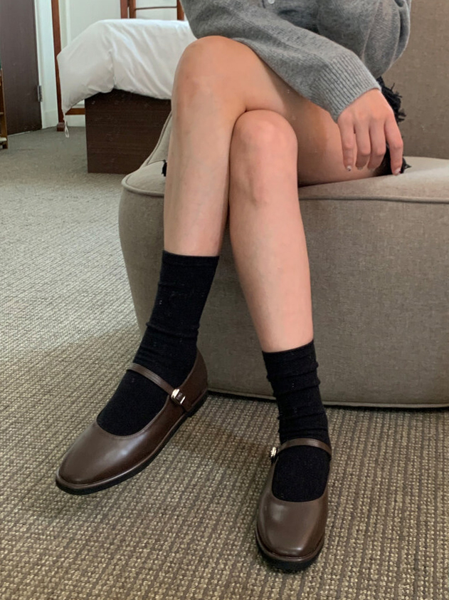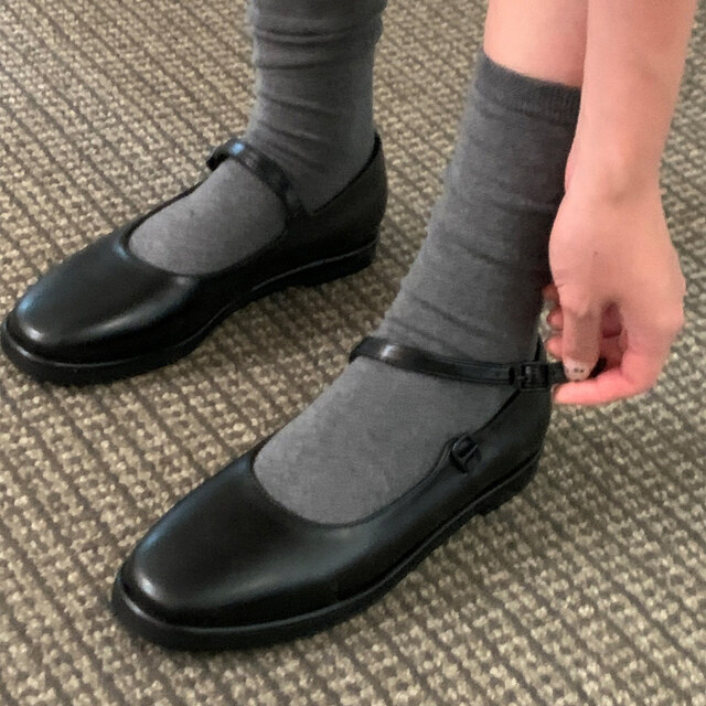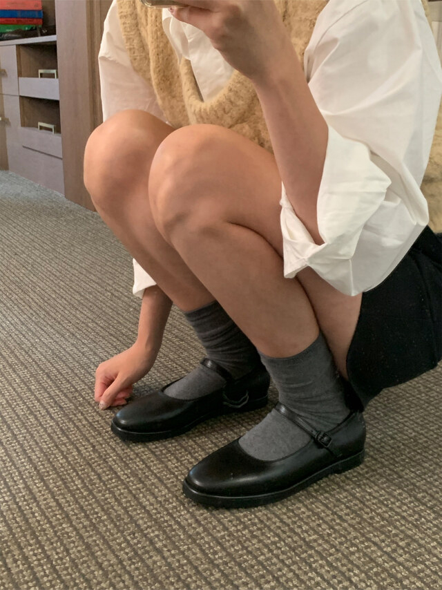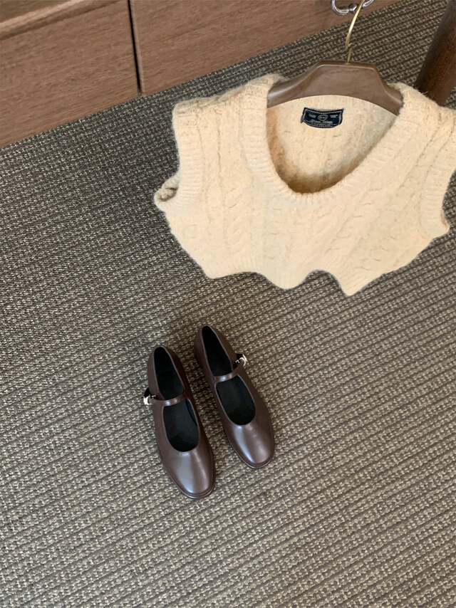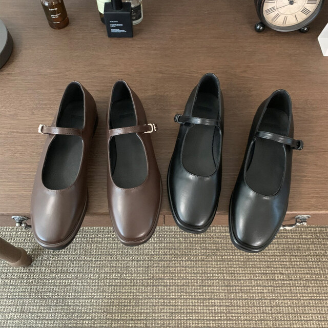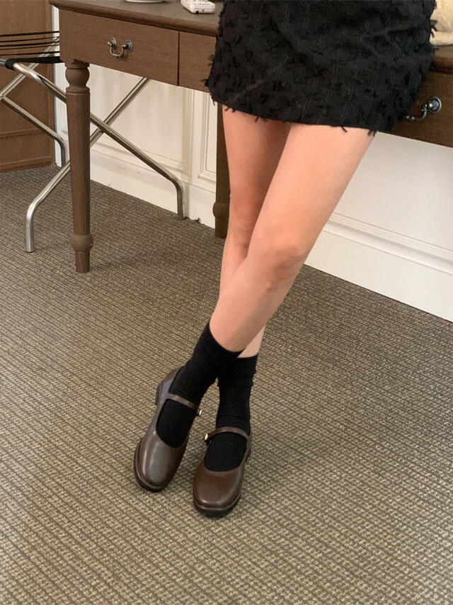 클래식하고 앤틱한 무드의 레더 메리제인 슈즈입니다.