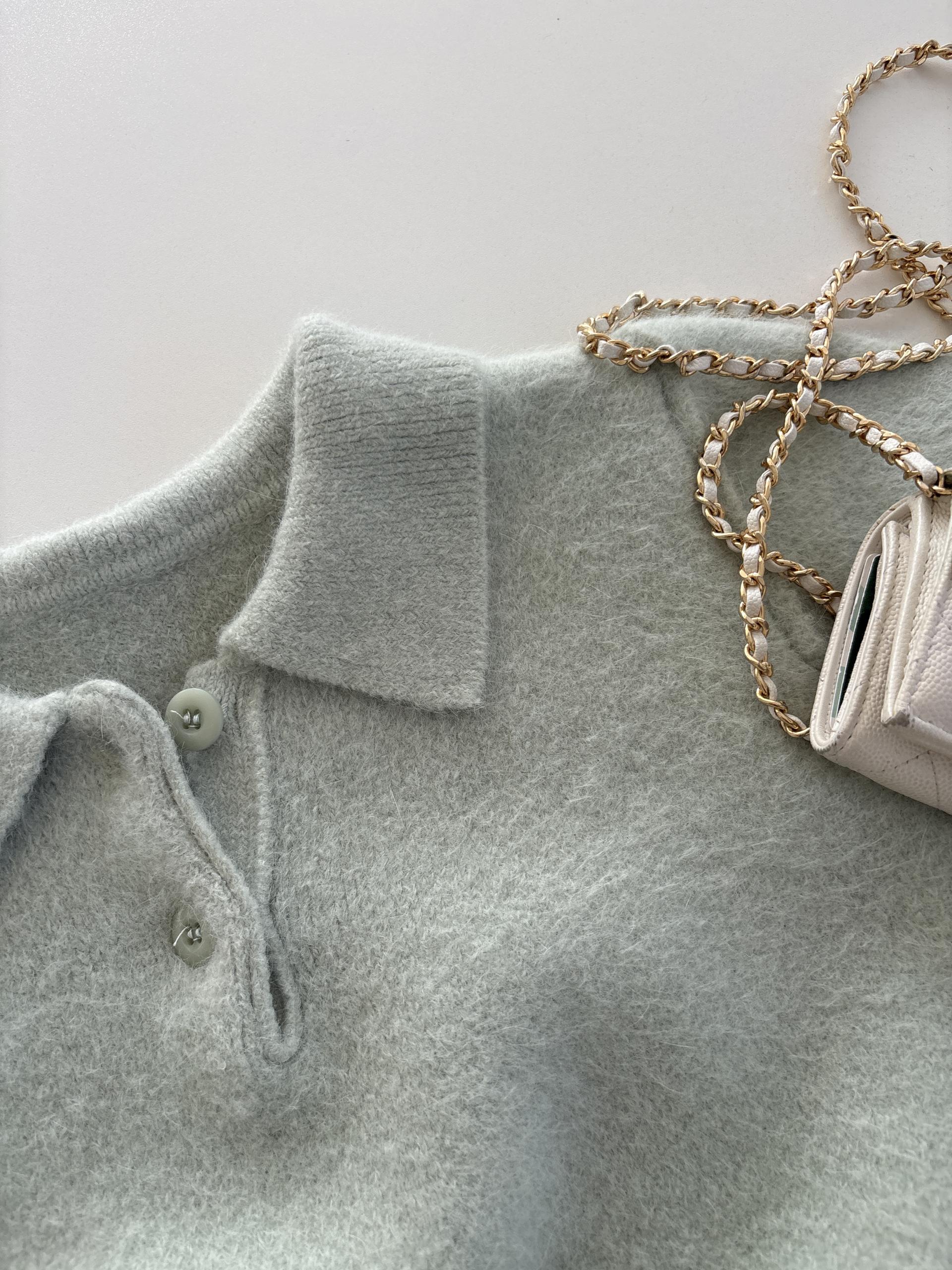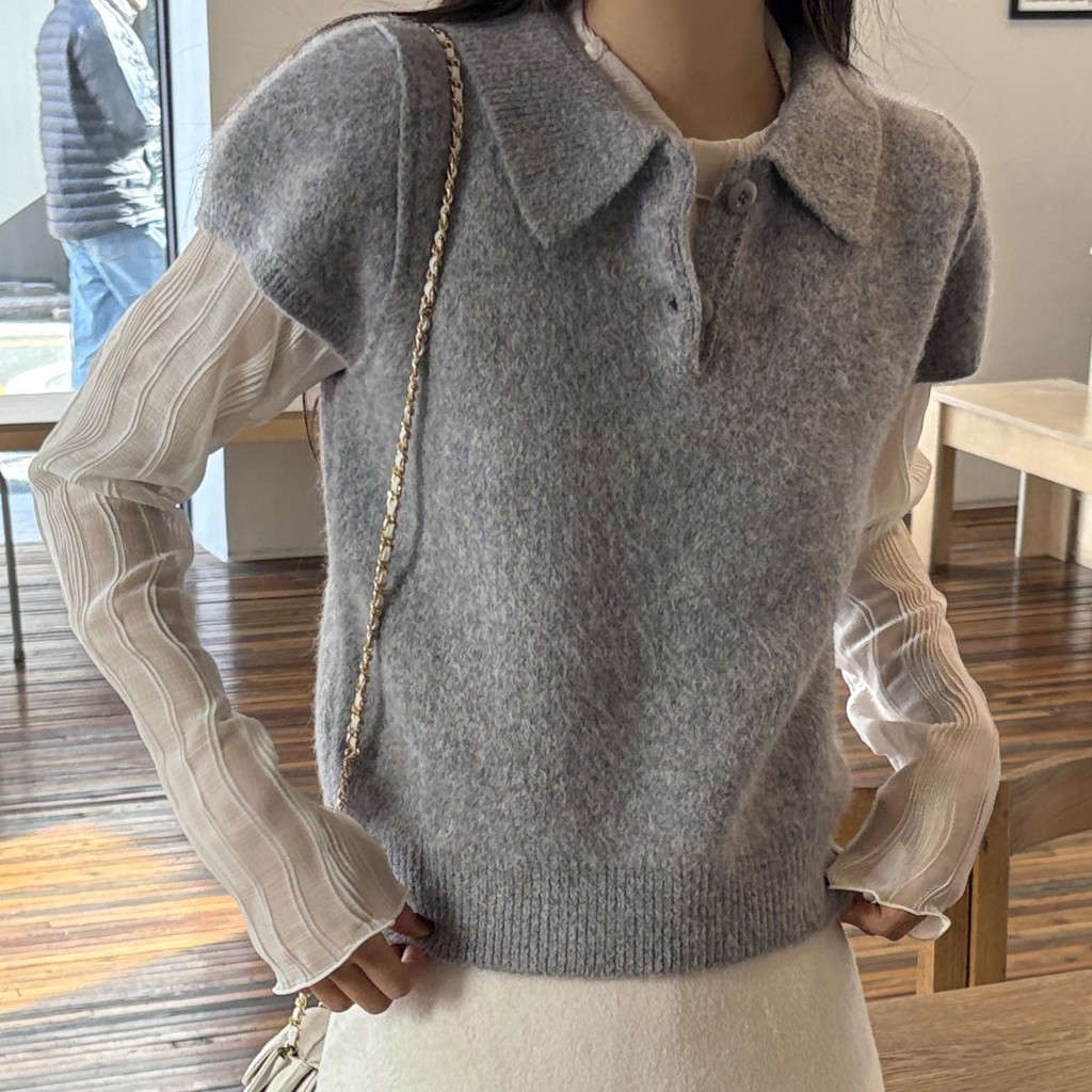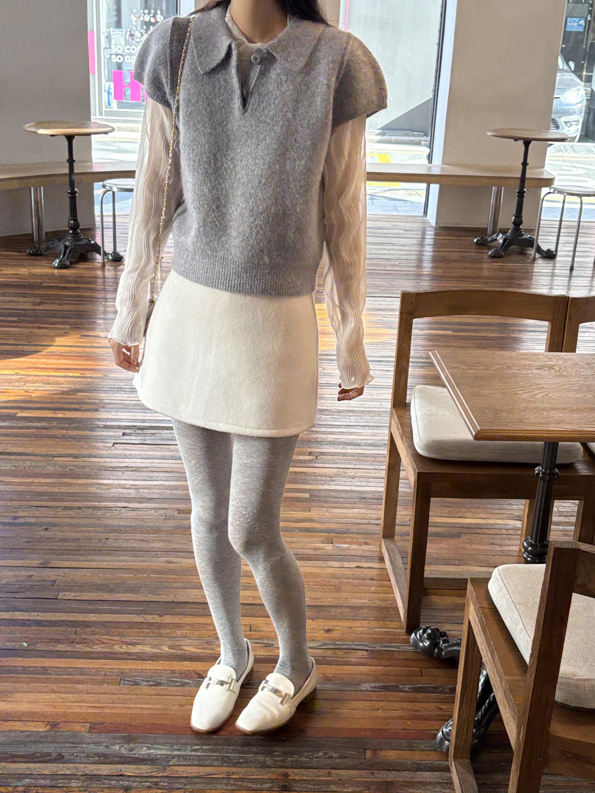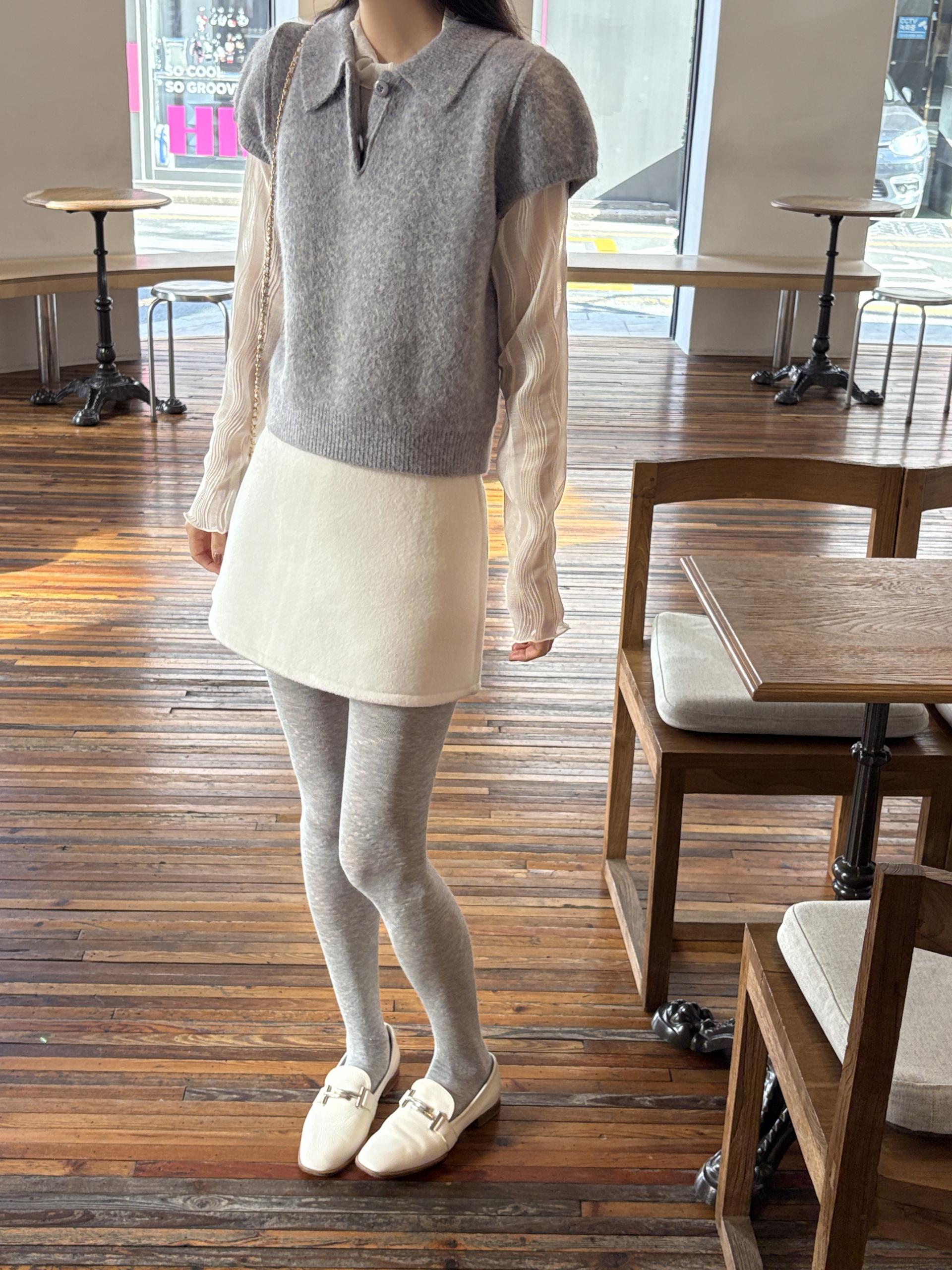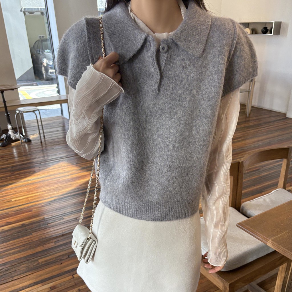 헤어리한 니트 원사로 제작되어 피부에 닿는 촉감이 부드럽고, 미니멀한 카라넥에 버튼 포인트를 더해 단정하면서도 여성스러운 무드를 연출합니다.