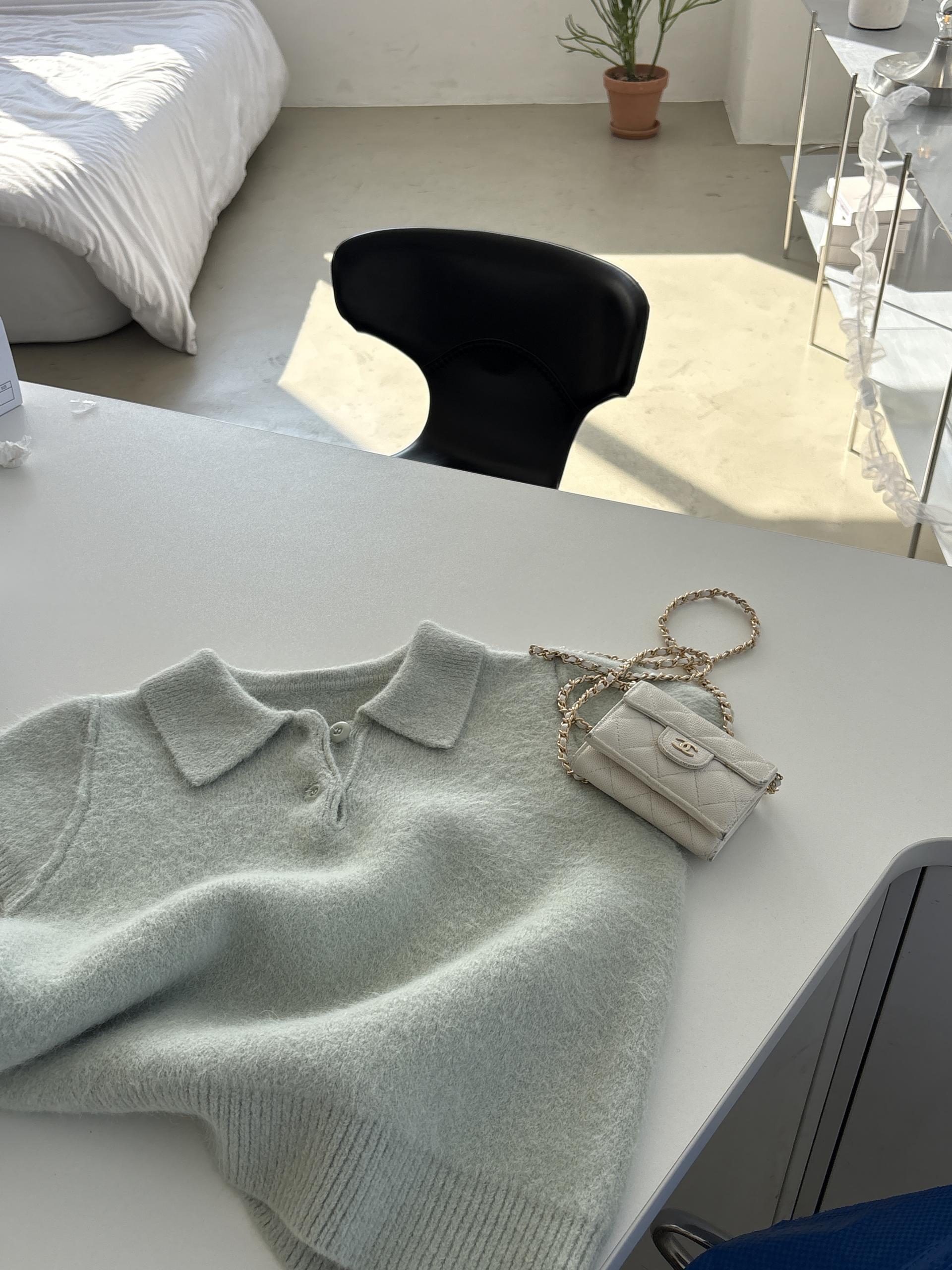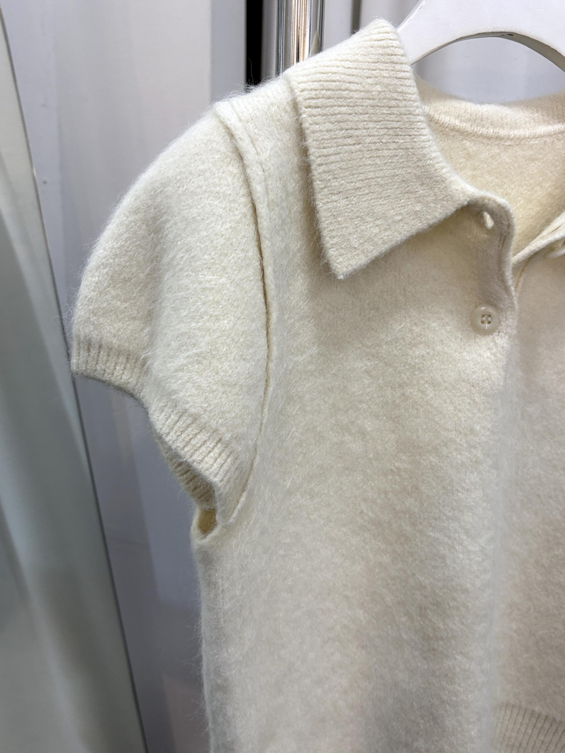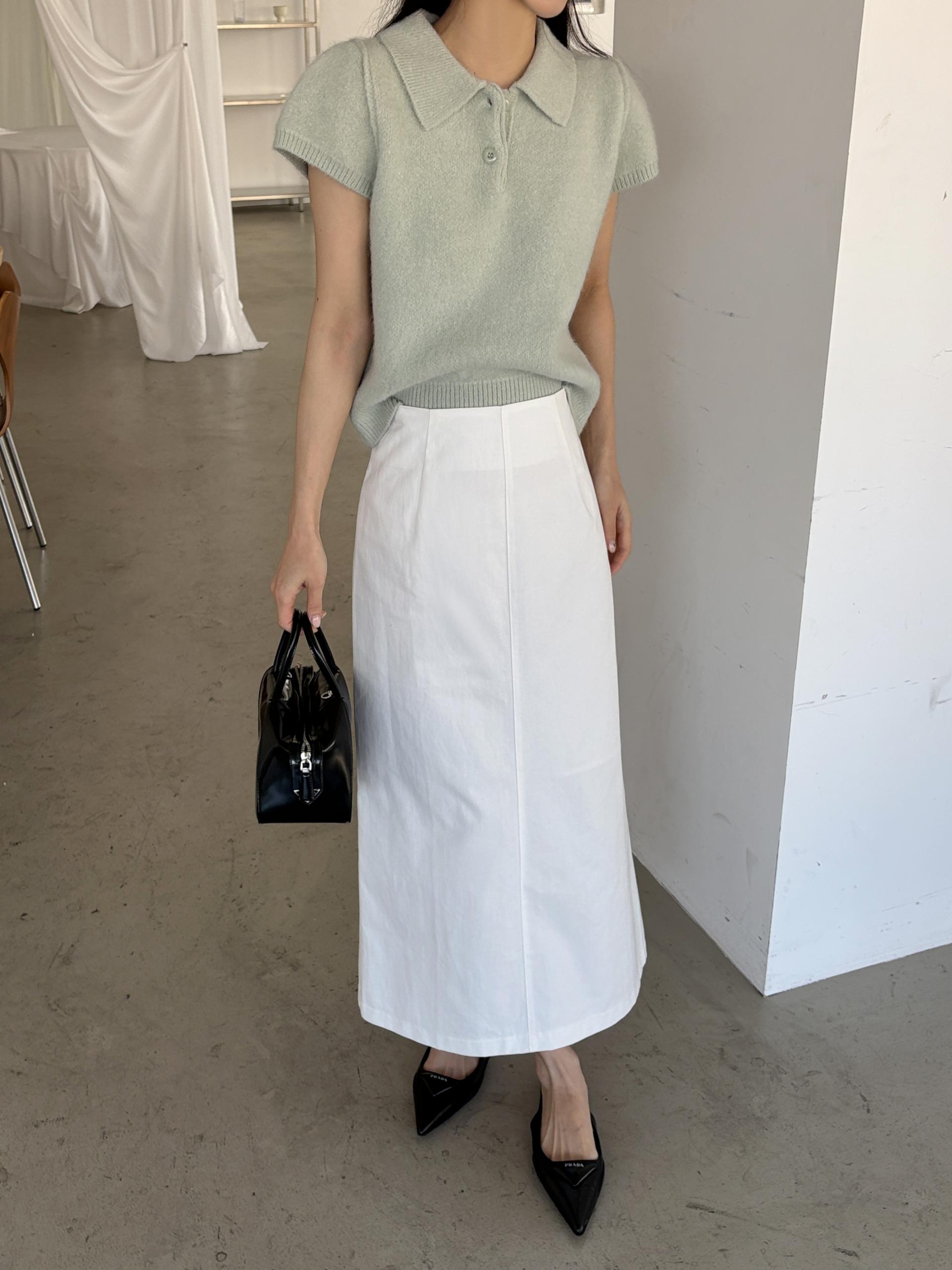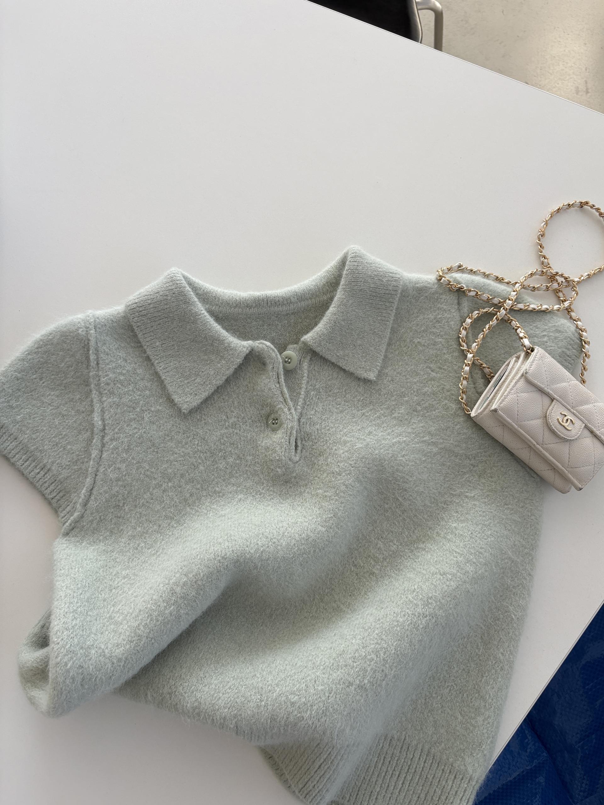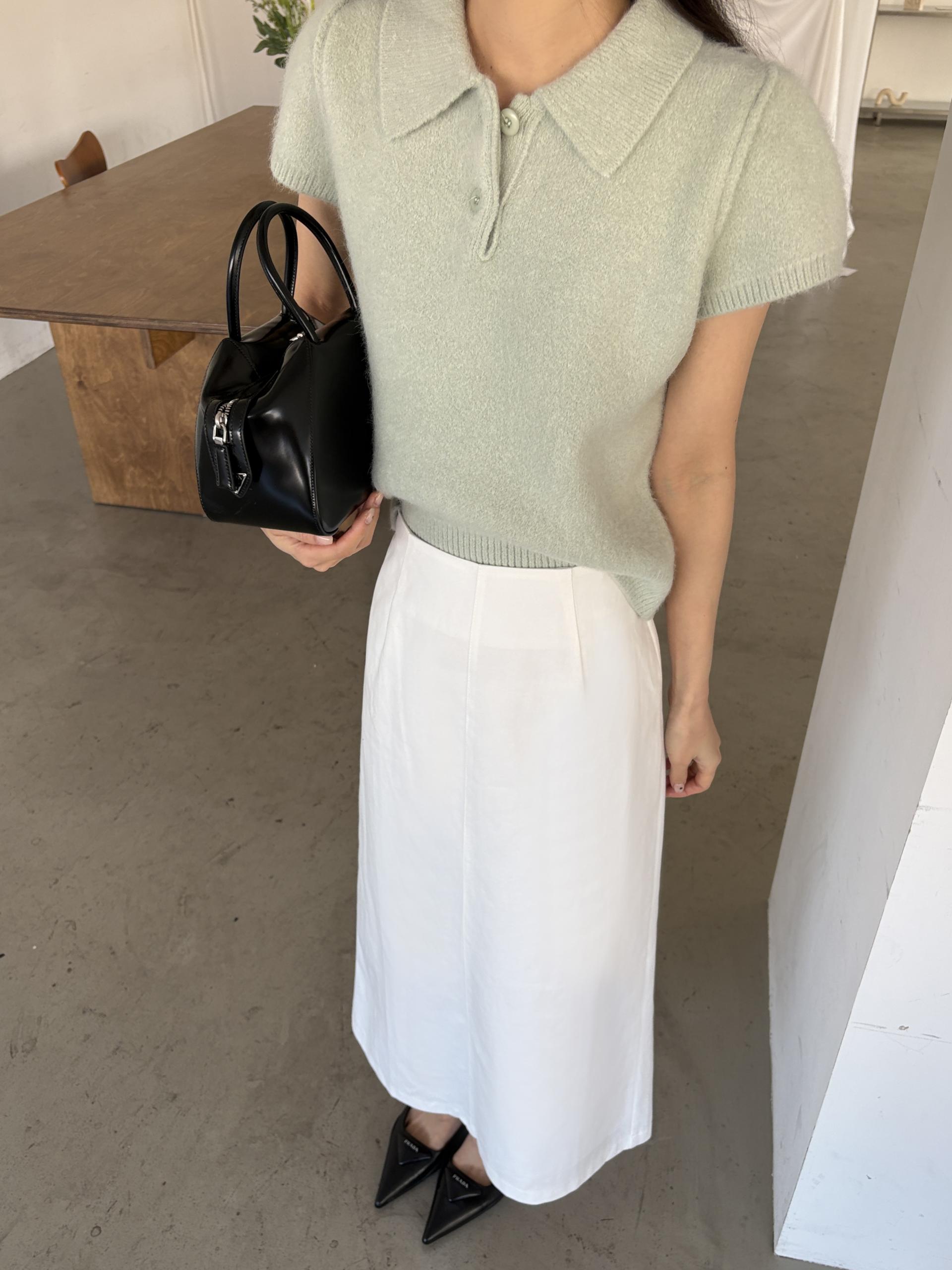 포근한 텍스처가 매력적인 카라넥 반팔 니트 티셔츠입니다.
