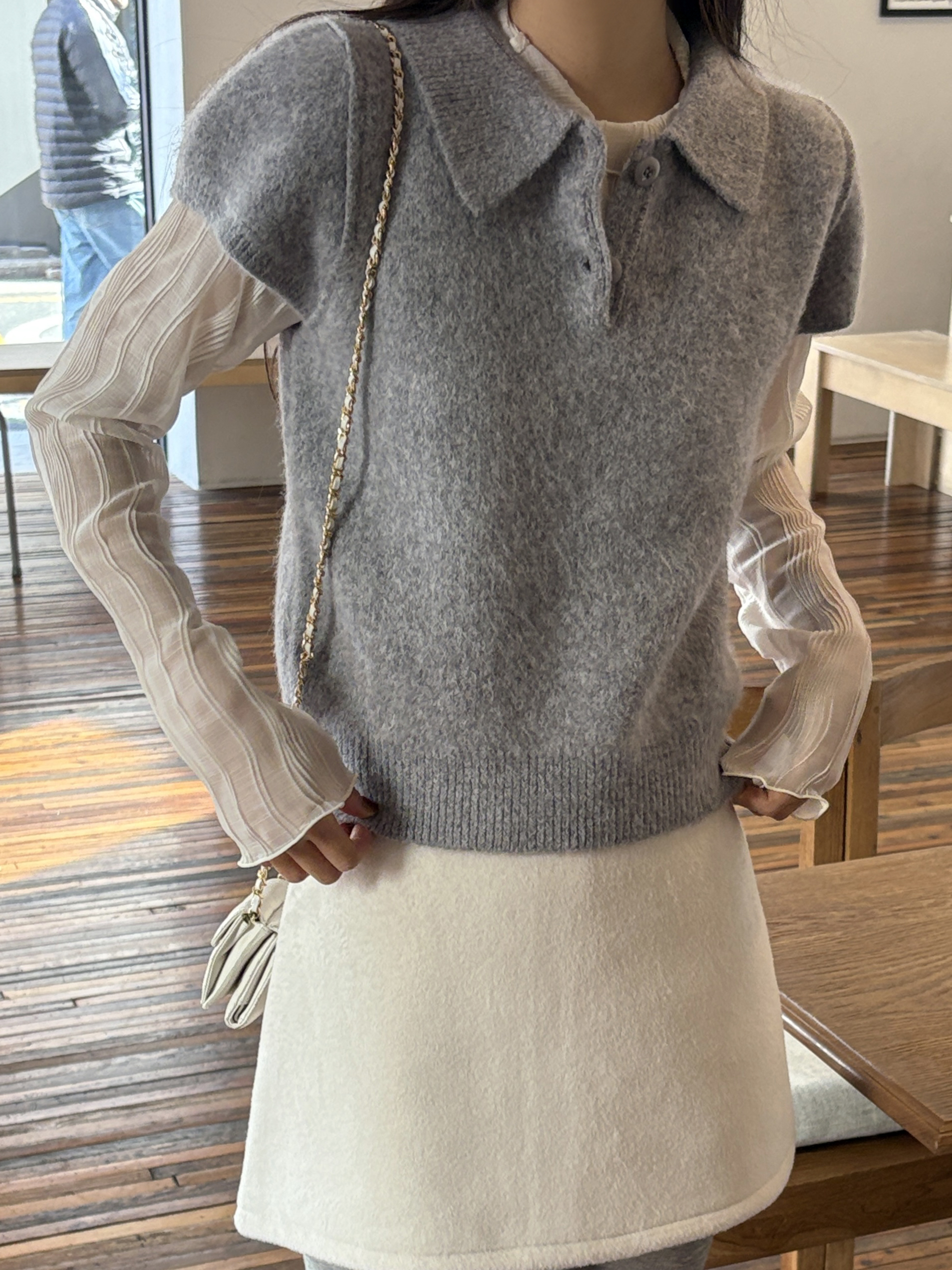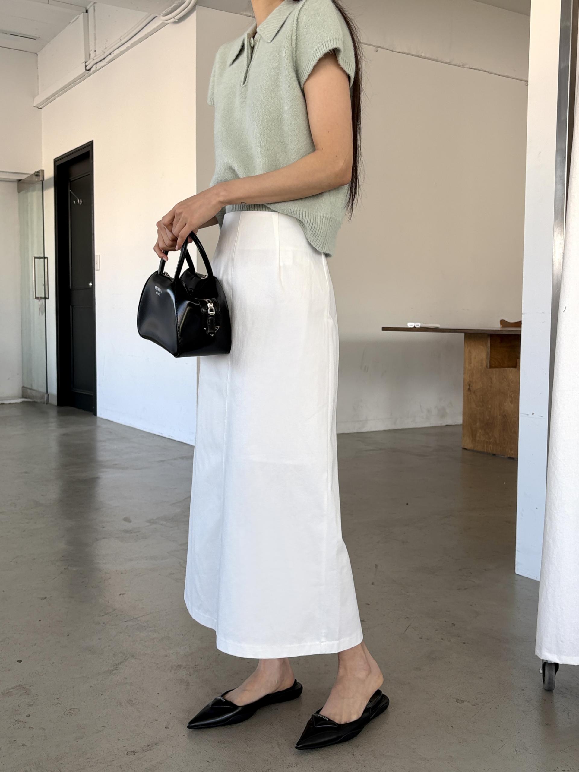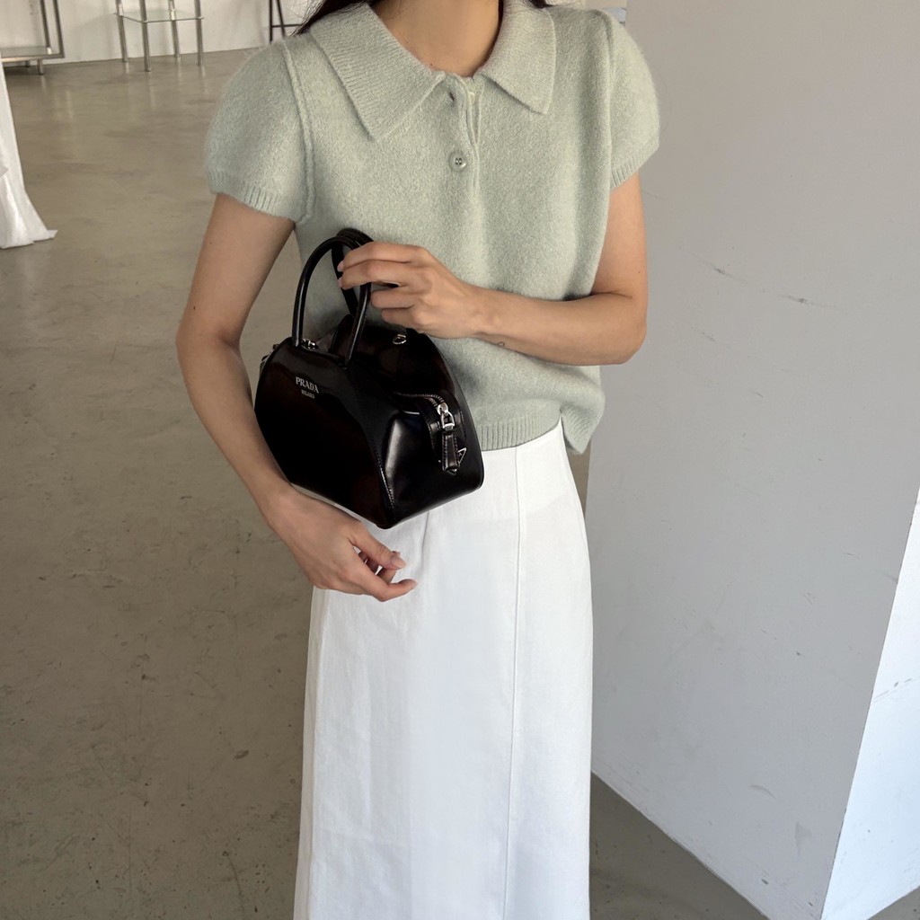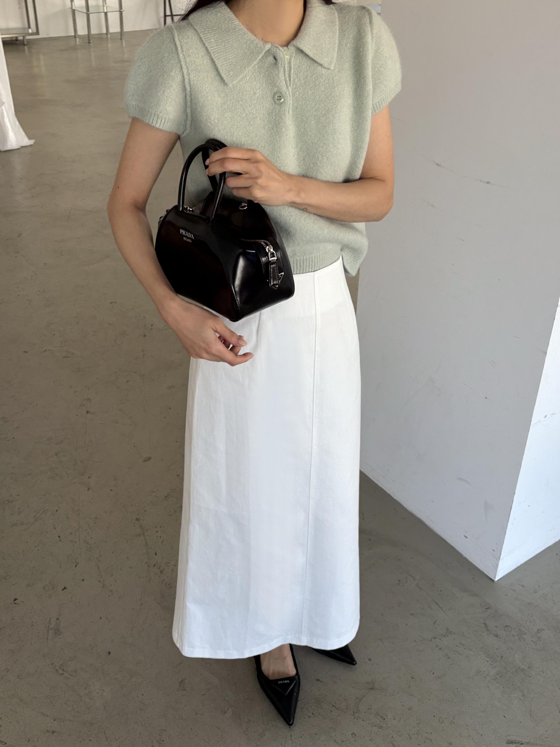 숄더와 소매 라인은 약간의 퍼프가 들어가 팔 라인이 더 슬림해 보이고, 밑단 시보리가 허리 라인을 잡아줘 페미닌한 무드가 느껴집니다.