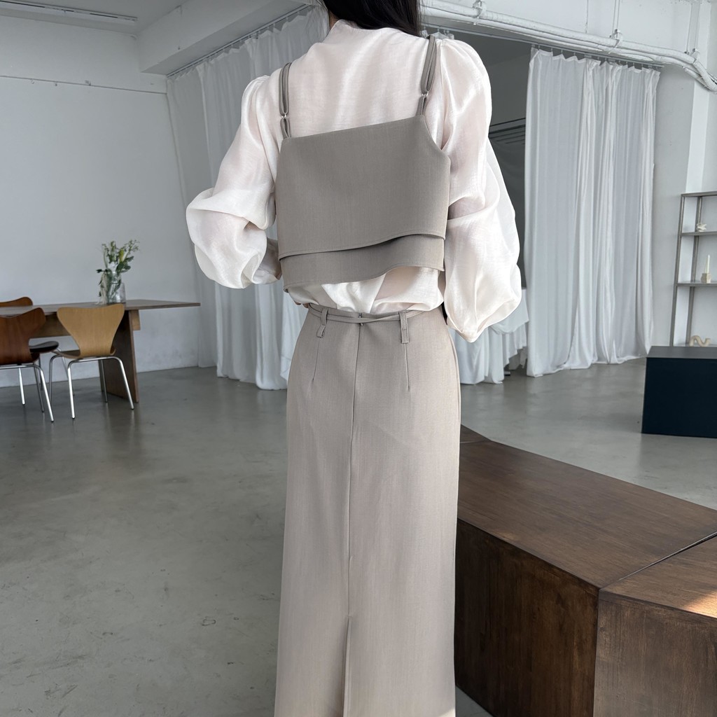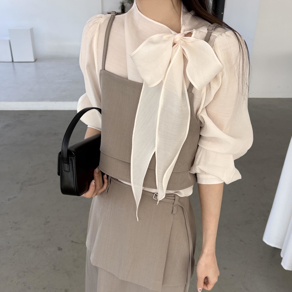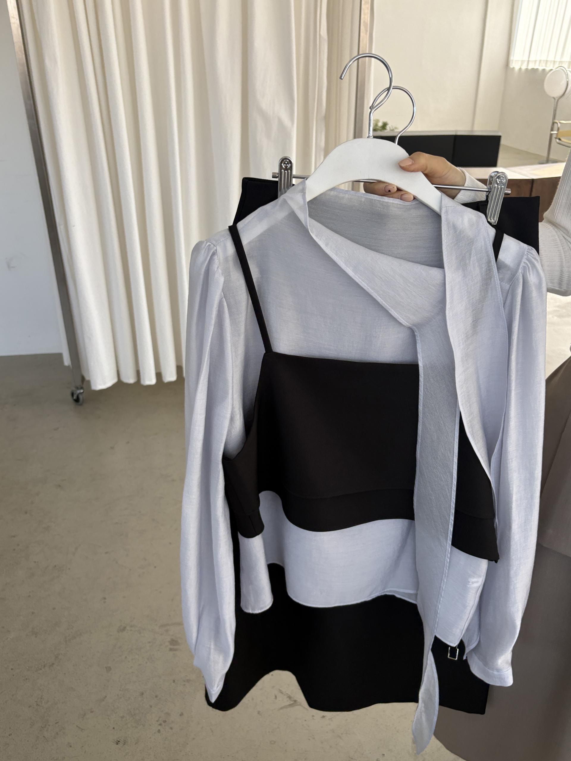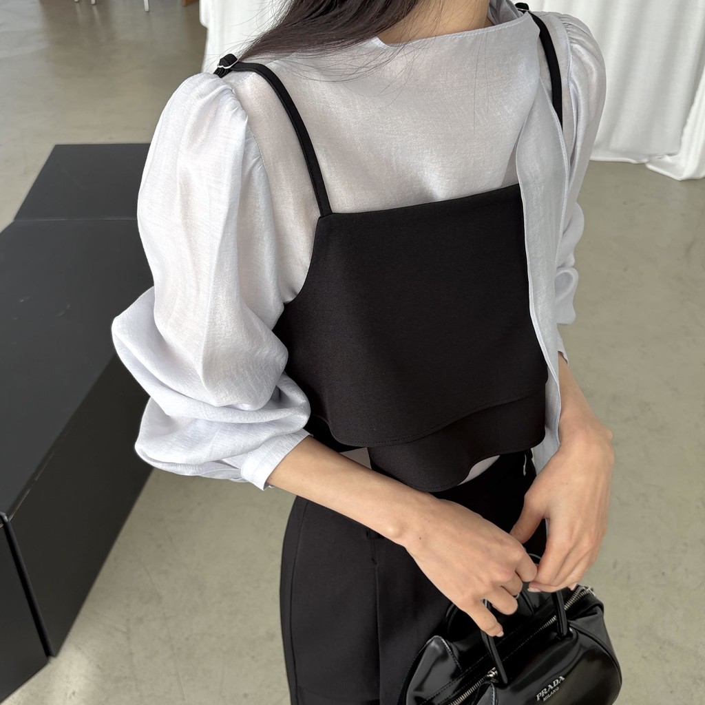 어렵지 않게 세련된 레이어드 룩을 연출할 수 있는 투피스 크롭 뷔스티에입니다.