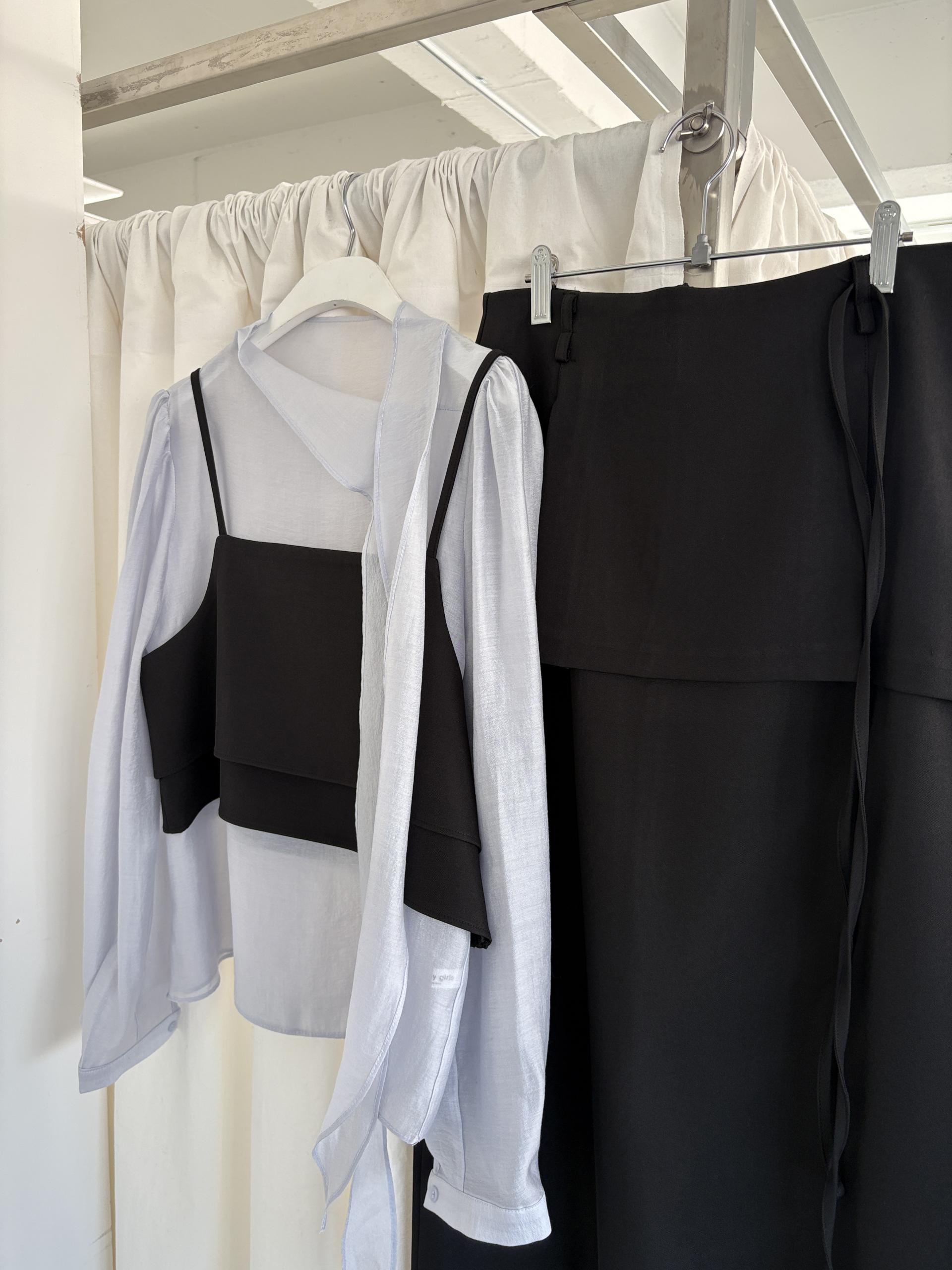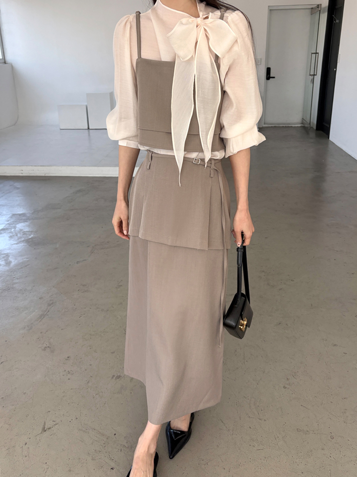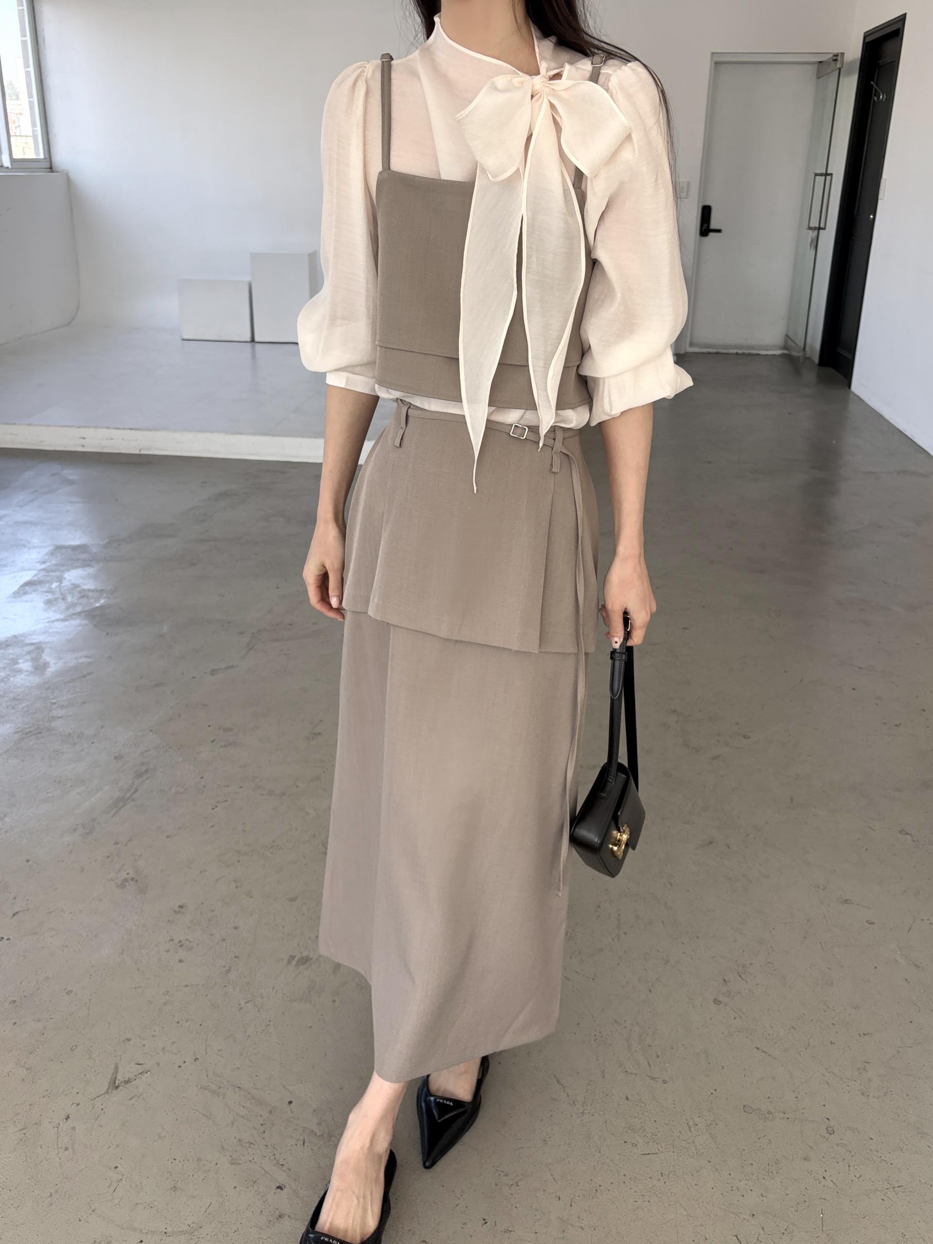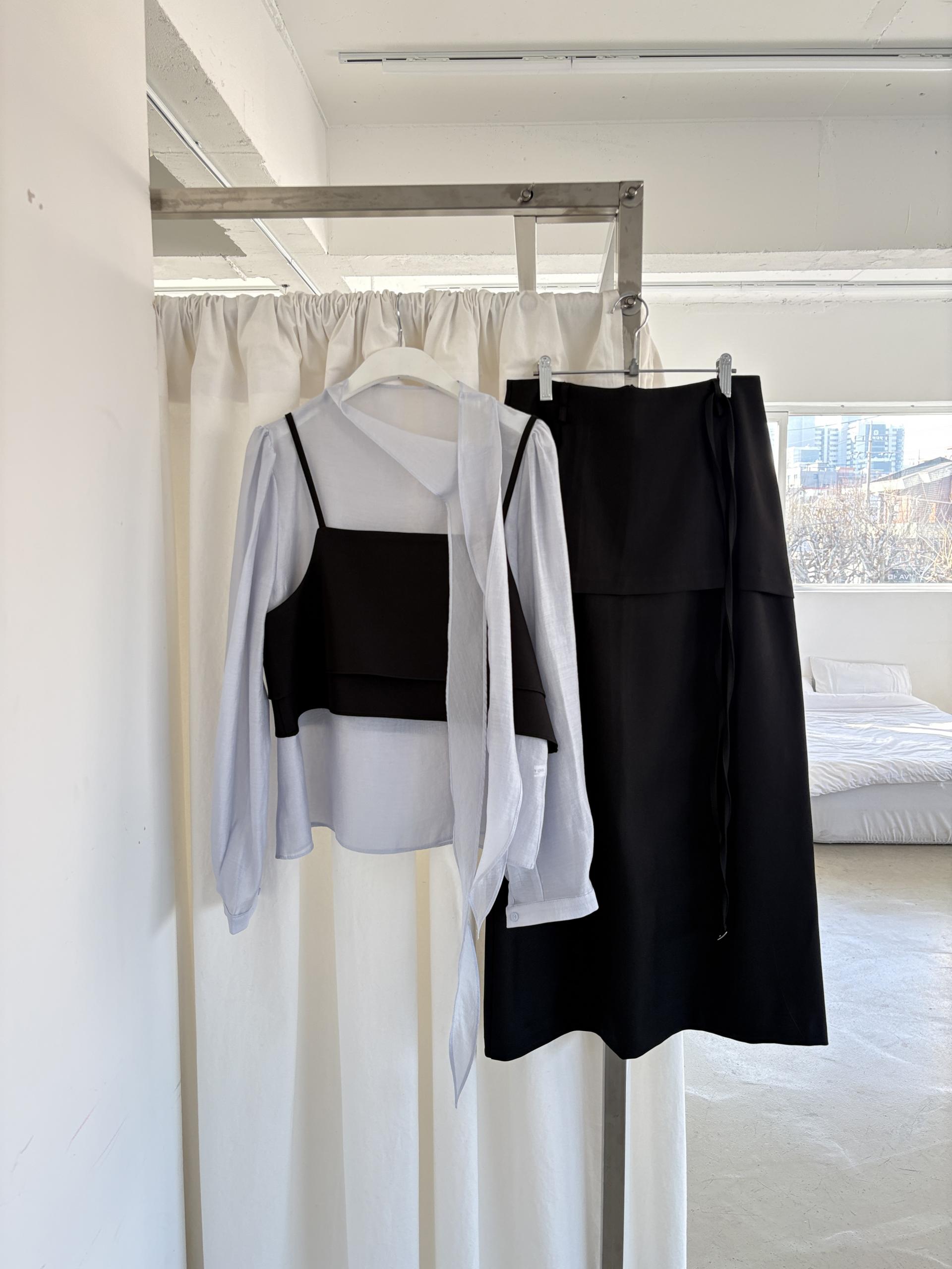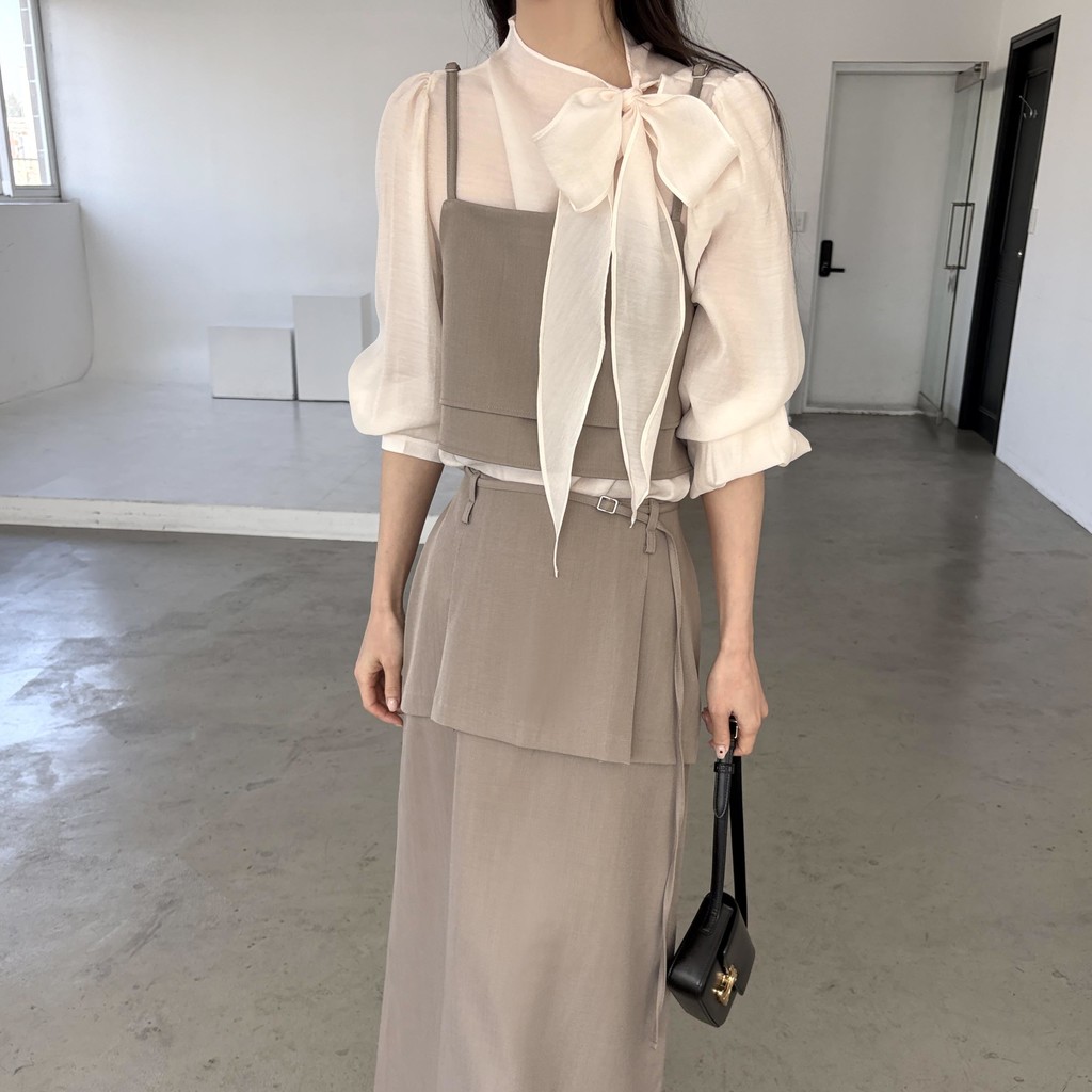 어렵지 않게 세련된 레이어드 룩을 연출할 수 있는 투피스 크롭 뷔스티에입니다.