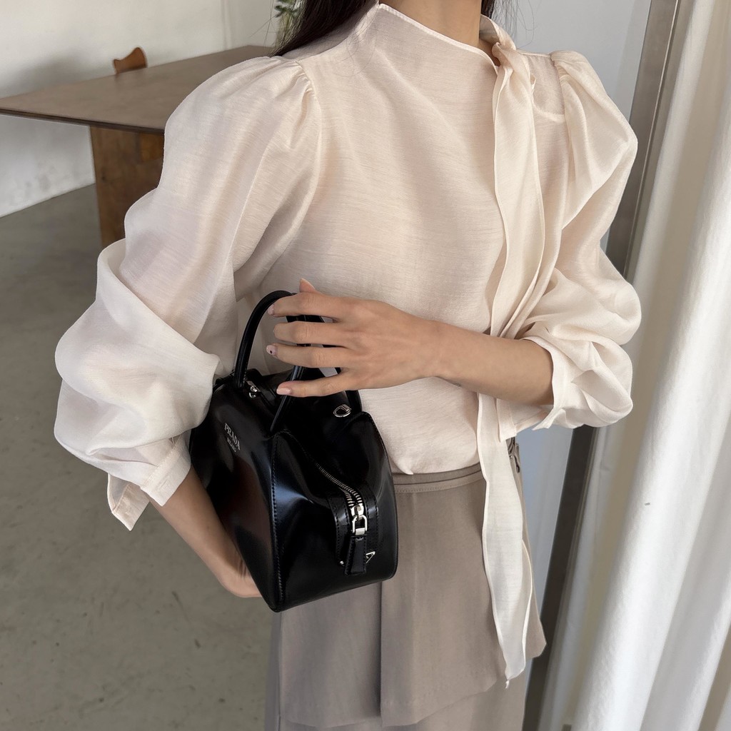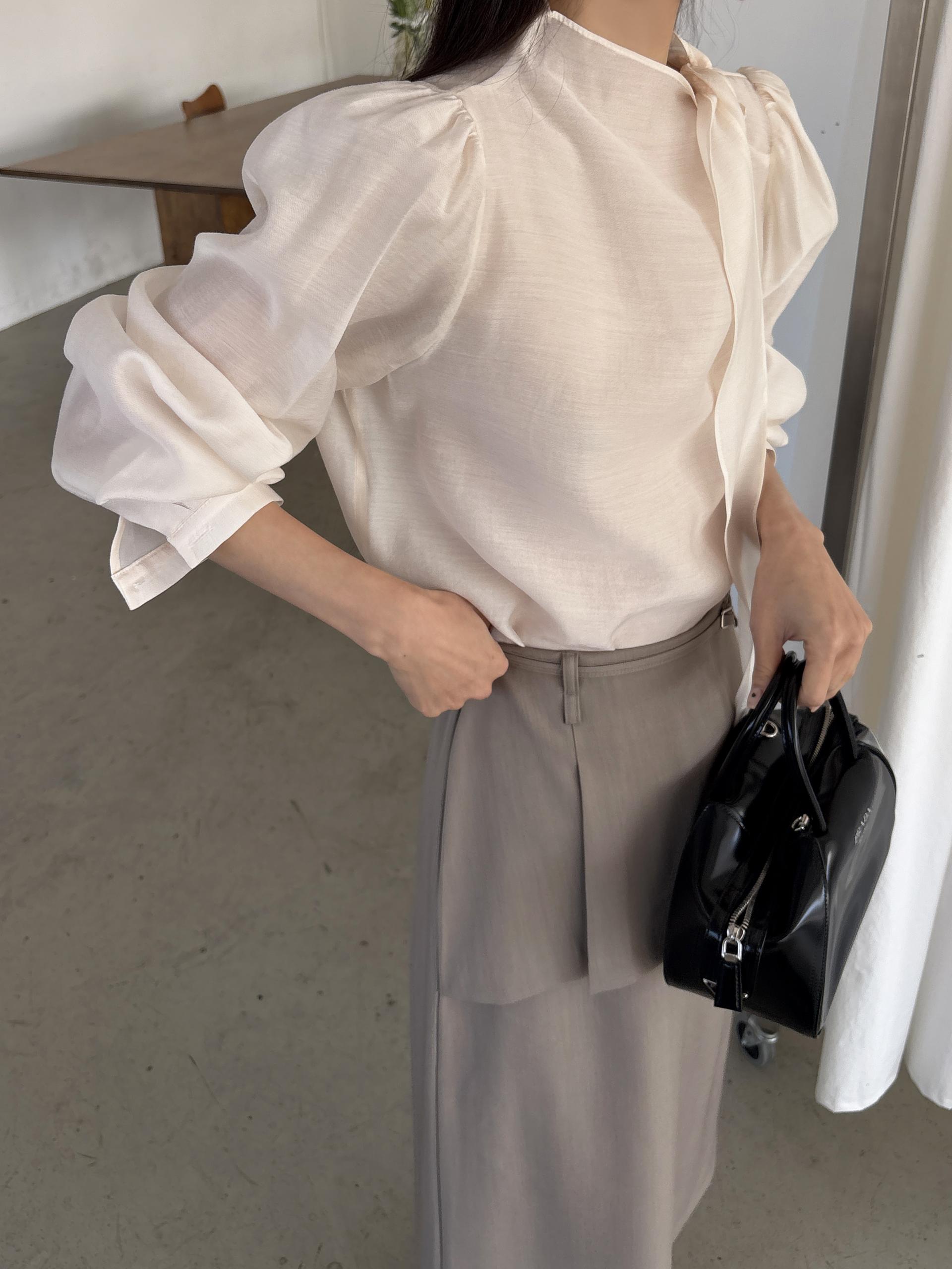 어깨 셔링과 과하지 않은 퍼프 소매로 팔 라인이 슬림하게 연출되어 어떤 체형에도 잘 어울리는 데일리 블라우스입니다.