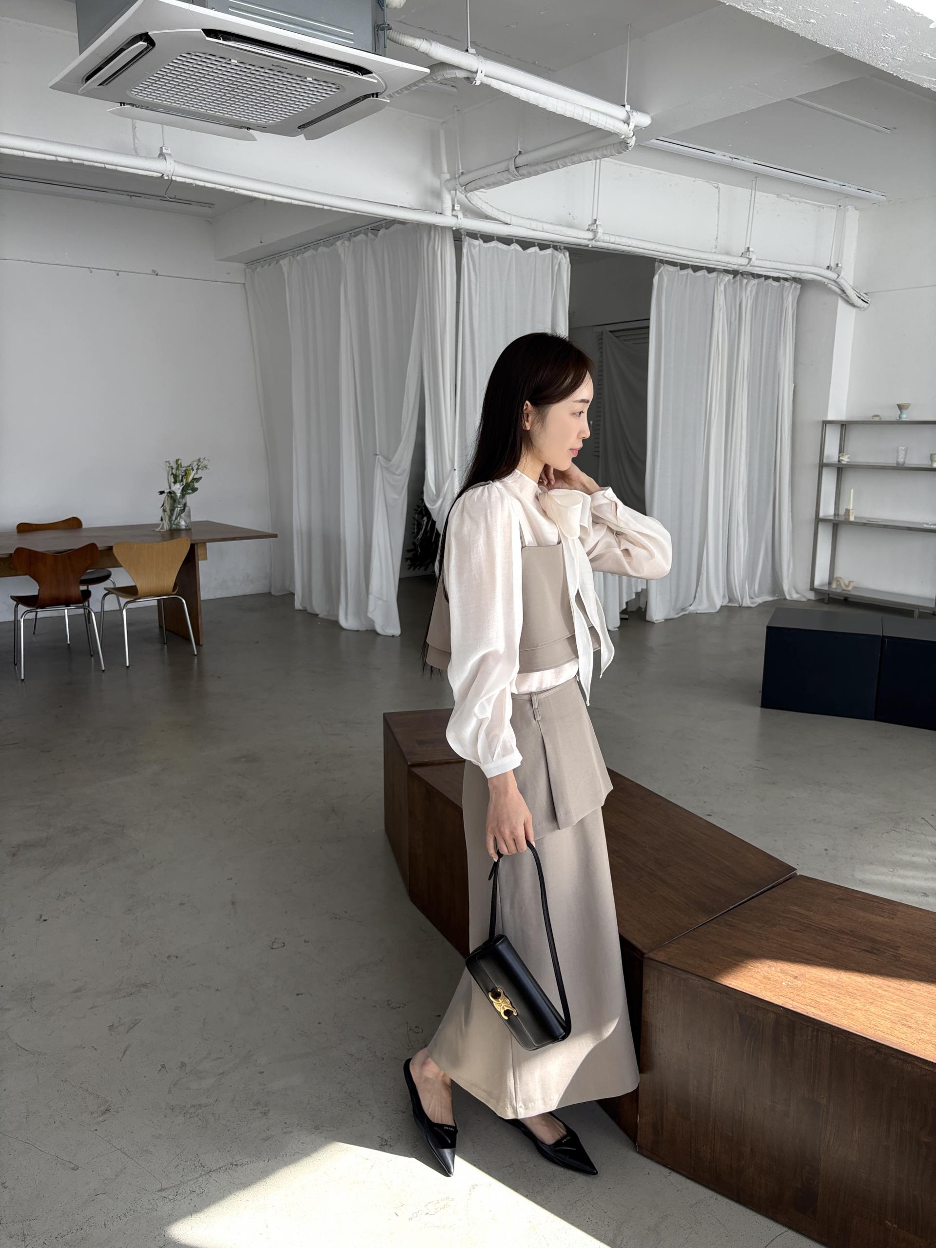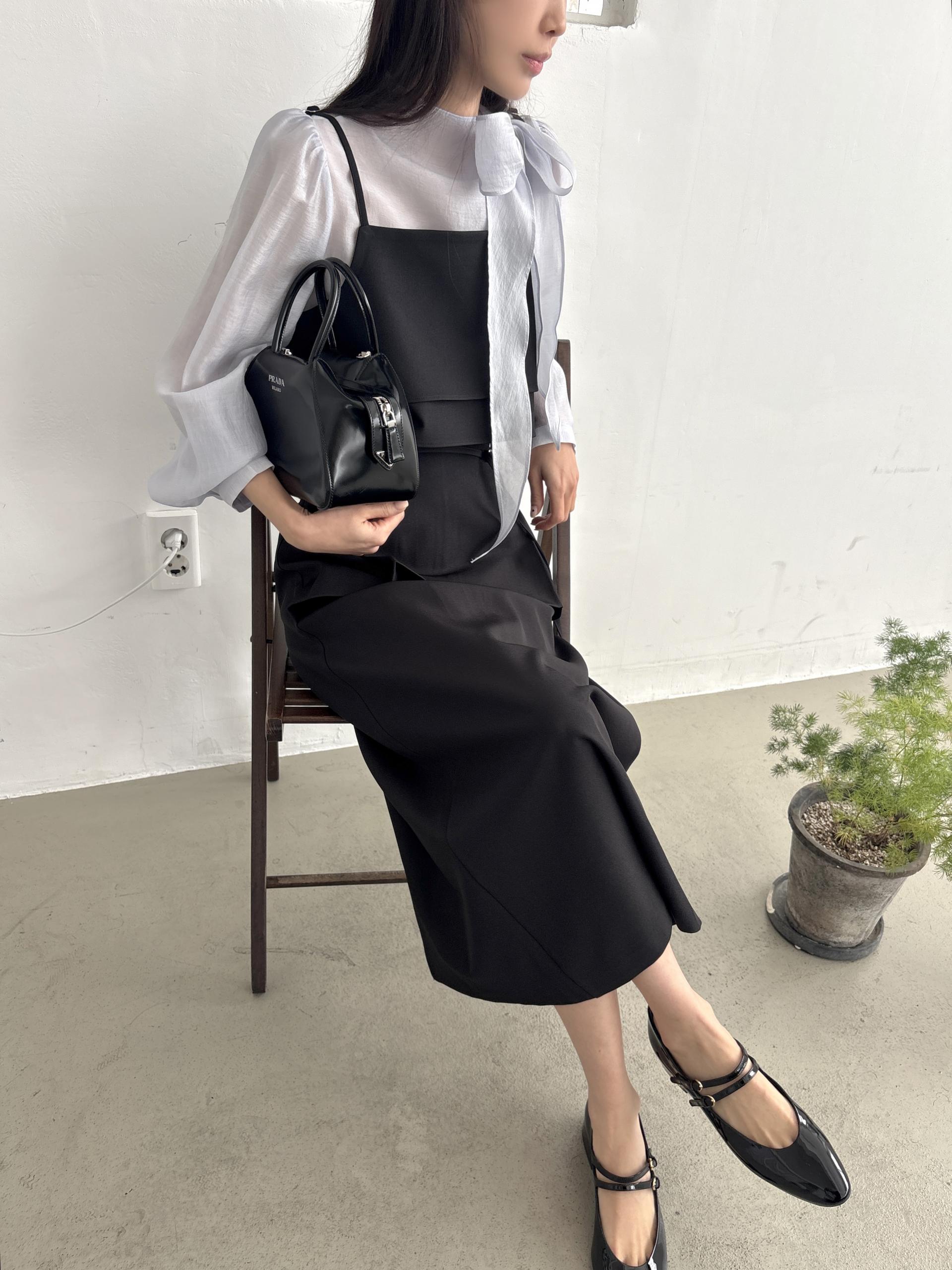 하객룩, 오피스룩, 데이트룩 모두 좋고, 단독 착용해도 좋지만 아우터나 니트, 뷔스티에 등과 레이어드하기도 너무 좋은 아이템이에요.