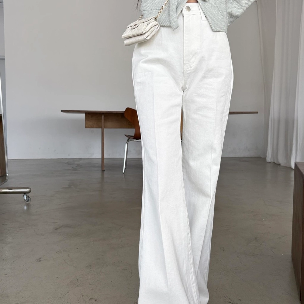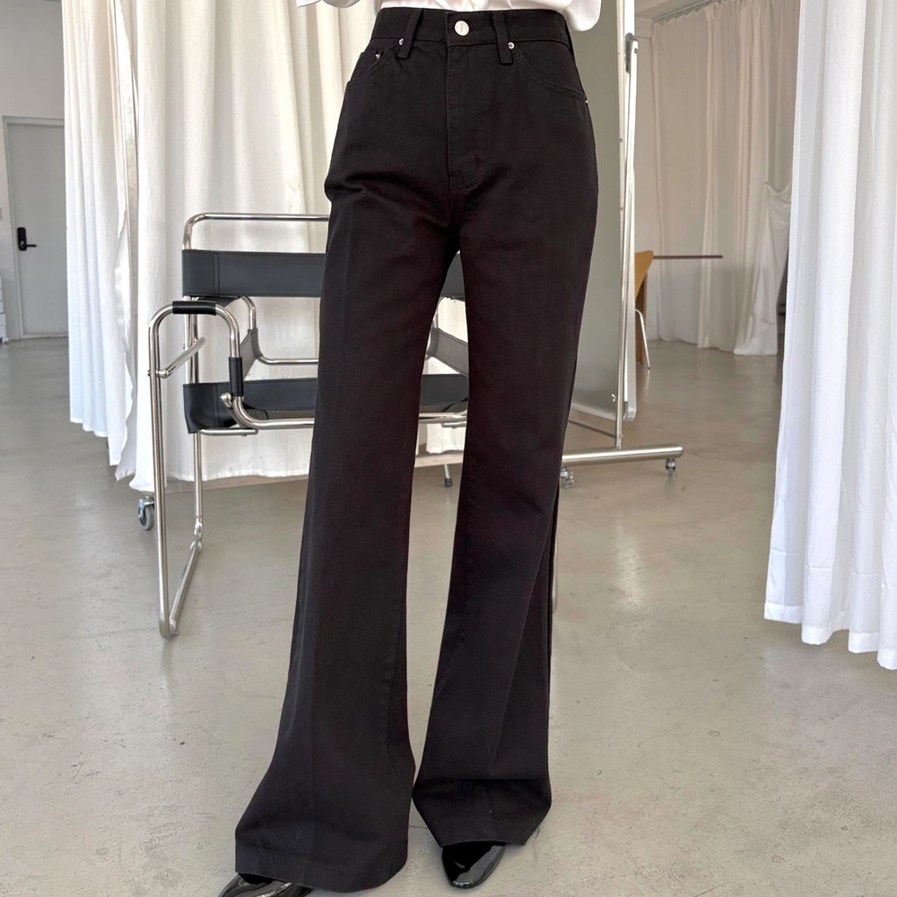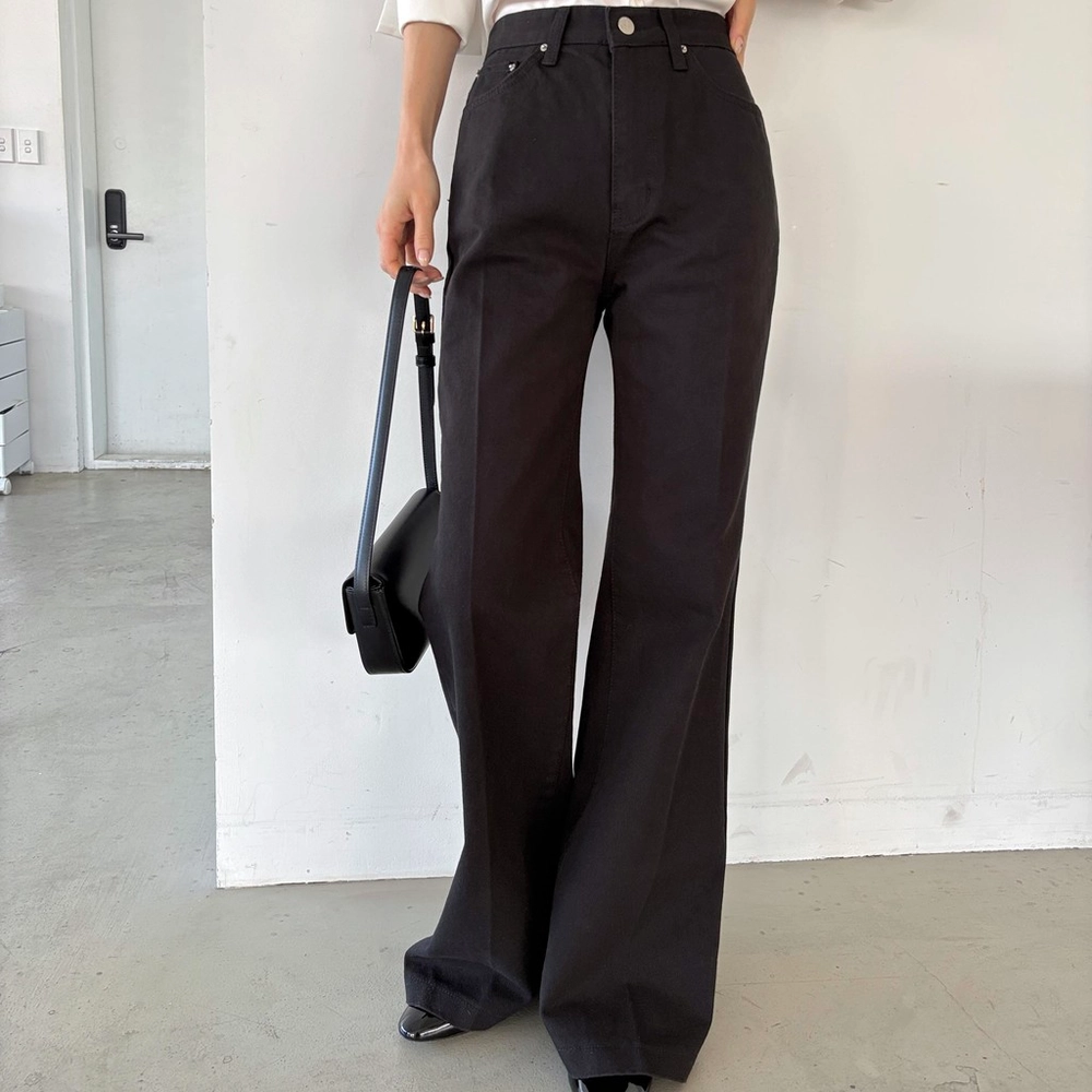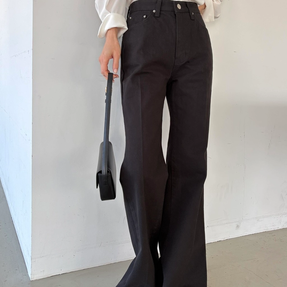 하이웨스트 밑위로 허리를 안정감 있게 잡아주고, 스트레이트와 부츠컷의 중간 정도로 자연스럽게 떨어지는 세미 부츠컷 실루엣이라 손이 더 많이 가는 팬츠입니다.