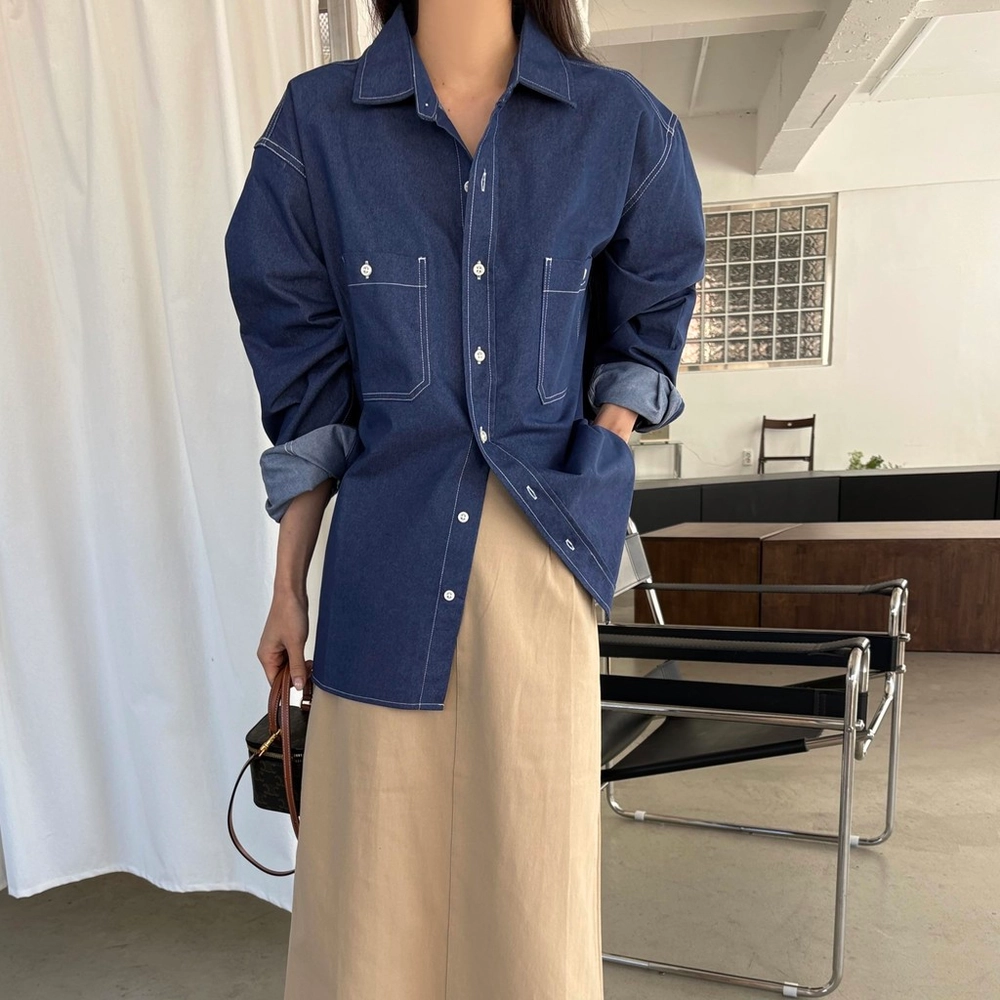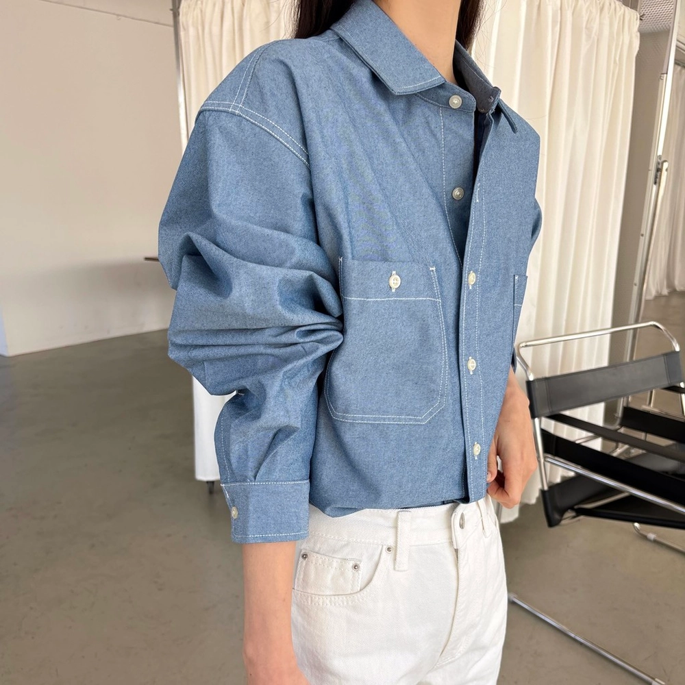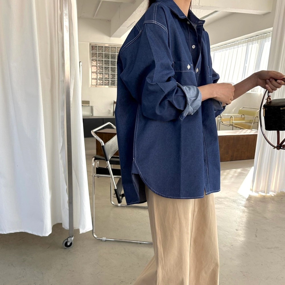 탄탄한 데님 원단에 미니멀한 스티치 디테일이 더해진 데일리 셔츠입니다.