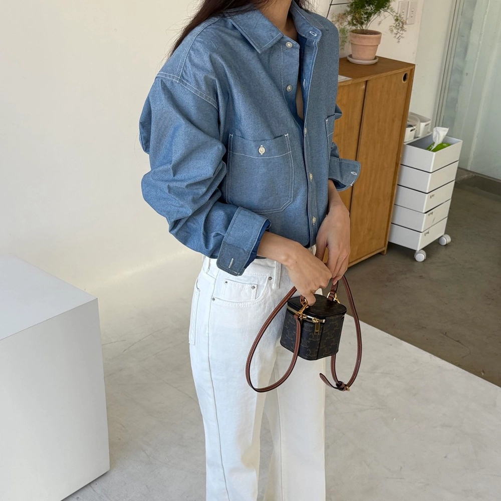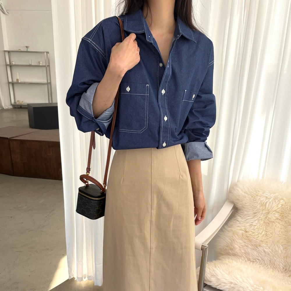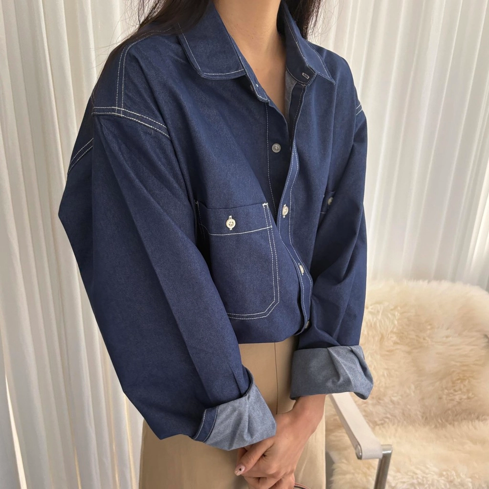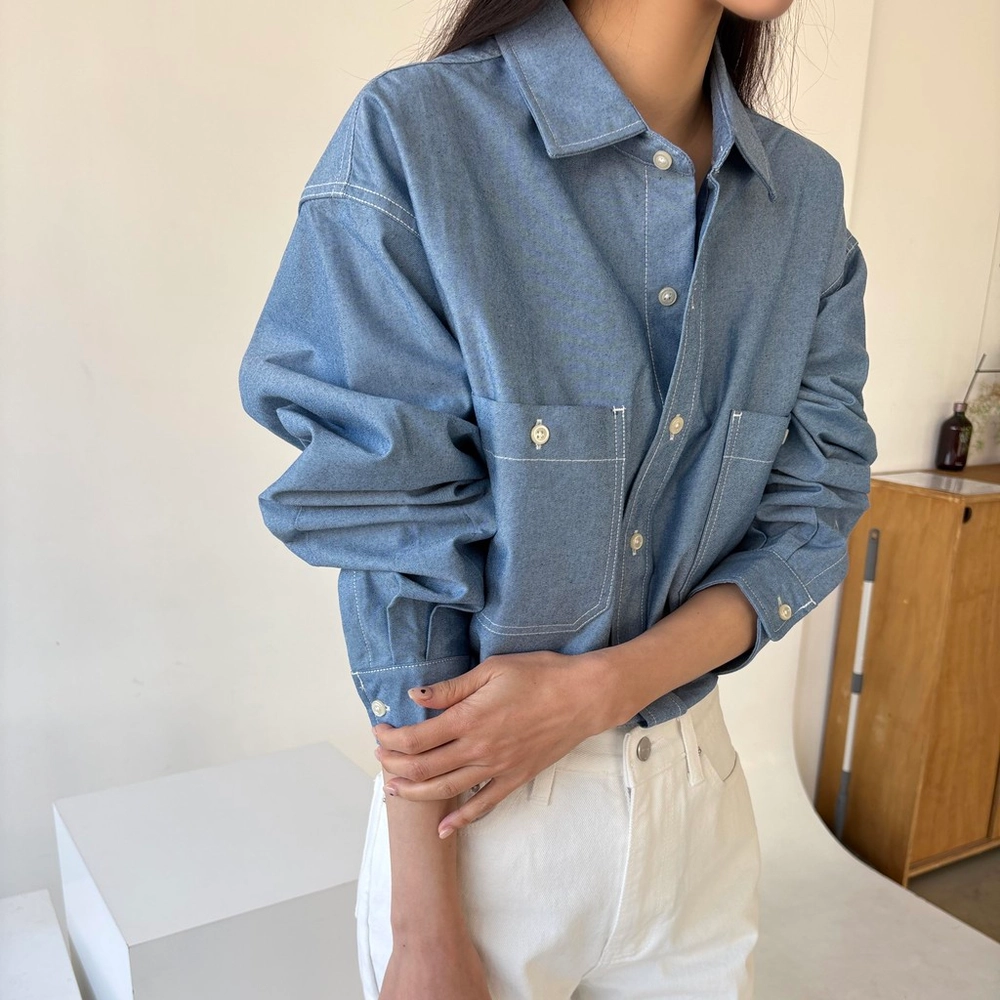 탄탄한 데님 원단에 미니멀한 스티치 디테일이 더해진 데일리 셔츠입니다.
