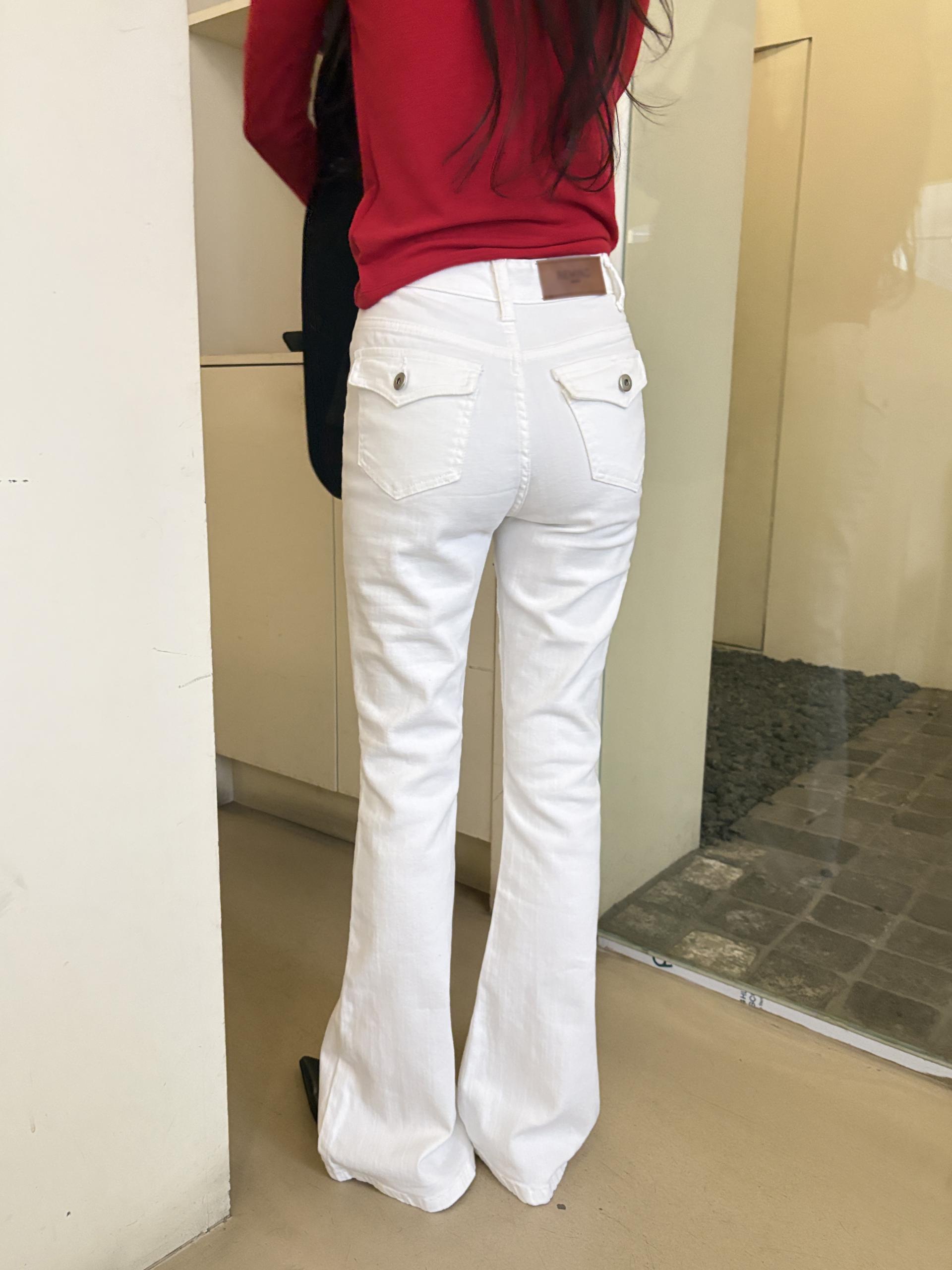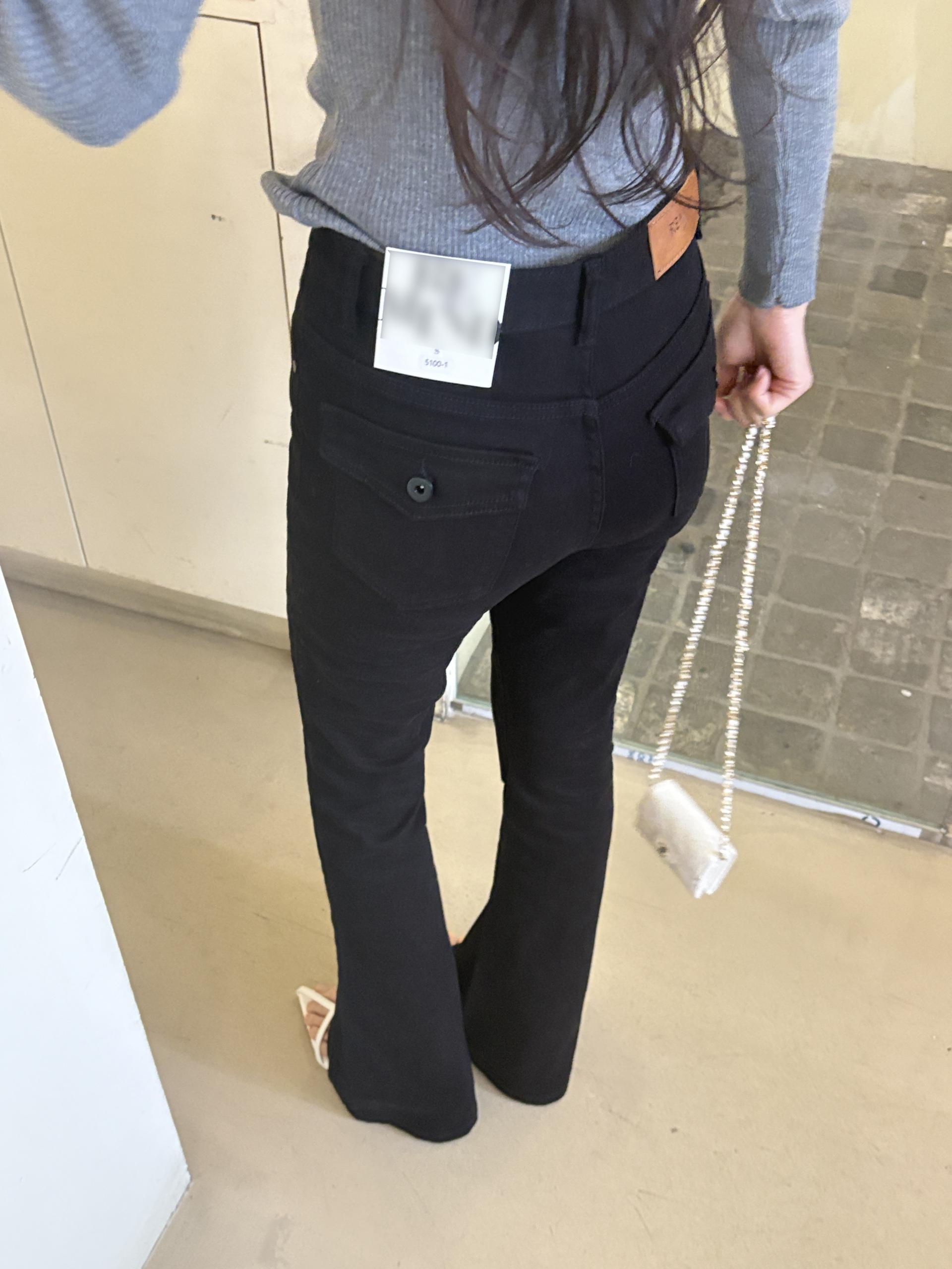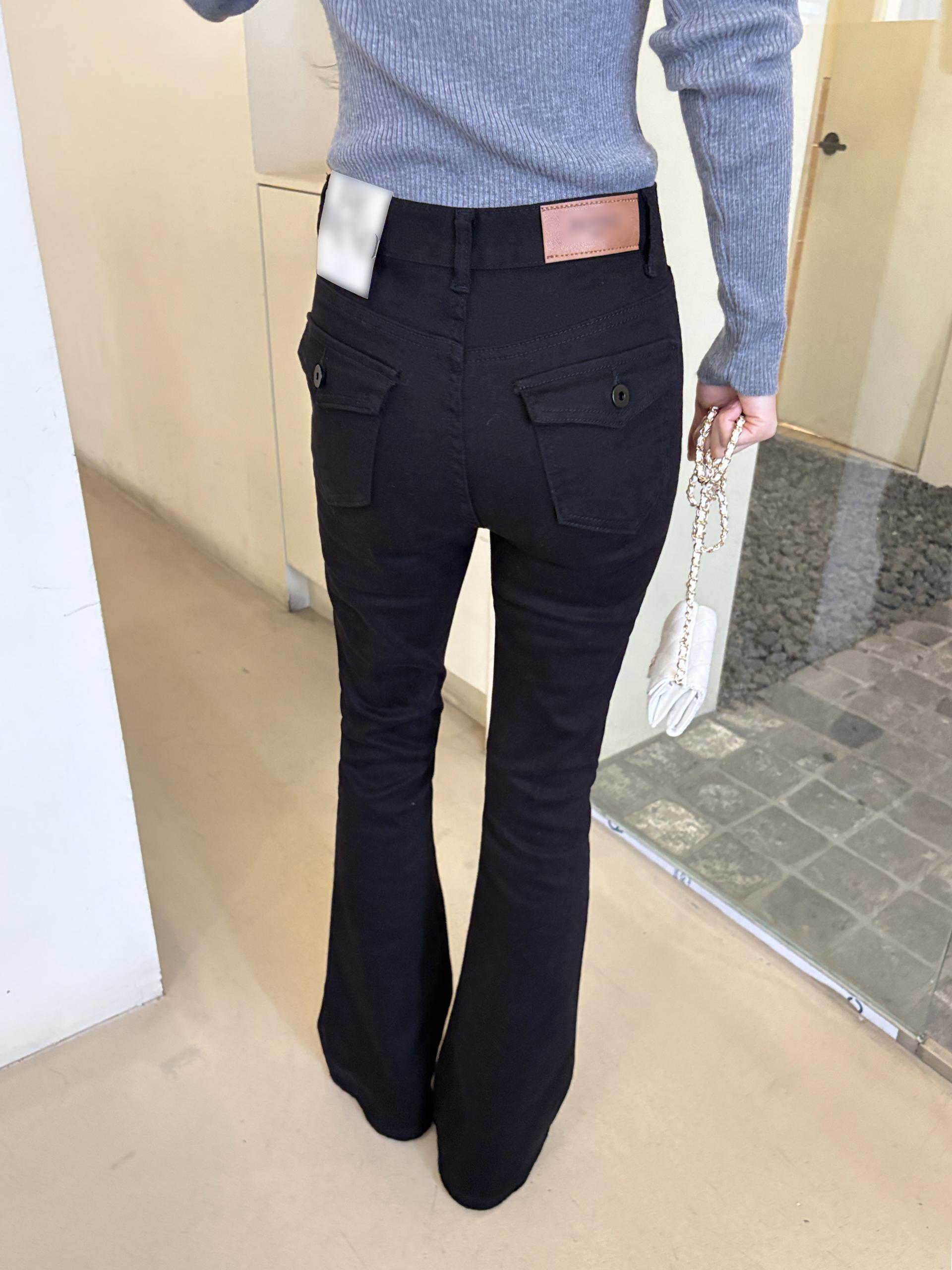 뒤태가 특히 예쁜 짱짱한 코튼, 스판 소재의 부츠컷 데님 팬츠입니다.