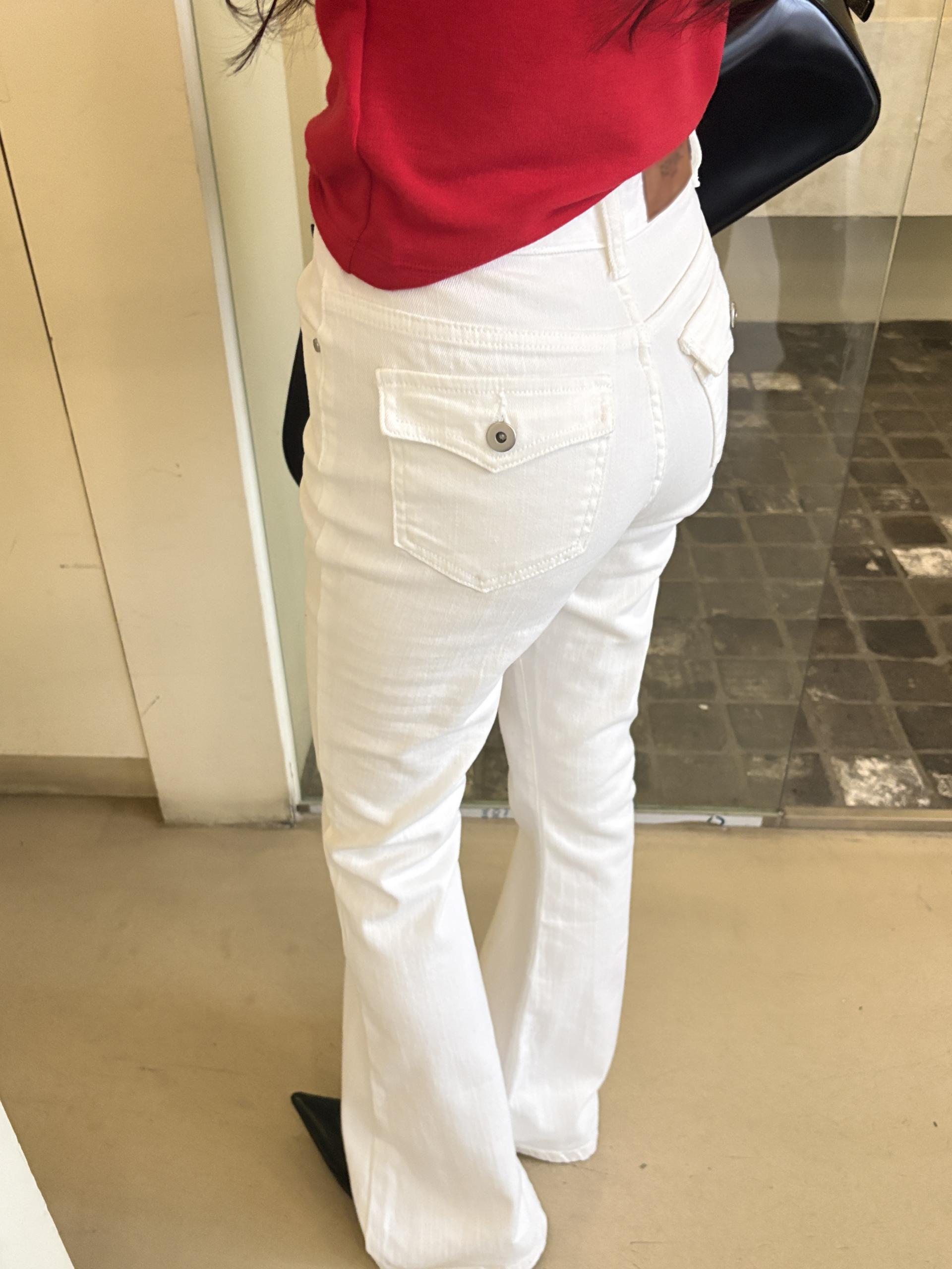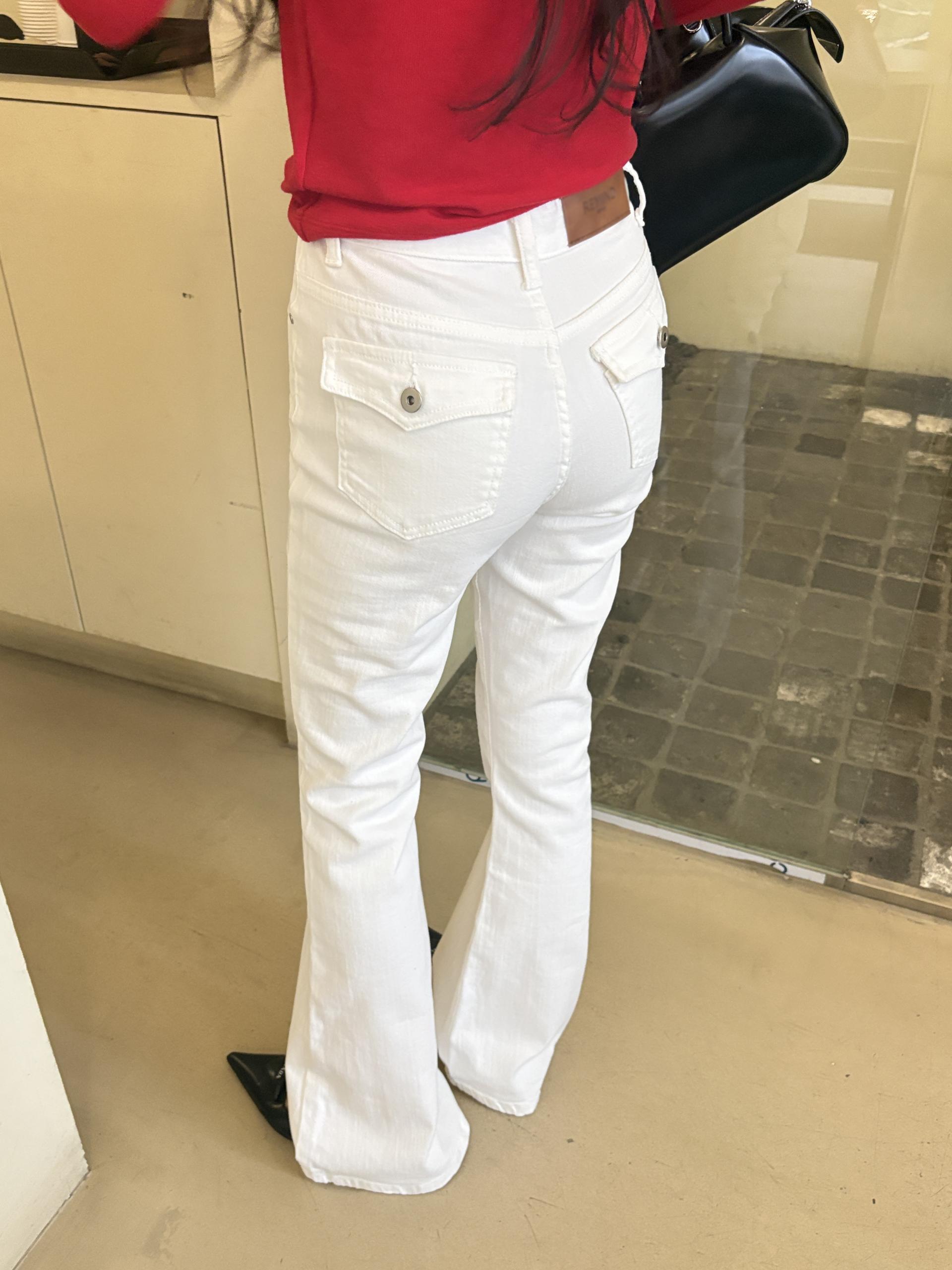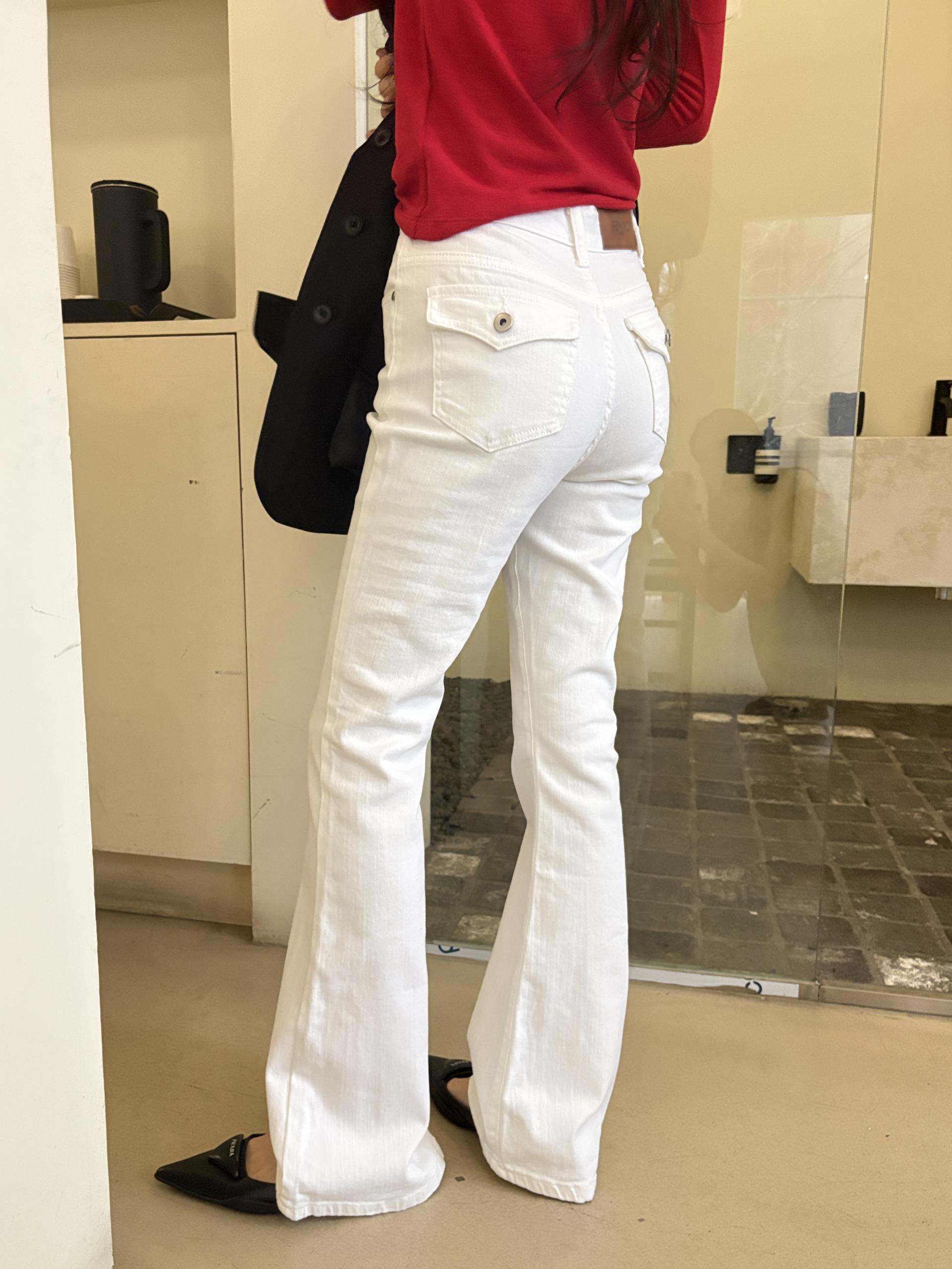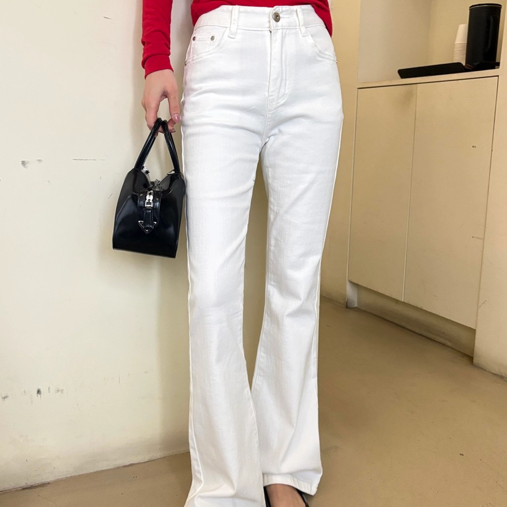 뒤태가 특히 예쁜 짱짱한 코튼, 스판 소재의 부츠컷 데님 팬츠입니다.