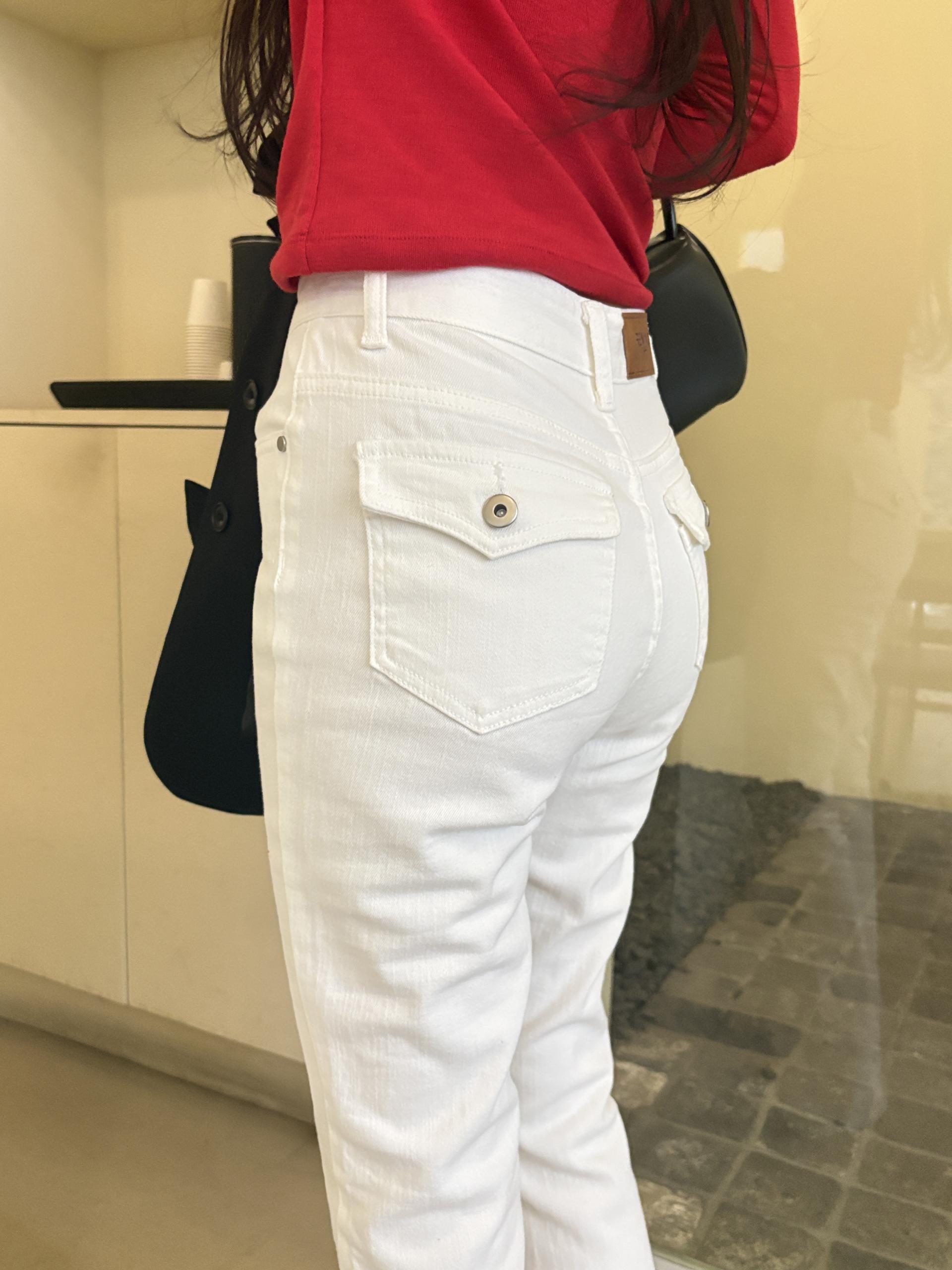 무엇보다 뒷 포켓 디테일로 평소 힙이 없어 슬림한 핏의 팬츠를 꺼리셨던 분들께 특히 추천해요. 힙이 밋밋해 보이지 않아 너무 만족스러웠습니다.