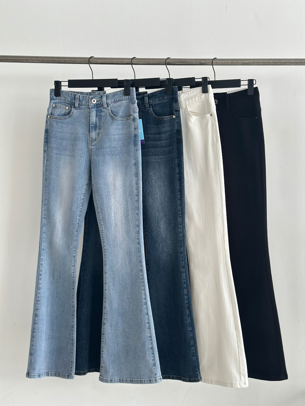 컬러는 연청, 진청, 화이트, 블랙 총 4가지이며, 사이즈도 L까지 넉넉하게 만나보세요.